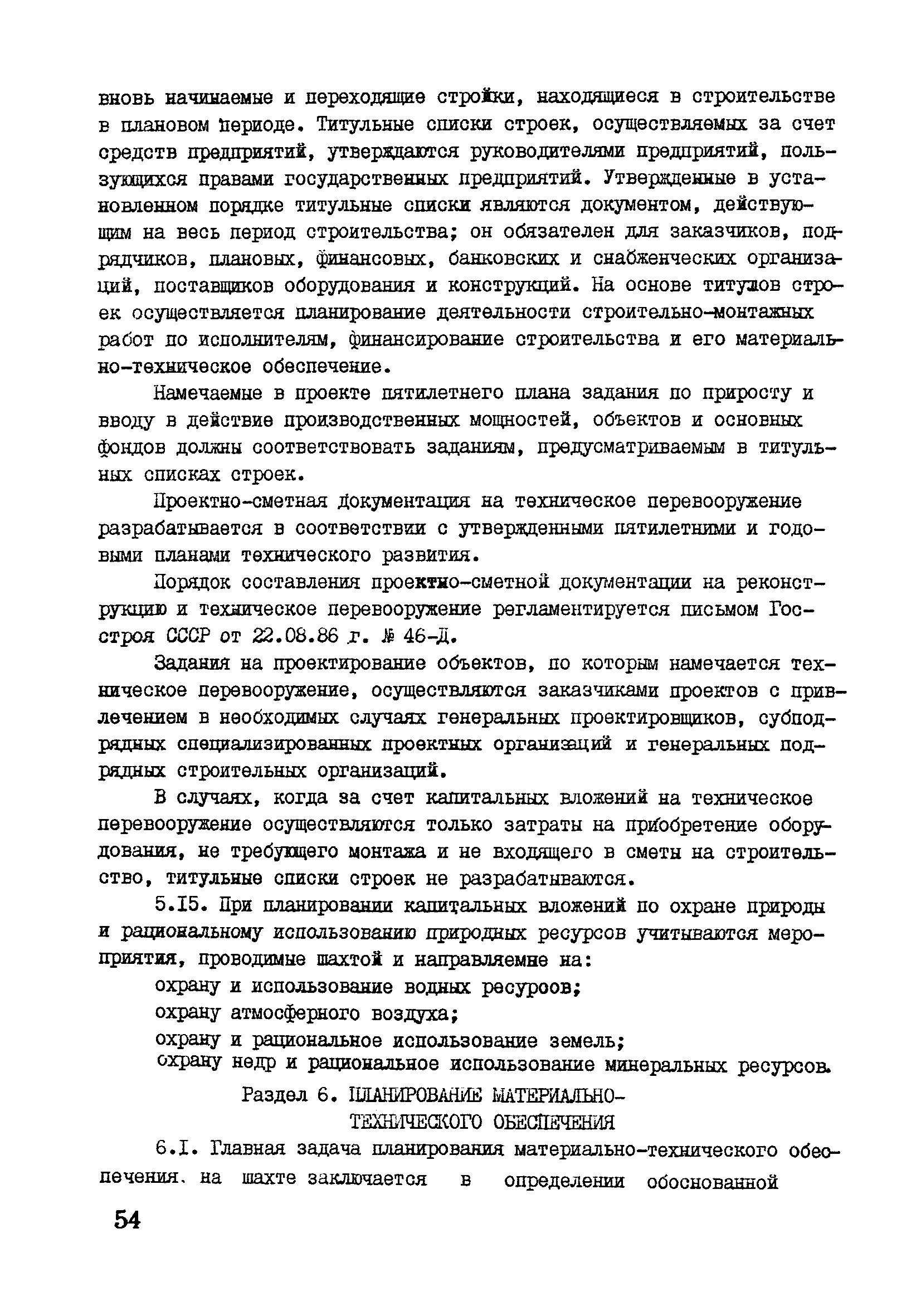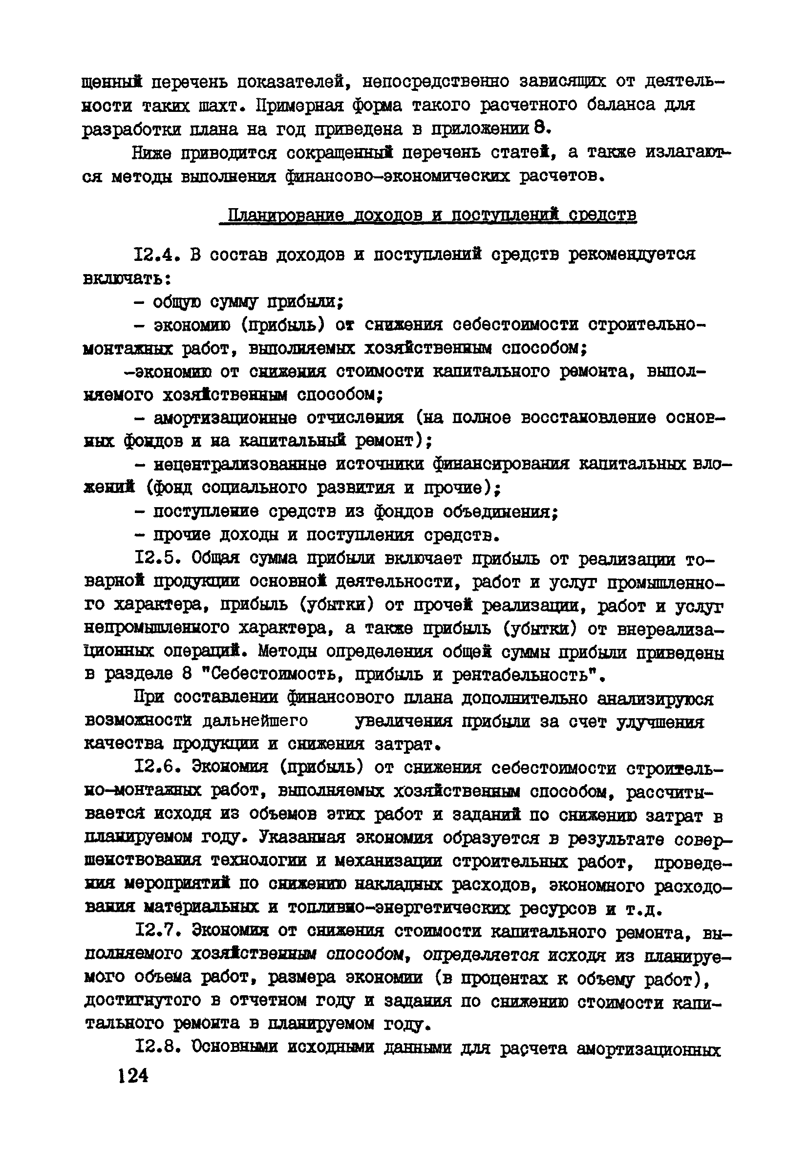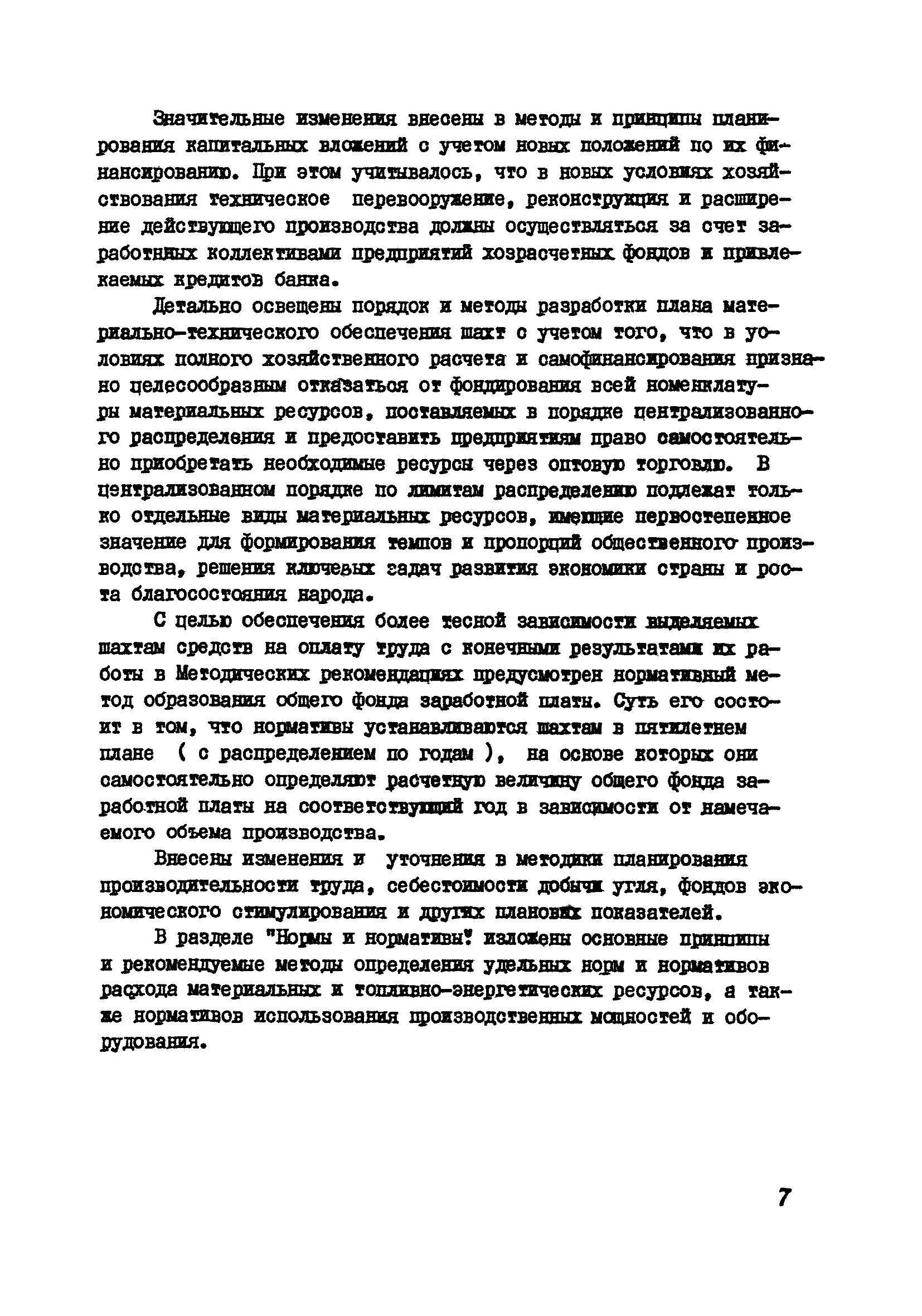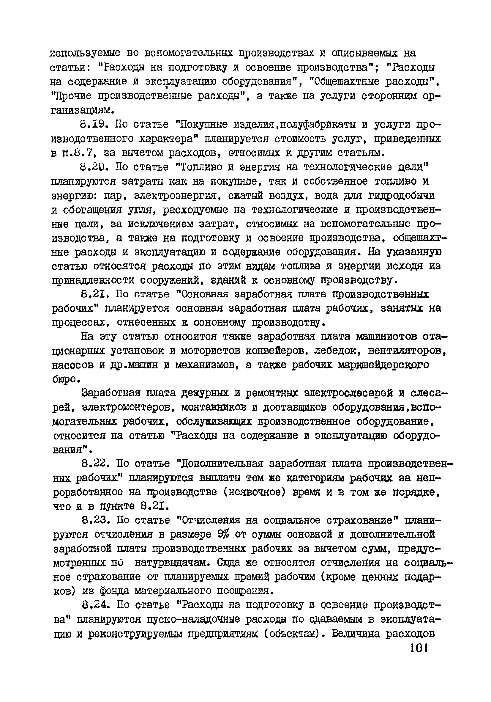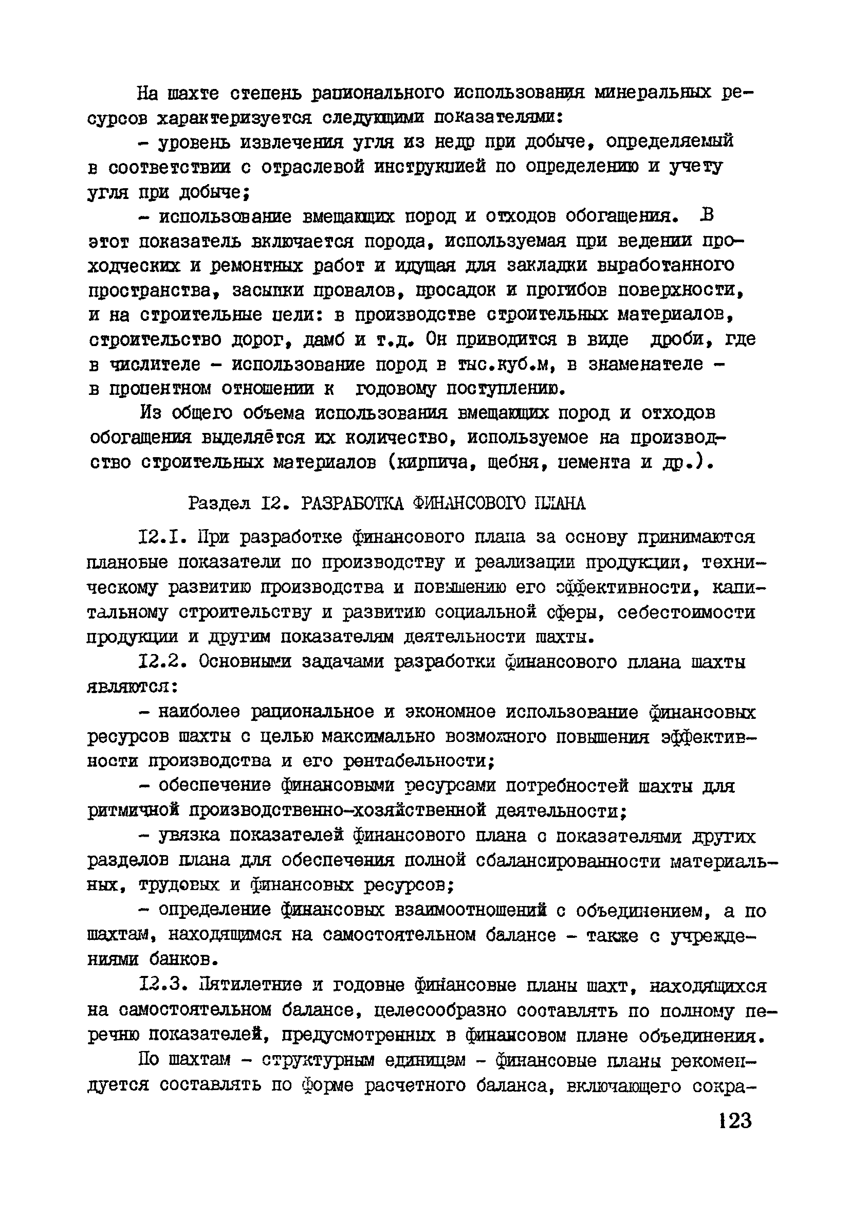| Оглавление: | Введение Раздел 1. Основные организационно-методические положения Раздел 2. Планирование привоза продукции Раздел 3. Планирование технического развития производства Раздел 4. Планирование экономической эффективности производства Раздел 5. Планирование капитальных вложений Раздел 6. Планирование материально-технического обеспечения Раздел 7. Планирование труда и заработной платы Раздел 8. Планирование себестоимости, прибыли и рентабельности Раздел 9. Планирование фондов экономического стимулирования Раздел 10. Планирование социального развития коллектива Раздел 11. Планирование охраны окружающей среды и рационального использования природных ресурсов Раздел 12. Разработка финансового плана Раздел 13. Нормы и нормативы Приложение 1. Пример расчета средней продолжительности отпуска рабочих по добыче угла Приложение 2. Примеры расчета коэффициентов списочного состава рабочих по добыче угля, применяемых при разработке месячных планов Приложение 3. Коэффициенты списочного состава рабочих по добыче угля для различных режимов работы и различной продолжительности очередного отпуска, применяемые при разработке месячных планов Приложение 4. Расчет фонда заработной платы промышленно-производственного персонала по добыче угля по шахте (примерная форма) Приложение 5. Смета затрат на производство Приложение 6. Расчет услуг промышленного характера капитальному строительству, капитальному ремонту и на сторону (примерная форма) Приложение 7. Расчетный баланс расходов и доходов (примерная форма) Приложение 8. Перечень методических документов по расчету норм и нормативов для планирования на шахтах (по состоянию на 01.02.89) Приложение 9. Перечень нормативных документов по расчету норм и нормативов, подлежащих разработке и обновлению в 1989 - 1990 гг. |