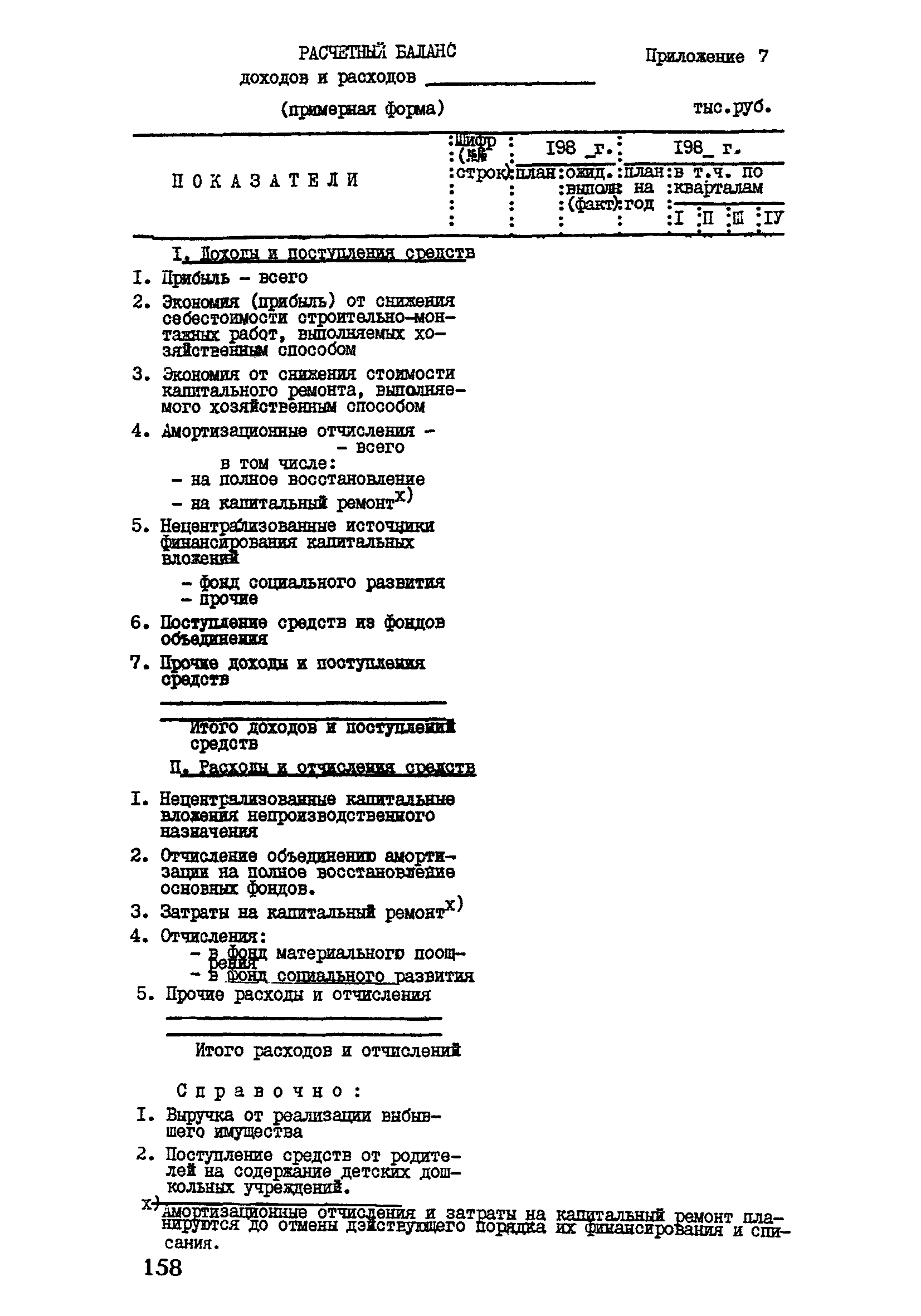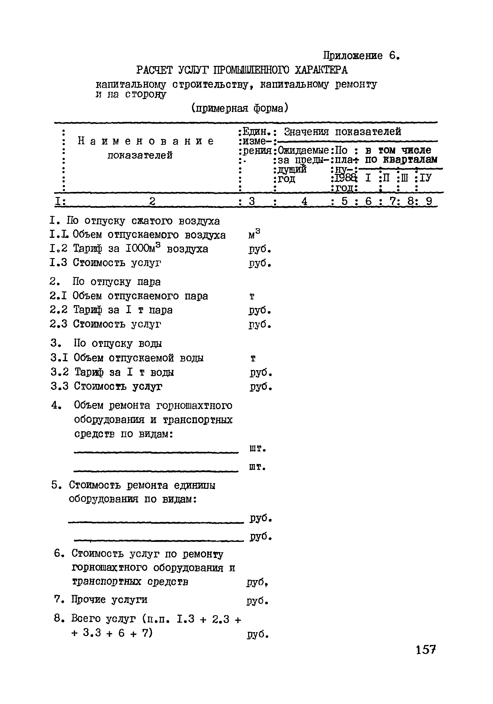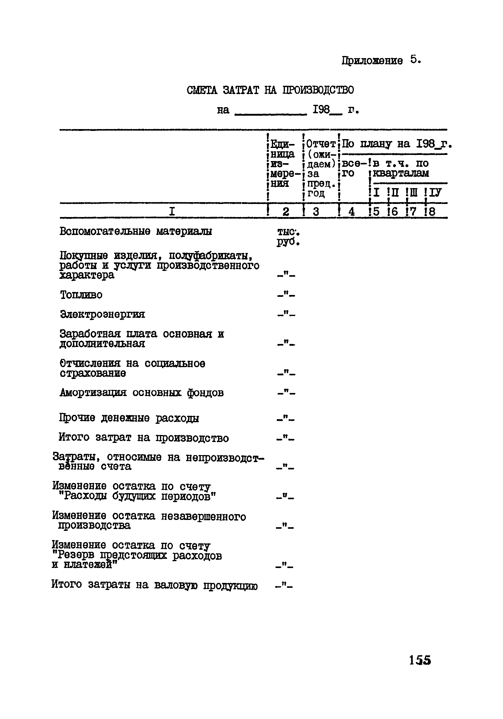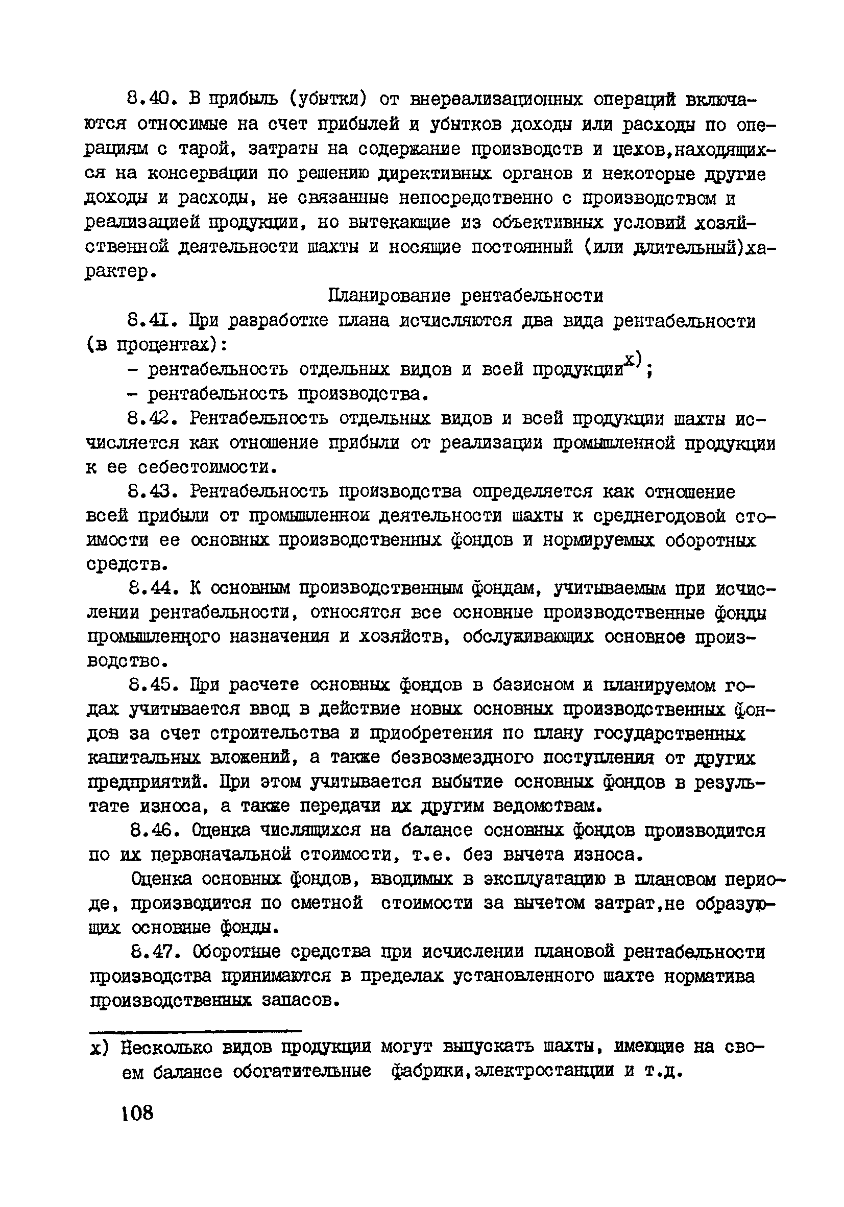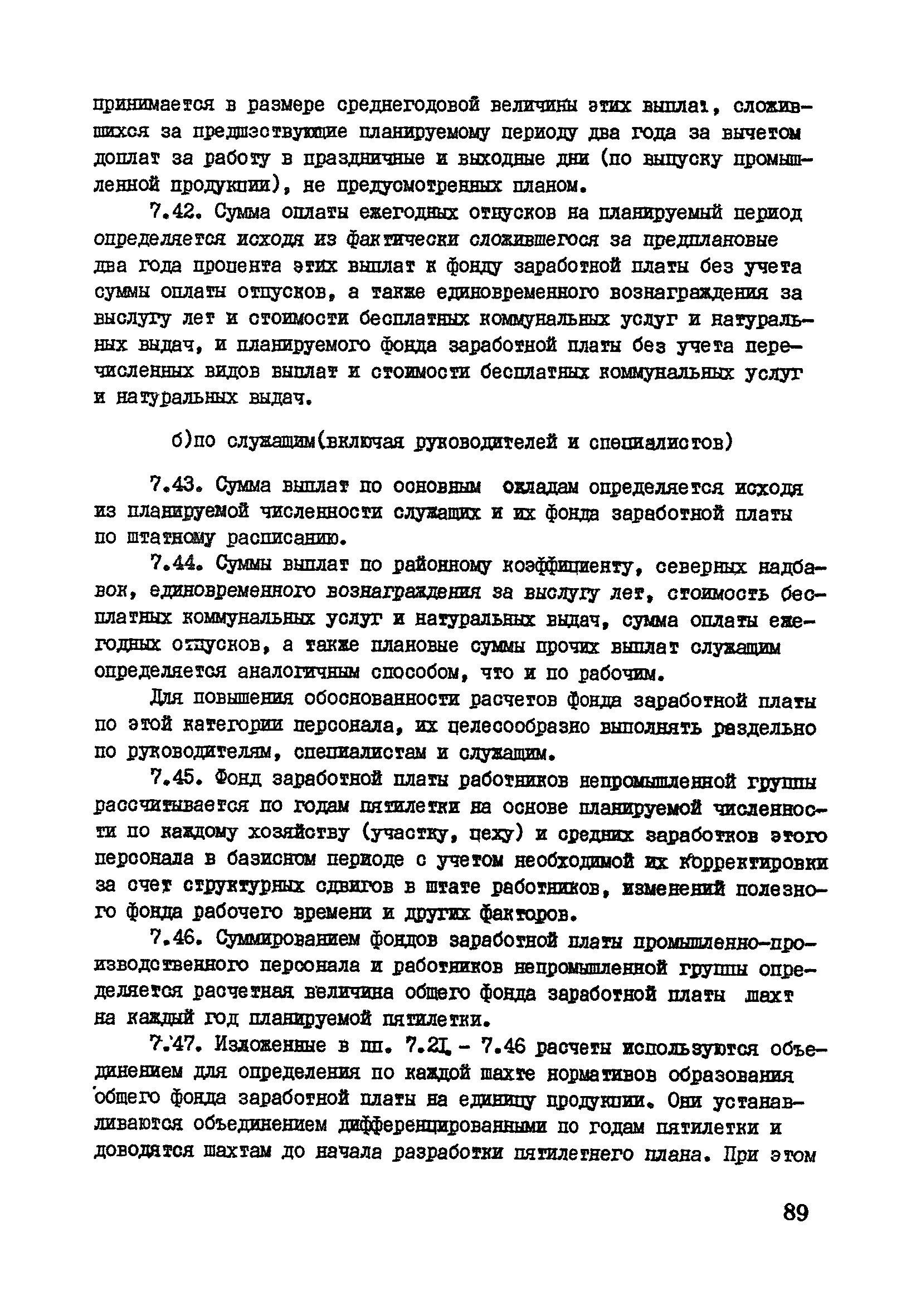 | Оглавление: | Введение Раздел 1. Основные организационно-методические положения Раздел 2. Планирование привоза продукции Раздел 3. Планирование технического развития производства Раздел 4. Планирование экономической эффективности производства Раздел 5. Планирование капитальных вложений Раздел 6. Планирование материально-технического обеспечения Раздел 7. Планирование труда и заработной платы Раздел 8. Планирование себестоимости, прибыли и рентабельности Раздел 9. Планирование фондов экономического стимулирования Раздел 10. Планирование социального развития коллектива Раздел 11. Планирование охраны окружающей среды и рационального использования природных ресурсов Раздел 12. Разработка финансового плана Раздел 13. Нормы и нормативы Приложение 1. Пример расчета средней продолжительности отпуска рабочих по добыче угла Приложение 2. Примеры расчета коэффициентов списочного состава рабочих по добыче угля, применяемых при разработке месячных планов Приложение 3. Коэффициенты списочного состава рабочих по добыче угля для различных режимов работы и различной продолжительности очередного отпуска, применяемые при разработке месячных планов Приложение 4. Расчет фонда заработной платы промышленно-производственного персонала по добыче угля по шахте (примерная форма) Приложение 5. Смета затрат на производство Приложение 6. Расчет услуг промышленного характера капитальному строительству, капитальному ремонту и на сторону (примерная форма) Приложение 7. Расчетный баланс расходов и доходов (примерная форма) Приложение 8. Перечень методических документов по расчету норм и нормативов для планирования на шахтах (по состоянию на 01.02.89) Приложение 9. Перечень нормативных документов по расчету норм и нормативов, подлежащих разработке и обновлению в 1989 - 1990 гг. |