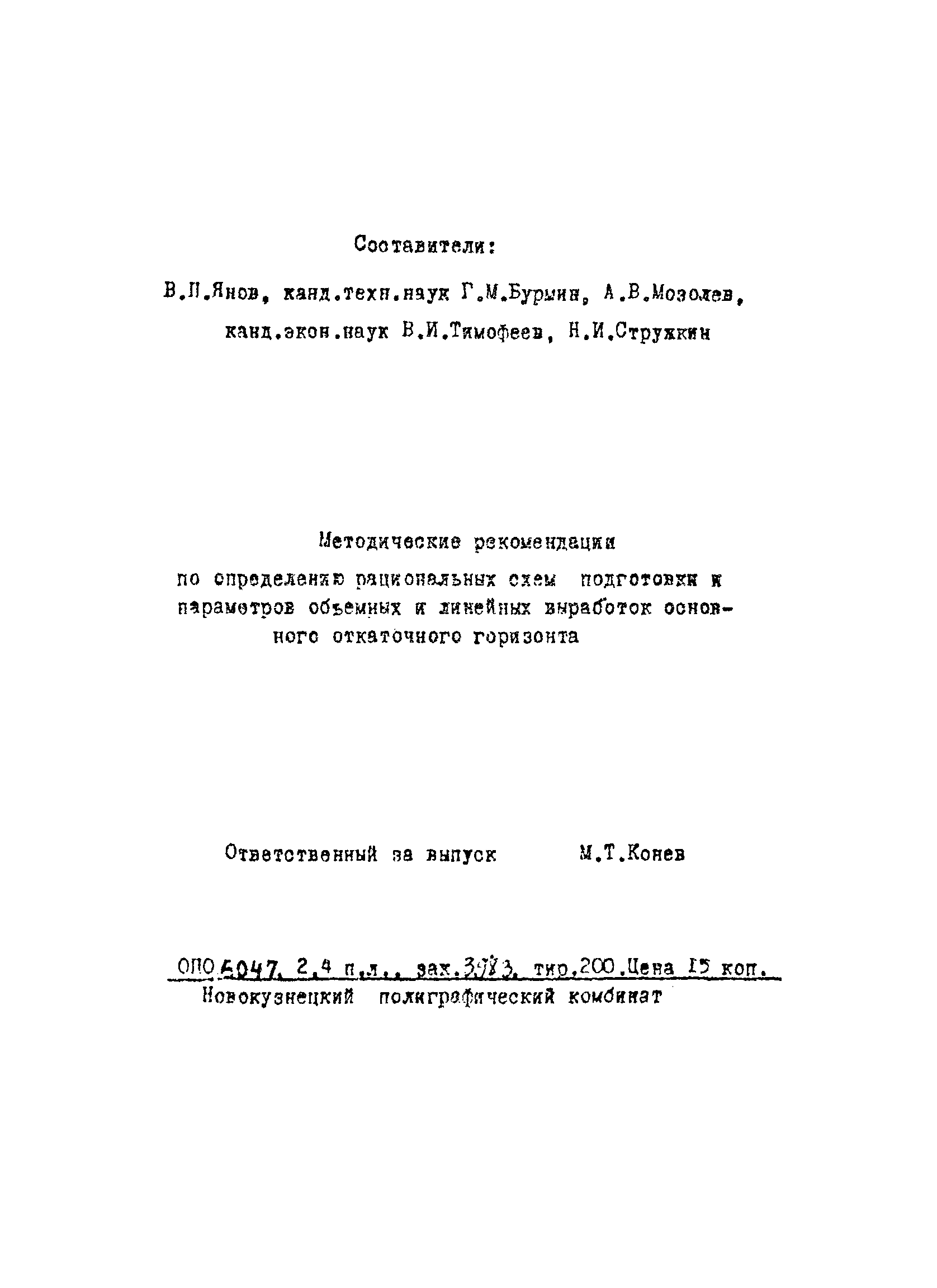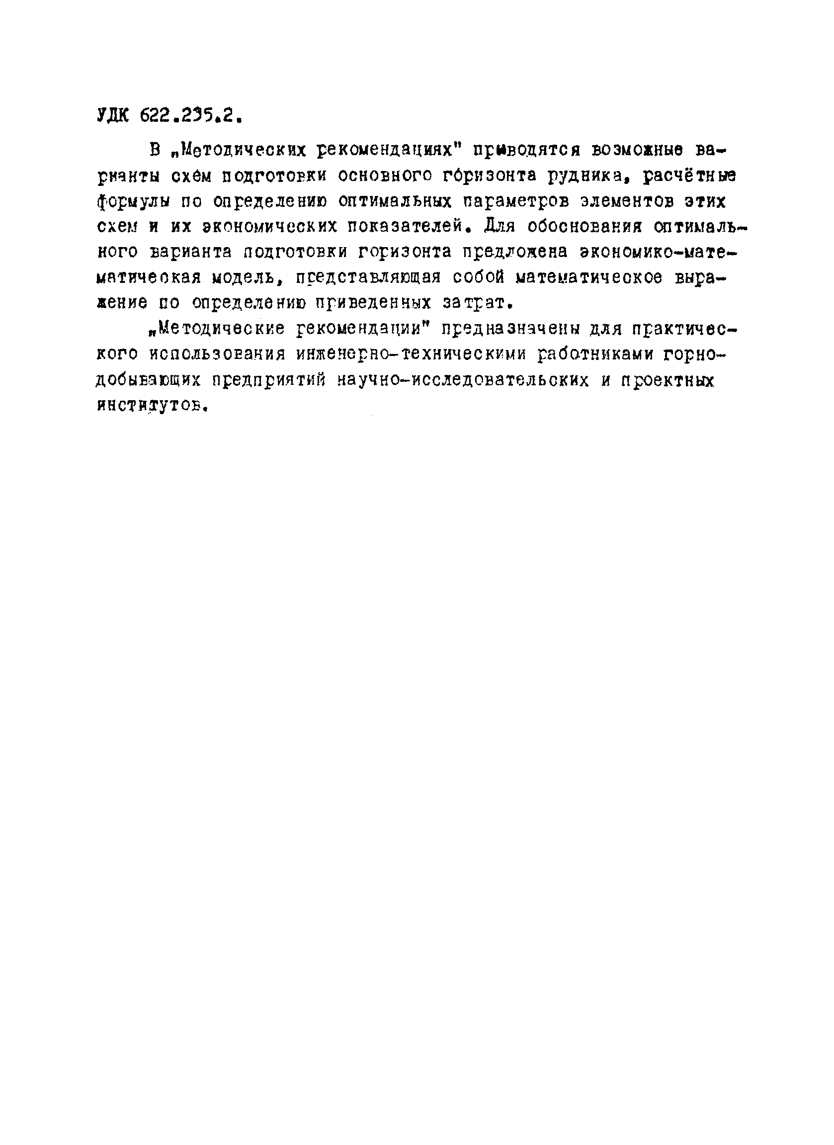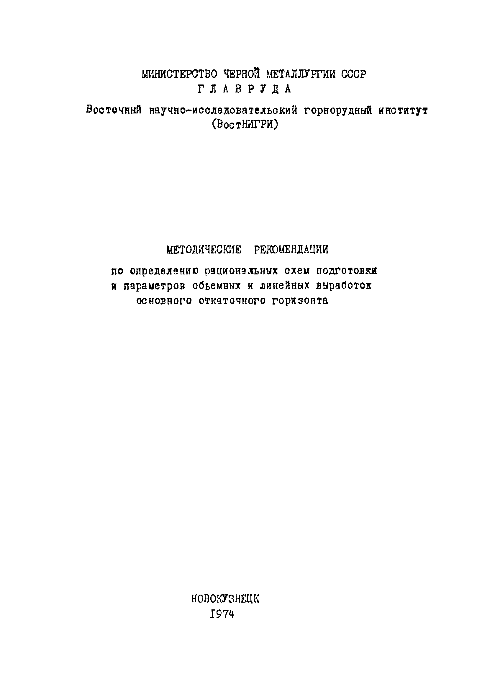 подготовки рудных тел большой мощности Определение рациональных параметров объемных и