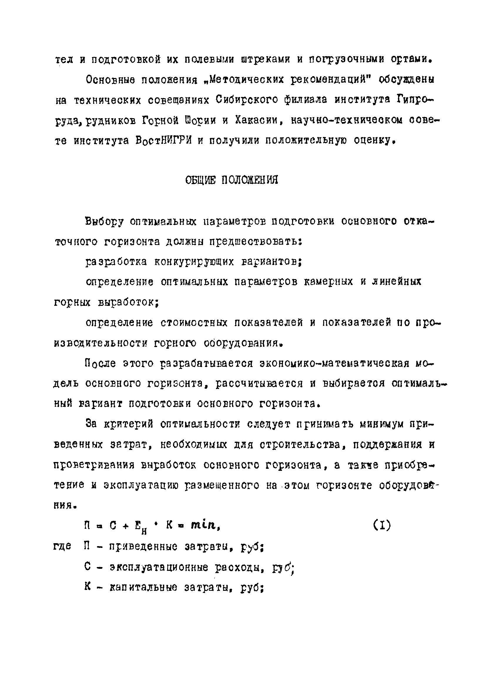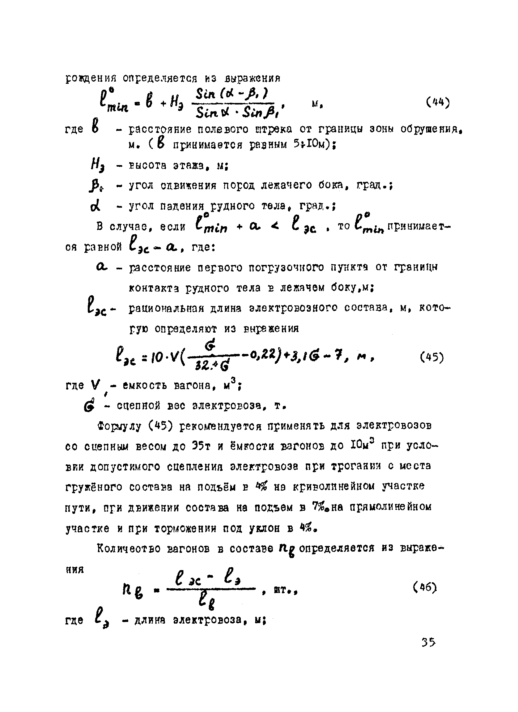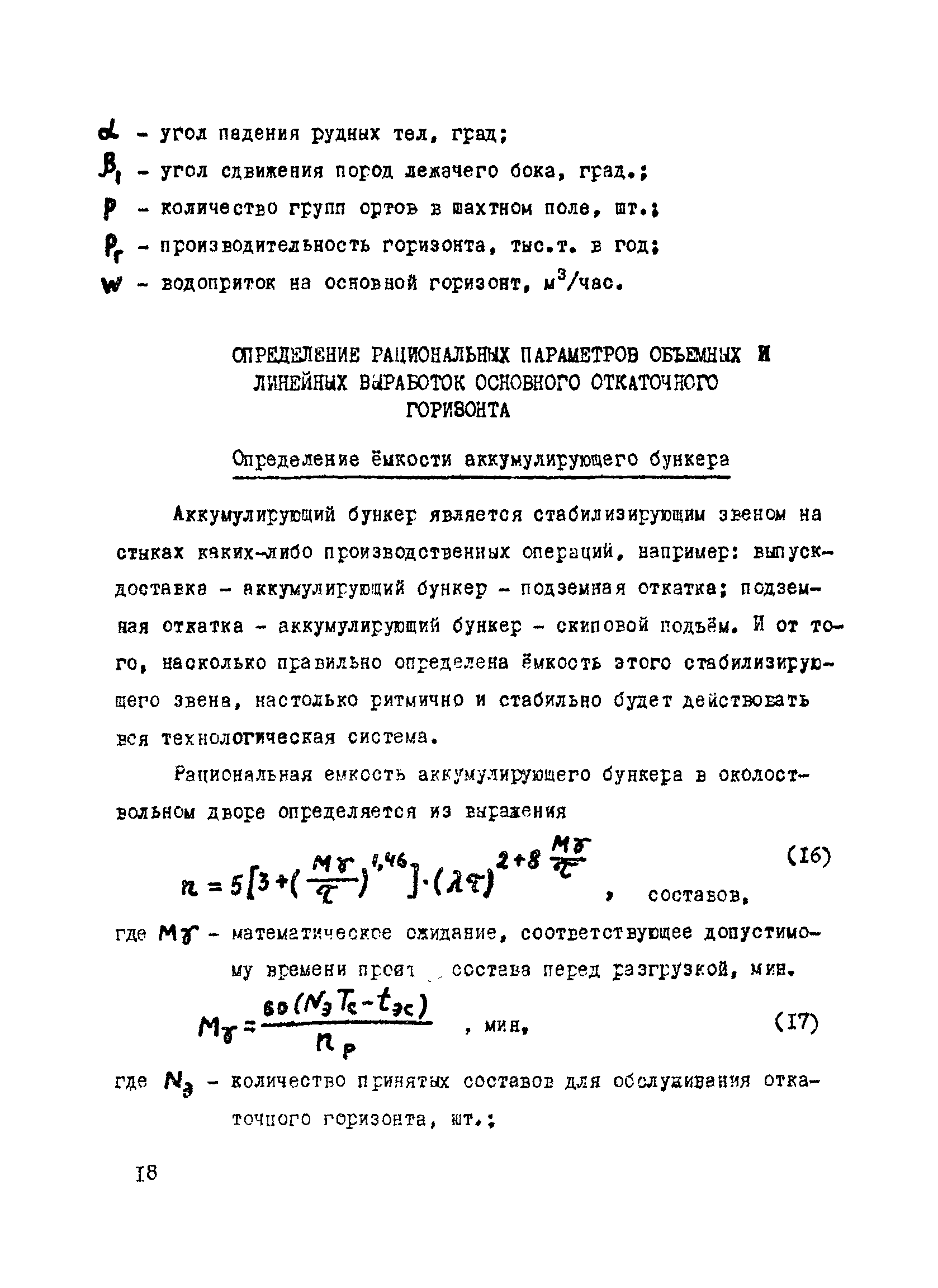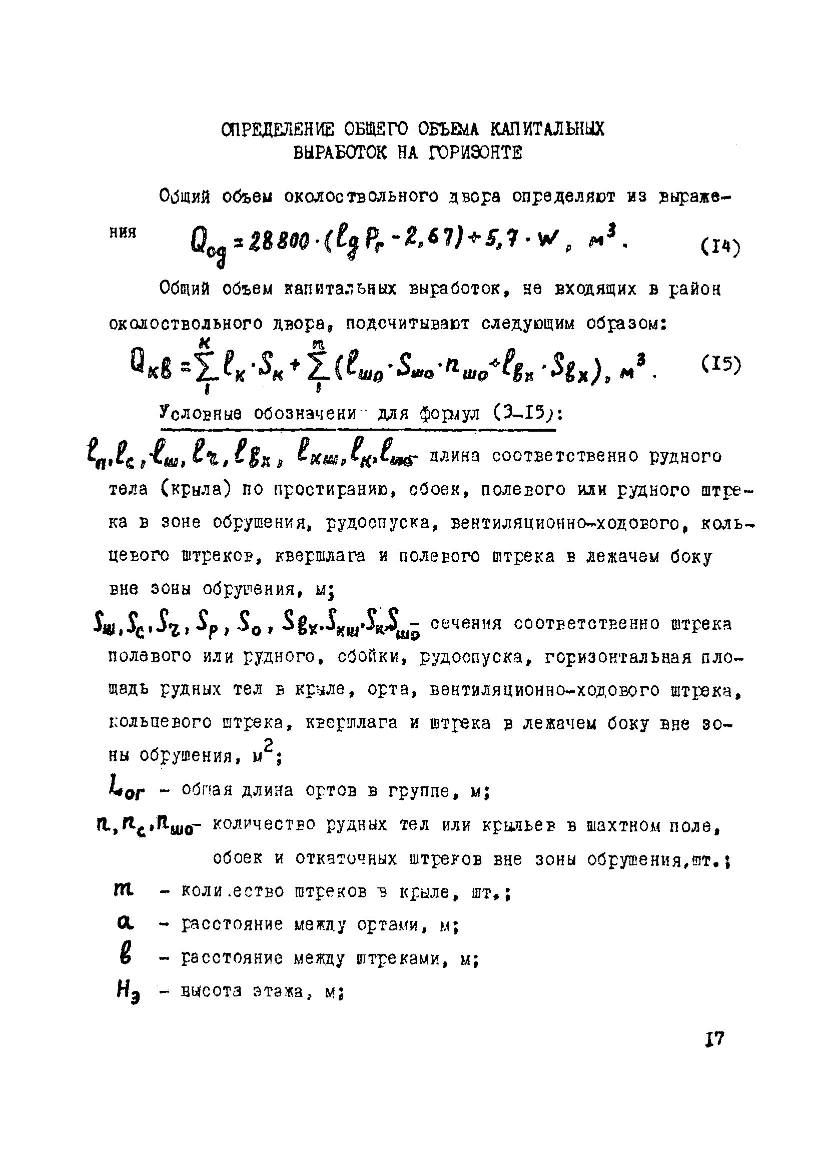 горизонта рудника, расчетные формулы по определению оптимальных параметров элементов этих