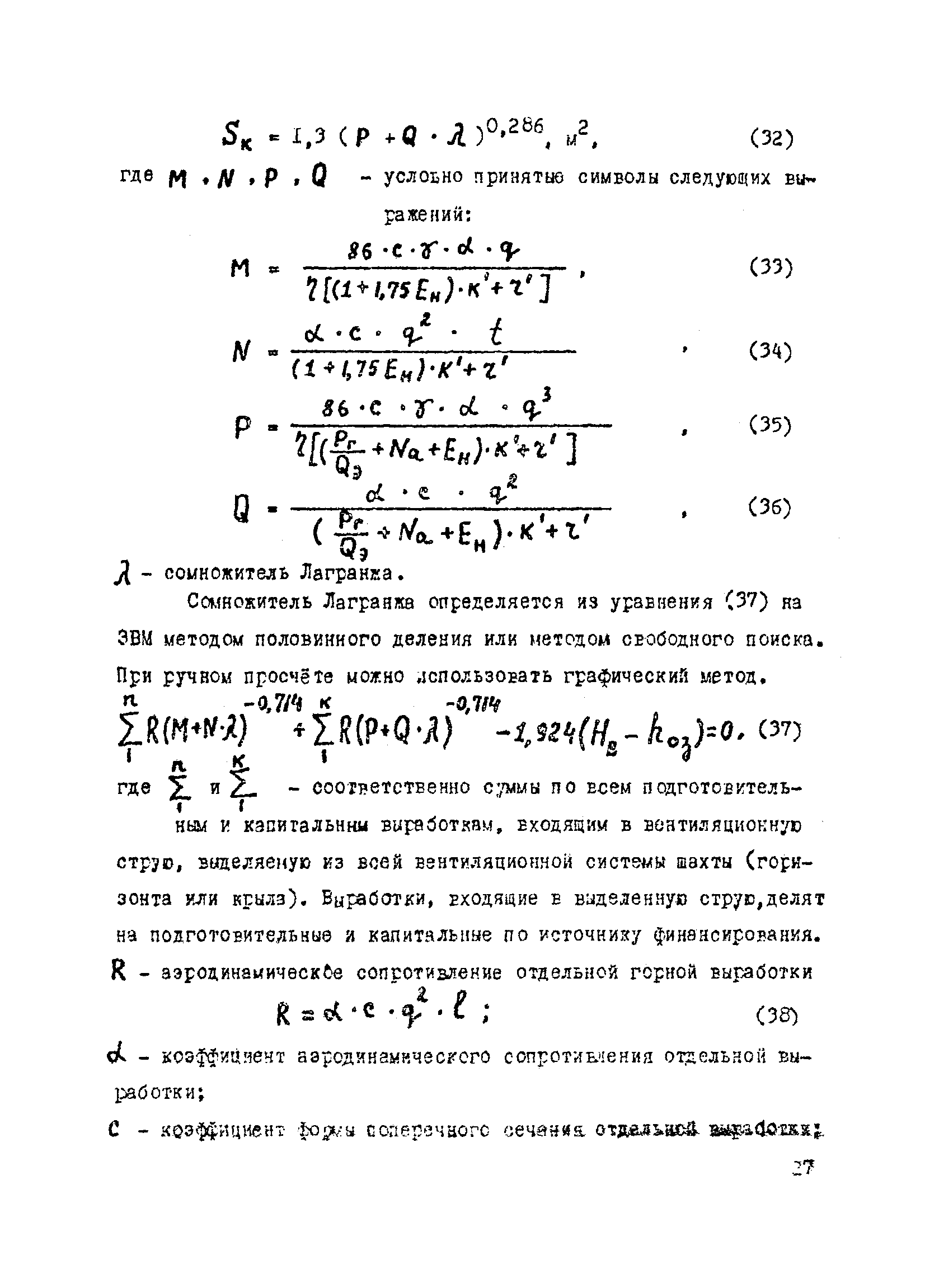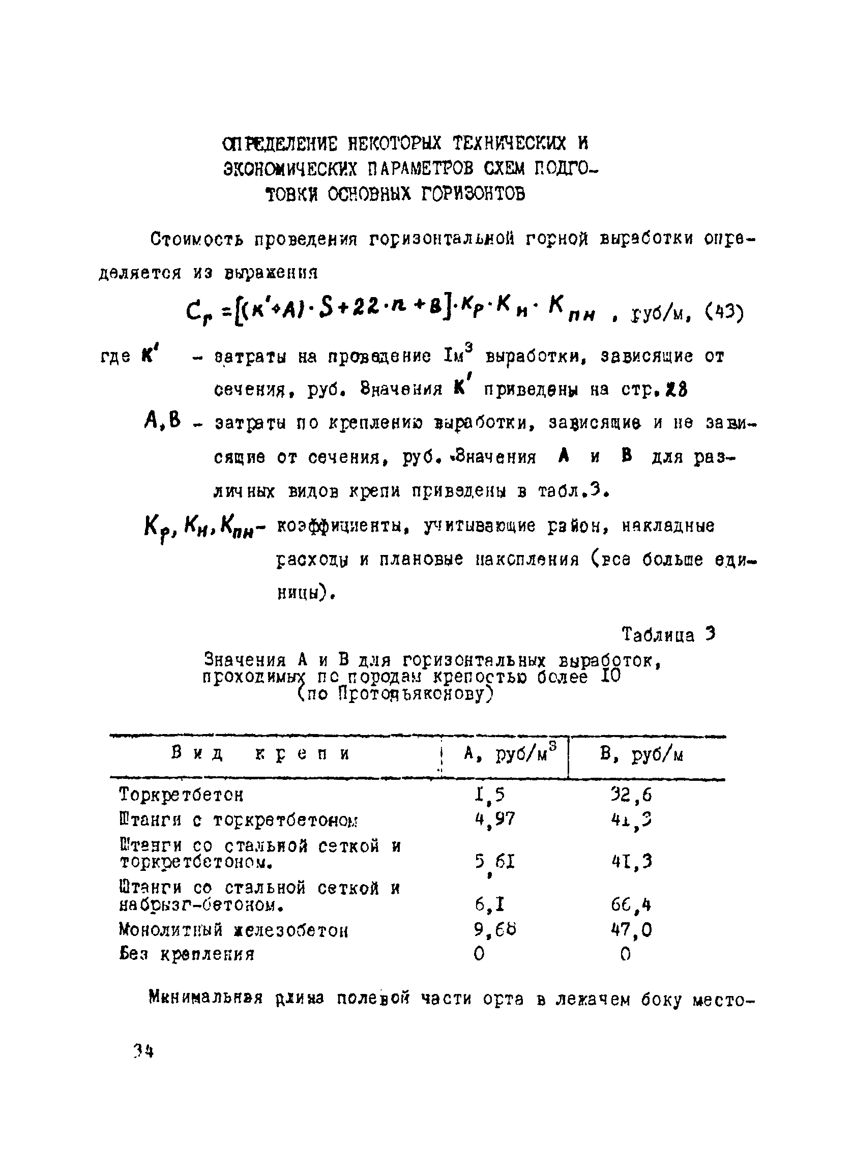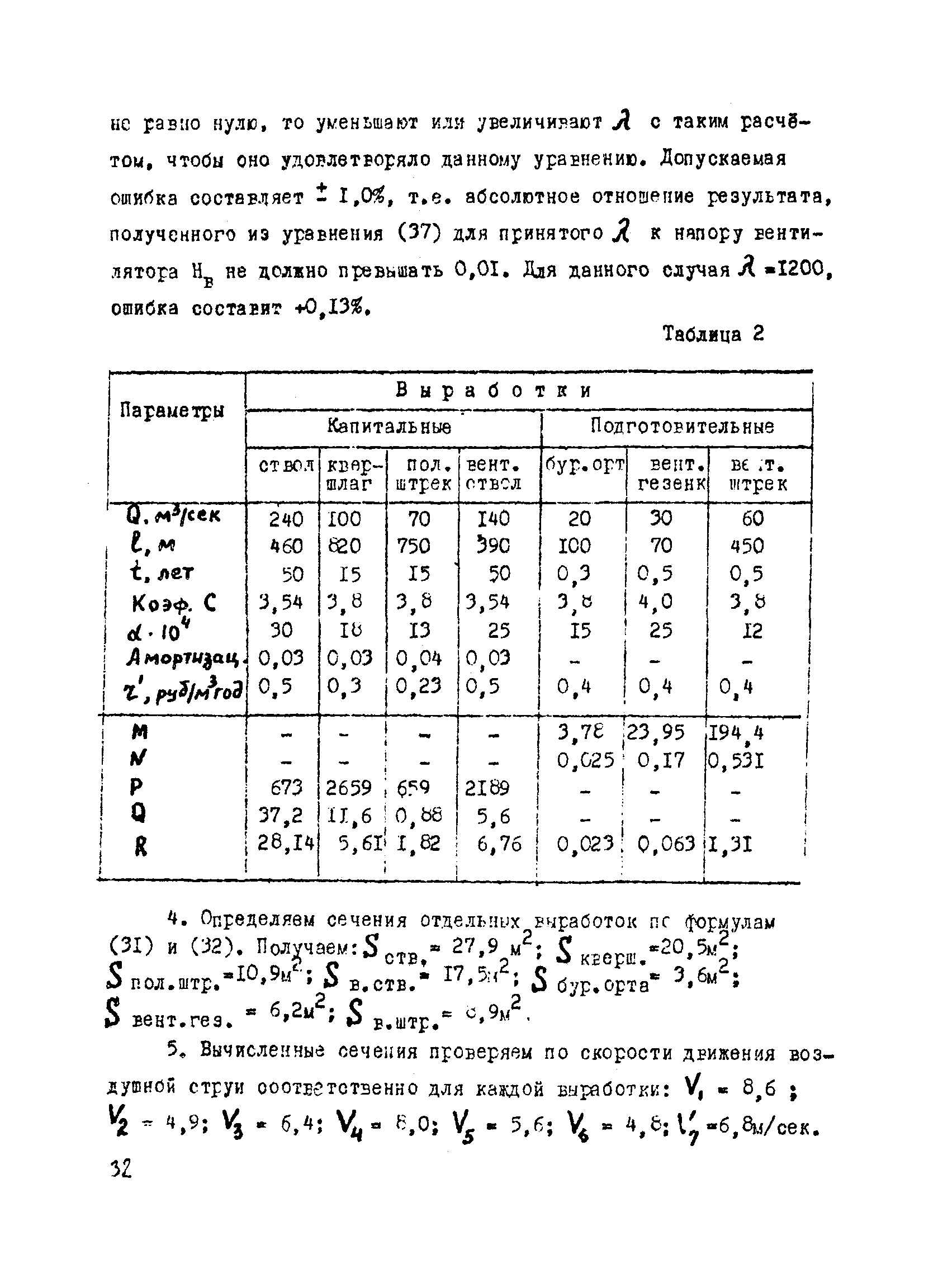 оптимальных сечений линейных горных выработок Определение некоторых технических и