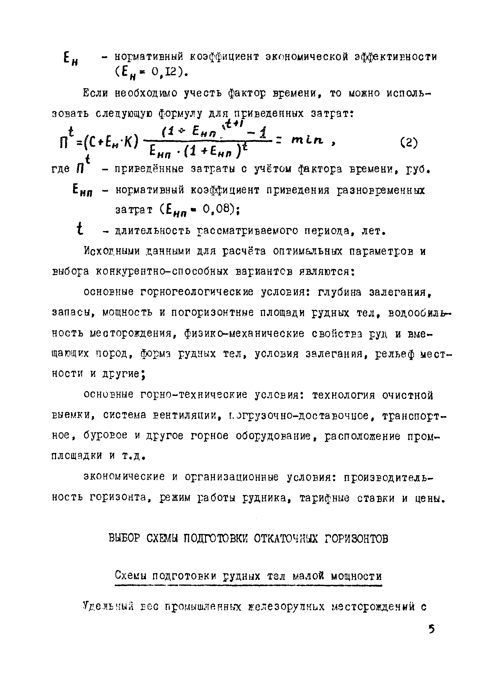 экономических параметров схем подготовки основных горизонтов Выбор оптимального варианта