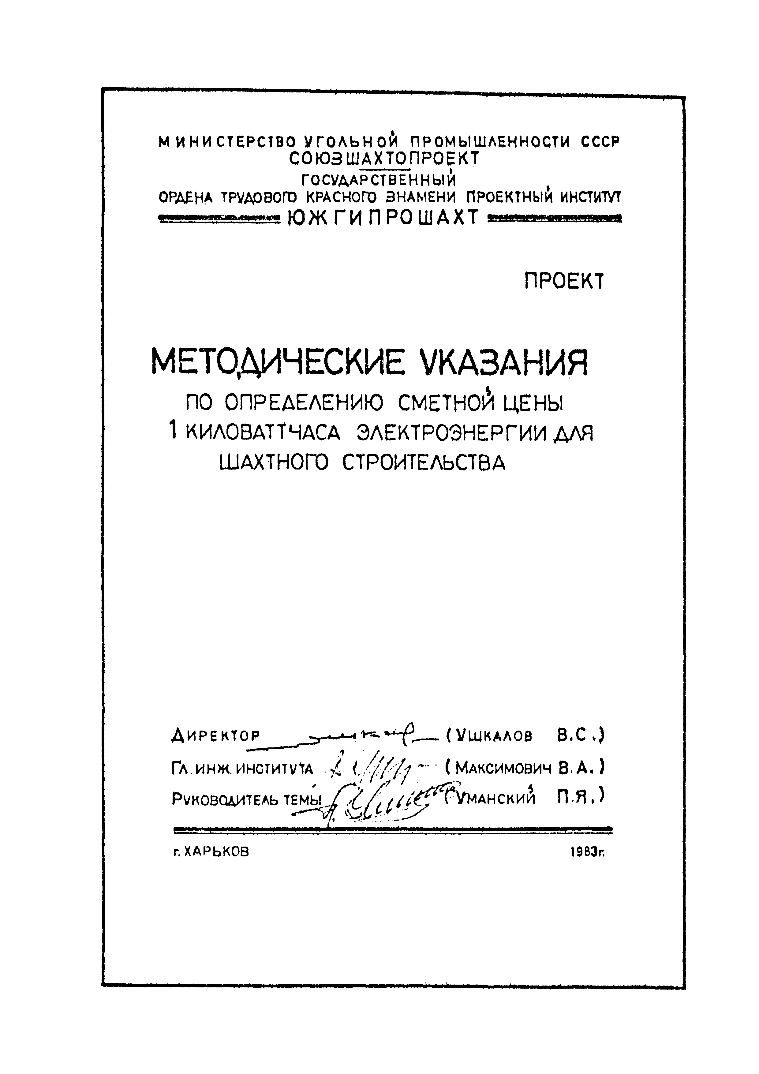 | Утверждён: | Южгипрошахт Минуглепрома СССР