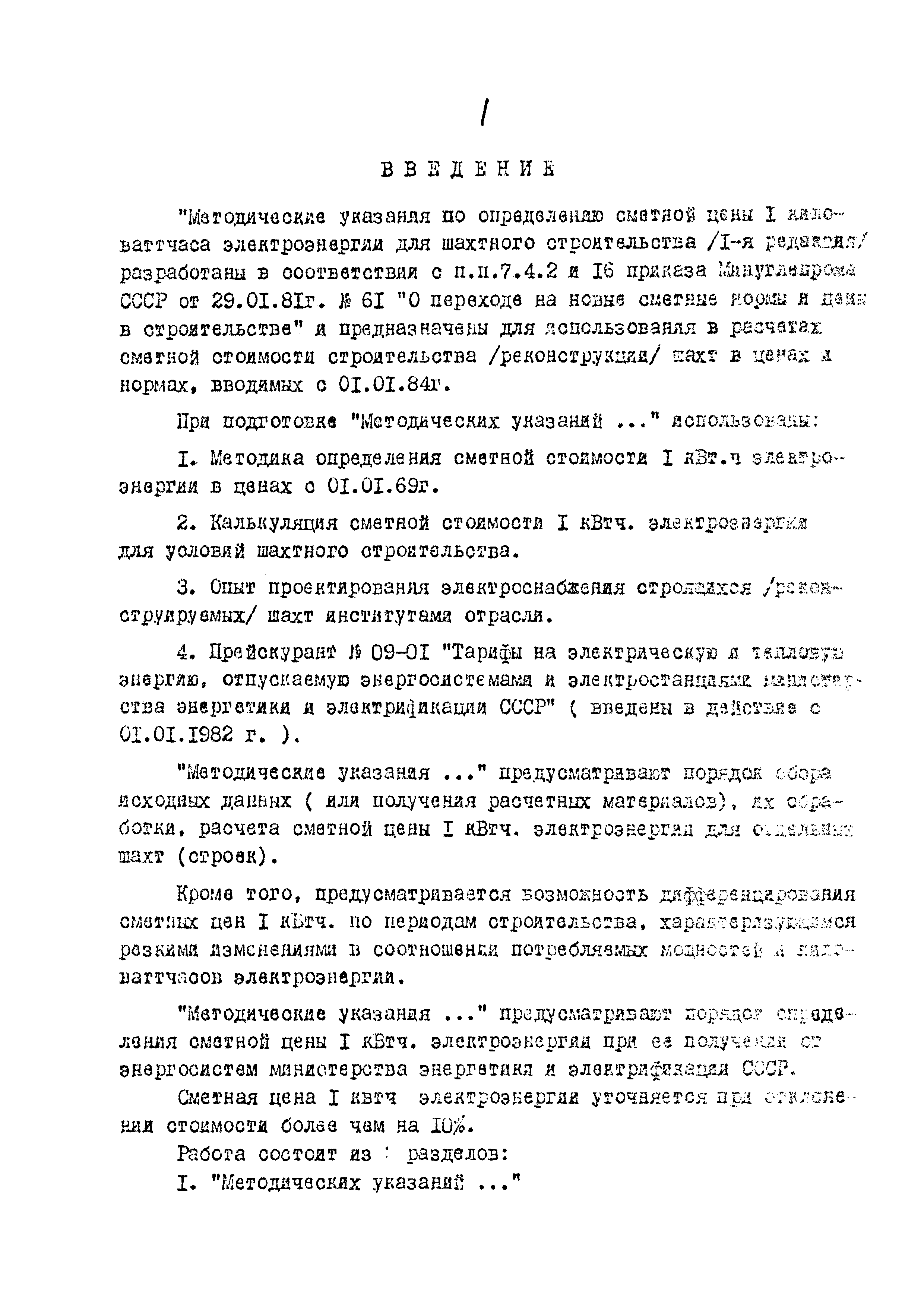 | Название рус.: | Методические указания по определению сметной цены 1 киловаттчаса электроэнергии для шахтного строительства |