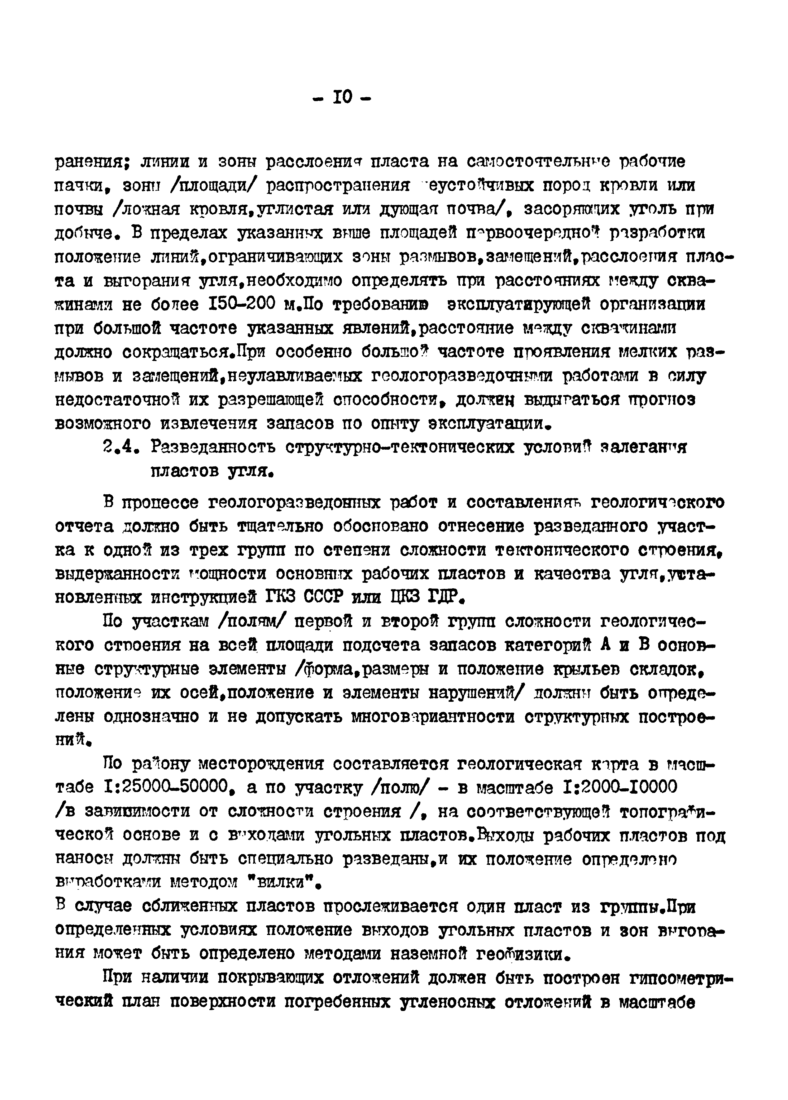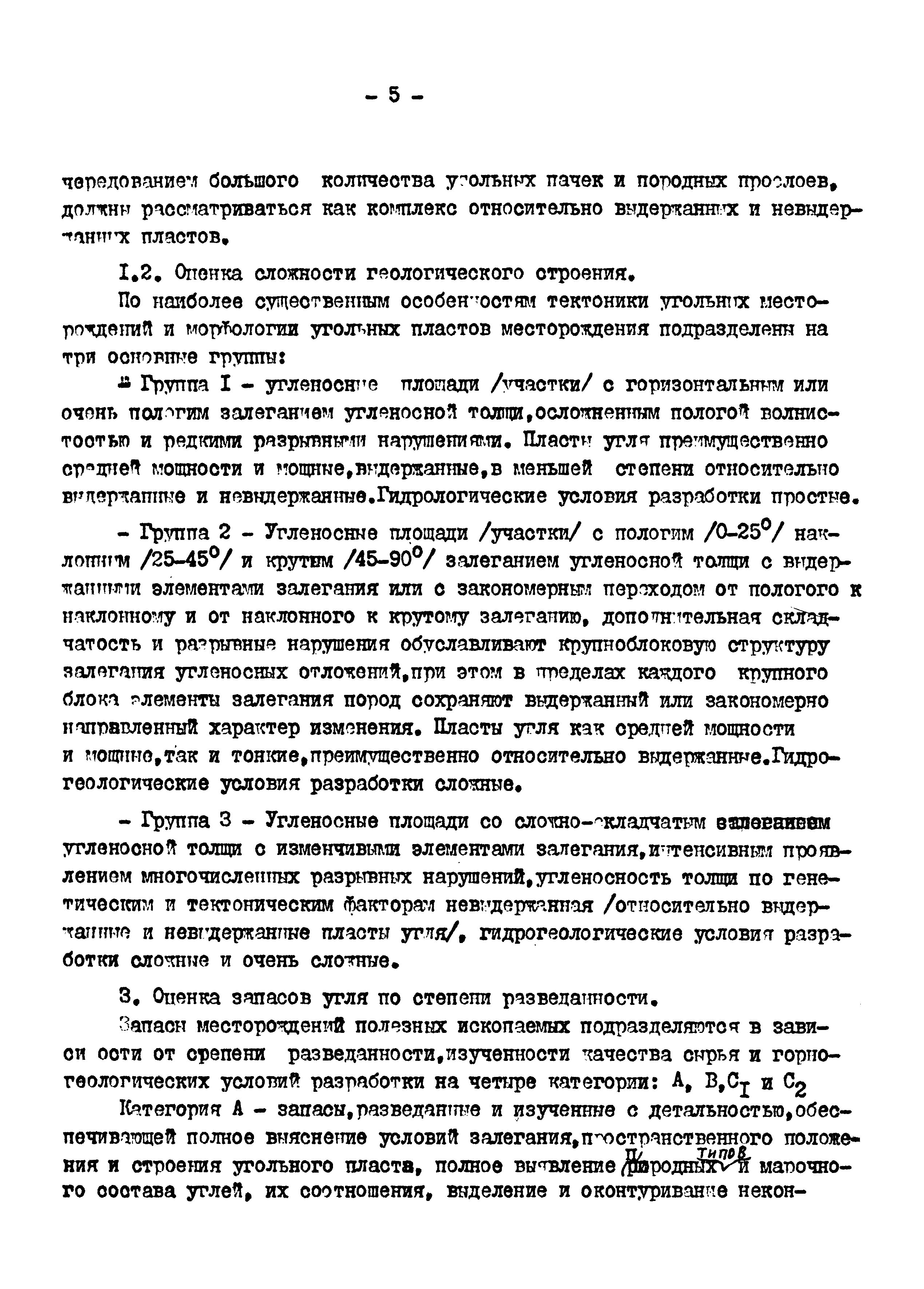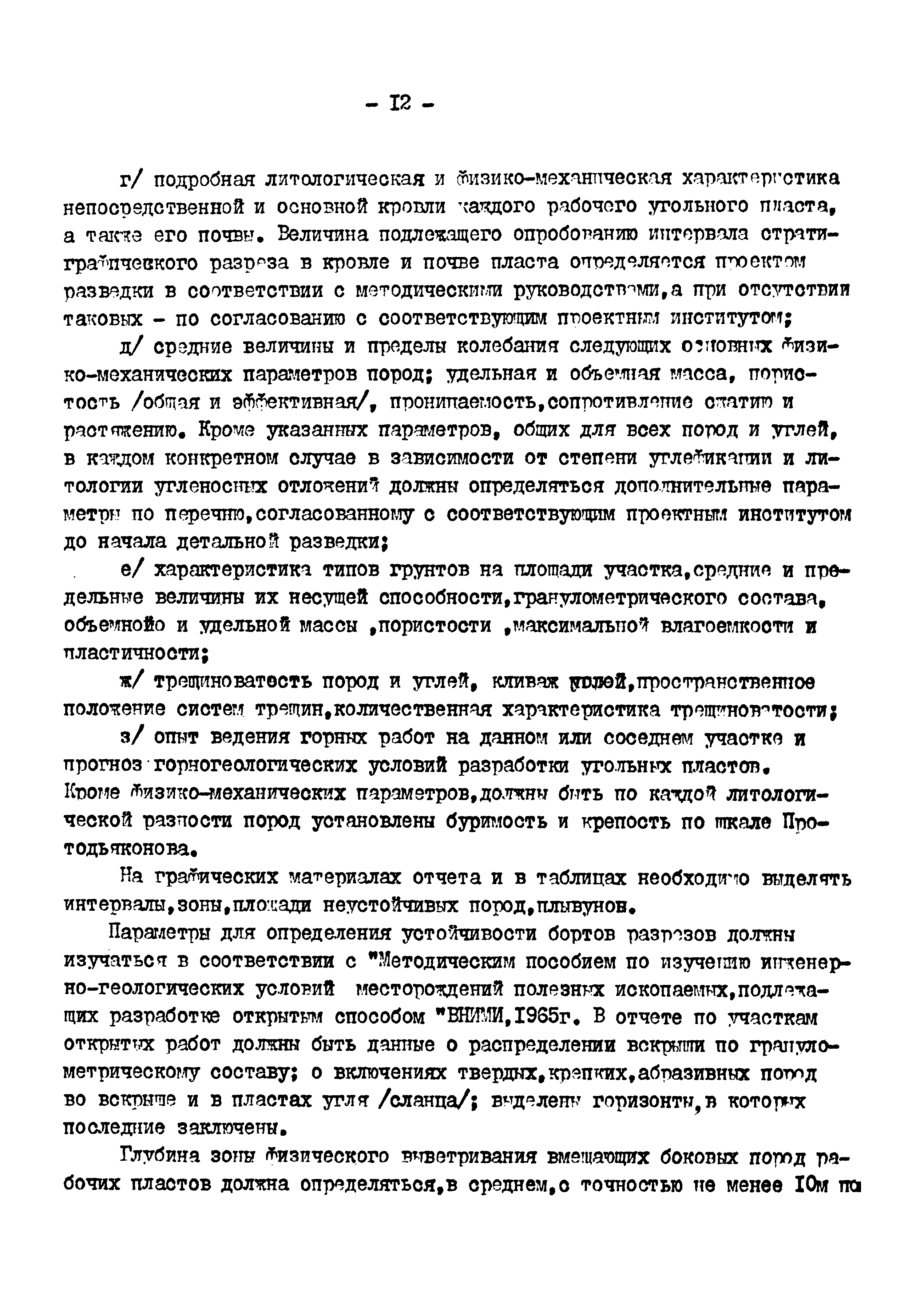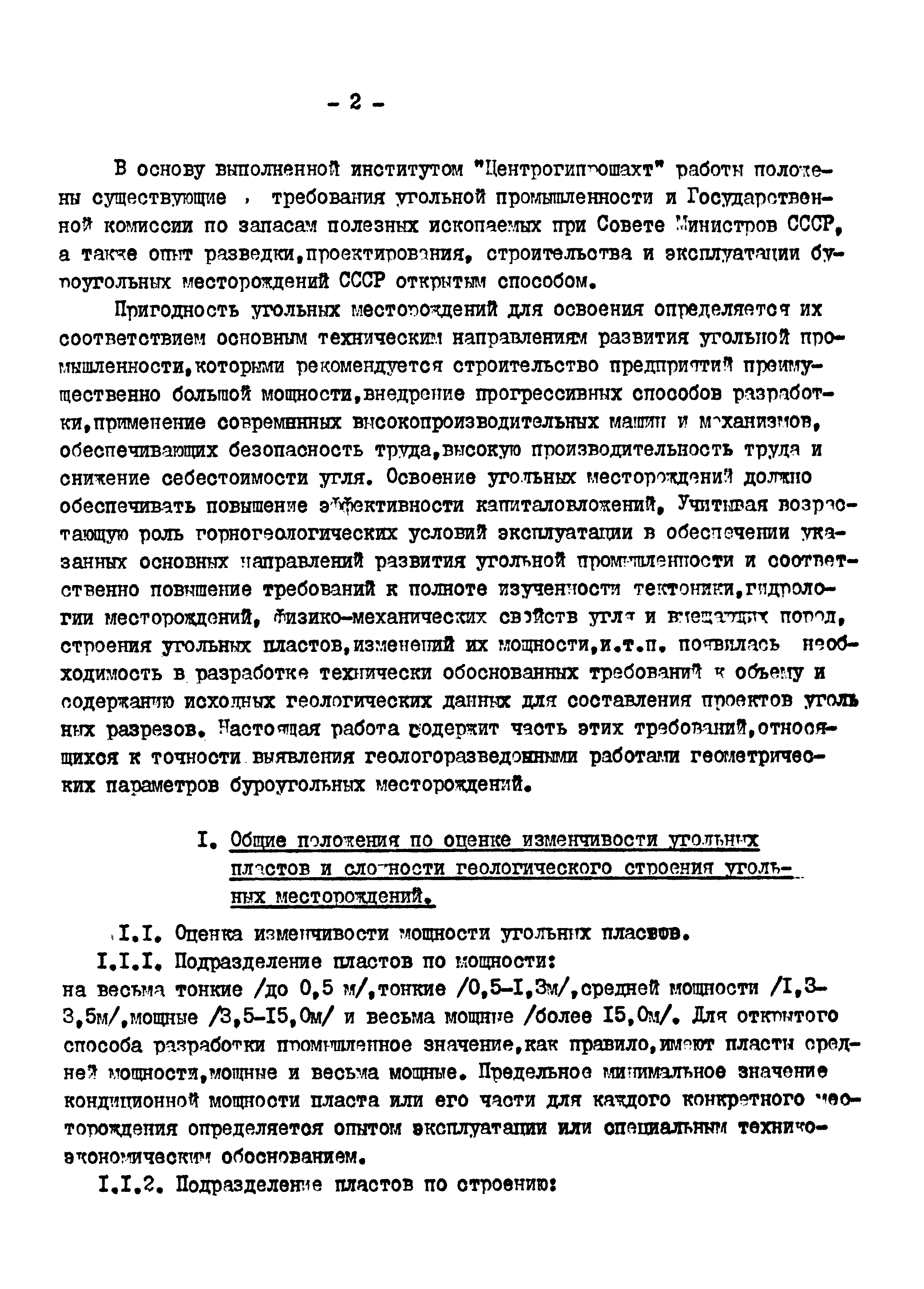 Инструктивные указания по точности выявления геологоразведочными работами геометрических параметров буроугольных месторождений| Статус: | справочные материалы, мп, тпр | | Название рус.: | Инструктивные указания по точности выявления геологоразведочными работами геометрических параметров буроугольных месторождений | | Дата добавления в базу: | 01.01.2019 | | Дата актуализации: | 01.01.2021 | | Оглавление: | 1 Общие положения по оценке изменчивости угольных пластов и сложности геологического строения угольных месторождений 1.1 Оценка изменчивости мощности угольных пластов 1.2 Оценка сложности геологического строения 1.3 Оценка запасов угля по степени разведанности 2 Требования к разведанности угольных месторождений 2.1 Общие положения 2.2 Размещение и распространение разведанных запасов на поле углеразреза 2.3 Разведанность строения и мощности пласта угля 2.4 Разведанность структурно-тектонических условий залегания пластов угля 2.5 Изученность литологического состава, физико-механических свойств вмещающих пород и прогноз степени их устойчивости 2.6 Прогноз гидрогеологических условий разработки пластов угля и притока воды в горные выработки, методы осушения 2.7 Прогноз газоносности, склонности углей к самовозгоранию, силикозоопасности пород 3 Требования к изучению качества угля 4 Перечень основных геологических материалов используемых для проектирования | | Разработан: | Центрогипрошахт