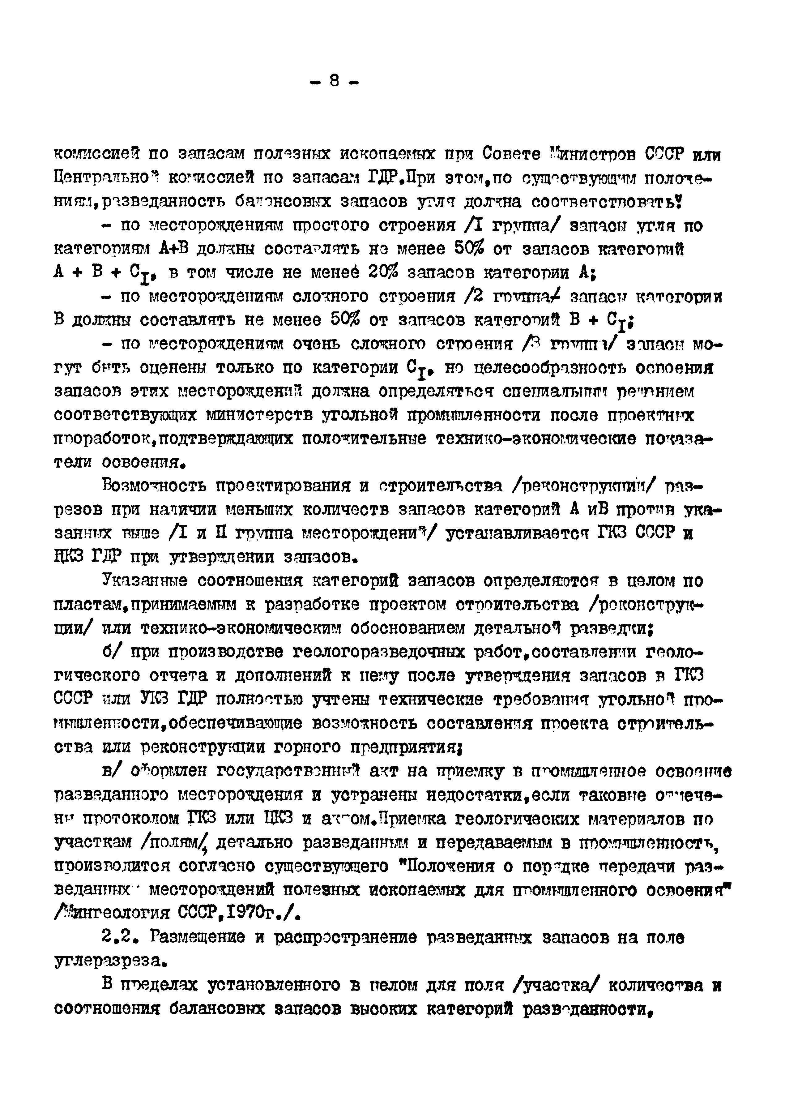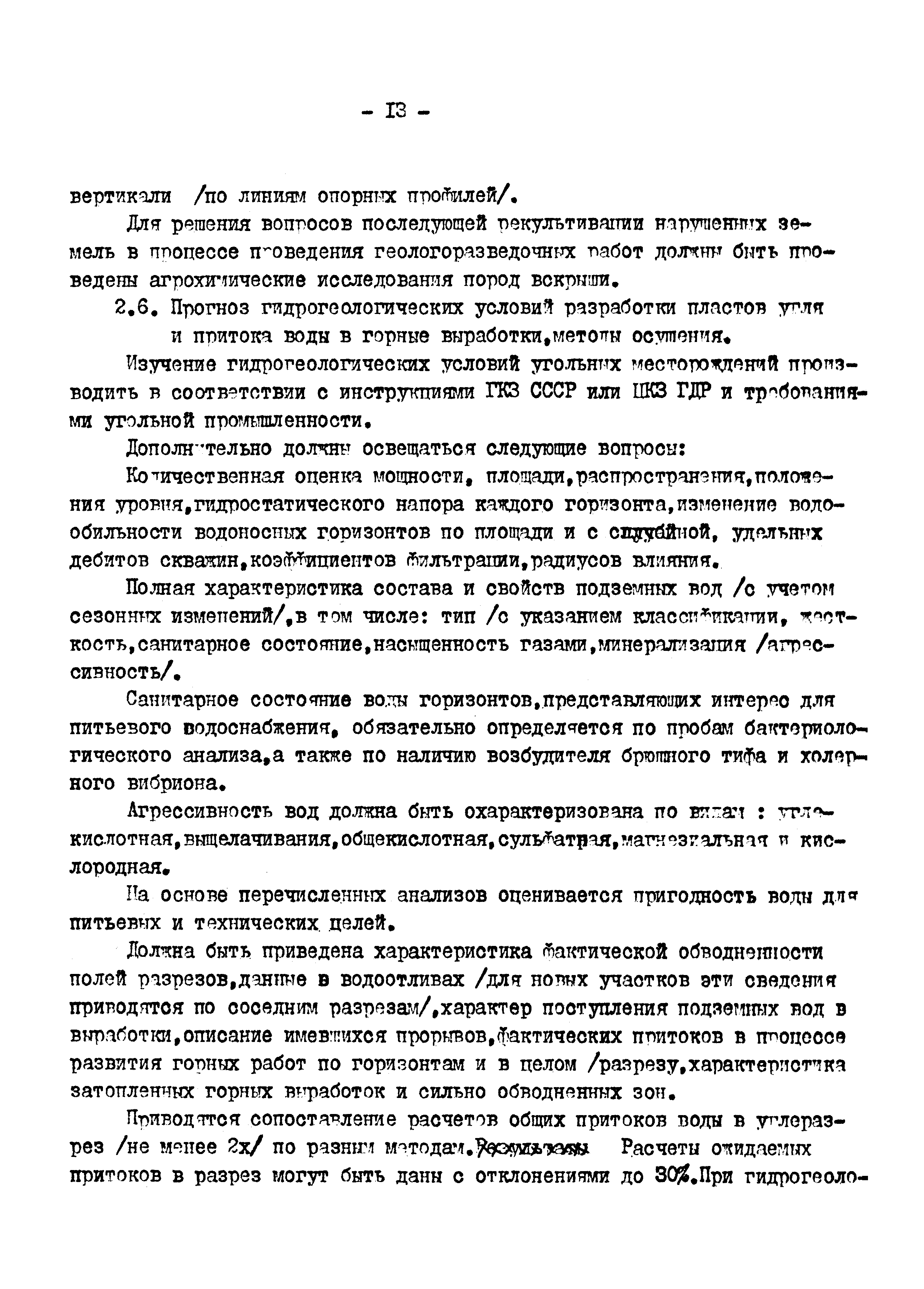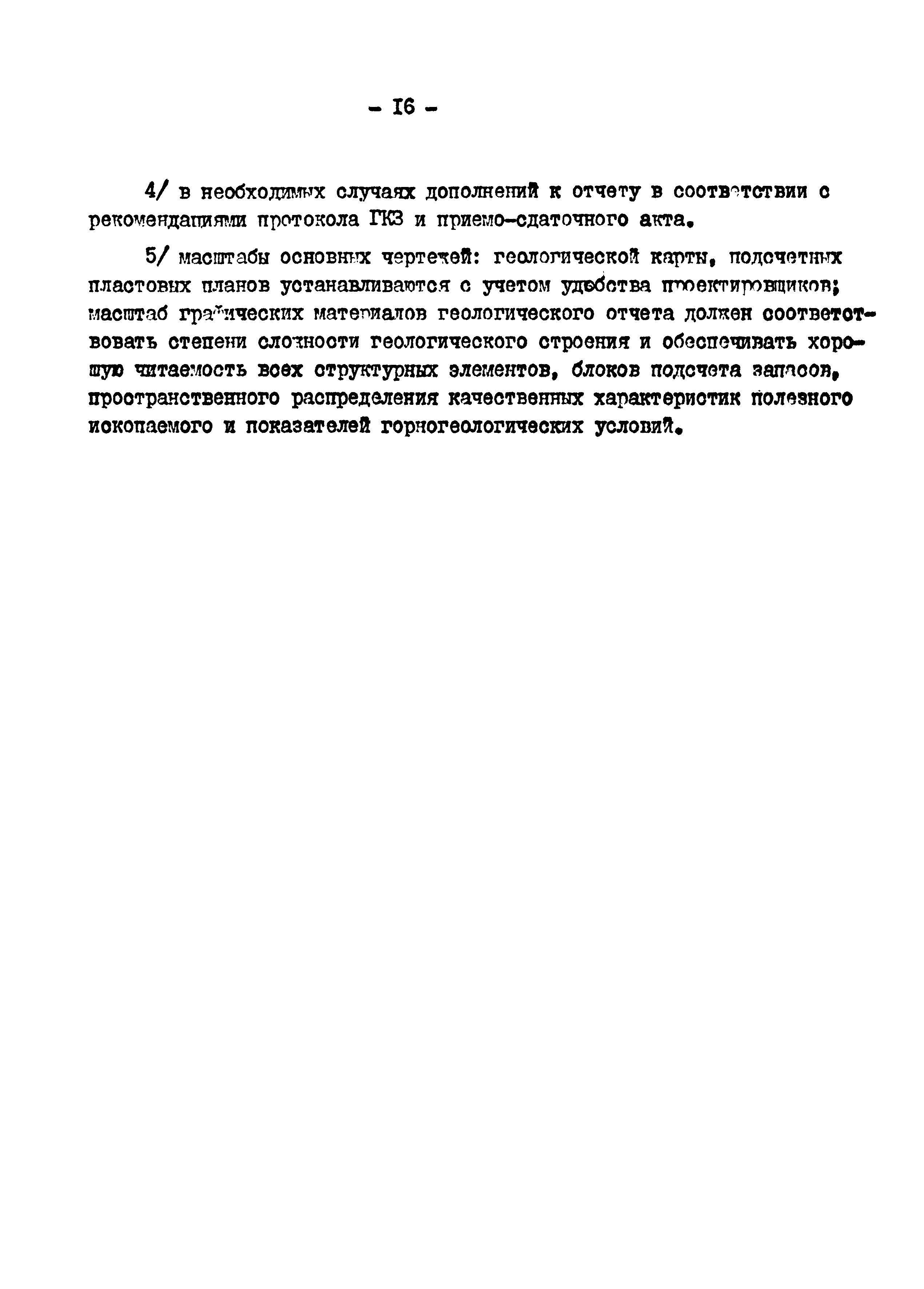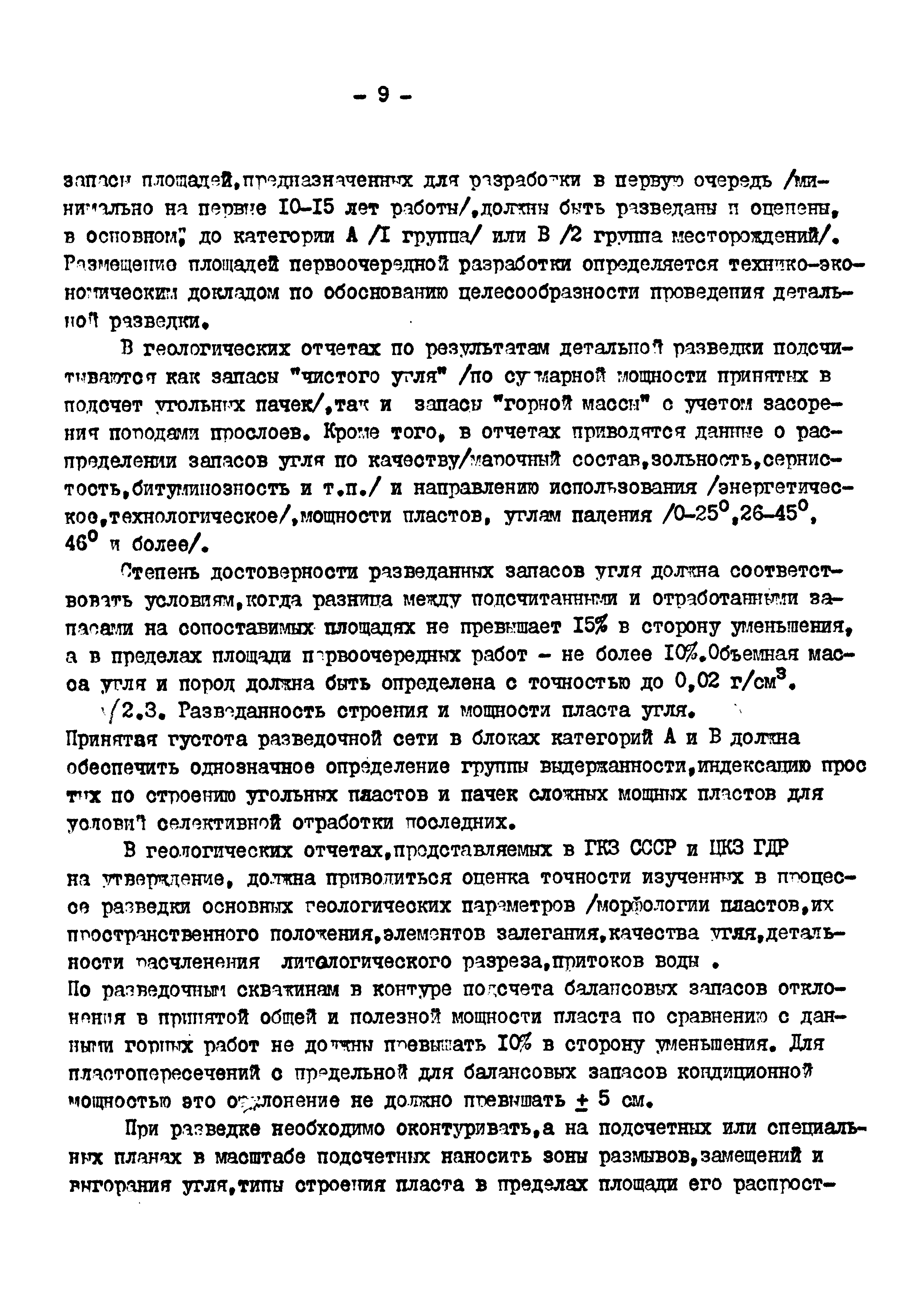 Инструктивные указания по точности выявления геологоразведочными работами геометрических параметров буроугольных месторождений| Статус: | справочные материалы, мп, тпр | | Название рус.: | Инструктивные указания по точности выявления геологоразведочными работами геометрических параметров буроугольных месторождений | | Дата добавления в базу: | 01.01.2019 | | Дата актуализации: | 01.01.2021 | | Оглавление: | 1 Общие положения по оценке изменчивости угольных пластов и сложности геологического строения угольных месторождений 1.1 Оценка изменчивости мощности угольных пластов 1.2 Оценка сложности геологического строения 1.3 Оценка запасов угля по степени разведанности 2 Требования к разведанности угольных месторождений 2.1 Общие положения 2.2 Размещение и распространение разведанных запасов на поле углеразреза 2.3 Разведанность строения и мощности пласта угля 2.4 Разведанность структурно-тектонических условий залегания пластов угля 2.5 Изученность литологического состава, физико-механических свойств вмещающих пород и прогноз степени их устойчивости 2.6 Прогноз гидрогеологических условий разработки пластов угля и притока воды в горные выработки, методы осушения 2.7 Прогноз газоносности, склонности углей к самовозгоранию, силикозоопасности пород 3 Требования к изучению качества угля 4 Перечень основных геологических материалов используемых для проектирования | | Разработан: | Центрогипрошахт