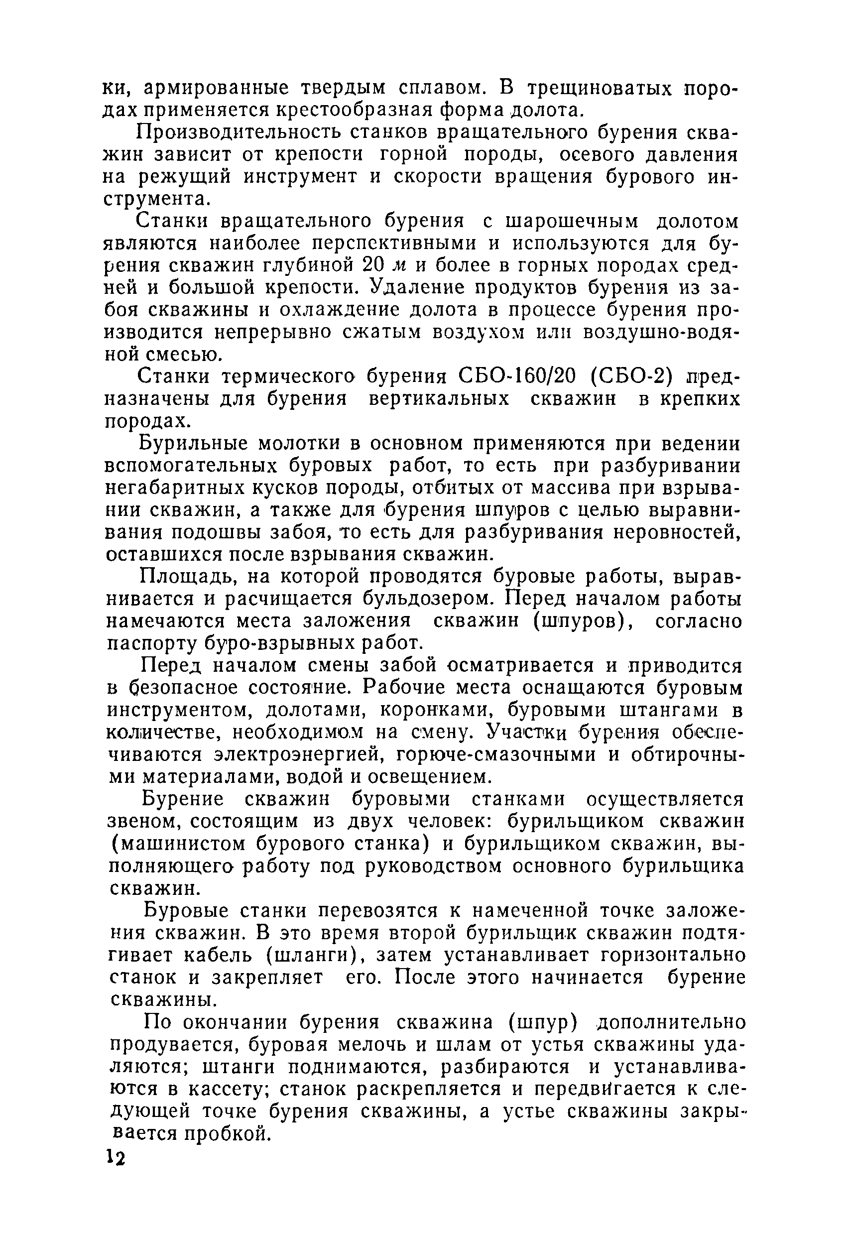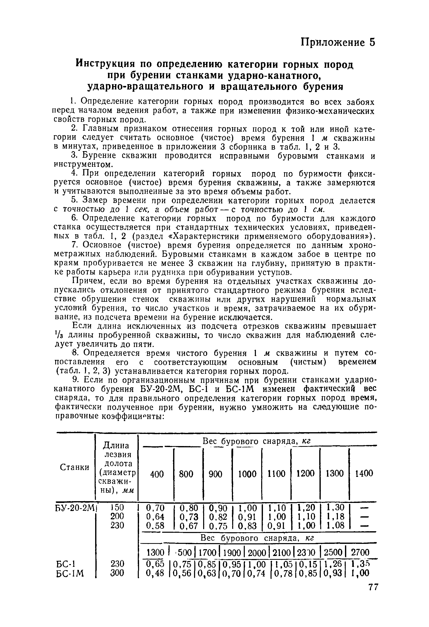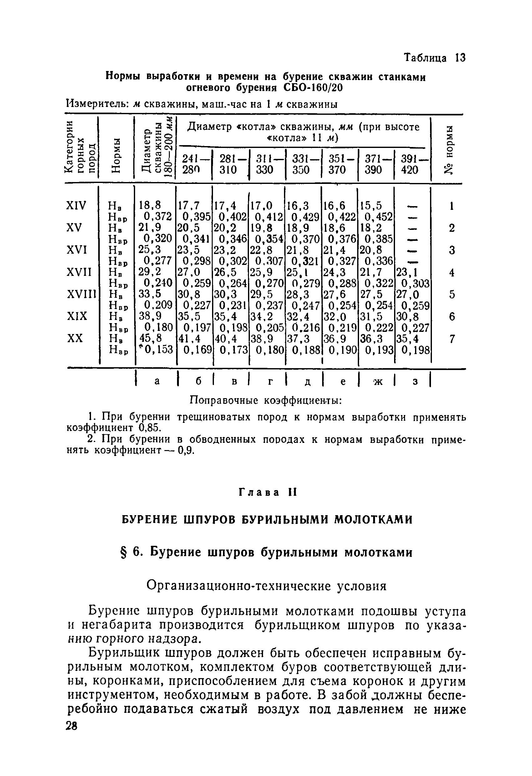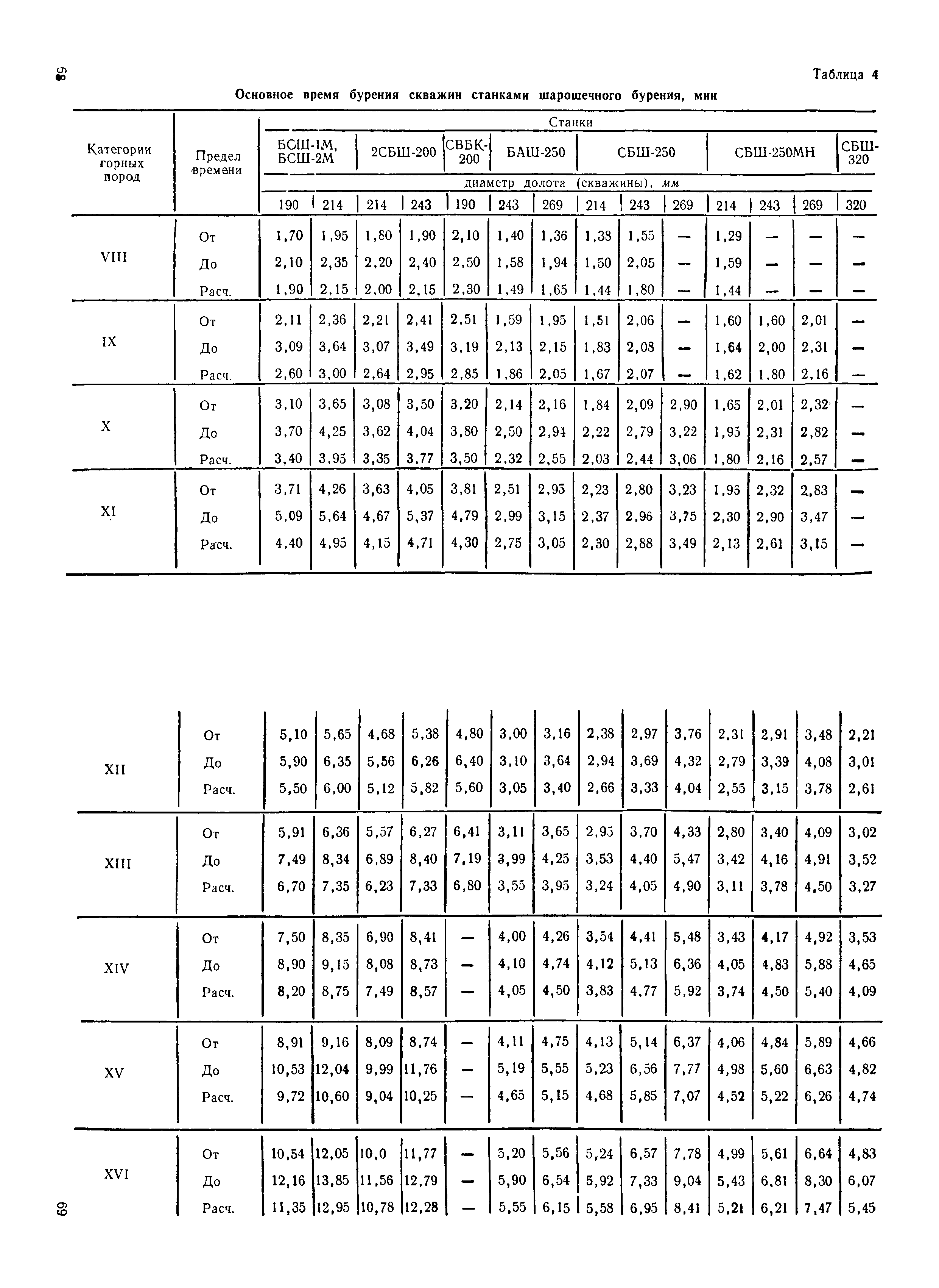 Единые нормы выработки (времени) на открытые горные работы для предприятий горнодобывающей промышленности. Бурение| Статус: | не действует | | Название рус.: | Единые нормы выработки (времени) на открытые горные работы для предприятий горнодобывающей промышленности. Бурение | | Дата добавления в базу: | 01.01.2019 | | Дата актуализации: | 01.01.2021 | | Область применения: | Документ содержит нормы выработки (времени) и нормативы на бурение скважин станками ударно-канатного, ударно-вращательного, вращательного, шарошечного и огневого бурения и на бурение шпуров бурильными молотками, и является обязательным для применения на всех предприятиях горнодобывающей промышленности. Нормы выработки рассчитаны на звено рабочих, за исключением норм на бурение шпуров бурильными молотками, которые даны на одного человека в смену | | Оглавление: | Общая часть Характеристики применяемого оборудование Организация труда Нормативная часть Раздел 1. Нормы выработки и времени Глава 1. Бурение скважин буровыми станками § 1. Бурение скважин станками ударно-канатного бурения БУ-20-2М и БС-1 § 2. Бурение скважин станками ударно-вращательного бурения СБМК-5, "Урал"-64 § 3. Бурение скважин станками вращательного бурения СВБ-2 и СВБ-2М § 4. Бурение скважин станками шарошечного бурения БСШ-1М, БСШ-2М, 2БСШ-200, СВБК-200, СБШ-250, СБШ-250МН, БАШ-250 и СБШ-320 § 5. Бурение скважин станками огневого бурения СБО-160/20 Глава 2. Бурение шпуров бурильными молотками § 6. Бурение шпуров бурильными молотками Раздел 2. Нормативы времени § 7. Бурение скважин станками ударно-канатного бурения § 8. Бурение скважин станками ударно-вращательного бурения § 9. Бурение скважин станками вращательного бурения § 10. Бурение скважин станками шарошечного бурения § 11. Бурение скважин станками огневого бурения § 12. Бурение шпуров бурильными молотками Приложение 1. Метод расчета норм выработки на бурение скважин и шпуров Приложение 2. Единая классификация горных пород Приложение 3. Основное время на бурение скважин и шпуров Приложение 4. Инструкция по определению категорий горных пород при бурении станками шарошечного бурения Приложение 5. Инструкция по определению категории горных пород при бурении станками ударно-канатного, ударно-вращательного и вращательного бурения Приложение 6. Инструкция по определению категорий горных пород по буримости ручными бурильными молотками Приложение 7. Ориентировочные данные удельного расхода шпурометров на 1 м3 в целике негабарита Приложение 8. Температурные зоны по союзным и автономным республикам, краям и областям СССР | | Разработан: | ЦБНТ