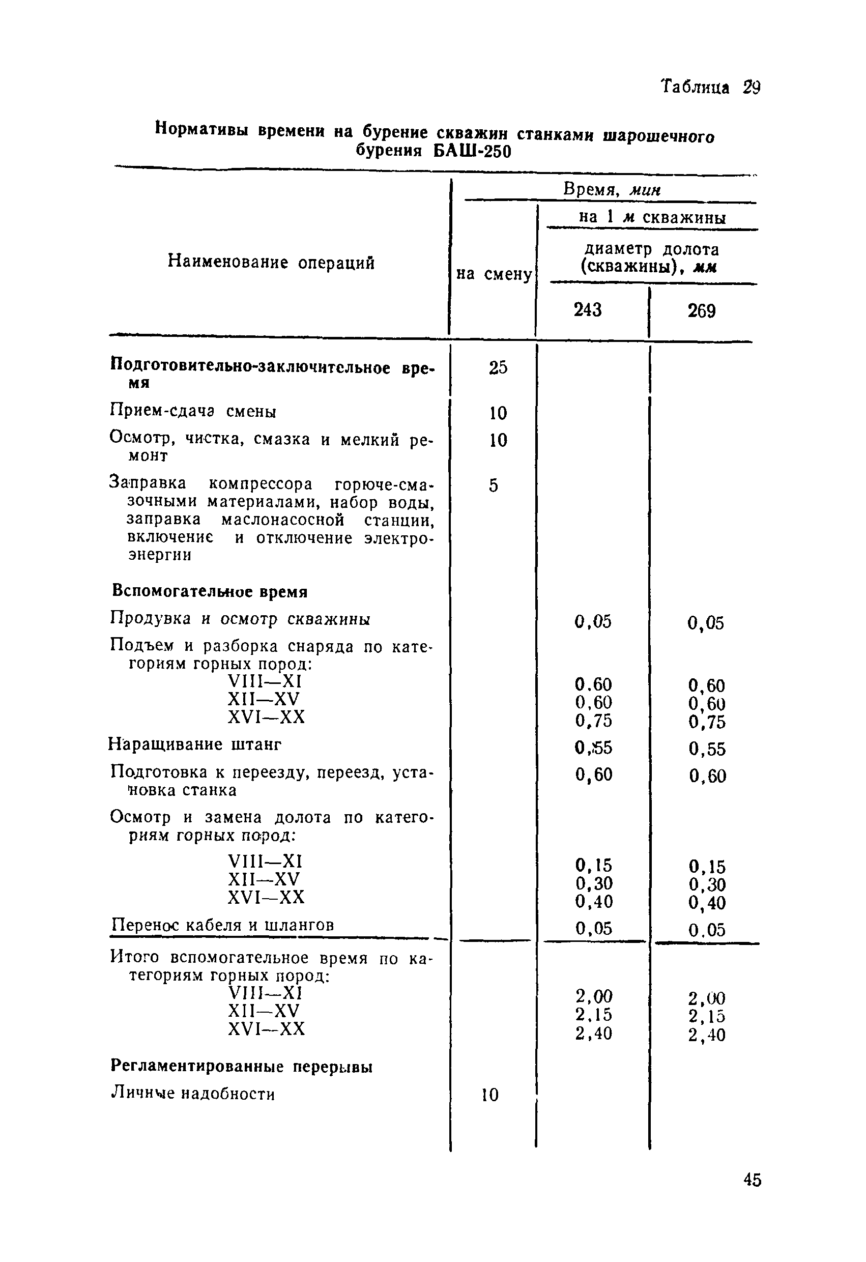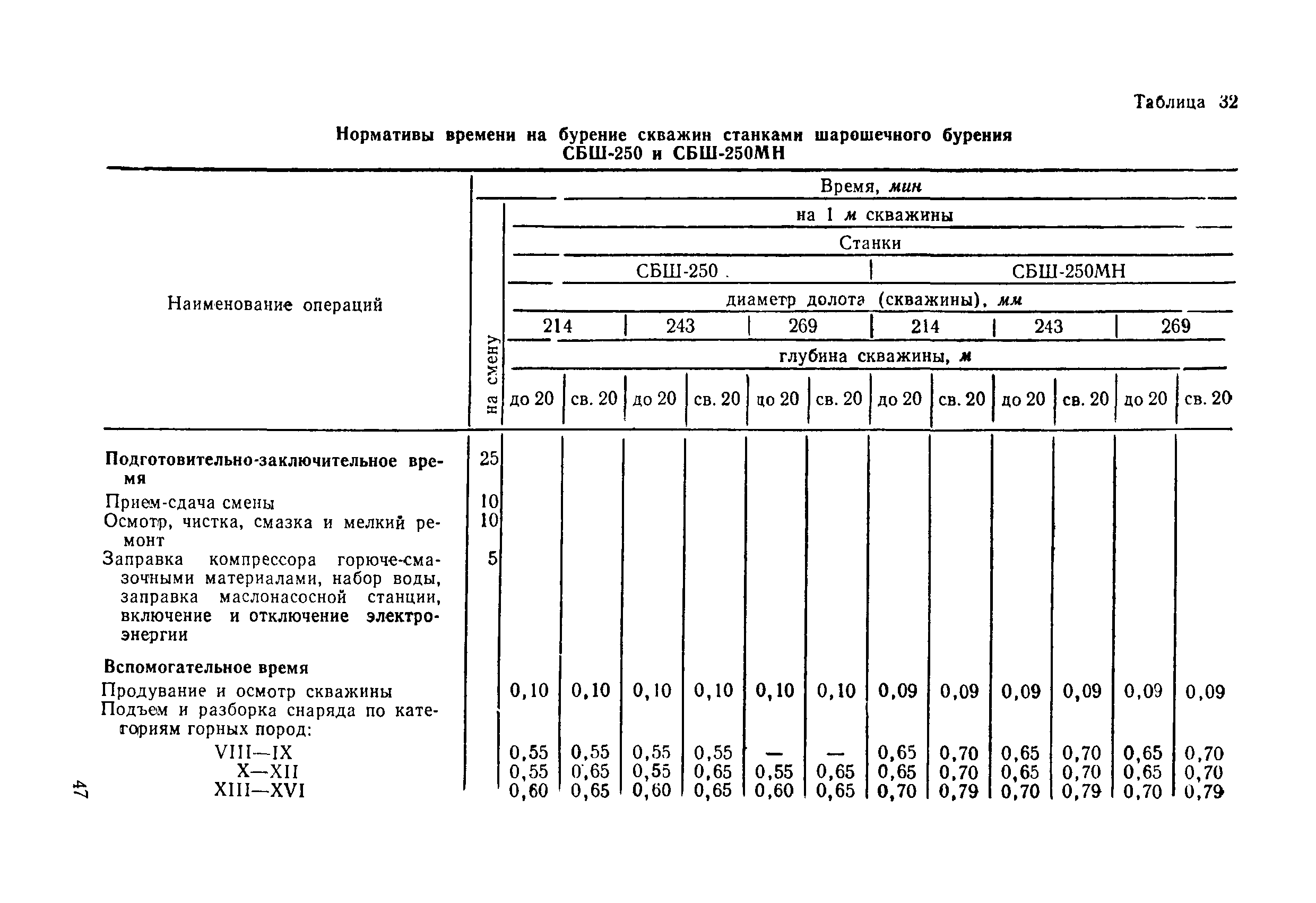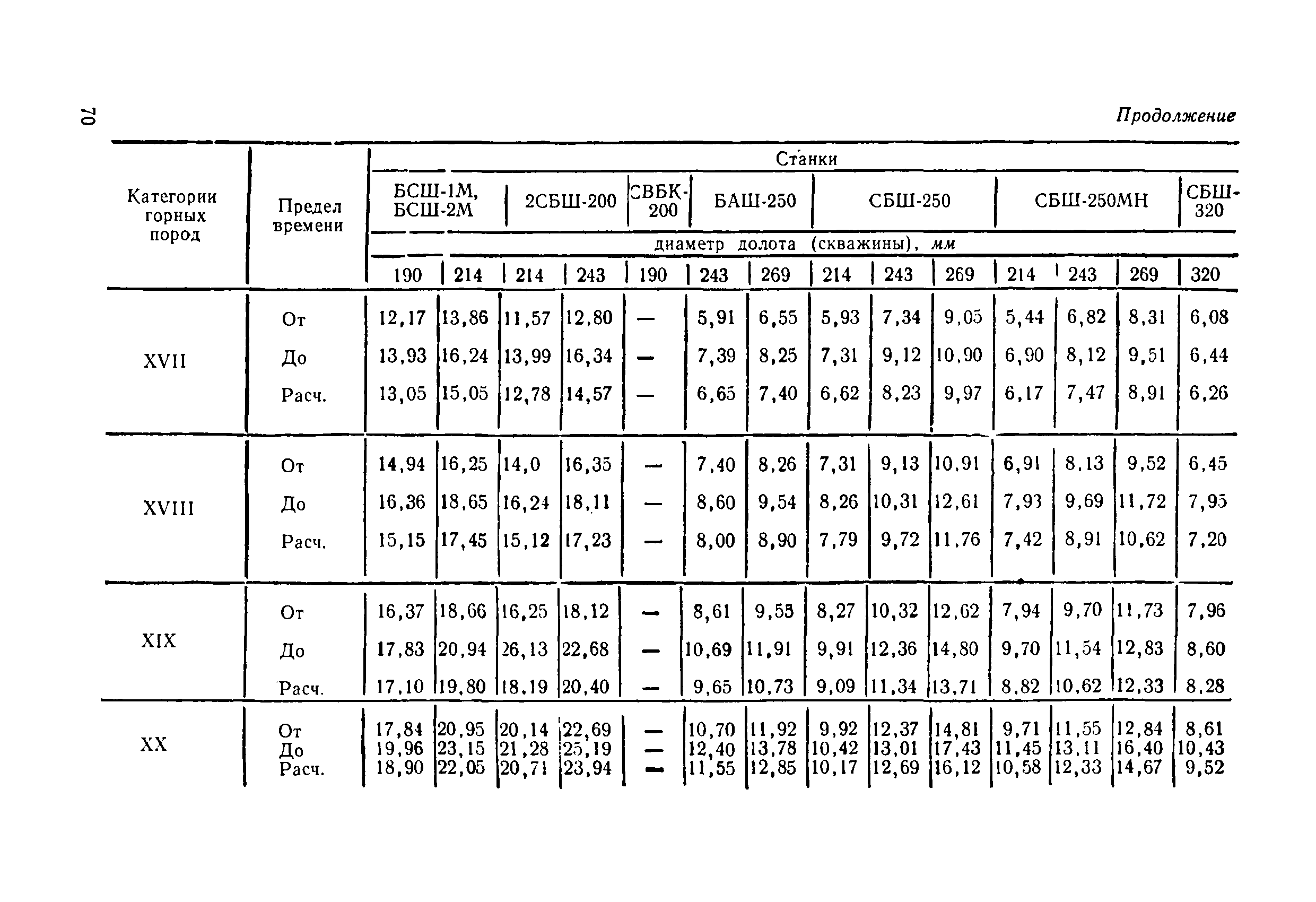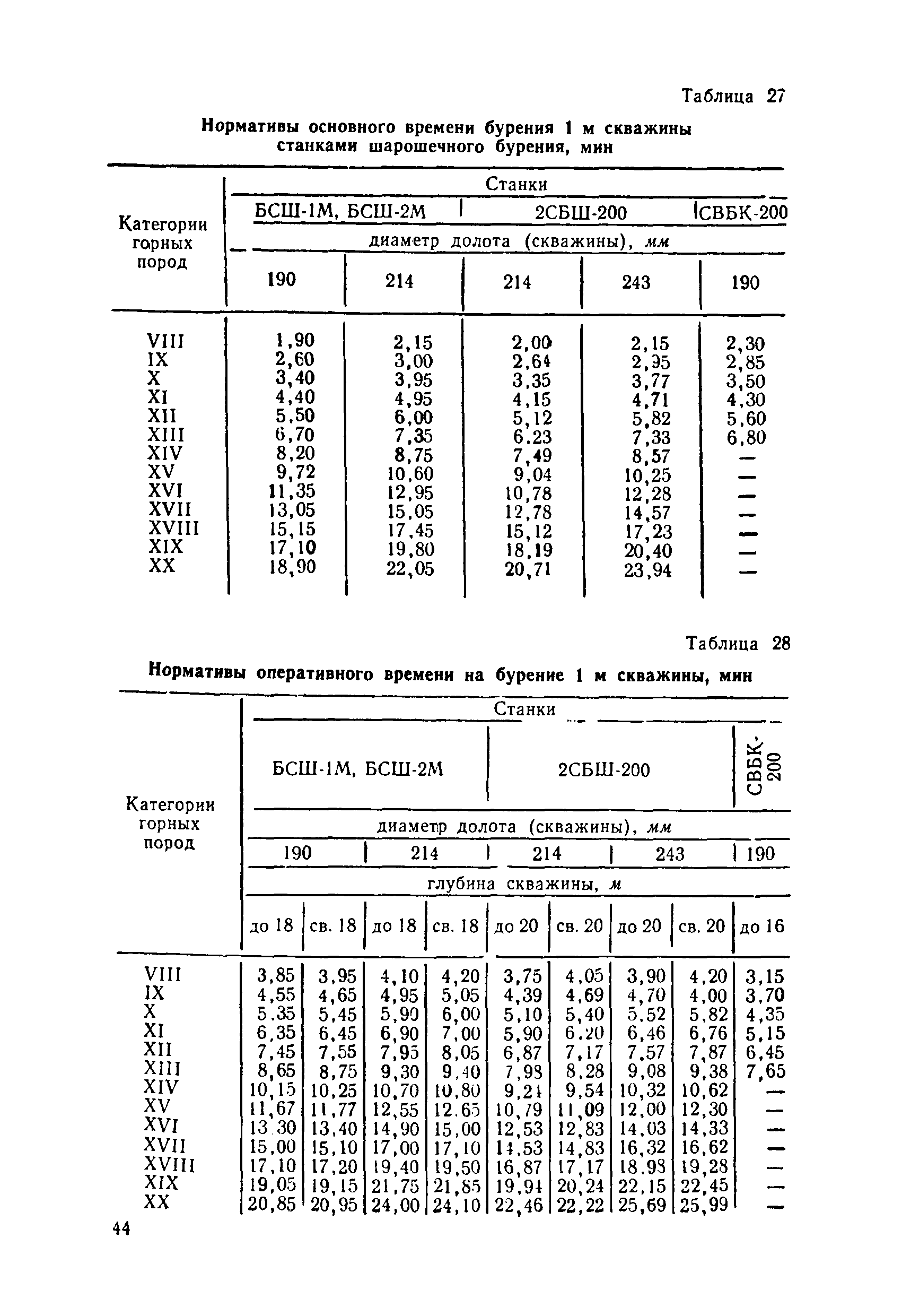 Единые нормы выработки (времени) на открытые горные работы для предприятий горнодобывающей промышленности. Бурение| Статус: | не действует | | Название рус.: | Единые нормы выработки (времени) на открытые горные работы для предприятий горнодобывающей промышленности. Бурение | | Дата добавления в базу: | 01.01.2019 | | Дата актуализации: | 01.01.2021 | | Область применения: | Документ содержит нормы выработки (времени) и нормативы на бурение скважин станками ударно-канатного, ударно-вращательного, вращательного, шарошечного и огневого бурения и на бурение шпуров бурильными молотками, и является обязательным для применения на всех предприятиях горнодобывающей промышленности. Нормы выработки рассчитаны на звено рабочих, за исключением норм на бурение шпуров бурильными молотками, которые даны на одного человека в смену | | Оглавление: | Общая часть Характеристики применяемого оборудование Организация труда Нормативная часть Раздел 1. Нормы выработки и времени Глава 1. Бурение скважин буровыми станками § 1. Бурение скважин станками ударно-канатного бурения БУ-20-2М и БС-1 § 2. Бурение скважин станками ударно-вращательного бурения СБМК-5, "Урал"-64 § 3. Бурение скважин станками вращательного бурения СВБ-2 и СВБ-2М § 4. Бурение скважин станками шарошечного бурения БСШ-1М, БСШ-2М, 2БСШ-200, СВБК-200, СБШ-250, СБШ-250МН, БАШ-250 и СБШ-320 § 5. Бурение скважин станками огневого бурения СБО-160/20 Глава 2. Бурение шпуров бурильными молотками § 6. Бурение шпуров бурильными молотками Раздел 2. Нормативы времени § 7. Бурение скважин станками ударно-канатного бурения § 8. Бурение скважин станками ударно-вращательного бурения § 9. Бурение скважин станками вращательного бурения § 10. Бурение скважин станками шарошечного бурения § 11. Бурение скважин станками огневого бурения § 12. Бурение шпуров бурильными молотками Приложение 1. Метод расчета норм выработки на бурение скважин и шпуров Приложение 2. Единая классификация горных пород Приложение 3. Основное время на бурение скважин и шпуров Приложение 4. Инструкция по определению категорий горных пород при бурении станками шарошечного бурения Приложение 5. Инструкция по определению категории горных пород при бурении станками ударно-канатного, ударно-вращательного и вращательного бурения Приложение 6. Инструкция по определению категорий горных пород по буримости ручными бурильными молотками Приложение 7. Ориентировочные данные удельного расхода шпурометров на 1 м3 в целике негабарита Приложение 8. Температурные зоны по союзным и автономным республикам, краям и областям СССР | | Разработан: | ЦБНТ