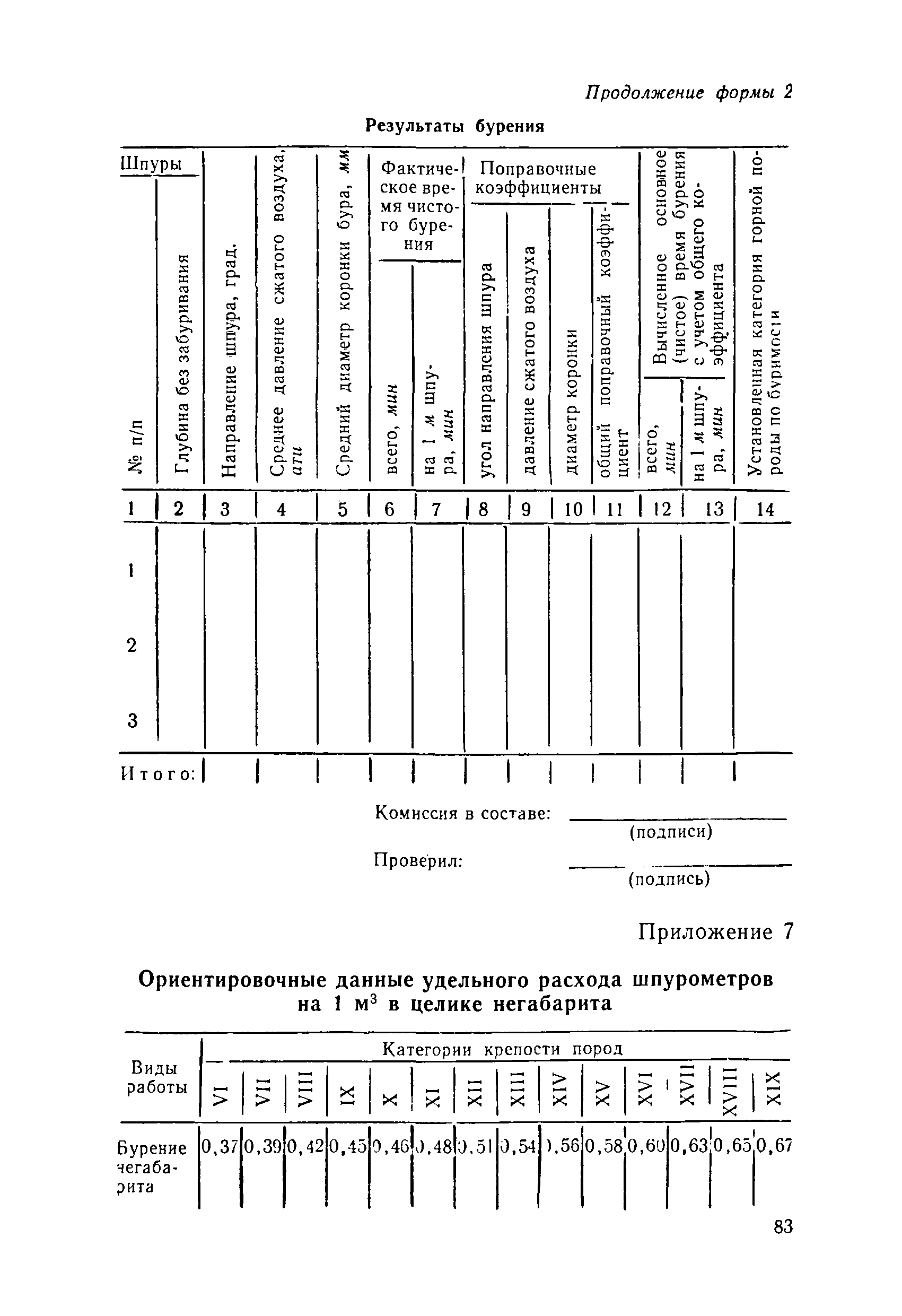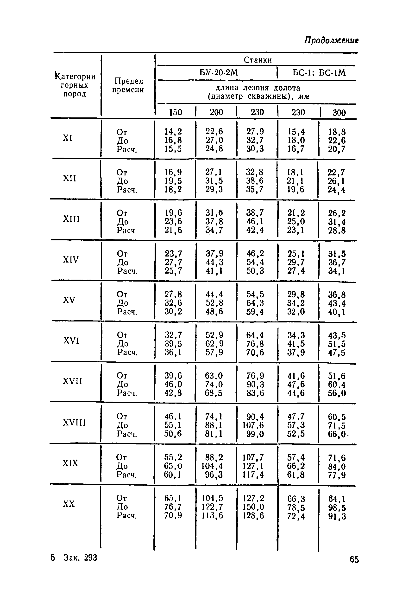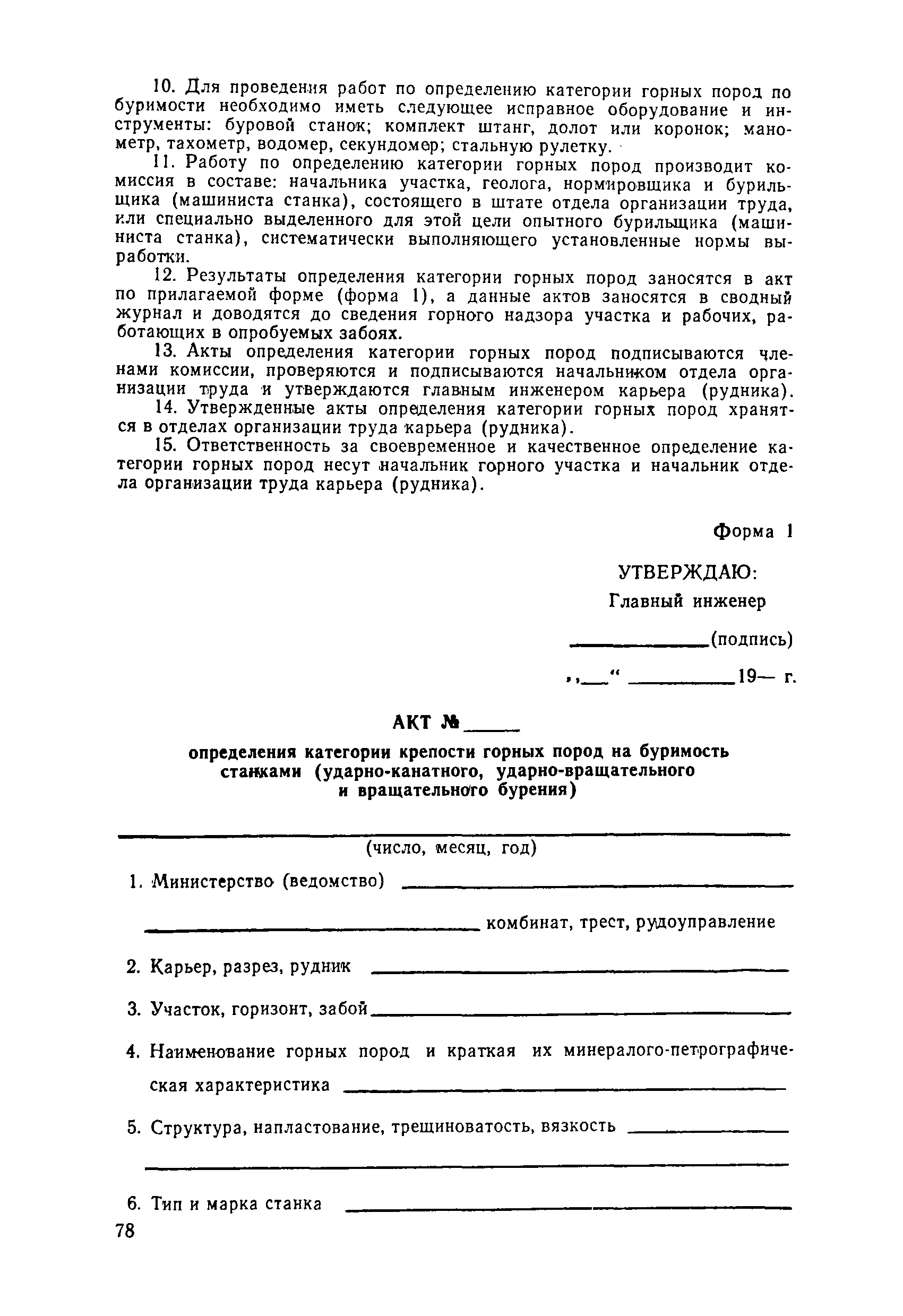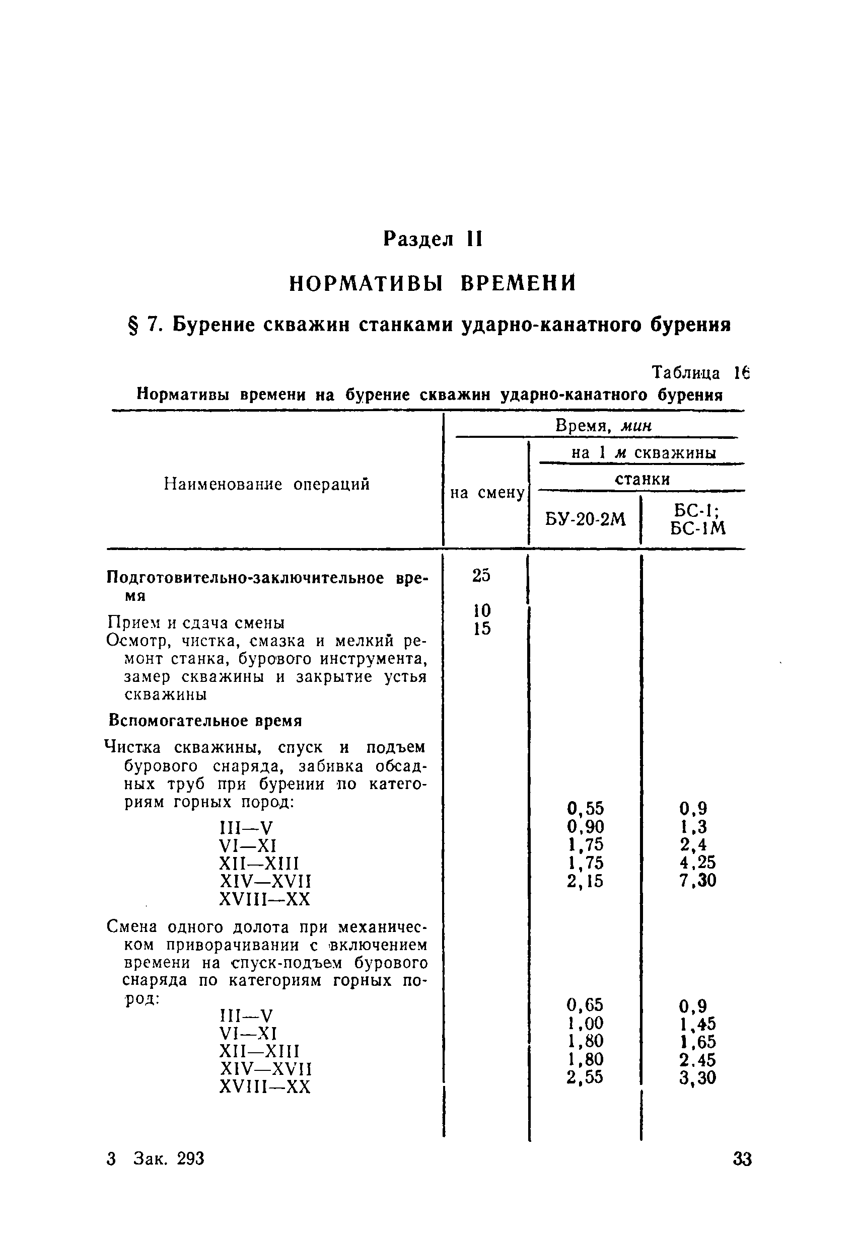 Единые нормы выработки (времени) на открытые горные работы для предприятий горнодобывающей промышленности. Бурение| Статус: | не действует | | Название рус.: | Единые нормы выработки (времени) на открытые горные работы для предприятий горнодобывающей промышленности. Бурение | | Дата добавления в базу: | 01.01.2019 | | Дата актуализации: | 01.01.2021 | | Область применения: | Документ содержит нормы выработки (времени) и нормативы на бурение скважин станками ударно-канатного, ударно-вращательного, вращательного, шарошечного и огневого бурения и на бурение шпуров бурильными молотками, и является обязательным для применения на всех предприятиях горнодобывающей промышленности. Нормы выработки рассчитаны на звено рабочих, за исключением норм на бурение шпуров бурильными молотками, которые даны на одного человека в смену | | Оглавление: | Общая часть Характеристики применяемого оборудование Организация труда Нормативная часть Раздел 1. Нормы выработки и времени Глава 1. Бурение скважин буровыми станками § 1. Бурение скважин станками ударно-канатного бурения БУ-20-2М и БС-1 § 2. Бурение скважин станками ударно-вращательного бурения СБМК-5, "Урал"-64 § 3. Бурение скважин станками вращательного бурения СВБ-2 и СВБ-2М § 4. Бурение скважин станками шарошечного бурения БСШ-1М, БСШ-2М, 2БСШ-200, СВБК-200, СБШ-250, СБШ-250МН, БАШ-250 и СБШ-320 § 5. Бурение скважин станками огневого бурения СБО-160/20 Глава 2. Бурение шпуров бурильными молотками § 6. Бурение шпуров бурильными молотками Раздел 2. Нормативы времени § 7. Бурение скважин станками ударно-канатного бурения § 8. Бурение скважин станками ударно-вращательного бурения § 9. Бурение скважин станками вращательного бурения § 10. Бурение скважин станками шарошечного бурения § 11. Бурение скважин станками огневого бурения § 12. Бурение шпуров бурильными молотками Приложение 1. Метод расчета норм выработки на бурение скважин и шпуров Приложение 2. Единая классификация горных пород Приложение 3. Основное время на бурение скважин и шпуров Приложение 4. Инструкция по определению категорий горных пород при бурении станками шарошечного бурения Приложение 5. Инструкция по определению категории горных пород при бурении станками ударно-канатного, ударно-вращательного и вращательного бурения Приложение 6. Инструкция по определению категорий горных пород по буримости ручными бурильными молотками Приложение 7. Ориентировочные данные удельного расхода шпурометров на 1 м3 в целике негабарита Приложение 8. Температурные зоны по союзным и автономным республикам, краям и областям СССР | | Разработан: | ЦБНТ