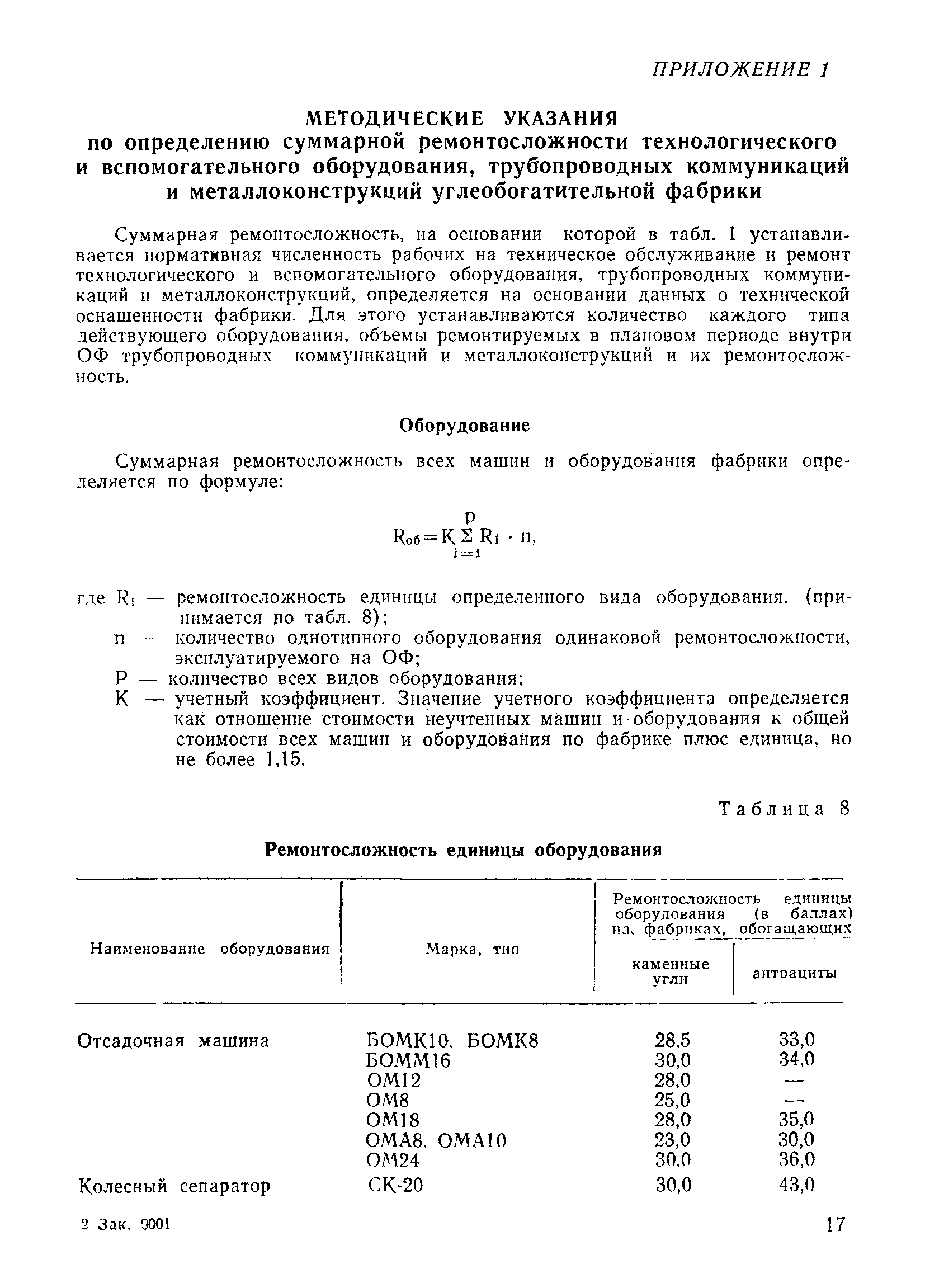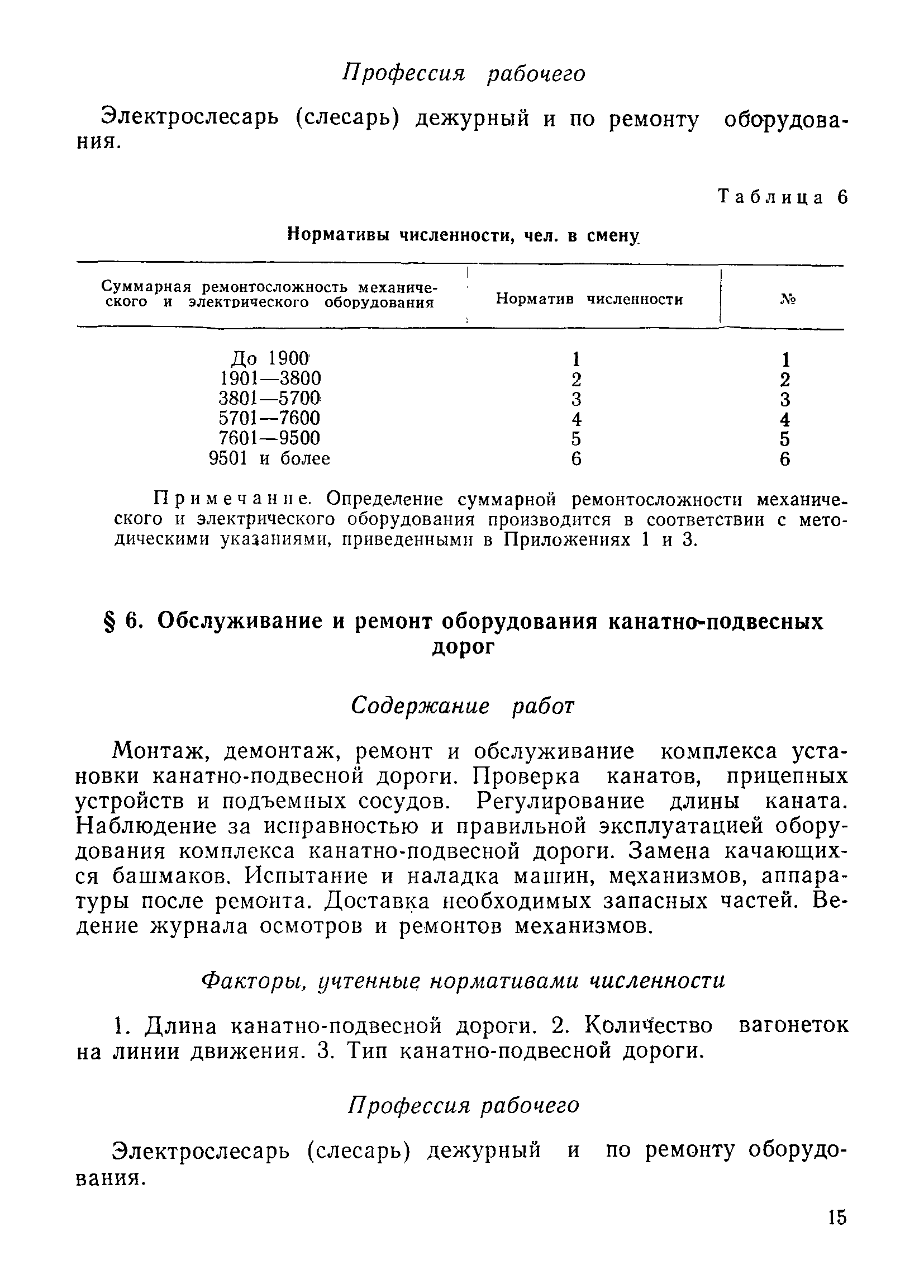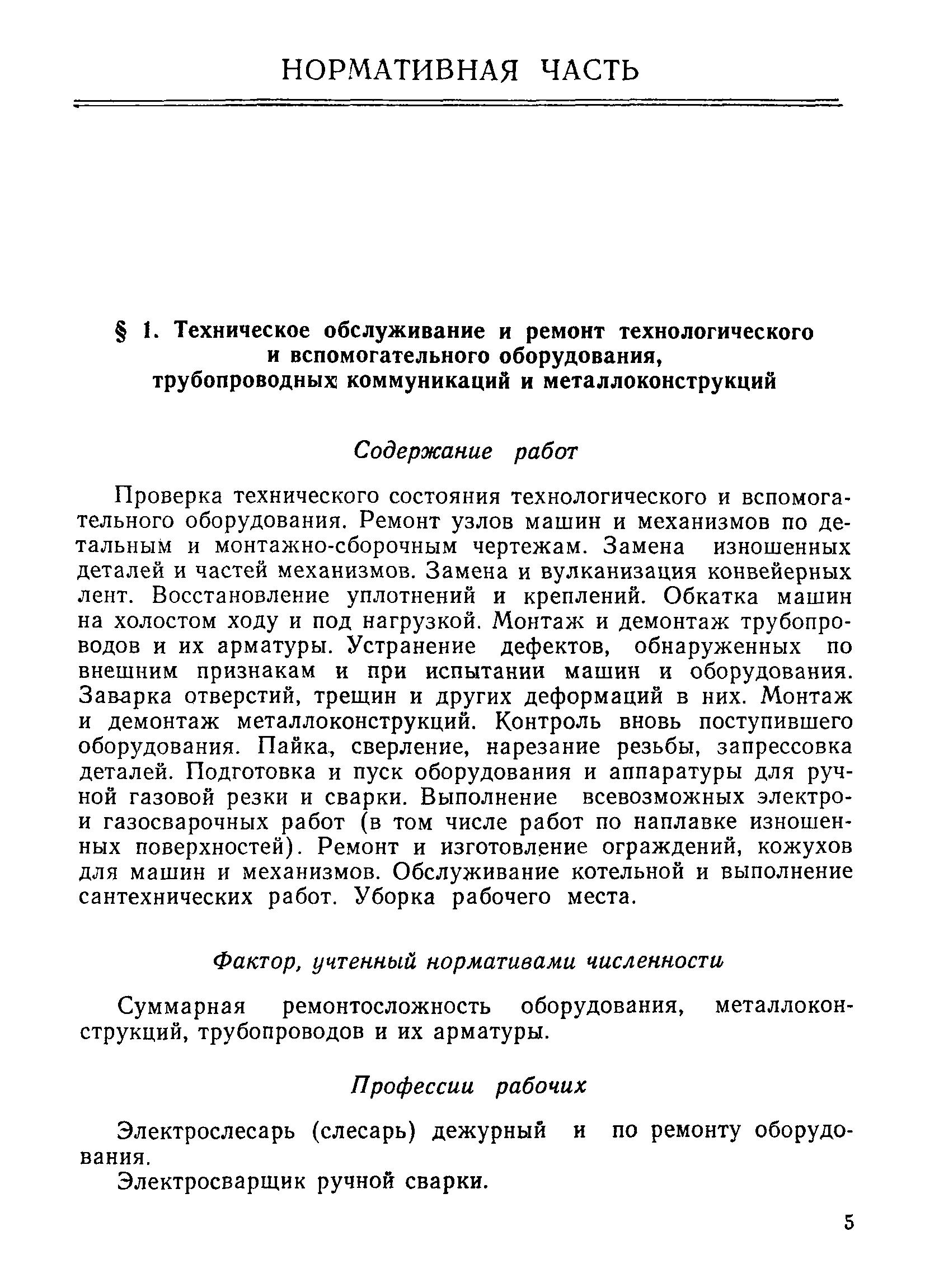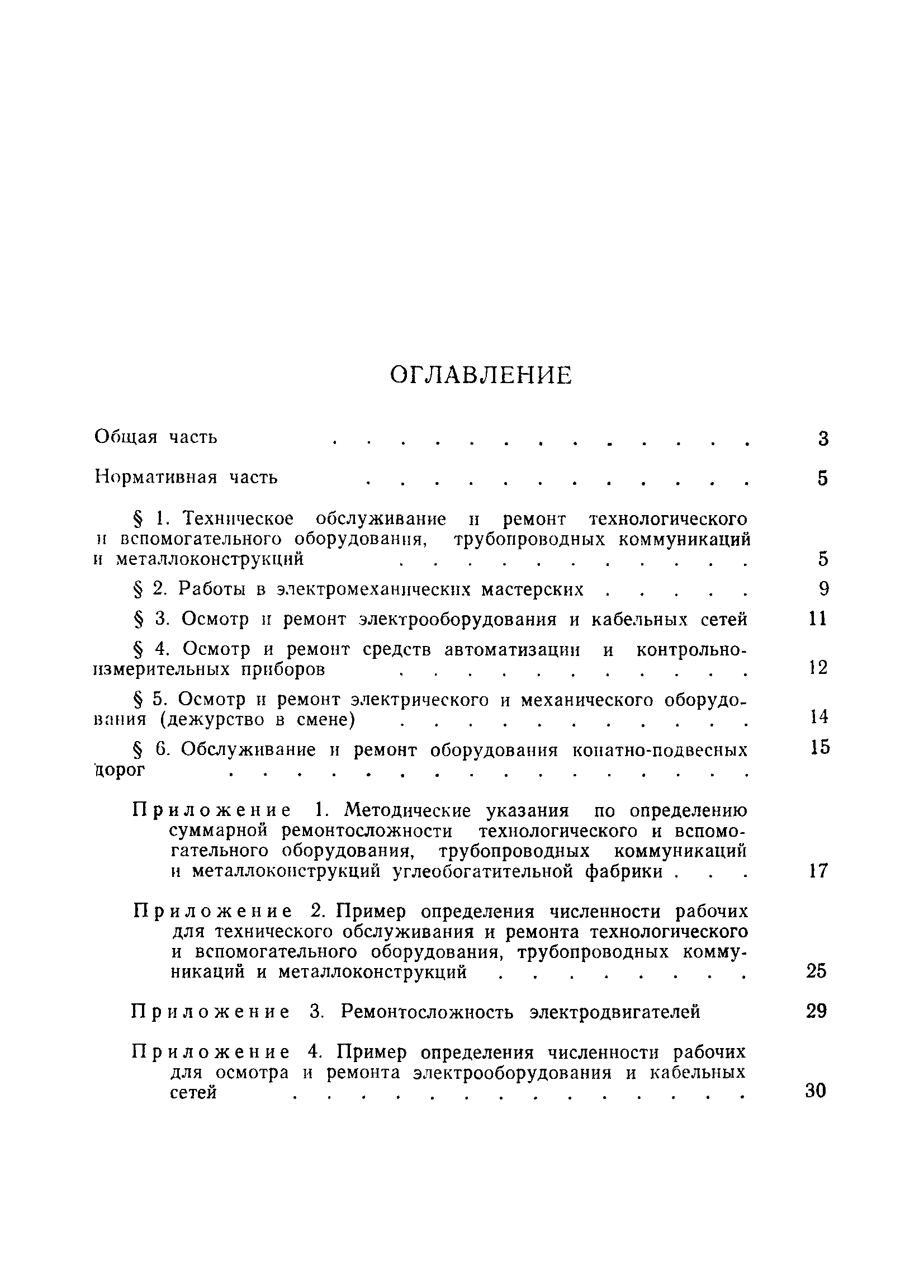 | Оглавление: | Общая часть Нормативная часть § 1. Техническое обслуживание и ремонт технологического и вспомогательного оборудования, трубопроводных коммуникаций и металлоконструкций § 2. Работы в электромеханических мастерских § 3. Осмотр и ремонт электрооборудования и кабельных сетей § 4. Осмотр и ремонт средств автоматизации и контрольно-измерительных приборов § 5. Осмотр и ремонт электрического и механического оборудования (дежурство в смене) § 6. Обслуживание и ремонт оборудования канатно-подвесных дорог Приложение 1. Методические указания по определению суммарной ремонтосложности технологического и вспомогательного оборудования, трубопроводных коммуникаций и металлоконструкций углеобогатительной фабрики Приложение 2. Пример определения численности рабочих для технического обслуживания и ремонта технологического и вспомогательного оборудования, трубопроводных коммуникаций и металлоконструкций Приложение 3. Ремонтосложность электродвигателей Приложение 4. Пример определения численности рабочих для осмотра и ремонта электрооборудования и кабельных сетей |