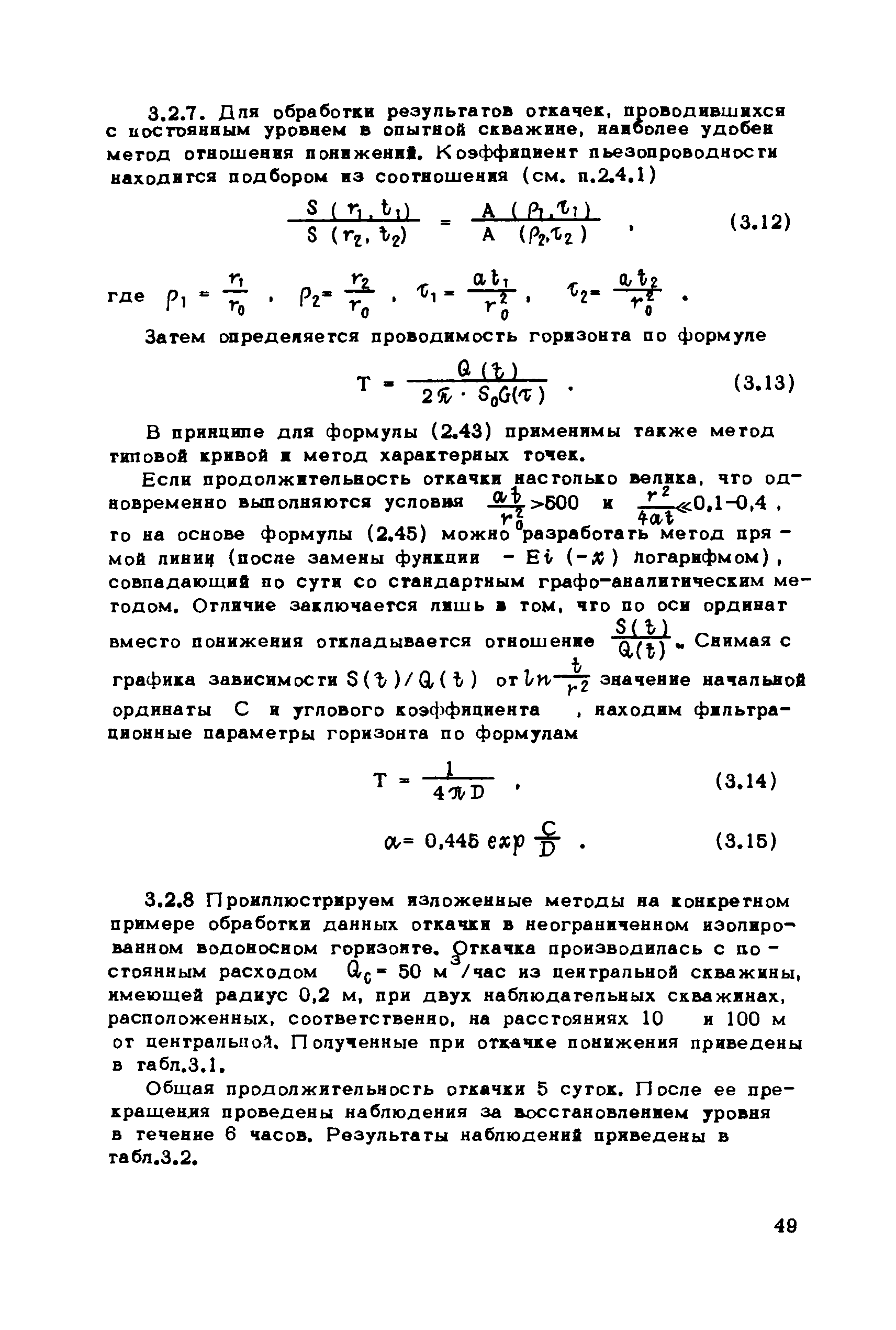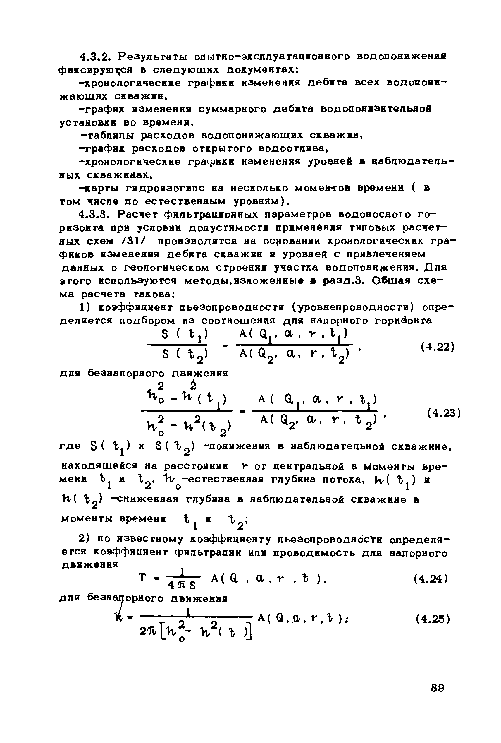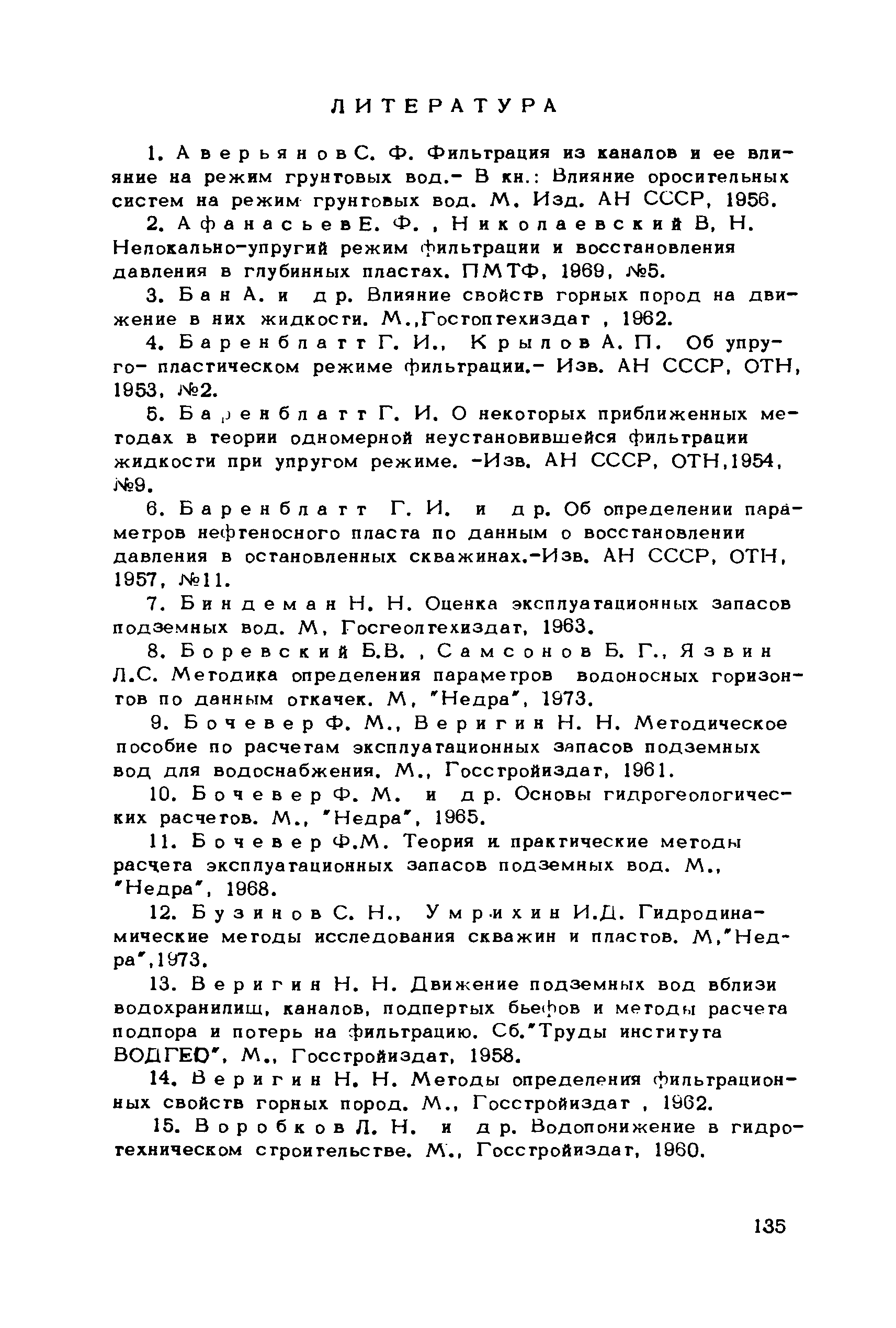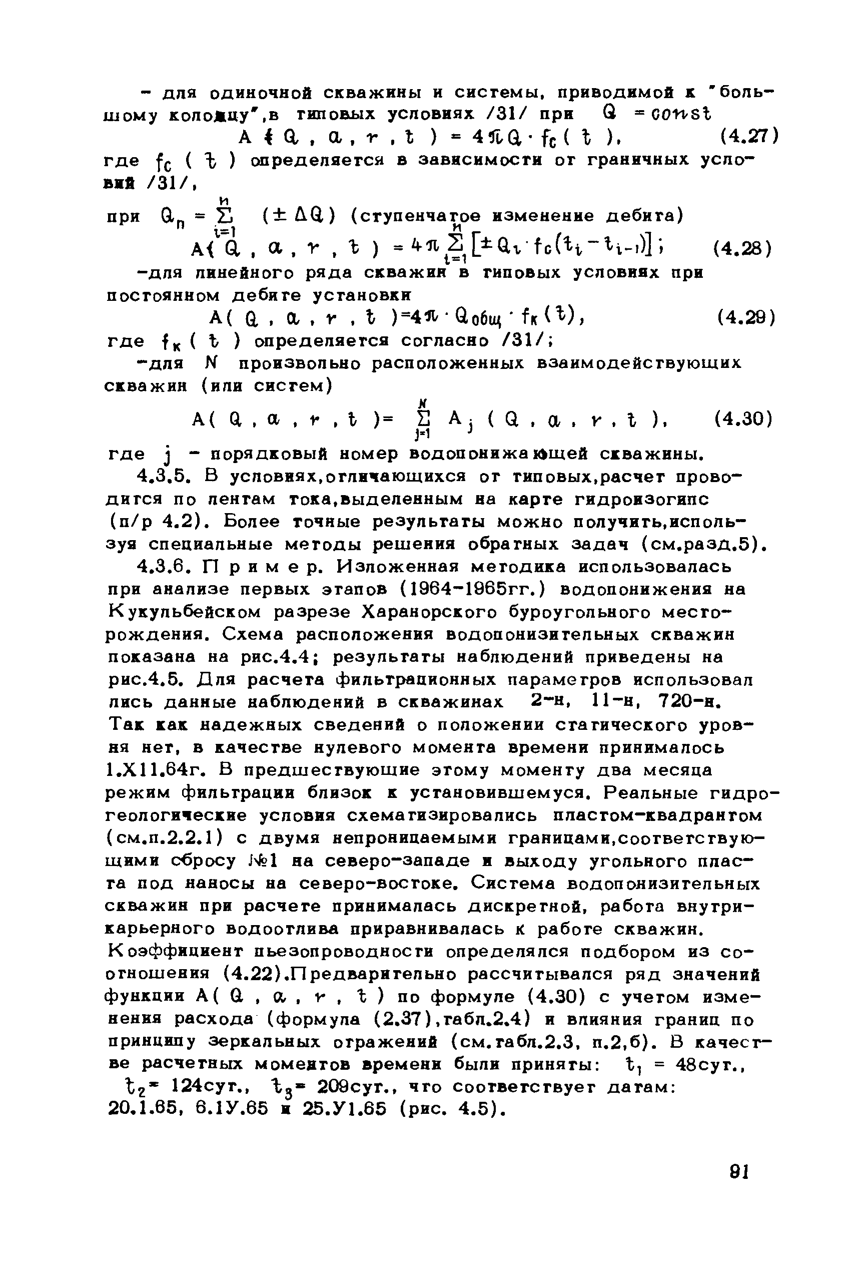 Методические указания по определению гидрогеологических параметров при разведке и освоении угольных месторождений| Статус: | справочные материалы, мп, тпр | | Название рус.: | Методические указания по определению гидрогеологических параметров при разведке и освоении угольных месторождений | | Дата добавления в базу: | 01.01.2019 | | Дата актуализации: | 01.01.2021 | | Область применения: | В документе изложена методика определения основных фильтрационных параметров водоносных горизонтов по результатам опытных откачек и гидрогеологических наблюдений за режимом подземных вод | | Оглавление: | Введение 1. Краткая характеристика основных фильтрационных параметров 1.1. Коэффициент фильтрации и проводимость 1.2. Водоотдача и упругая водоотдача 1.3. Коэффициенты уровнепроводности и пьезопроводности 1.4. Некоторые дополнительные фильтрационные параметры 2. Основные дифференциальные уравнения фильтрации и их решения в связи с определением фильтрационных параметров 2.1. Исходные дифференциальные уравнения фильтрации 2.2. Гидродинамическая типизация пластов, граничные и начальные условия фильтрации 2.3. Простейшие аналитические решения установившейся фильтрации, используемые для определения фильтрационных параметров 2.4. Основные решения неустановившейся фильтрации, используемые для определения фильтрационных параметров 2.5. Основные сведения о методах определения фильтрационных параметров по результатам откачек 3. Методика интерпретации результатов опытных откачек 3.1. Качественная интерпретация результатов и предварительная опенка общих закономерностей фильтрации при кустовых откачках 3.2. Основные способы определения фильтрационных параметров в неограниченном изолированном однородном горизонте 3.3. Определение параметров изолированных водоносных горизонтов при типовых граничных условиях 3.4. Определение параметров слоистых водоносных толщ при установившемся режиме фильтрации с учетом перетекания 3.5. Методы определения параметров слоистых толщ по результатам опытных откачек при неустановившемся режиме с учетом перетекания 3.6. Определение параметров слоистых водоносных толщ с помощью приближенных решений, полученных методом интегральных соотношений 3.7. Некоторые замечания о методах интерпретации одиночных опытных откачек 4. Методика интерпретации результатов гидрогеологических наблюдений, проводимых в период эксплуатации месторождений 4.1. Качественная интерпретация результатов гидрогеологических наблюдений 4.2. Определение основных фильтрационных параметров по результатам гидрогеологических наблюдений 4.3. Интерпретация результатов опытно-эксплуатационного водопонижения 5. Специальные методы определения фильтрационных параметров 5.1. Операционный метод 5.2. Метод В.Б. Георгиевского 5.3. Определение гидрогеологических параметров на электрических моделях Приложение 1. Специальные математические функции, используемые при гидрогеологических расчетах Приложение 2. Таблица значения функции -Ei Приложение 3. Таблица значения функции A Приложение 4. Таблица значения функции G Приложение 5. Интеграл вероятности Ф Приложение 6. Таблица значения функции S Приложение 7. Таблица значения функции T Приложение 8. Таблица значения функции W Приложение 9. Таблица значения функции H Приложение 10. Значения функции e в степени x Приложение 11. Та