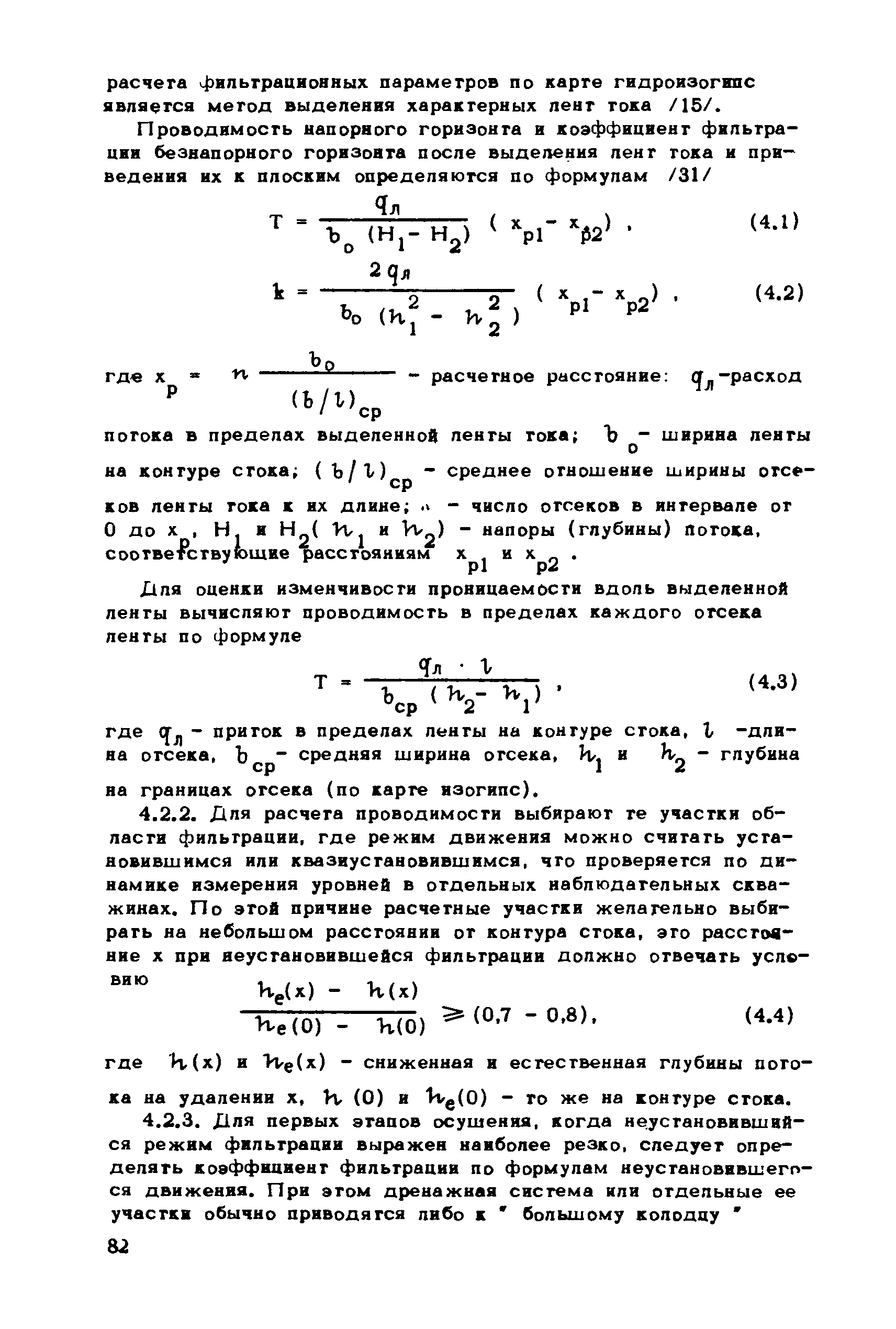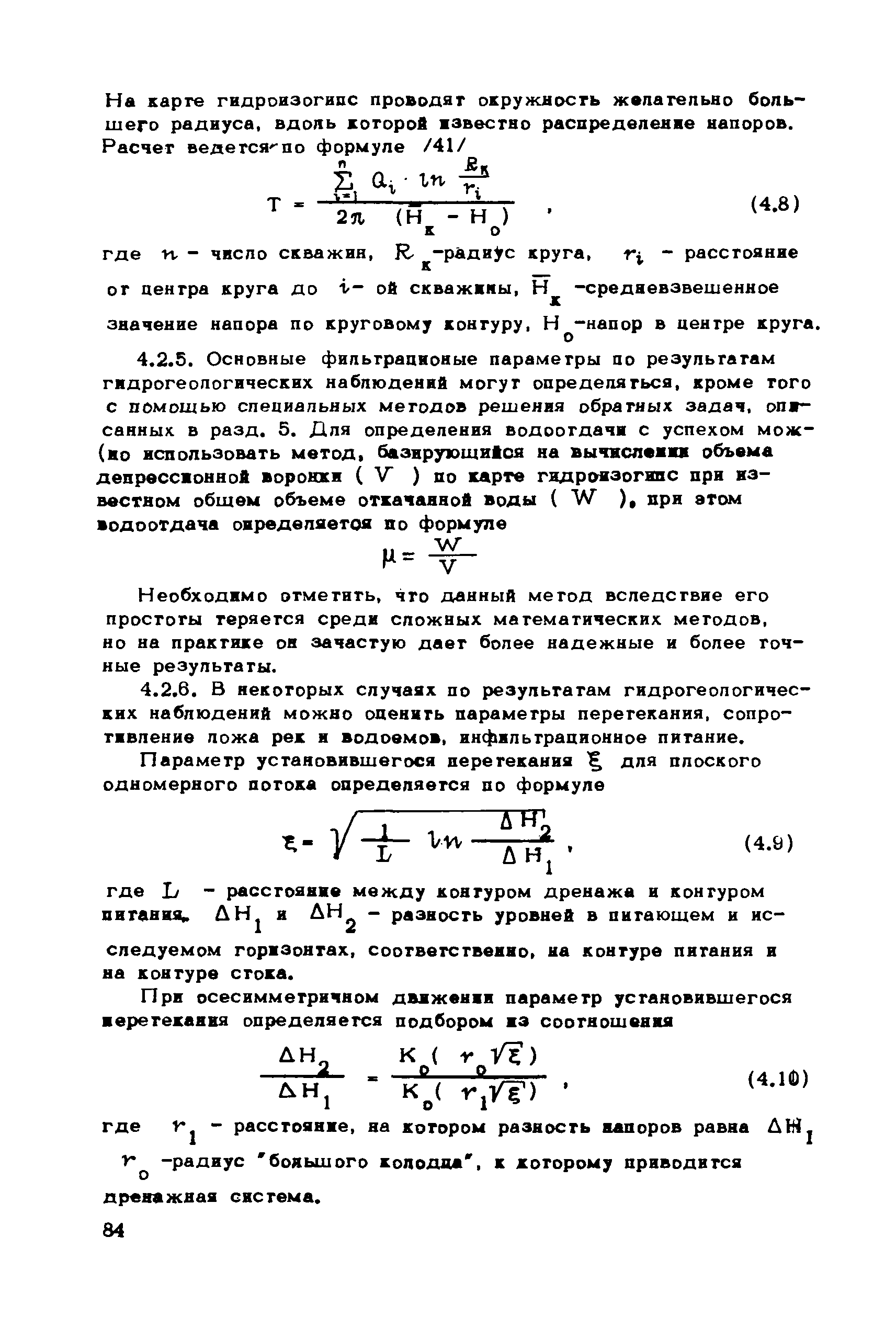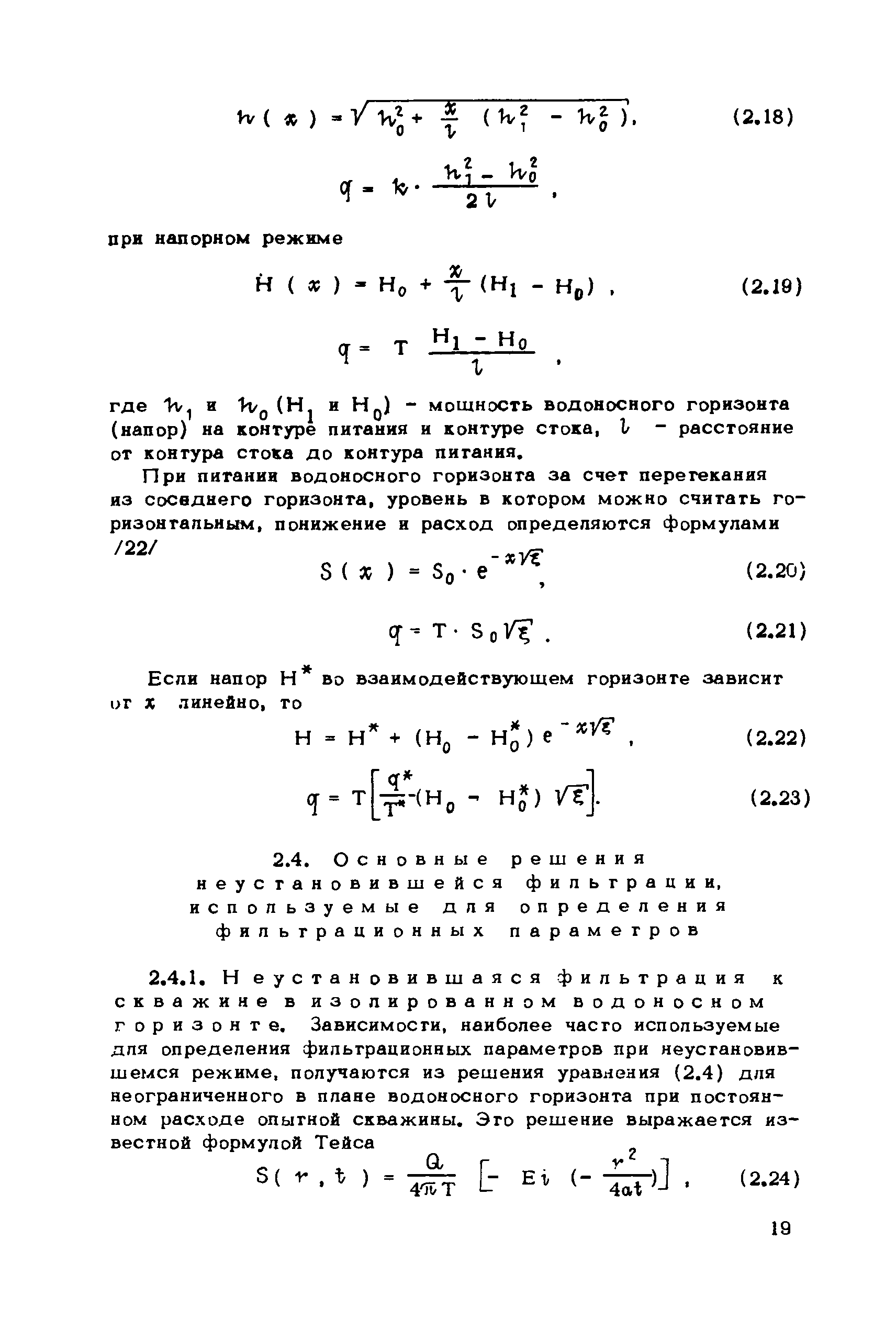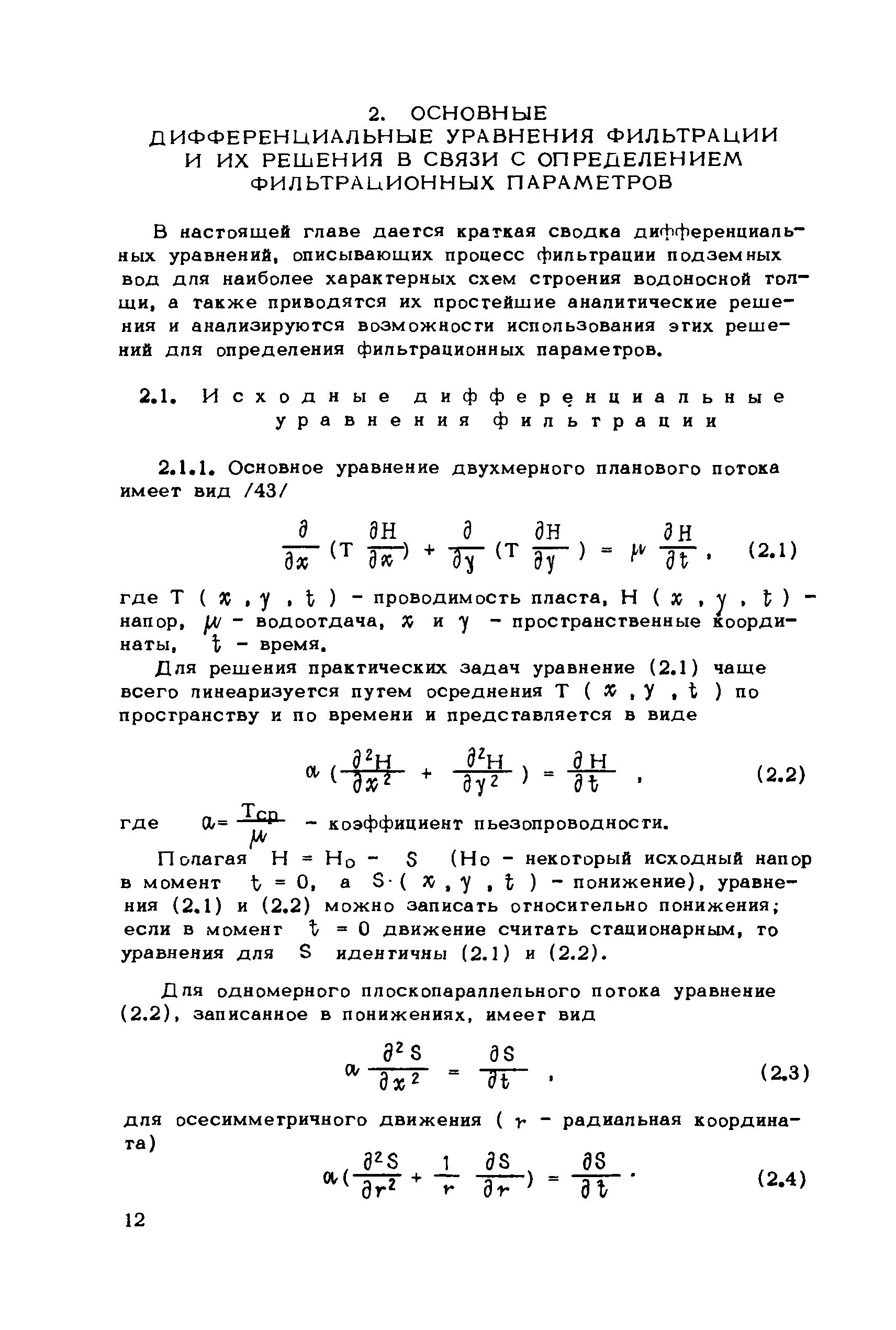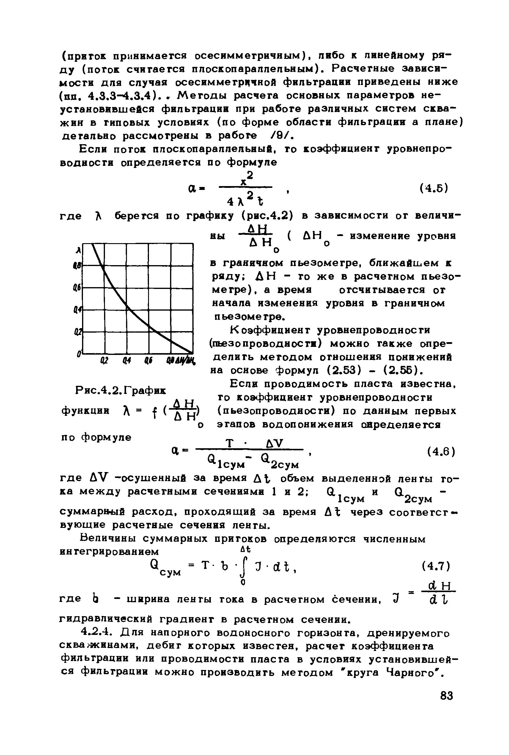 Методические указания по определению гидрогеологических параметров при разведке и освоении угольных месторождений| Статус: | справочные материалы, мп, тпр | | Название рус.: | Методические указания по определению гидрогеологических параметров при разведке и освоении угольных месторождений | | Дата добавления в базу: | 01.01.2019 | | Дата актуализации: | 01.01.2021 | | Область применения: | В документе изложена методика определения основных фильтрационных параметров водоносных горизонтов по результатам опытных откачек и гидрогеологических наблюдений за режимом подземных вод | | Оглавление: | Введение 1. Краткая характеристика основных фильтрационных параметров 1.1. Коэффициент фильтрации и проводимость 1.2. Водоотдача и упругая водоотдача 1.3. Коэффициенты уровнепроводности и пьезопроводности 1.4. Некоторые дополнительные фильтрационные параметры 2. Основные дифференциальные уравнения фильтрации и их решения в связи с определением фильтрационных параметров 2.1. Исходные дифференциальные уравнения фильтрации 2.2. Гидродинамическая типизация пластов, граничные и начальные условия фильтрации 2.3. Простейшие аналитические решения установившейся фильтрации, используемые для определения фильтрационных параметров 2.4. Основные решения неустановившейся фильтрации, используемые для определения фильтрационных параметров 2.5. Основные сведения о методах определения фильтрационных параметров по результатам откачек 3. Методика интерпретации результатов опытных откачек 3.1. Качественная интерпретация результатов и предварительная опенка общих закономерностей фильтрации при кустовых откачках 3.2. Основные способы определения фильтрационных параметров в неограниченном изолированном однородном горизонте 3.3. Определение параметров изолированных водоносных горизонтов при типовых граничных условиях 3.4. Определение параметров слоистых водоносных толщ при установившемся режиме фильтрации с учетом перетекания 3.5. Методы определения параметров слоистых толщ по результатам опытных откачек при неустановившемся режиме с учетом перетекания 3.6. Определение параметров слоистых водоносных толщ с помощью приближенных решений, полученных методом интегральных соотношений 3.7. Некоторые замечания о методах интерпретации одиночных опытных откачек 4. Методика интерпретации результатов гидрогеологических наблюдений, проводимых в период эксплуатации месторождений 4.1. Качественная интерпретация результатов гидрогеологических наблюдений 4.2. Определение основных фильтрационных параметров по результатам гидрогеологических наблюдений 4.3. Интерпретация результатов опытно-эксплуатационного водопонижения 5. Специальные методы определения фильтрационных параметров 5.1. Операционный метод 5.2. Метод В.Б. Георгиевского 5.3. Определение гидрогеологических параметров на электрических моделях Приложение 1. Специальные математические функции, используемые при гидрогеологических расчетах Приложение 2. Таблица значения функции -Ei Приложение 3. Таблица значения функции A Приложение 4. Таблица значения функции G Приложение 5. Интеграл вероятности Ф Приложение 6. Таблица значения функции S Приложение 7. Таблица значения функции T Приложение 8. Таблица значения функции W Приложение 9. Таблица значения функции H Приложение 10. Значения функции e в степени x Приложение 11. Та