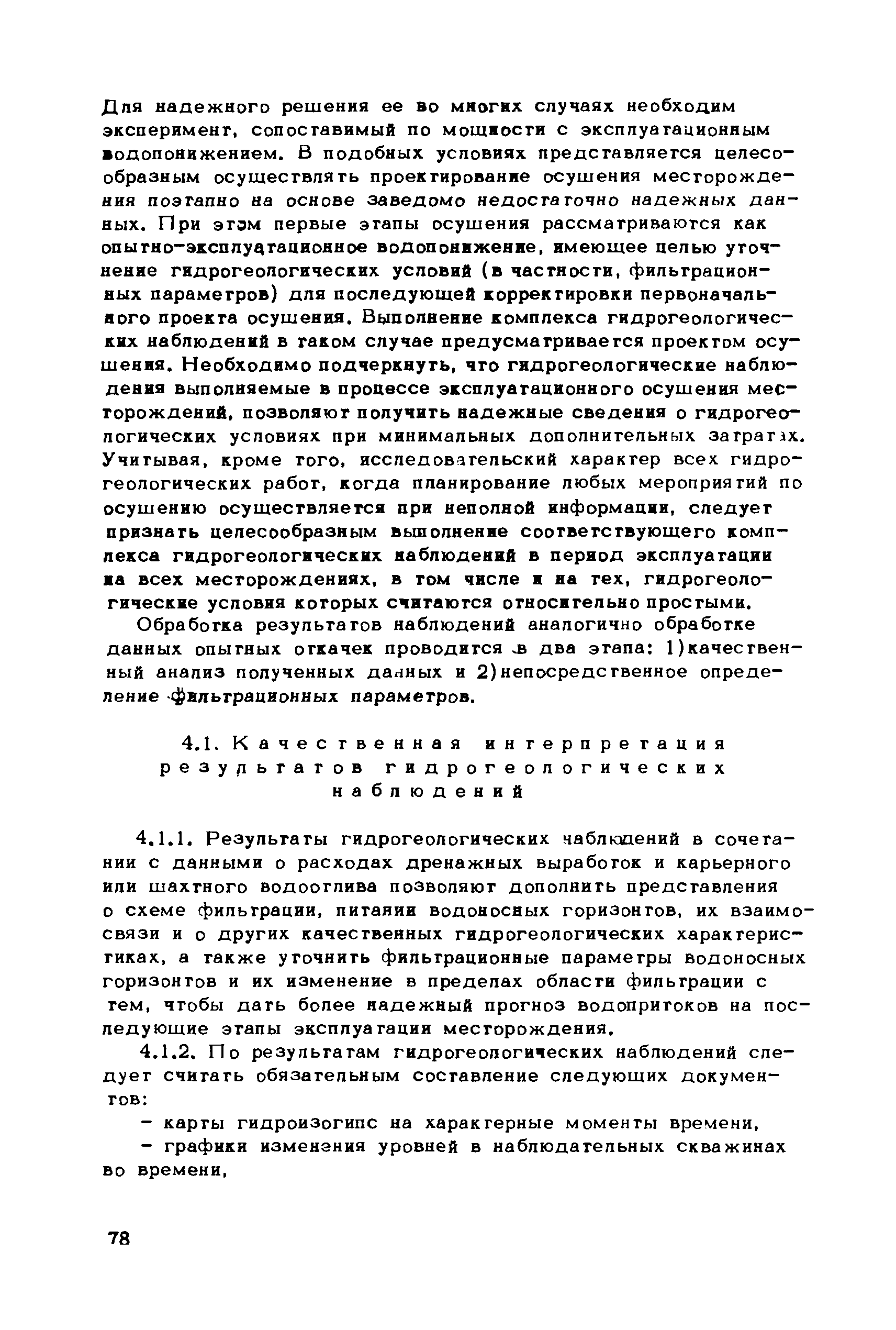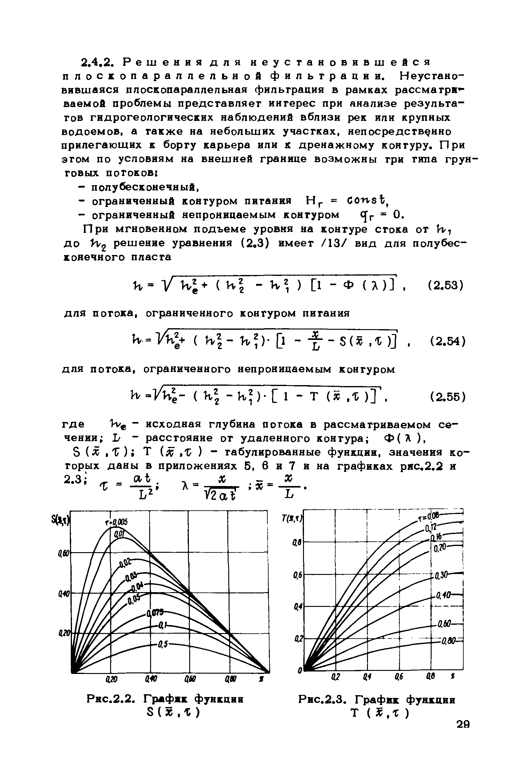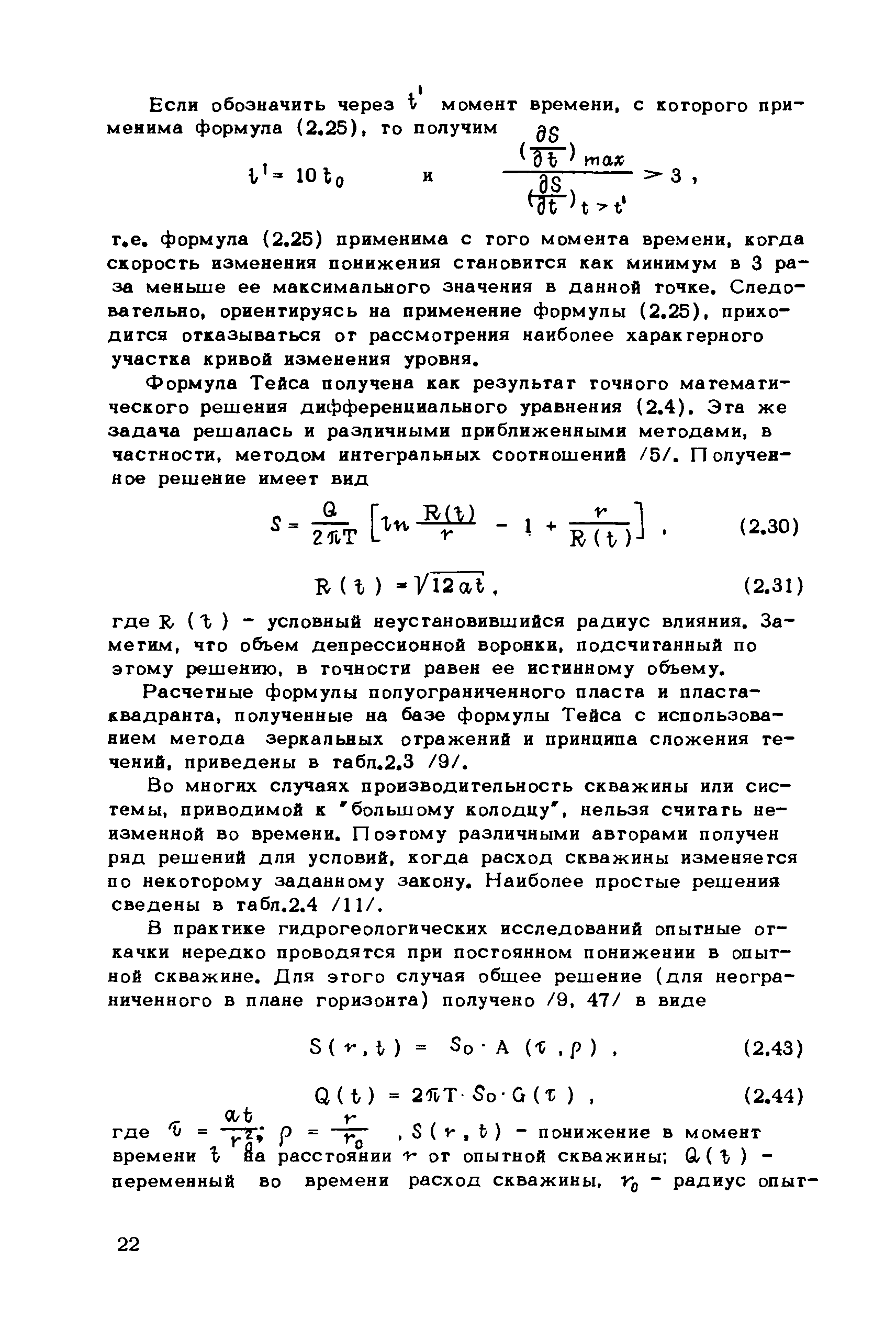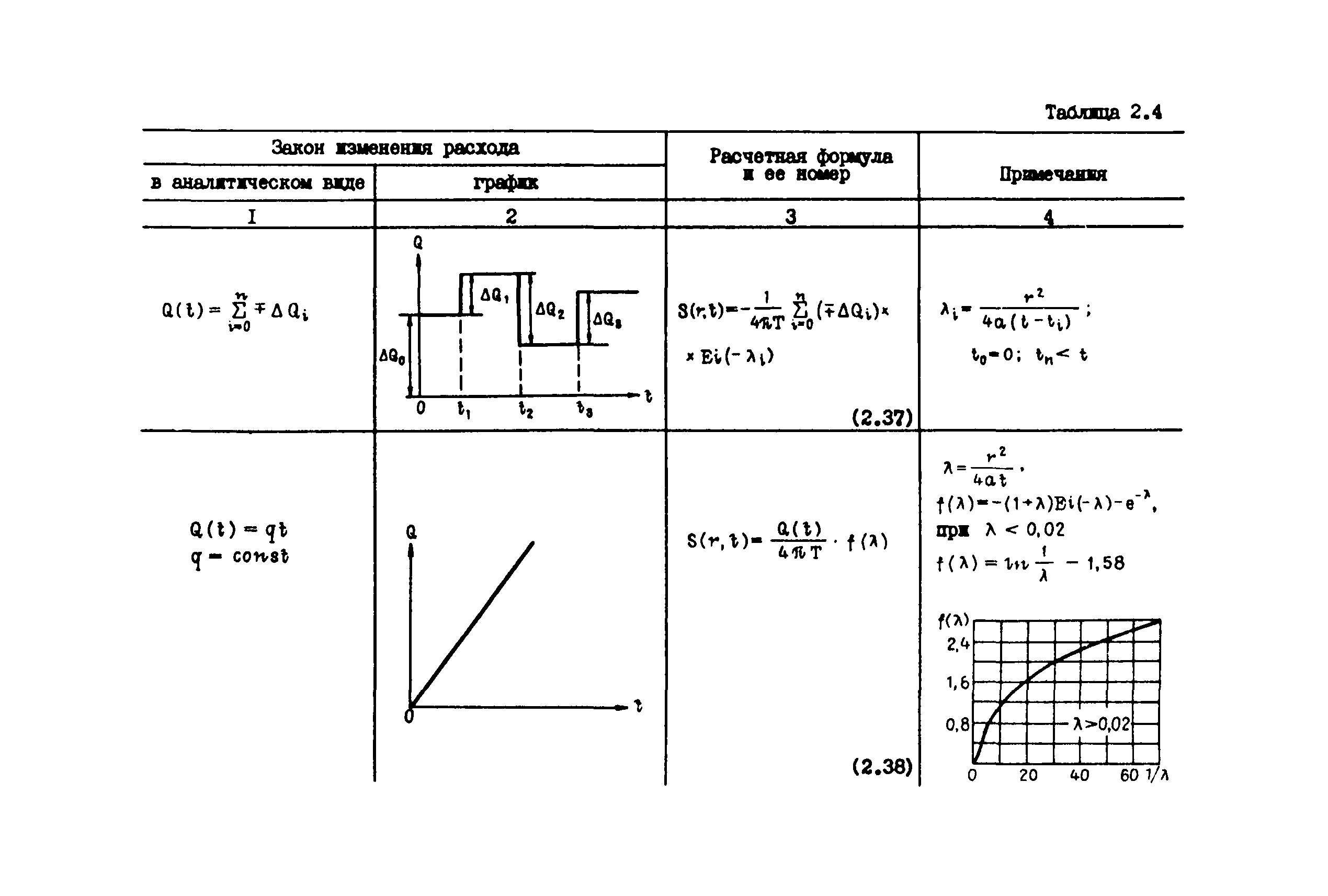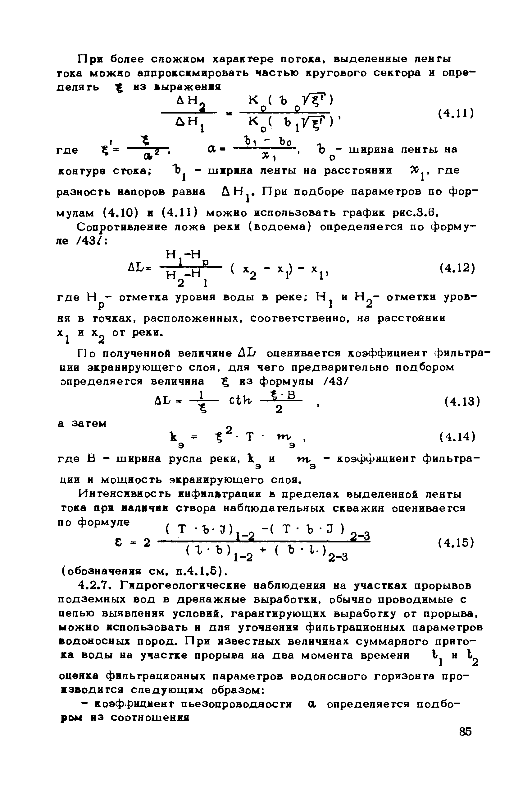 Методические указания по определению гидрогеологических параметров при разведке и освоении угольных месторождений| Статус: | справочные материалы, мп, тпр | | Название рус.: | Методические указания по определению гидрогеологических параметров при разведке и освоении угольных месторождений | | Дата добавления в базу: | 01.01.2019 | | Дата актуализации: | 01.01.2021 | | Область применения: | В документе изложена методика определения основных фильтрационных параметров водоносных горизонтов по результатам опытных откачек и гидрогеологических наблюдений за режимом подземных вод | | Оглавление: | Введение 1. Краткая характеристика основных фильтрационных параметров 1.1. Коэффициент фильтрации и проводимость 1.2. Водоотдача и упругая водоотдача 1.3. Коэффициенты уровнепроводности и пьезопроводности 1.4. Некоторые дополнительные фильтрационные параметры 2. Основные дифференциальные уравнения фильтрации и их решения в связи с определением фильтрационных параметров 2.1. Исходные дифференциальные уравнения фильтрации 2.2. Гидродинамическая типизация пластов, граничные и начальные условия фильтрации 2.3. Простейшие аналитические решения установившейся фильтрации, используемые для определения фильтрационных параметров 2.4. Основные решения неустановившейся фильтрации, используемые для определения фильтрационных параметров 2.5. Основные сведения о методах определения фильтрационных параметров по результатам откачек 3. Методика интерпретации результатов опытных откачек 3.1. Качественная интерпретация результатов и предварительная опенка общих закономерностей фильтрации при кустовых откачках 3.2. Основные способы определения фильтрационных параметров в неограниченном изолированном однородном горизонте 3.3. Определение параметров изолированных водоносных горизонтов при типовых граничных условиях 3.4. Определение параметров слоистых водоносных толщ при установившемся режиме фильтрации с учетом перетекания 3.5. Методы определения параметров слоистых толщ по результатам опытных откачек при неустановившемся режиме с учетом перетекания 3.6. Определение параметров слоистых водоносных толщ с помощью приближенных решений, полученных методом интегральных соотношений 3.7. Некоторые замечания о методах интерпретации одиночных опытных откачек 4. Методика интерпретации результатов гидрогеологических наблюдений, проводимых в период эксплуатации месторождений 4.1. Качественная интерпретация результатов гидрогеологических наблюдений 4.2. Определение основных фильтрационных параметров по результатам гидрогеологических наблюдений 4.3. Интерпретация результатов опытно-эксплуатационного водопонижения 5. Специальные методы определения фильтрационных параметров 5.1. Операционный метод 5.2. Метод В.Б. Георгиевского 5.3. Определение гидрогеологических параметров на электрических моделях Приложение 1. Специальные математические функции, используемые при гидрогеологических расчетах Приложение 2. Таблица значения функции -Ei Приложение 3. Таблица значения функции A Приложение 4. Таблица значения функции G Приложение 5. Интеграл вероятности Ф Приложение 6. Таблица значения функции S Приложение 7. Таблица значения функции T Приложение 8. Таблица значения функции W Приложение 9. Таблица значения функции H Приложение 10. Значения функции e в степени x Приложение 11. Та
