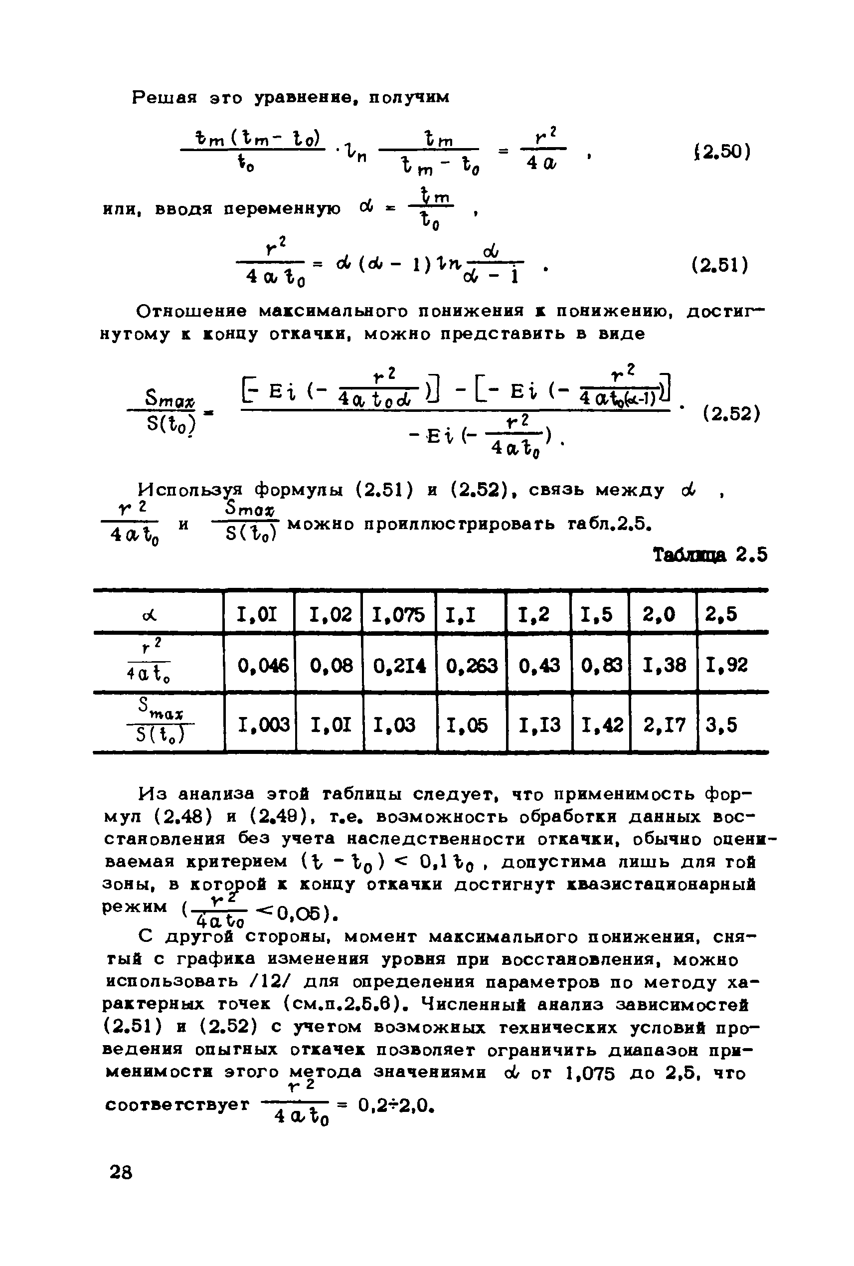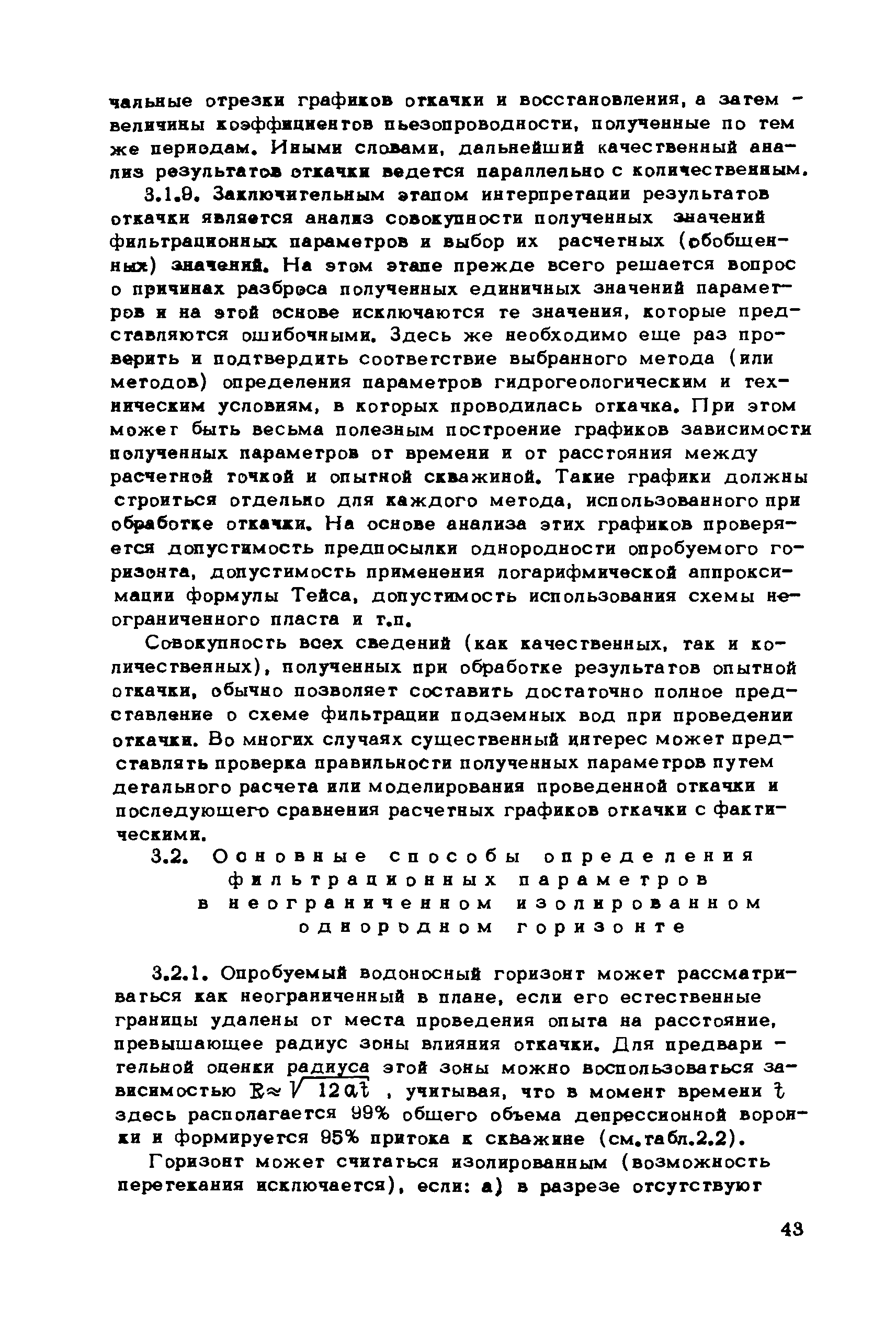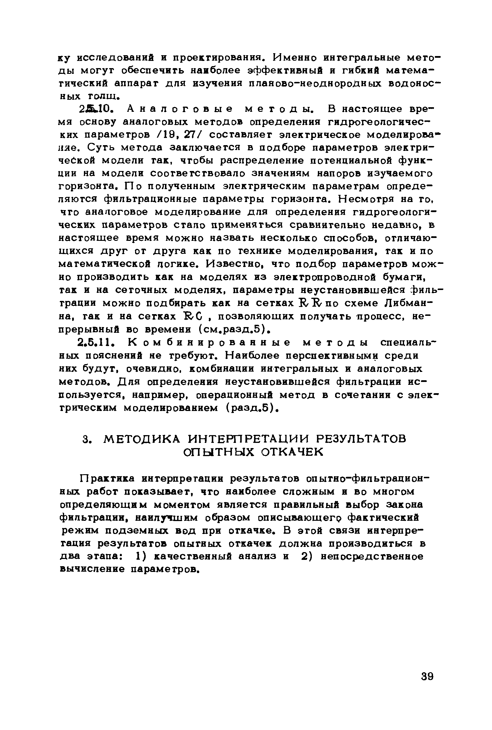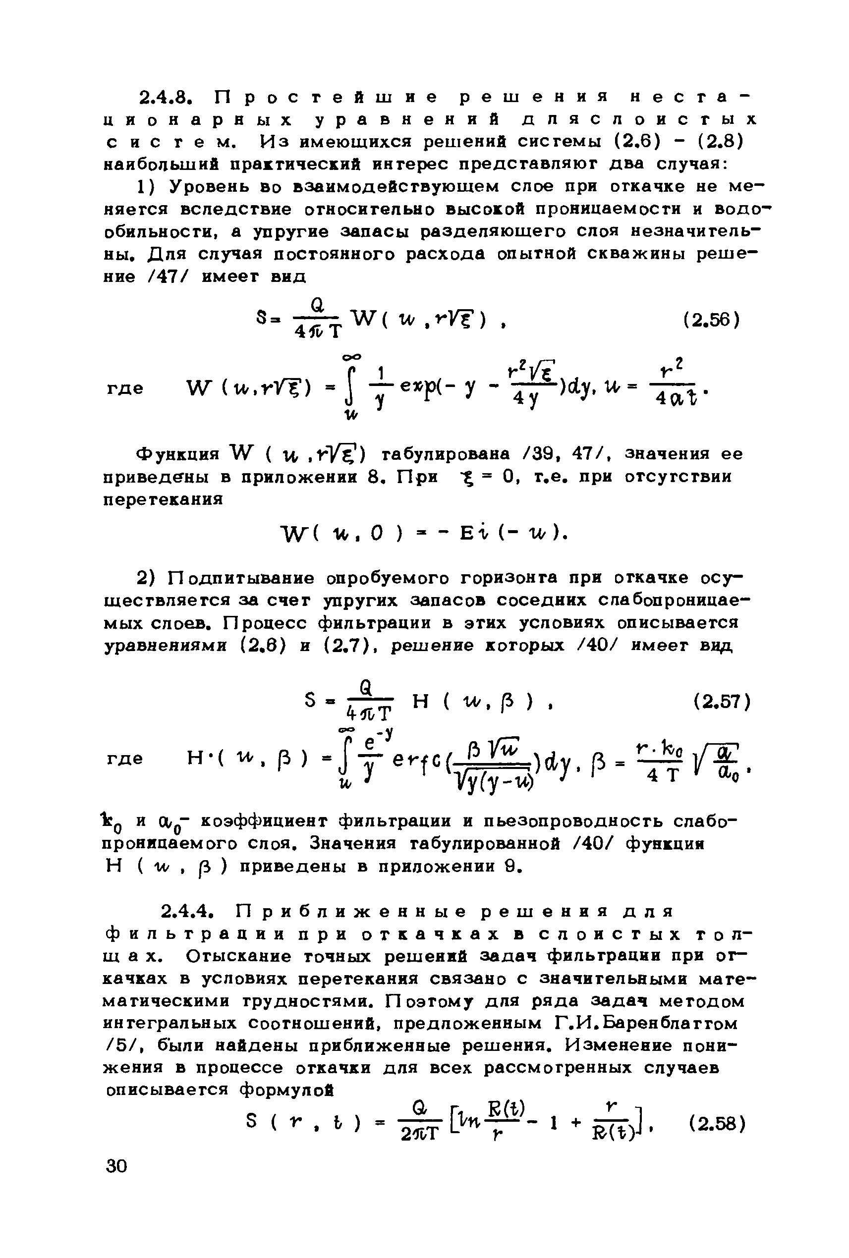 Методические указания по определению гидрогеологических параметров при разведке и освоении угольных месторождений| Статус: | справочные материалы, мп, тпр | | Название рус.: | Методические указания по определению гидрогеологических параметров при разведке и освоении угольных месторождений | | Дата добавления в базу: | 01.01.2019 | | Дата актуализации: | 01.01.2021 | | Область применения: | В документе изложена методика определения основных фильтрационных параметров водоносных горизонтов по результатам опытных откачек и гидрогеологических наблюдений за режимом подземных вод | | Оглавление: | Введение 1. Краткая характеристика основных фильтрационных параметров 1.1. Коэффициент фильтрации и проводимость 1.2. Водоотдача и упругая водоотдача 1.3. Коэффициенты уровнепроводности и пьезопроводности 1.4. Некоторые дополнительные фильтрационные параметры 2. Основные дифференциальные уравнения фильтрации и их решения в связи с определением фильтрационных параметров 2.1. Исходные дифференциальные уравнения фильтрации 2.2. Гидродинамическая типизация пластов, граничные и начальные условия фильтрации 2.3. Простейшие аналитические решения установившейся фильтрации, используемые для определения фильтрационных параметров 2.4. Основные решения неустановившейся фильтрации, используемые для определения фильтрационных параметров 2.5. Основные сведения о методах определения фильтрационных параметров по результатам откачек 3. Методика интерпретации результатов опытных откачек 3.1. Качественная интерпретация результатов и предварительная опенка общих закономерностей фильтрации при кустовых откачках 3.2. Основные способы определения фильтрационных параметров в неограниченном изолированном однородном горизонте 3.3. Определение параметров изолированных водоносных горизонтов при типовых граничных условиях 3.4. Определение параметров слоистых водоносных толщ при установившемся режиме фильтрации с учетом перетекания 3.5. Методы определения параметров слоистых толщ по результатам опытных откачек при неустановившемся режиме с учетом перетекания 3.6. Определение параметров слоистых водоносных толщ с помощью приближенных решений, полученных методом интегральных соотношений 3.7. Некоторые замечания о методах интерпретации одиночных опытных откачек 4. Методика интерпретации результатов гидрогеологических наблюдений, проводимых в период эксплуатации месторождений 4.1. Качественная интерпретация результатов гидрогеологических наблюдений 4.2. Определение основных фильтрационных параметров по результатам гидрогеологических наблюдений 4.3. Интерпретация результатов опытно-эксплуатационного водопонижения 5. Специальные методы определения фильтрационных параметров 5.1. Операционный метод 5.2. Метод В.Б. Георгиевского 5.3. Определение гидрогеологических параметров на электрических моделях Приложение 1. Специальные математические функции, используемые при гидрогеологических расчетах Приложение 2. Таблица значения функции -Ei Приложение 3. Таблица значения функции A Приложение 4. Таблица значения функции G Приложение 5. Интеграл вероятности Ф Приложение 6. Таблица значения функции S Приложение 7. Таблица значения функции T Приложение 8. Таблица значения функции W Приложение 9. Таблица значения функции H Приложение 10. Значения функции e в степени x Приложение 11. Та