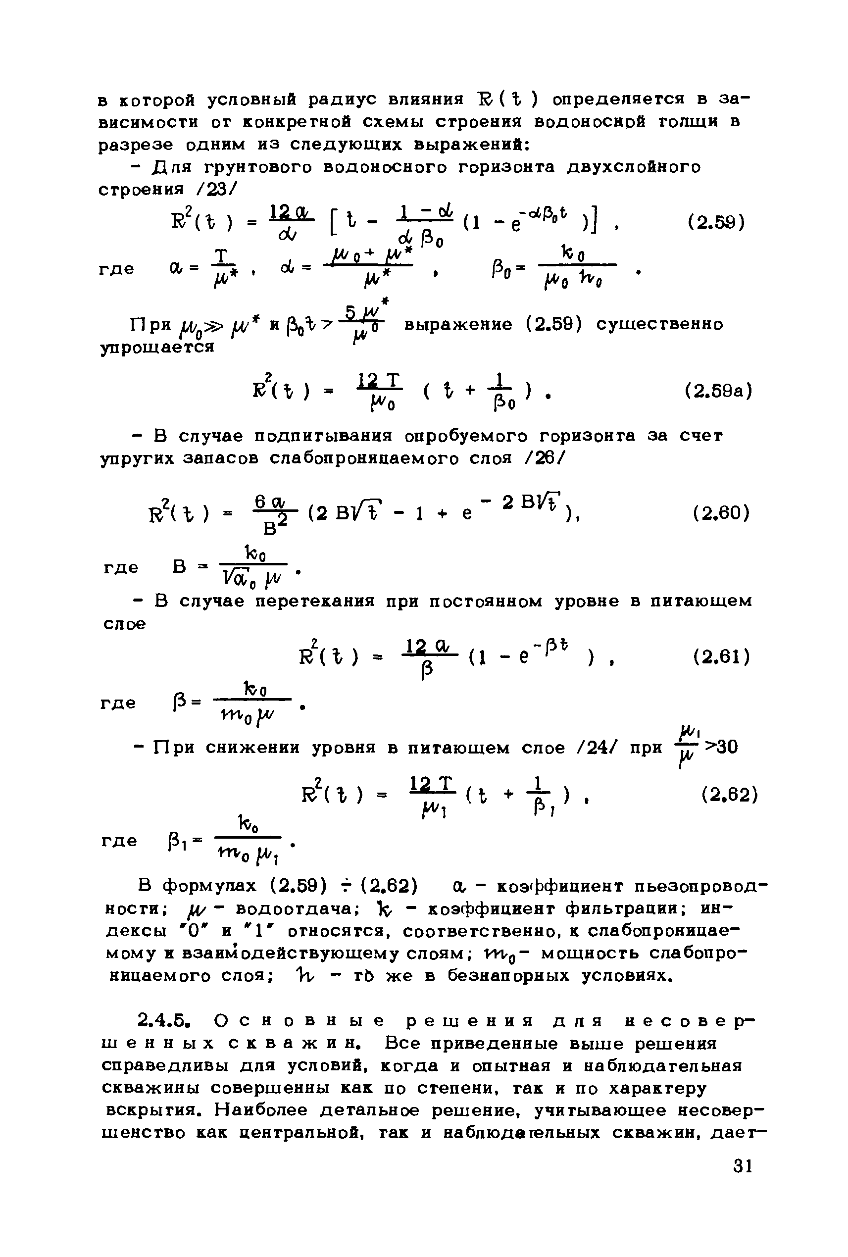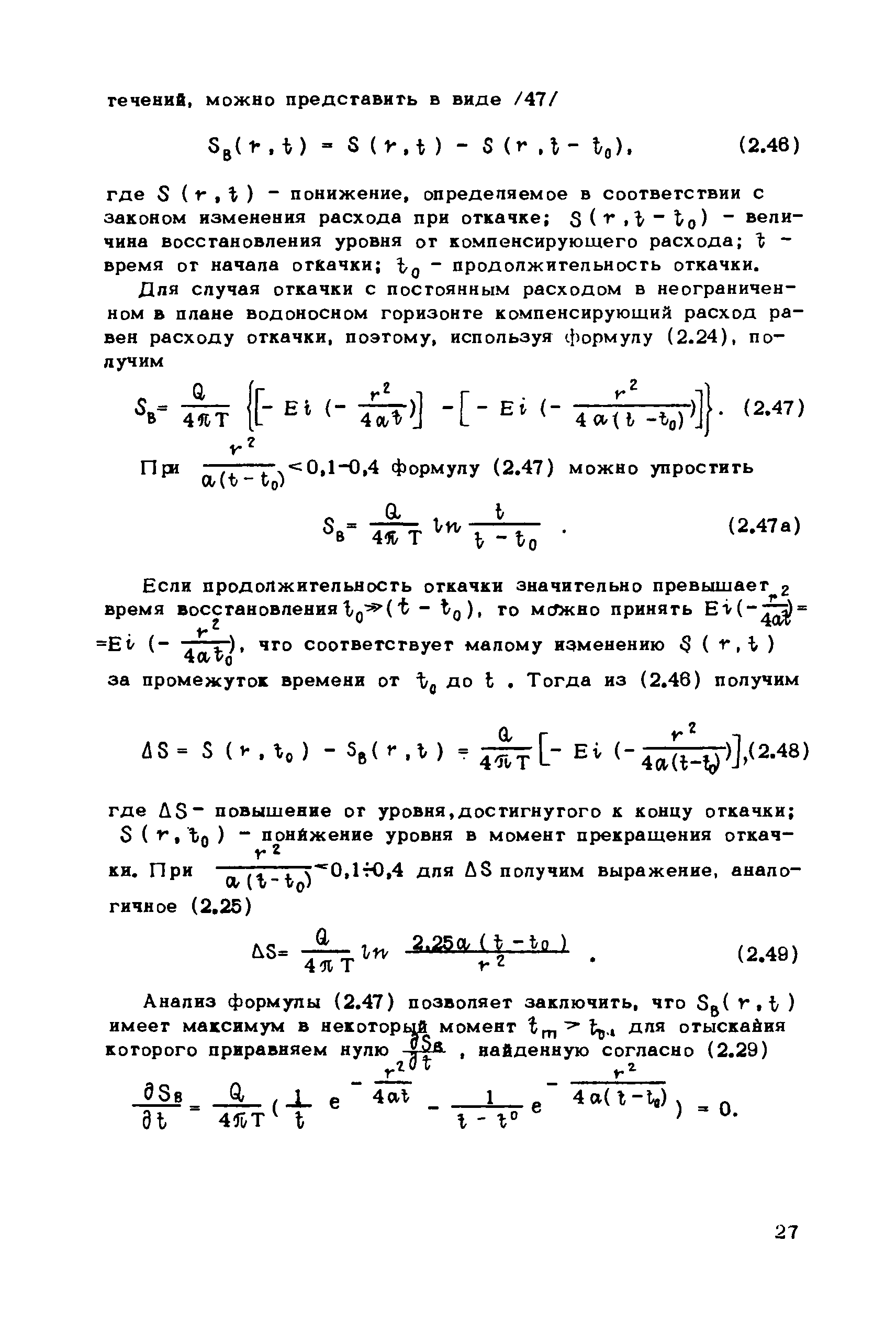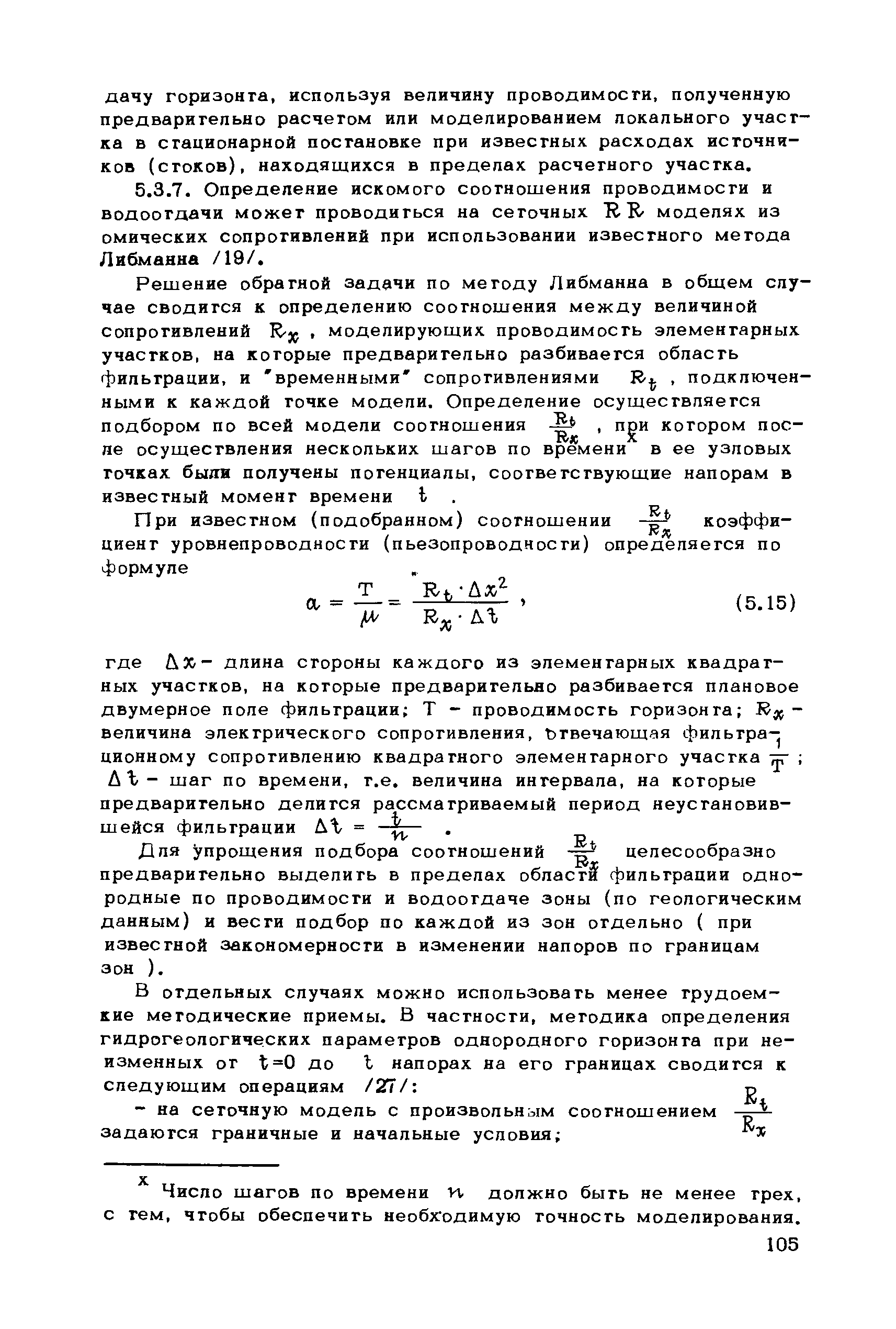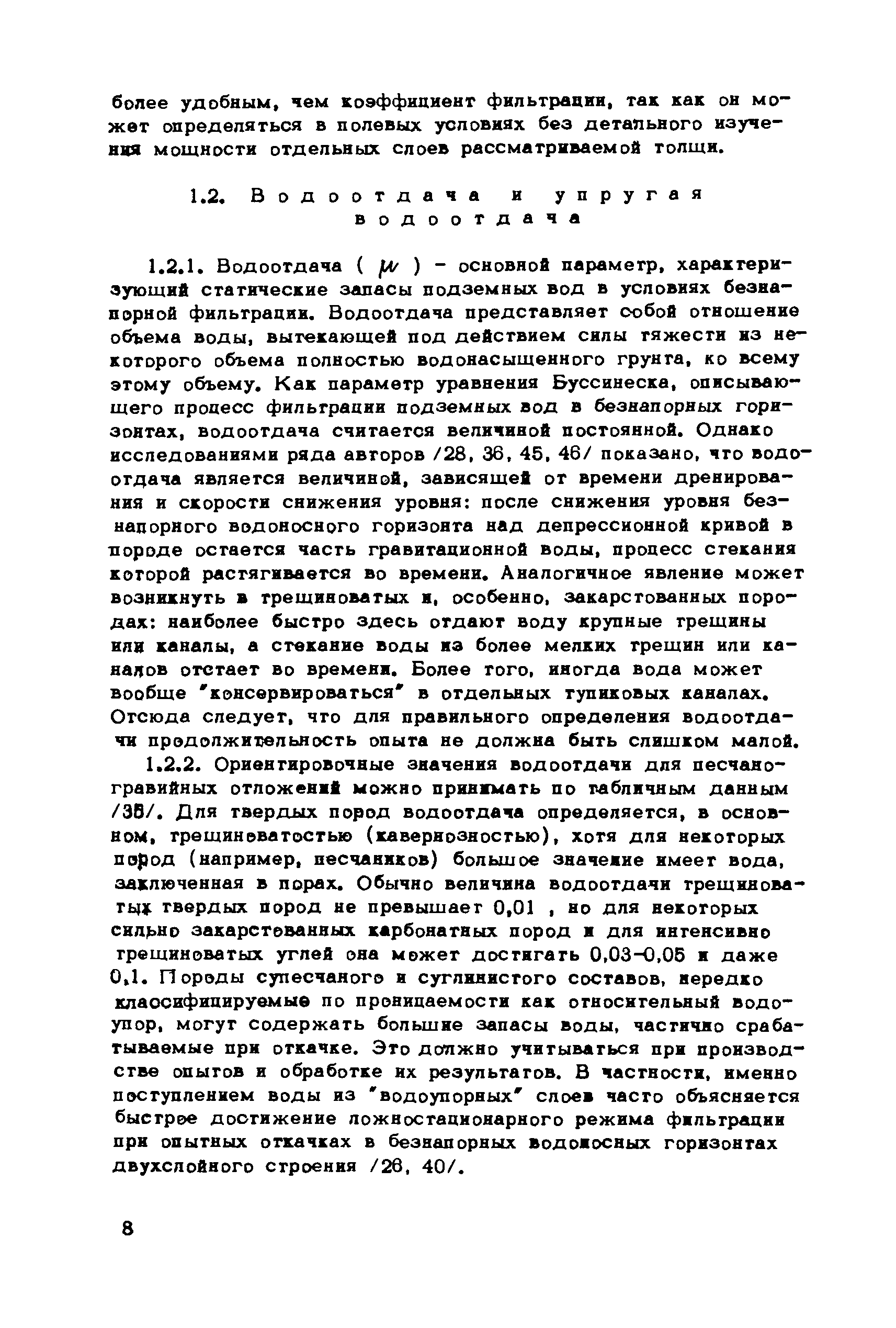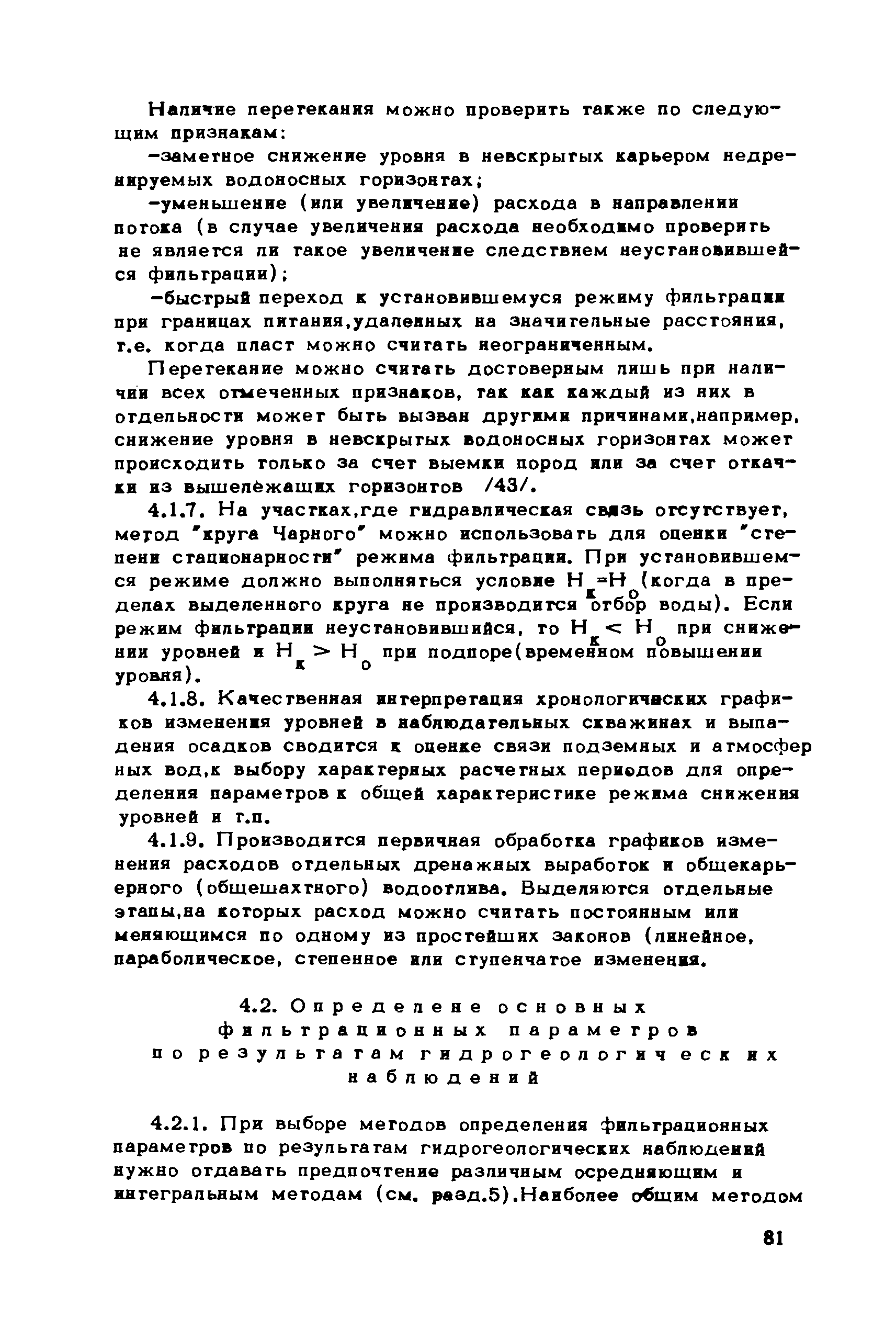 Методические указания по определению гидрогеологических параметров при разведке и освоении угольных месторождений| Статус: | справочные материалы, мп, тпр | | Название рус.: | Методические указания по определению гидрогеологических параметров при разведке и освоении угольных месторождений | | Дата добавления в базу: | 01.01.2019 | | Дата актуализации: | 01.01.2021 | | Область применения: | В документе изложена методика определения основных фильтрационных параметров водоносных горизонтов по результатам опытных откачек и гидрогеологических наблюдений за режимом подземных вод | | Оглавление: | Введение 1. Краткая характеристика основных фильтрационных параметров 1.1. Коэффициент фильтрации и проводимость 1.2. Водоотдача и упругая водоотдача 1.3. Коэффициенты уровнепроводности и пьезопроводности 1.4. Некоторые дополнительные фильтрационные параметры 2. Основные дифференциальные уравнения фильтрации и их решения в связи с определением фильтрационных параметров 2.1. Исходные дифференциальные уравнения фильтрации 2.2. Гидродинамическая типизация пластов, граничные и начальные условия фильтрации 2.3. Простейшие аналитические решения установившейся фильтрации, используемые для определения фильтрационных параметров 2.4. Основные решения неустановившейся фильтрации, используемые для определения фильтрационных параметров 2.5. Основные сведения о методах определения фильтрационных параметров по результатам откачек 3. Методика интерпретации результатов опытных откачек 3.1. Качественная интерпретация результатов и предварительная опенка общих закономерностей фильтрации при кустовых откачках 3.2. Основные способы определения фильтрационных параметров в неограниченном изолированном однородном горизонте 3.3. Определение параметров изолированных водоносных горизонтов при типовых граничных условиях 3.4. Определение параметров слоистых водоносных толщ при установившемся режиме фильтрации с учетом перетекания 3.5. Методы определения параметров слоистых толщ по результатам опытных откачек при неустановившемся режиме с учетом перетекания 3.6. Определение параметров слоистых водоносных толщ с помощью приближенных решений, полученных методом интегральных соотношений 3.7. Некоторые замечания о методах интерпретации одиночных опытных откачек 4. Методика интерпретации результатов гидрогеологических наблюдений, проводимых в период эксплуатации месторождений 4.1. Качественная интерпретация результатов гидрогеологических наблюдений 4.2. Определение основных фильтрационных параметров по результатам гидрогеологических наблюдений 4.3. Интерпретация результатов опытно-эксплуатационного водопонижения 5. Специальные методы определения фильтрационных параметров 5.1. Операционный метод 5.2. Метод В.Б. Георгиевского 5.3. Определение гидрогеологических параметров на электрических моделях Приложение 1. Специальные математические функции, используемые при гидрогеологических расчетах Приложение 2. Таблица значения функции -Ei Приложение 3. Таблица значения функции A Приложение 4. Таблица значения функции G Приложение 5. Интеграл вероятности Ф Приложение 6. Таблица значения функции S Приложение 7. Таблица значения функции T Приложение 8. Таблица значения функции W Приложение 9. Таблица значения функции H Приложение 10. Значения функции e в степени x Приложение 11. Та