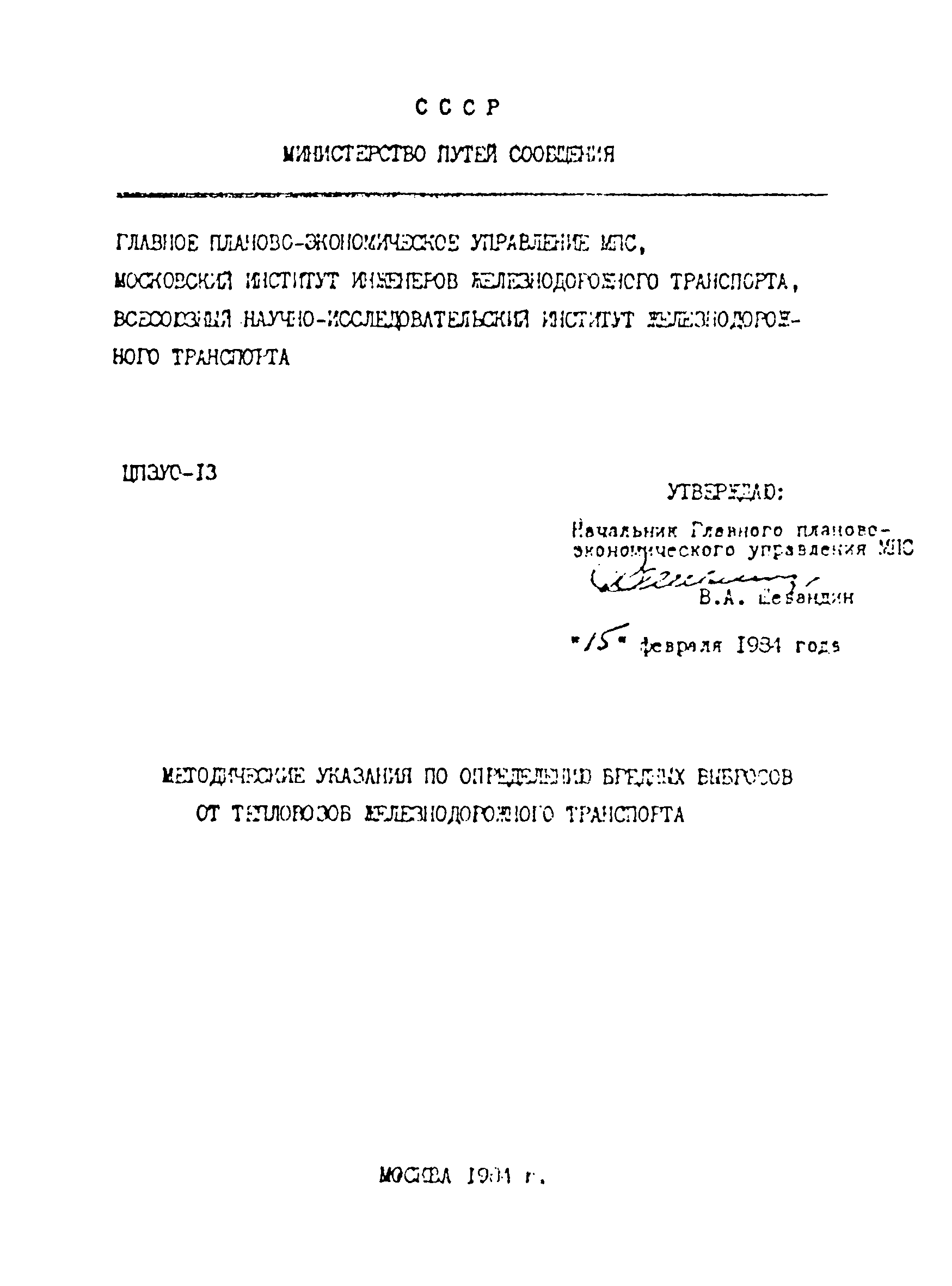 | Утверждён: | 15.02.1984 Главное планово-экономическое управление МПС |
