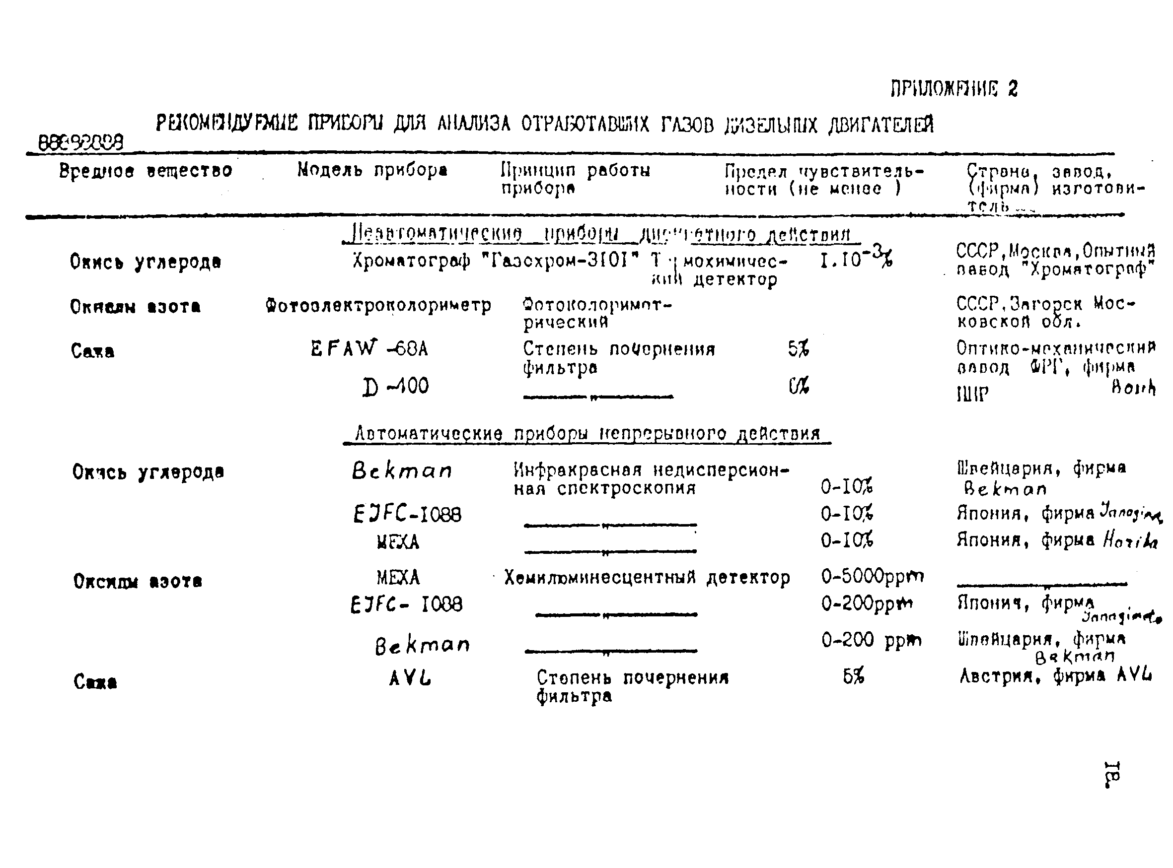 | Оглавление: | 1 Общие положения 2 Определение величин выбросов вредных веществ с отработавшими газами по оценочным показателям технико-экологического качества дизелей и тепловозов 3 Программа режимных испытаний 4 Определение массовых концентраций вредных веществ в отработанных газах 5 Методы прямого измерения величин вредных выбросов в отработанных газах 6 Организация испытаний Приложение 1. Рекомендуемая для проведения отбора проб отработавших газов тепловозных дизелей Приложение 2. Рекомендуемые приборы для анализа отработавших газов дизельных двигателей Приложение 3. Пример расчета величин выбросов вредных веществ в атмосферу от приписного парка тепловозов локомотивного депо Литература |