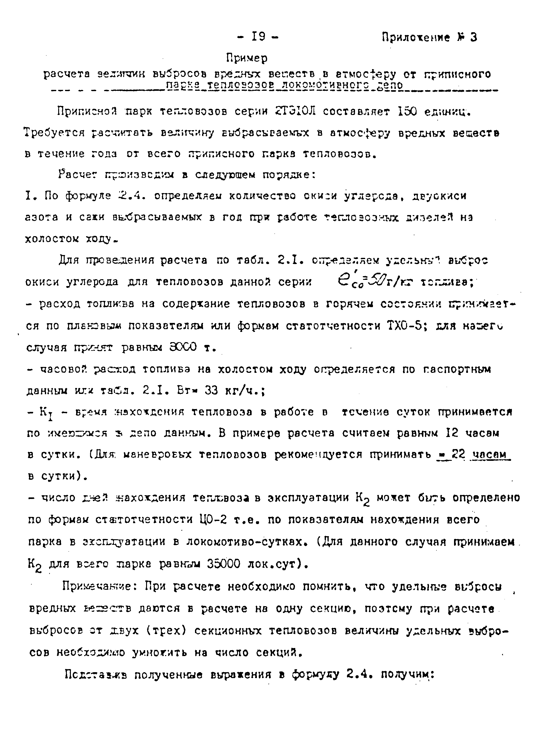 | Область применения: | Документ предназначен для производства расчета величин выбросов вредных веществ в атмосферу с отработавшими газами тепловозов на предприятиях МПС эксплуатирующих тепловозы |