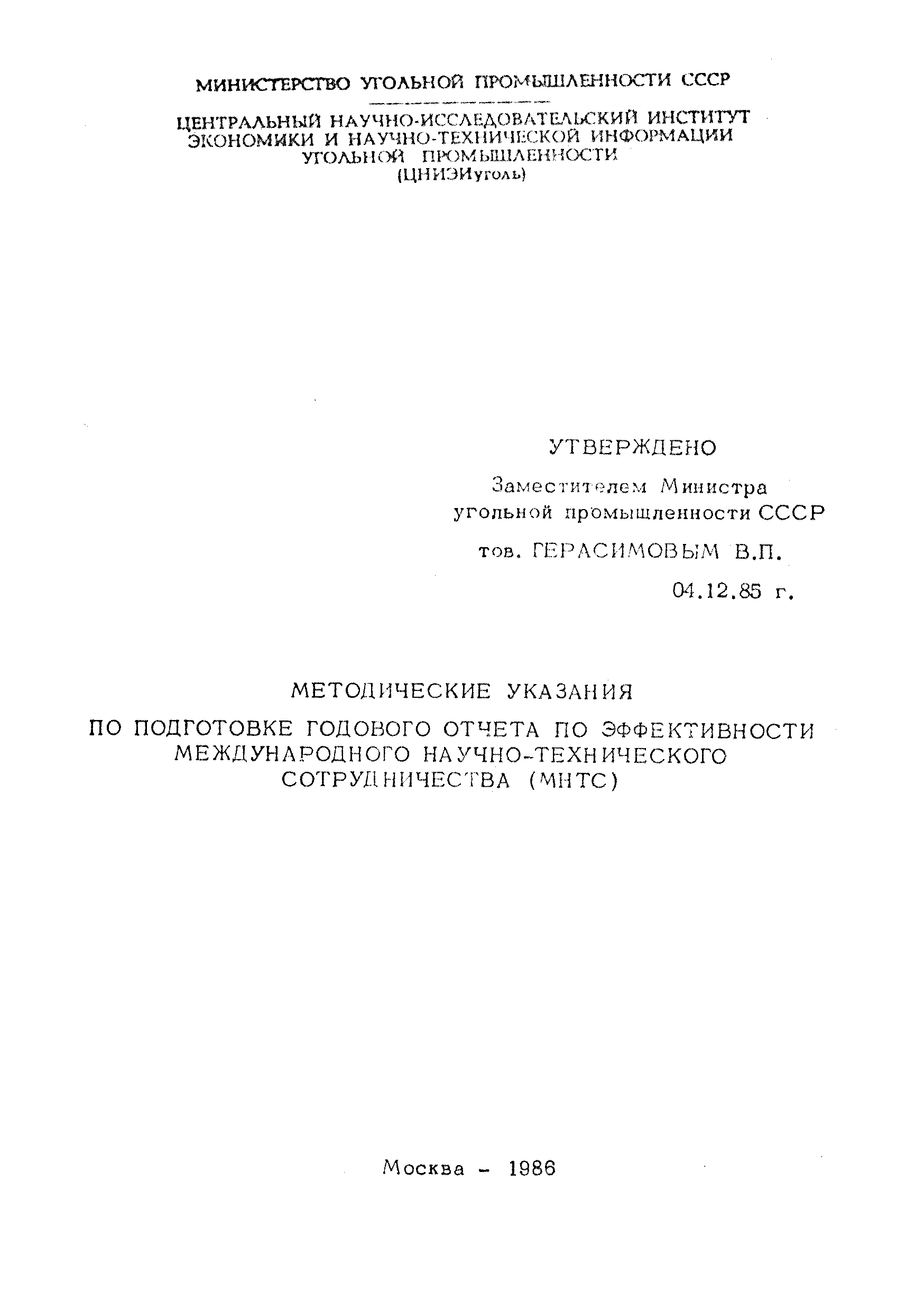 | Область применения: | Методические указания рекомендуют единые принципы определения эффективности МНТС. Методические указания предназначены для применения всеми подразделениями, организациями и предприятиями Минуглепрома СССР, осуществляющими МНТС |