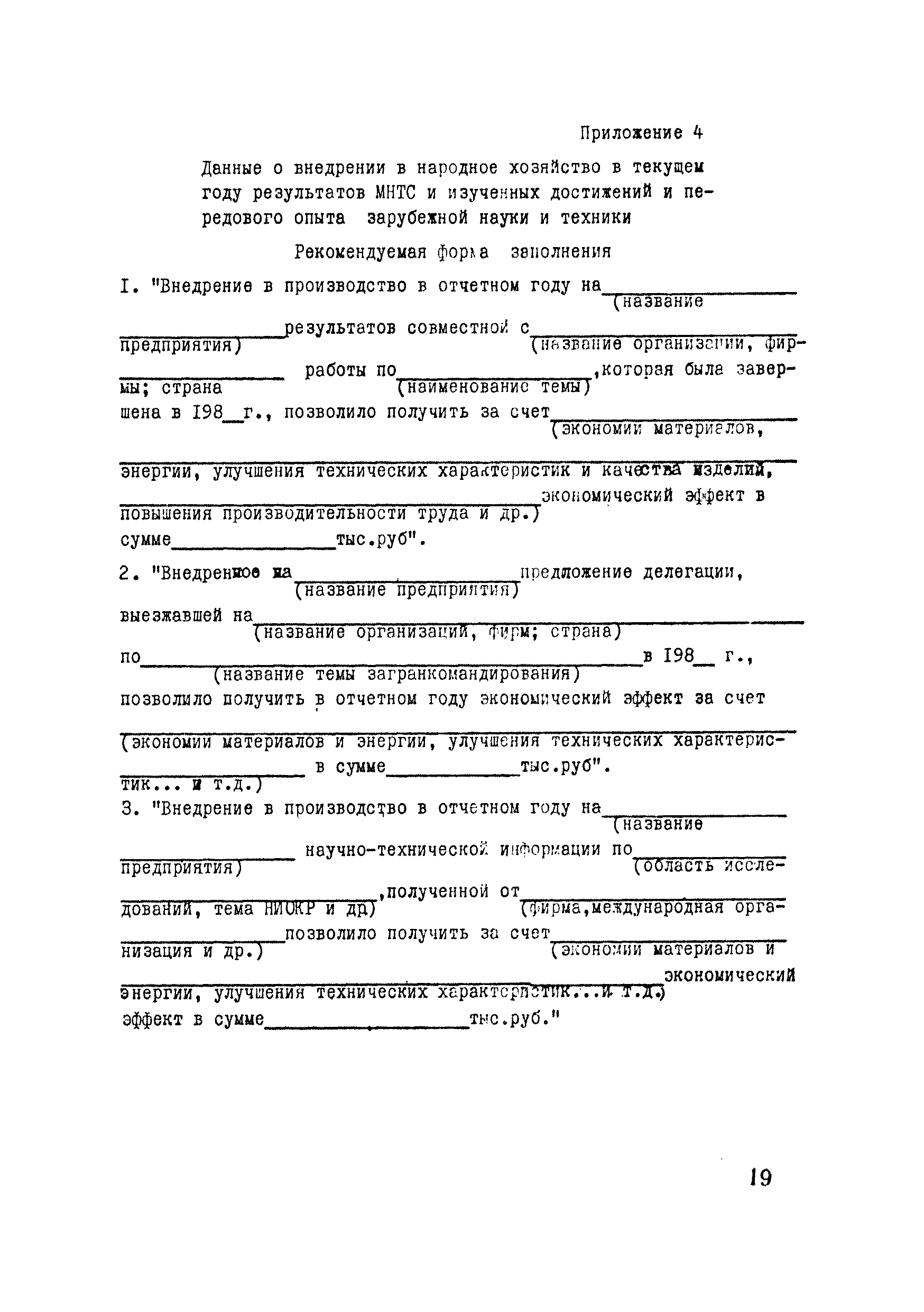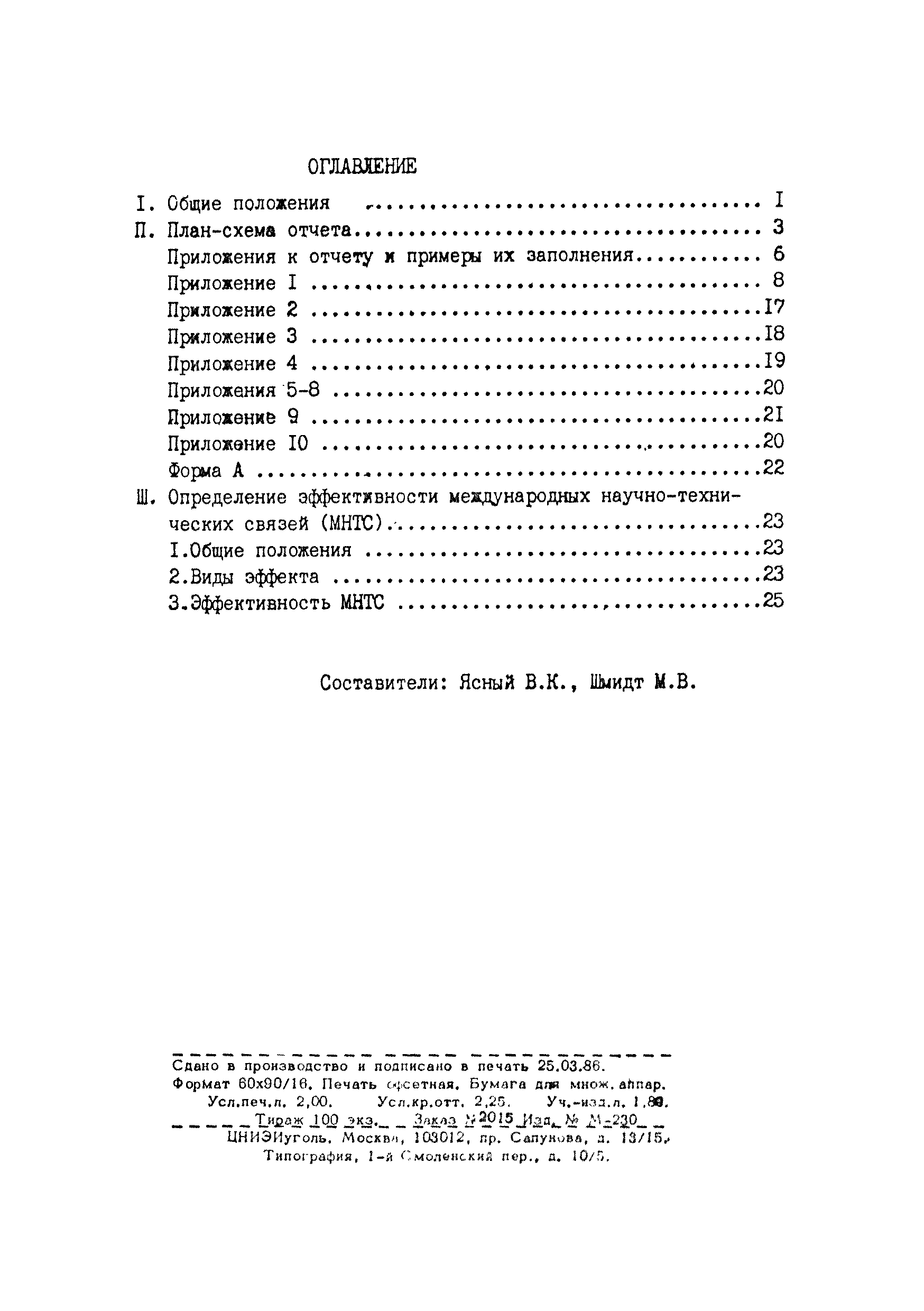 | Оглавление: | 1. Общие положения 2. План-схема отчета Приложения к отчету и примеры их заполнения Приложение 1 Приложение 2 Приложение 3 Приложение 4 Приложения 5—8 Приложение 9 Приложение 10 Форма А 3. Определение эффективности международных научно-технических связей (МНТС) 1. Общие положения 2. Виды эффекта 3. Эффективность МНТС |