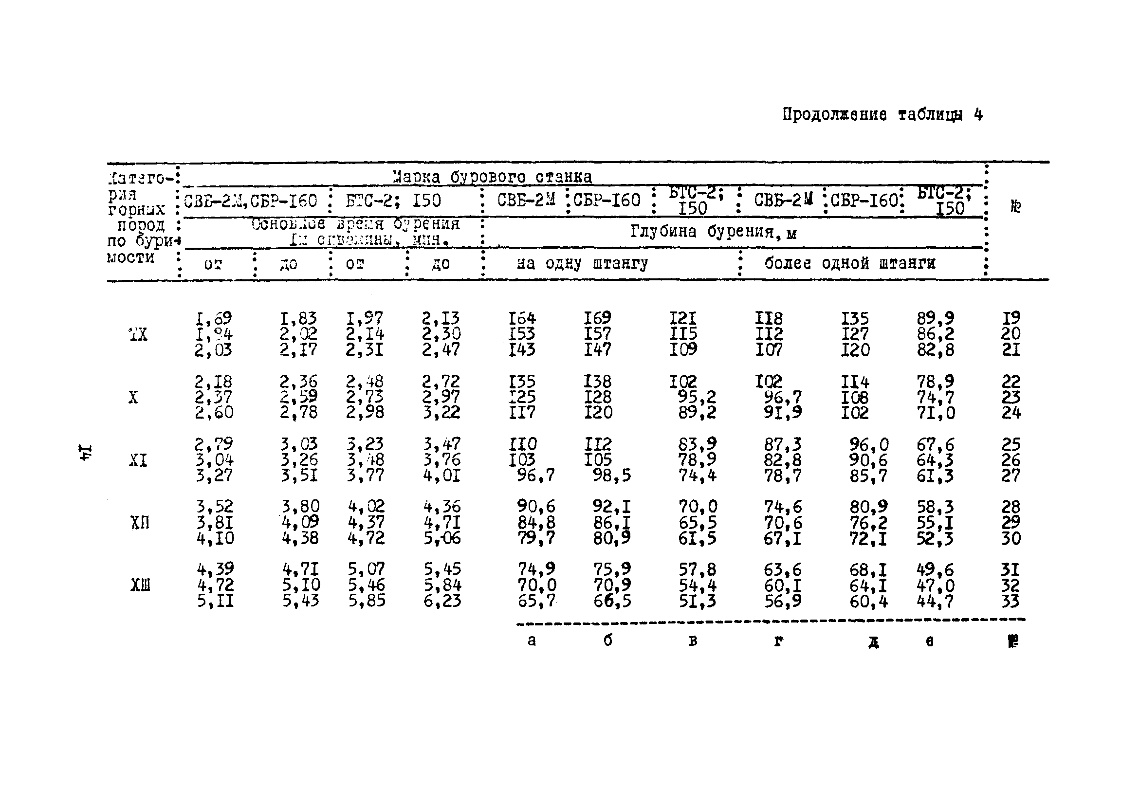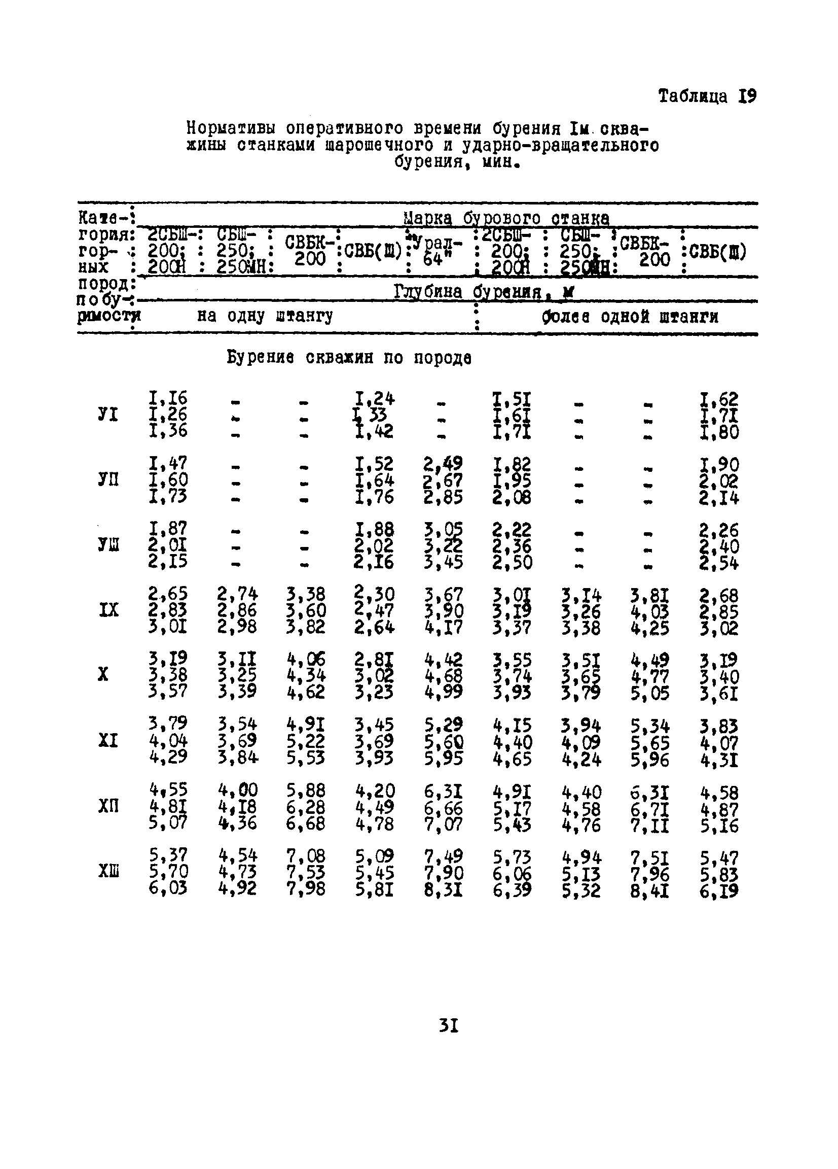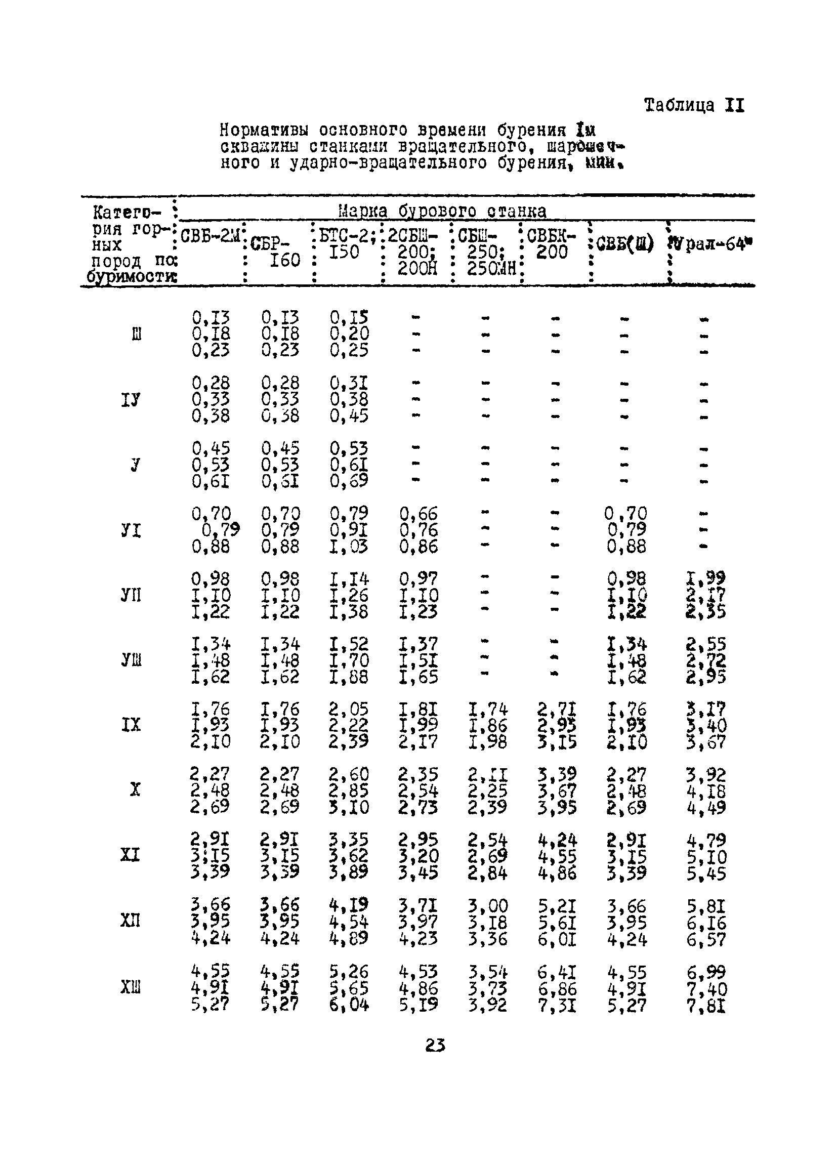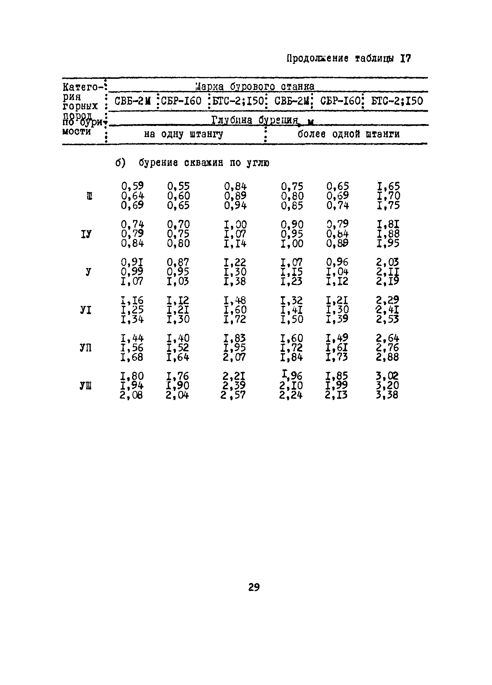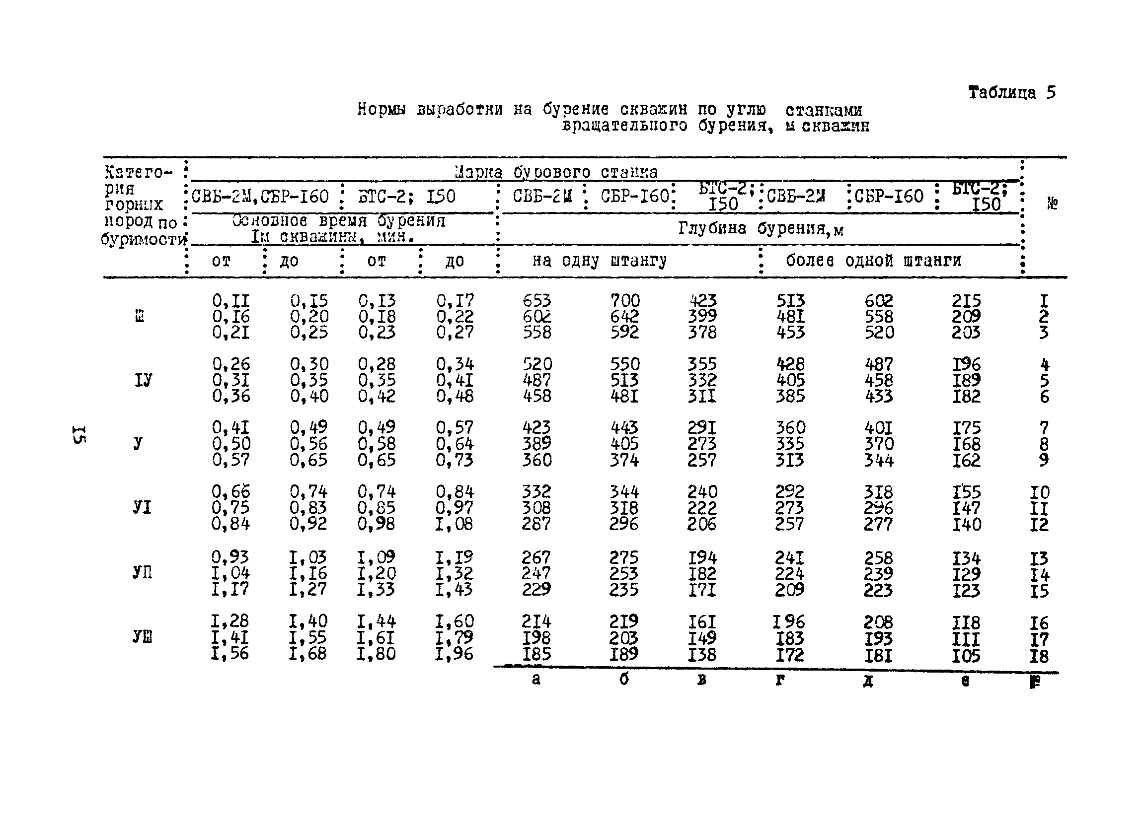 Единые нормы выработки (времени) на бурение скважин на открытых горных работах предприятий угольной и сланцевой промышленности| Статус: | справочные материалы, мп, тпр | | Название рус.: | Единые нормы выработки (времени) на бурение скважин на открытых горных работах предприятий угольной и сланцевой промышленности | | Дата добавления в базу: | 01.01.2019 | | Дата актуализации: | 01.01.2021 | | Область применения: | Документ содержит нормы выработки и нормативы времени на бурение скважин станками ударно-вращательного, вращательного и шарошечного бурения. Является обязательным для применения на предприятиях на предприятиях угольной и сланцевой промышленности Минуглепрома СССР | | Оглавление: | 1. Общая часть 2. Техническая часть 3. Организация работ 4. Нормативная часть Глава 1. Нормы выработки 1. Бурение скважин станками вращательного бурения СВБ-2М, СВР-160, БТС-2, БТС-150 2. Бурение скважин станками шарошечного бурения 2СБШ-200; 200Н, СБШ-250; 250МН, СВБК-200, СВБ(Ш) 3. Бурение скважин станками ударно-вращательного бурения Урал-64 Глава 2. Нормативы времени Нормативы времени на подготовительно-заключительные операции для станков вращательного, шарошечного и ударно-вращательного бурения Нормативы основного времени бурения 1м скважины станками вращательного, шарошечного и ударно-вращательного бурения Нормативы вспомогательного времени бурения 1м скважины станками вращательного бурения Нормативы вспомогательного времени бурения 1м скважины диаметром 110 - 115 мм станками вращательного бурения СВБ-2М Нормативы вспомогательного времени бурения 1м скважины станками шарошечного бурения Нормативы вспомогательного времени бурения 1м скважины станками шарошечного бурения СВБ(Ш) Нормативы вспомогательного времени бурения 1м скважины станками вращательного бурения Урал-64 Нормативы оперативного времени бурения 1м скважины станками вращательного бурения Нормативы оперативного времени бурения 1м скважины диаметром 110 - 115 мм станками вращательного бурения СВБ-2м Нормативы оперативного времени бурения 1м скважины станками шарошечного и ударно-вращательного бурения Приложение 1. Методика расчета норм выработки Приложение 2. Единая классификация горных пород Приложение 3. Инструкция по определению категорий горных пород при бурении станками вращательного, ударно-вращательного бурения станками СВБ(Ш) Приложение 4. Инструкция по определению категорий горных пород при бурении станками шарошечного бурения Приложение 5. Условия и порядок определения категорий буримости горных пород Приложение 6. Температурные зоны по союзным республикам, АССР, краям и областям СССР Список литературы | | Разработан: | НИС производственного объединения Кемеровоуголь