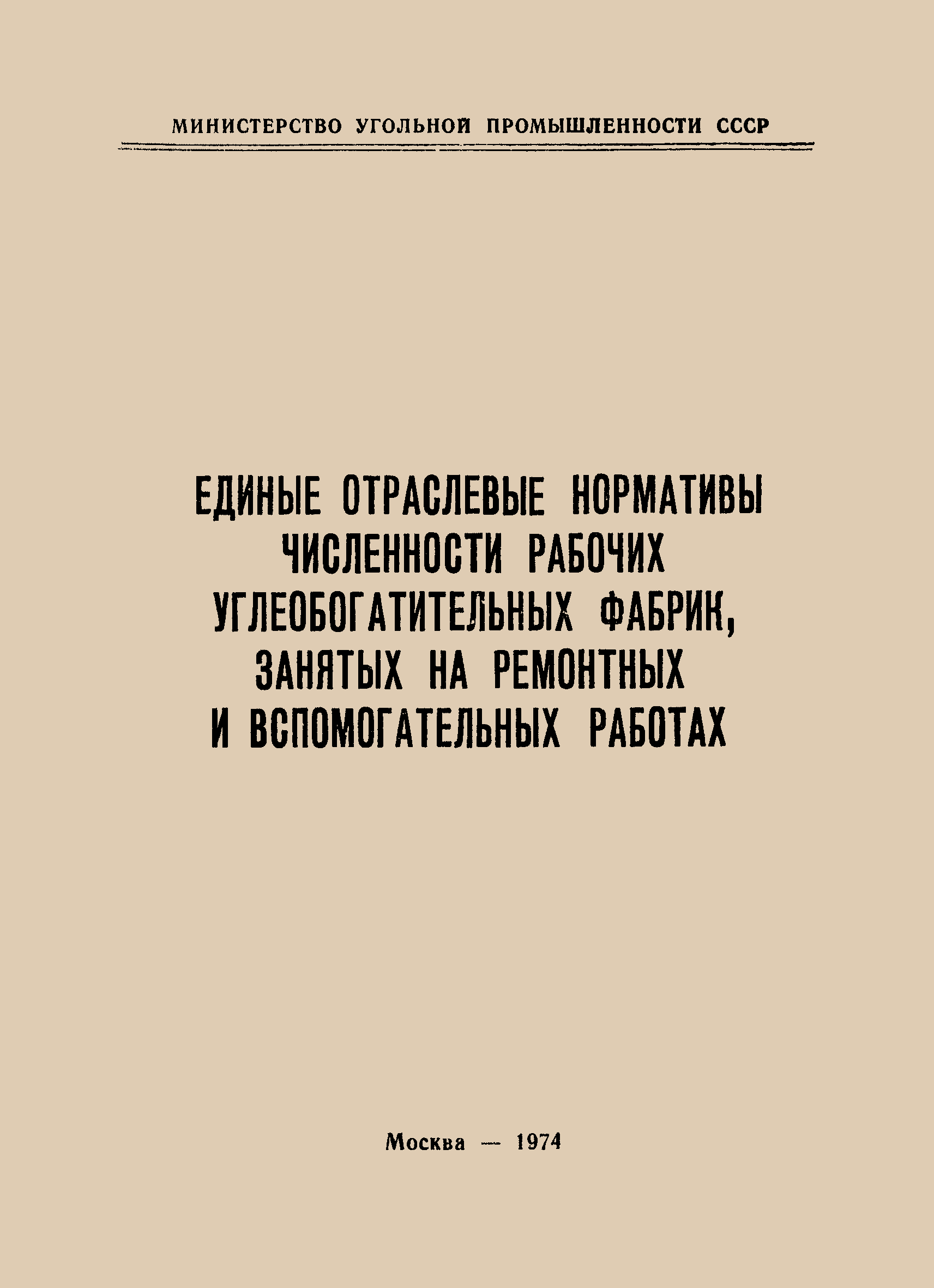 | Название рус.: | Единые отраслевые нормативы численности рабочих углеобогатительных фабрик, занятых на ремонтных и вспомогательных работах |
