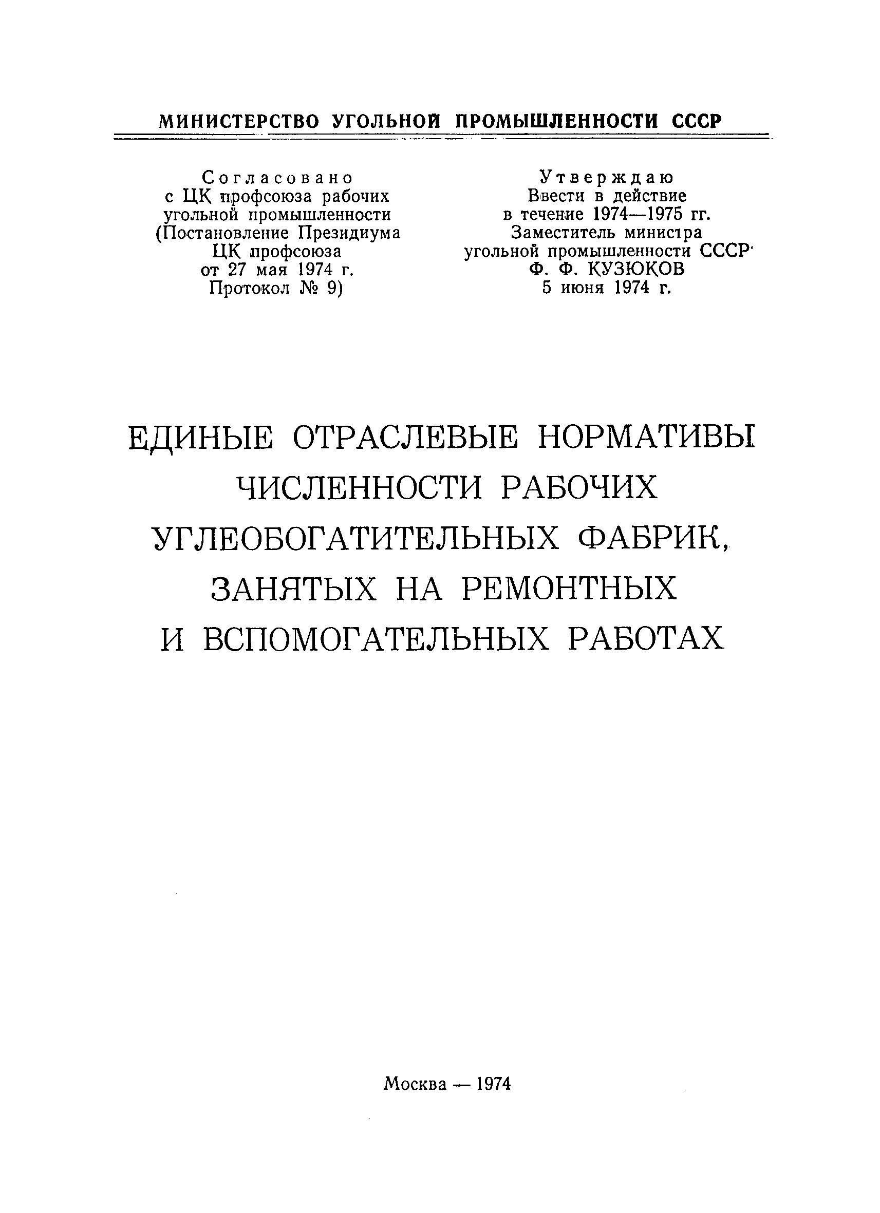 | Принят: | 27.05.1974 ЦК профсоюза рабочих угольной промышленности СССР (9)