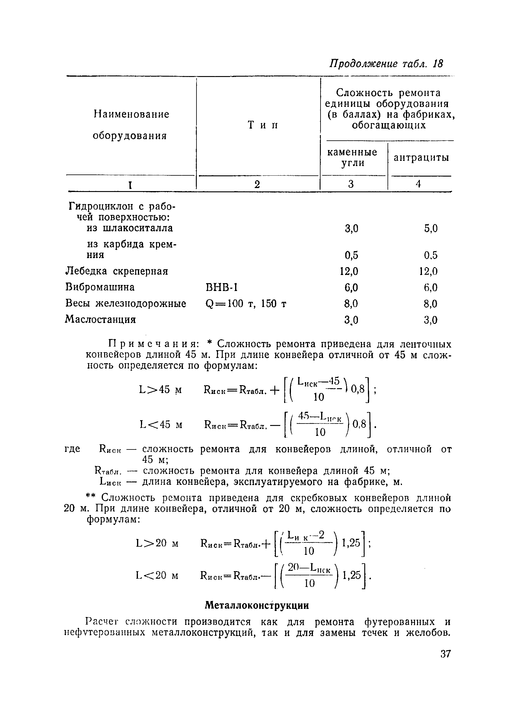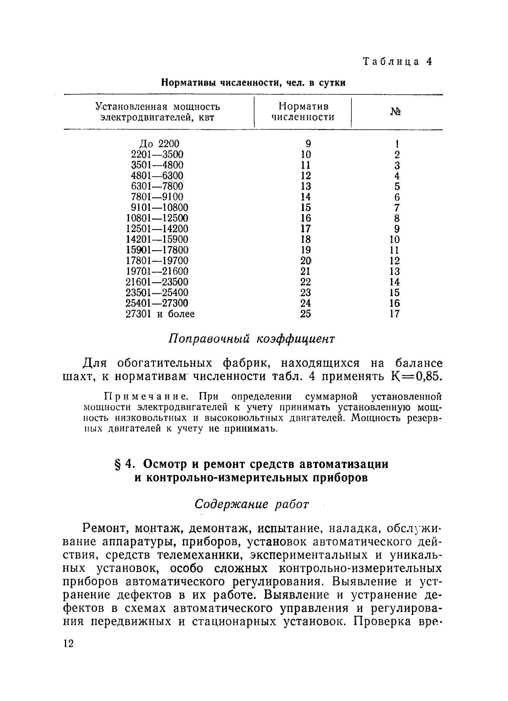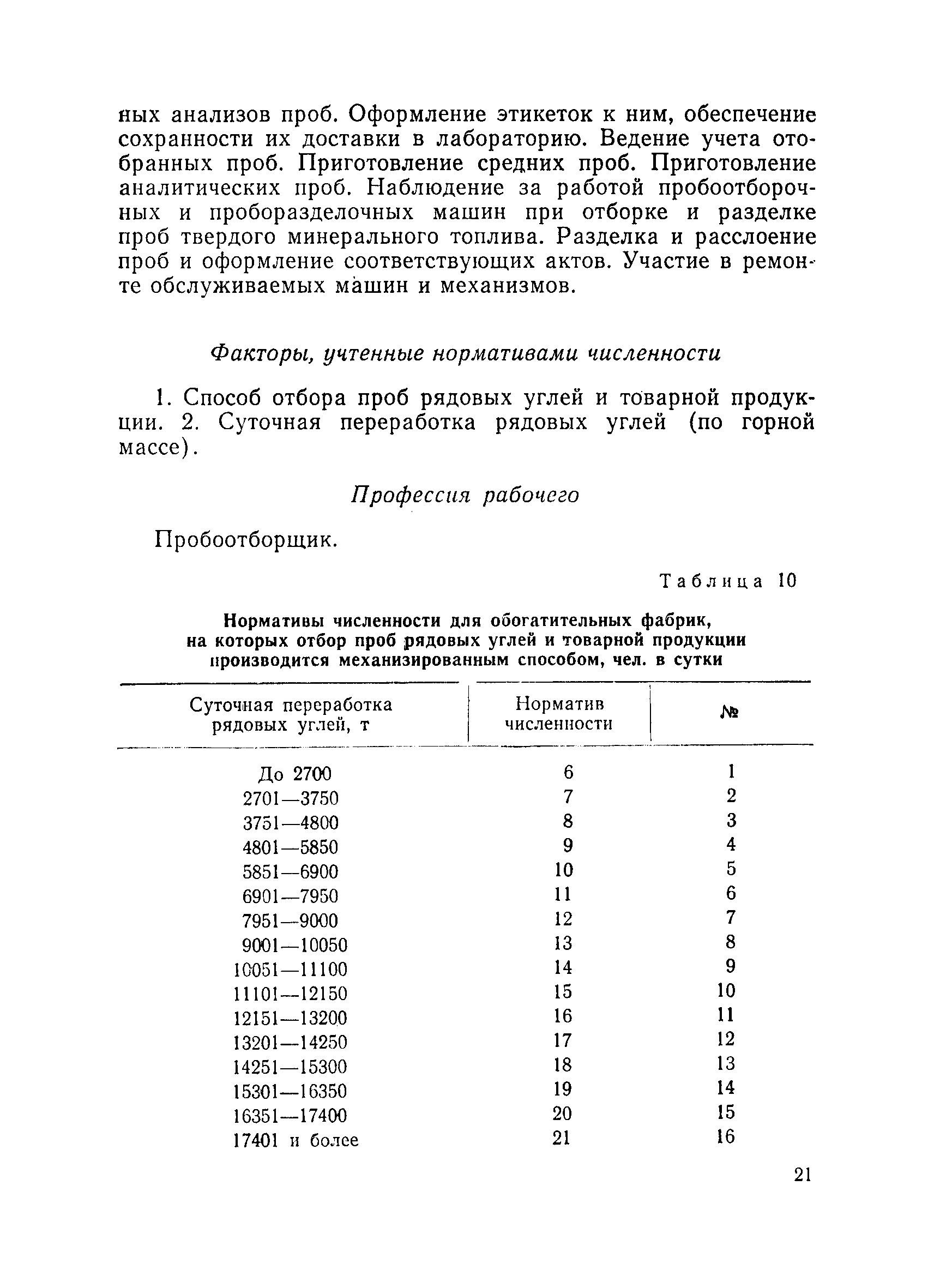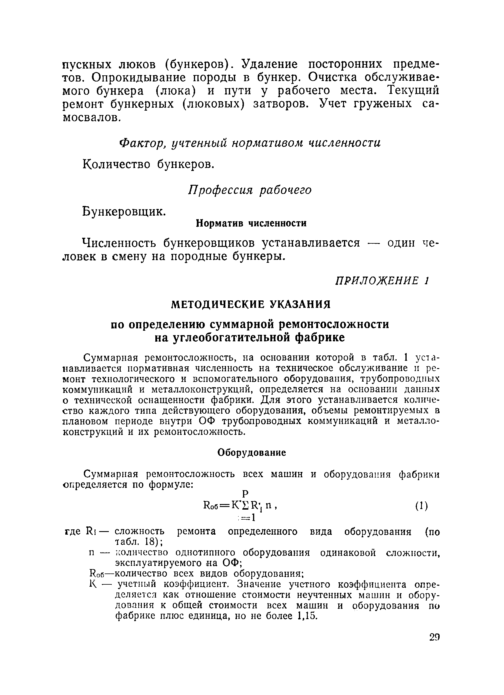 | Оглавление: | Общая часть Нормативная часть § 1. Техническое обслуживание и ремонт технологического и вспомогательного оборудования, трубопроводных коммуникаций и металлоконструкций § 2. Работы в электромеханических мастерских § 3. Осмотр и ремонт электрооборудования и кабельных сетей § 4. Осмотр и ремонт средств автоматизации и контрольно-измерительных приборов § 5. Осмотр и ремонт электрического, основного техно логического и прочего оборудования (дежурство смене) § б. Обслуживание и ремонт оборудования канатно-подвесных дорог § 7. Обслуживание и ремонт телефонной связи § 8. Обслуживание телефонных коммутаторов § 9. Обслуживание электроподстанции § 10. Обслуживание компрессорных станций (установок) § 11. Обслуживание породных отвалов § 12. Опробование и контроль качества угля и продуктов обогащения § 13. Обслуживание котельной § 14. Обслуживание бани и стирка спецодежды § 15. Уборка служебных помещений § 16. Обслуживание лифтов § 17. Производство химических анализов § 18. Обслуживание породных бункеров Приложение 1. Методические указания по определению суммарной ремонтосложности на углеобогатительной фабрике Приложение 2. Пример определения численности рабочих для технического обслуживания и ремонта технологического и вспомогательного оборудования, трубопроводных коммуникаций и металлоконструкций |