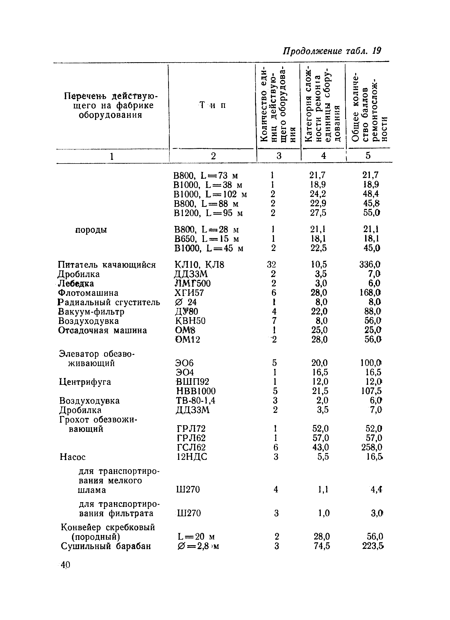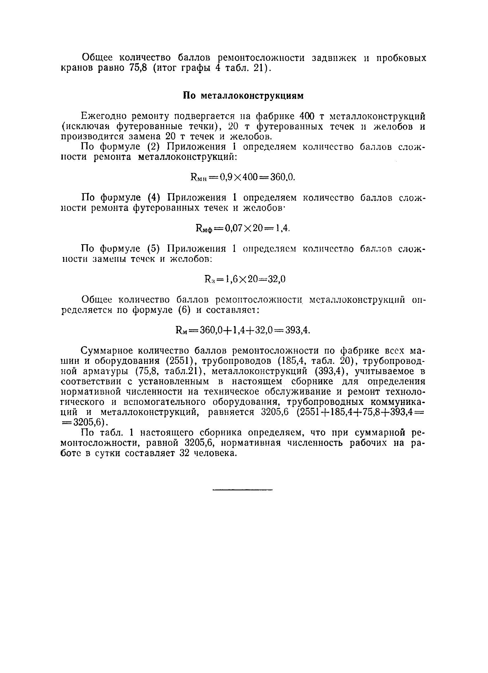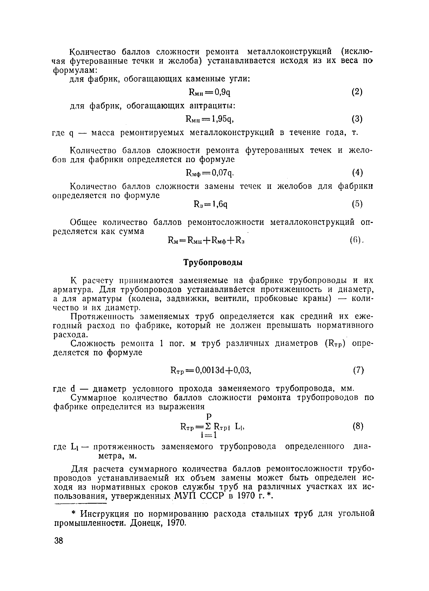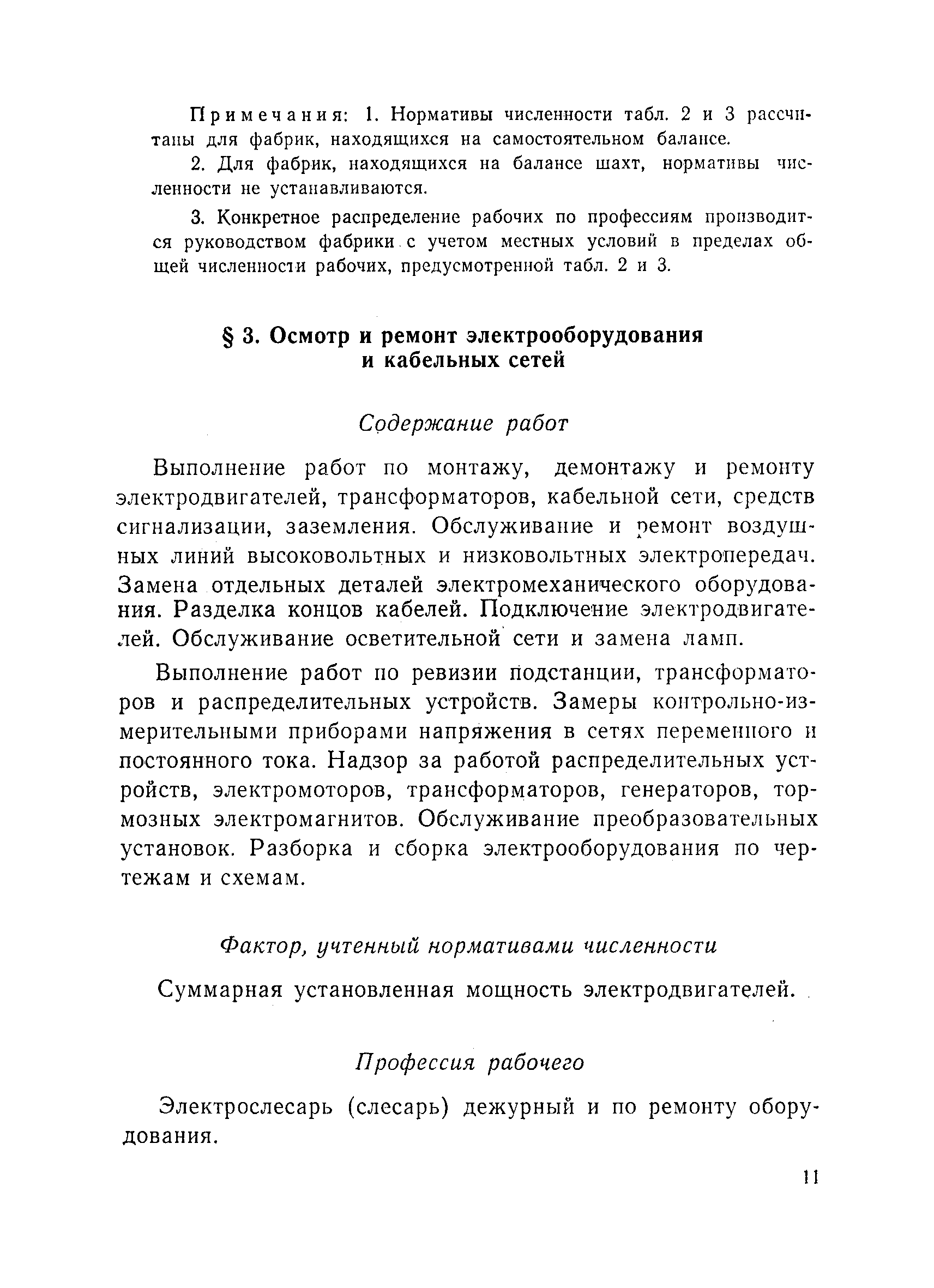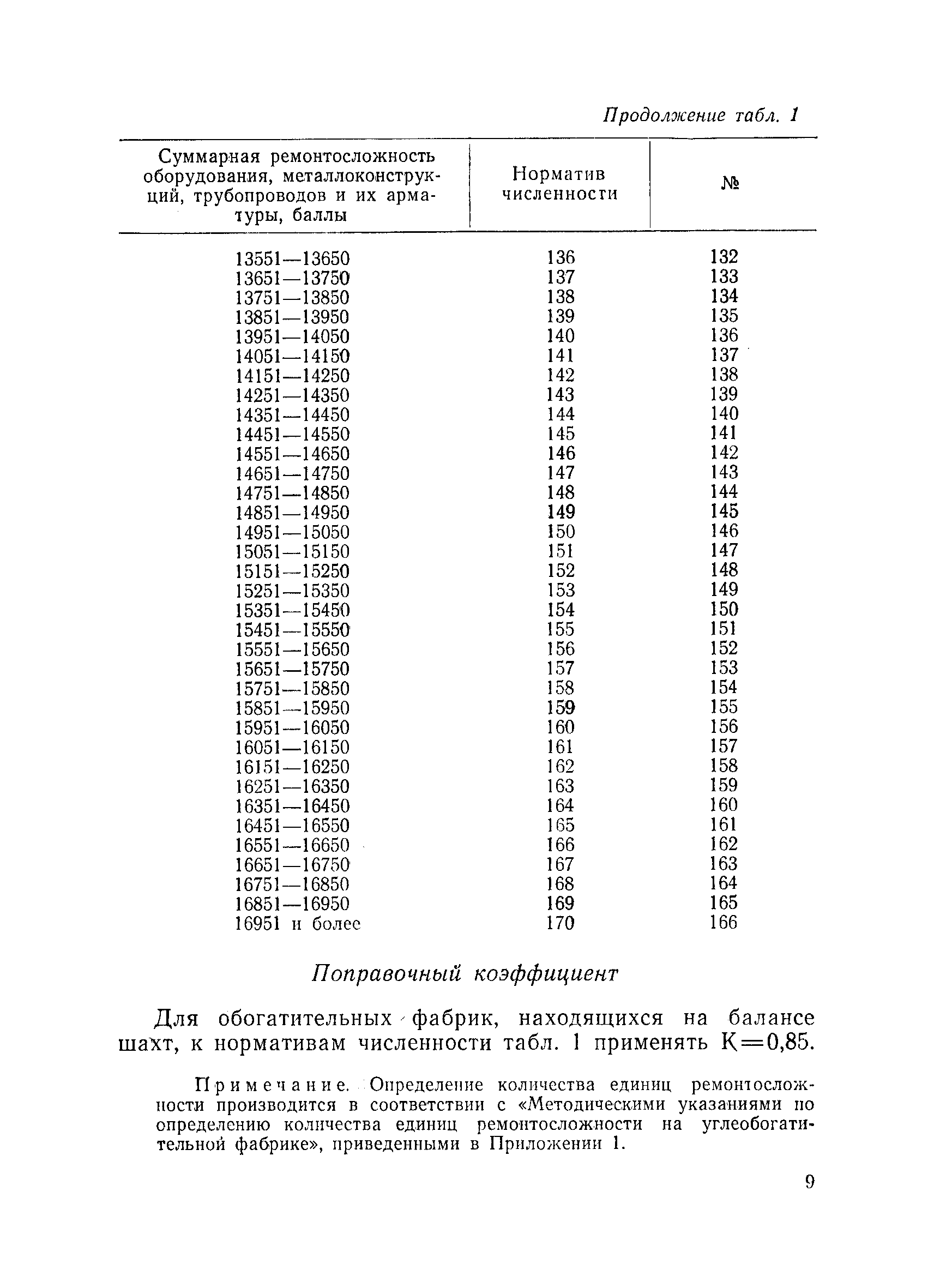 | Оглавление: | Общая часть Нормативная часть § 1. Техническое обслуживание и ремонт технологического и вспомогательного оборудования, трубопроводных коммуникаций и металлоконструкций § 2. Работы в электромеханических мастерских § 3. Осмотр и ремонт электрооборудования и кабельных сетей § 4. Осмотр и ремонт средств автоматизации и контрольно-измерительных приборов § 5. Осмотр и ремонт электрического, основного техно логического и прочего оборудования (дежурство смене) § б. Обслуживание и ремонт оборудования канатно-подвесных дорог § 7. Обслуживание и ремонт телефонной связи § 8. Обслуживание телефонных коммутаторов § 9. Обслуживание электроподстанции § 10. Обслуживание компрессорных станций (установок) § 11. Обслуживание породных отвалов § 12. Опробование и контроль качества угля и продуктов обогащения § 13. Обслуживание котельной § 14. Обслуживание бани и стирка спецодежды § 15. Уборка служебных помещений § 16. Обслуживание лифтов § 17. Производство химических анализов § 18. Обслуживание породных бункеров Приложение 1. Методические указания по определению суммарной ремонтосложности на углеобогатительной фабрике Приложение 2. Пример определения численности рабочих для технического обслуживания и ремонта технологического и вспомогательного оборудования, трубопроводных коммуникаций и металлоконструкций |