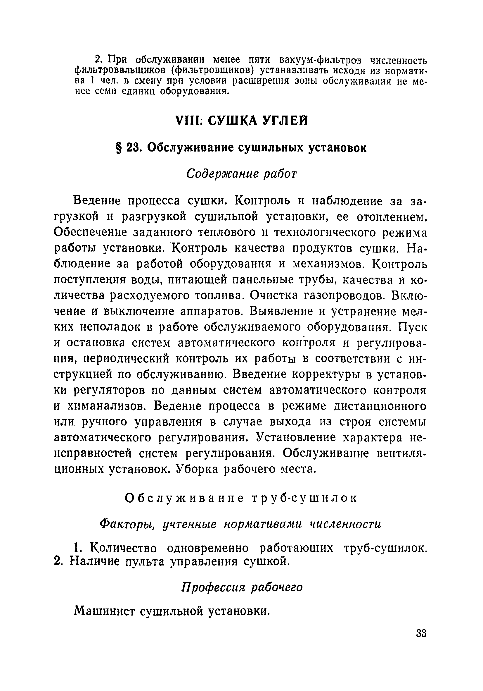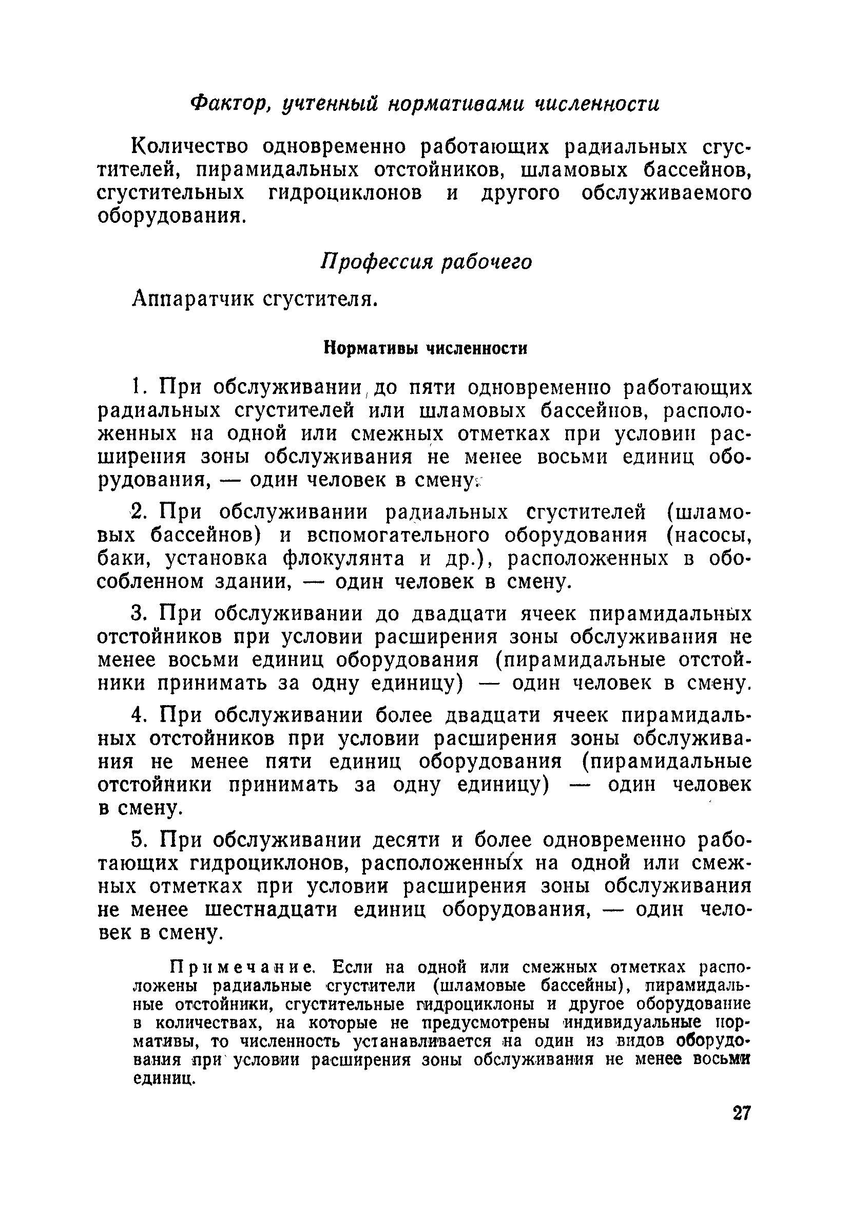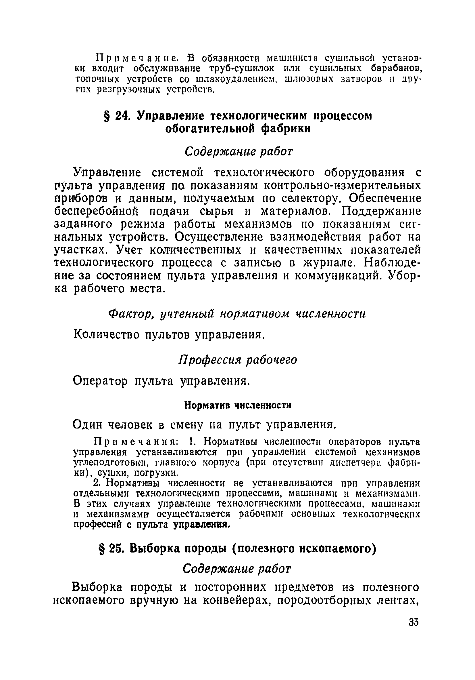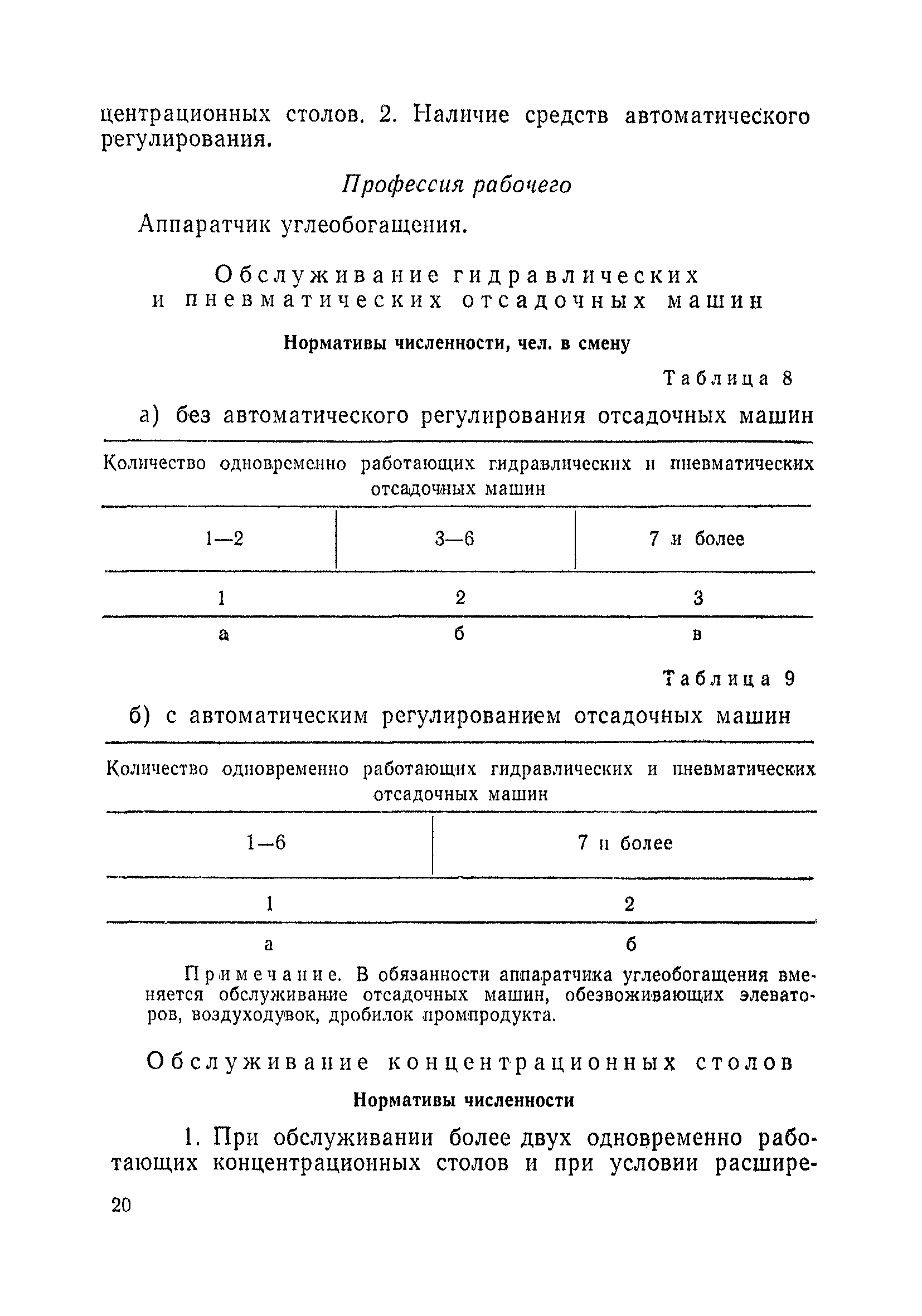 Единые отраслевые нормативы численности рабочих углеобогатительных фабрик, занятых на основных технологических процессах| Статус: | справочные материалы, мп, тпр | | Название рус.: | Единые отраслевые нормативы численности рабочих углеобогатительных фабрик, занятых на основных технологических процессах | | Дата добавления в базу: | 01.01.2019 | | Дата актуализации: | 01.01.2021 | | Область применения: | Документ является обязательным для применения на всех действующих углеобогатительных фабриках Министерства угольной промышленности СССР и предназначены для планирования численности повременно оплачиваемых рабочих и установления доплат рабочим за совмещение профессий, расширение зоны обслуживания или увеличение объема выполняемых работ | | Оглавление: | Общая часть Нормативная часть § 1. Контроль приема рядовых углей § 2. Разгрузка рядового угля § 3. Погрузка продуктов обогащения § 4. Обслуживание вагоноопрокидывателей § 5. Взвешивание рядового угля и продуктов обогащения § 6. Очистка бункеров § 7. Обслуживание лебедок § 8. Транспортирование-рядового угля и продуктов обогащения § 9. Обслуживание питателей § 10. Обслуживание классификационных грохотов § 11. Обслуживание дробилок § 12. Обслуживание дозировочных устройств § 13. Обслуживание отсадочных машин, моечных желобов концентрационных столов, гидроциклонов § 14. Обслуживание сепараторов и гидроциклонов при обогащении в тяжелых средах § 15. Обслуживание обезвоживающих грохотов § 16. Обслуживание центрифуг § 17. Обслуживание сгустителей § 18. Обслуживание насосных установок § 19. Обслуживание наружных шламовых отстойников § 20. Обслуживание крана § 21. Обслуживание флотомашин § 22. Обслуживание вакуум-фильтров. § 23. Обслуживание сушильных установок § 24. Управление технологическим процессом обогатительной фабрики § 25. Выборка породы (полезного ископаемого) Приложение 1. Методические указания по определению коэффициентов списочного состава Приложение 2. Перечень машин, механизмов, установок и других объектов, принимаемых за единицу оборудования при расчете зоны обслуживания для установления нормативов численности рабочих | | Разработан: | ЦНИС по труду МУП СССР