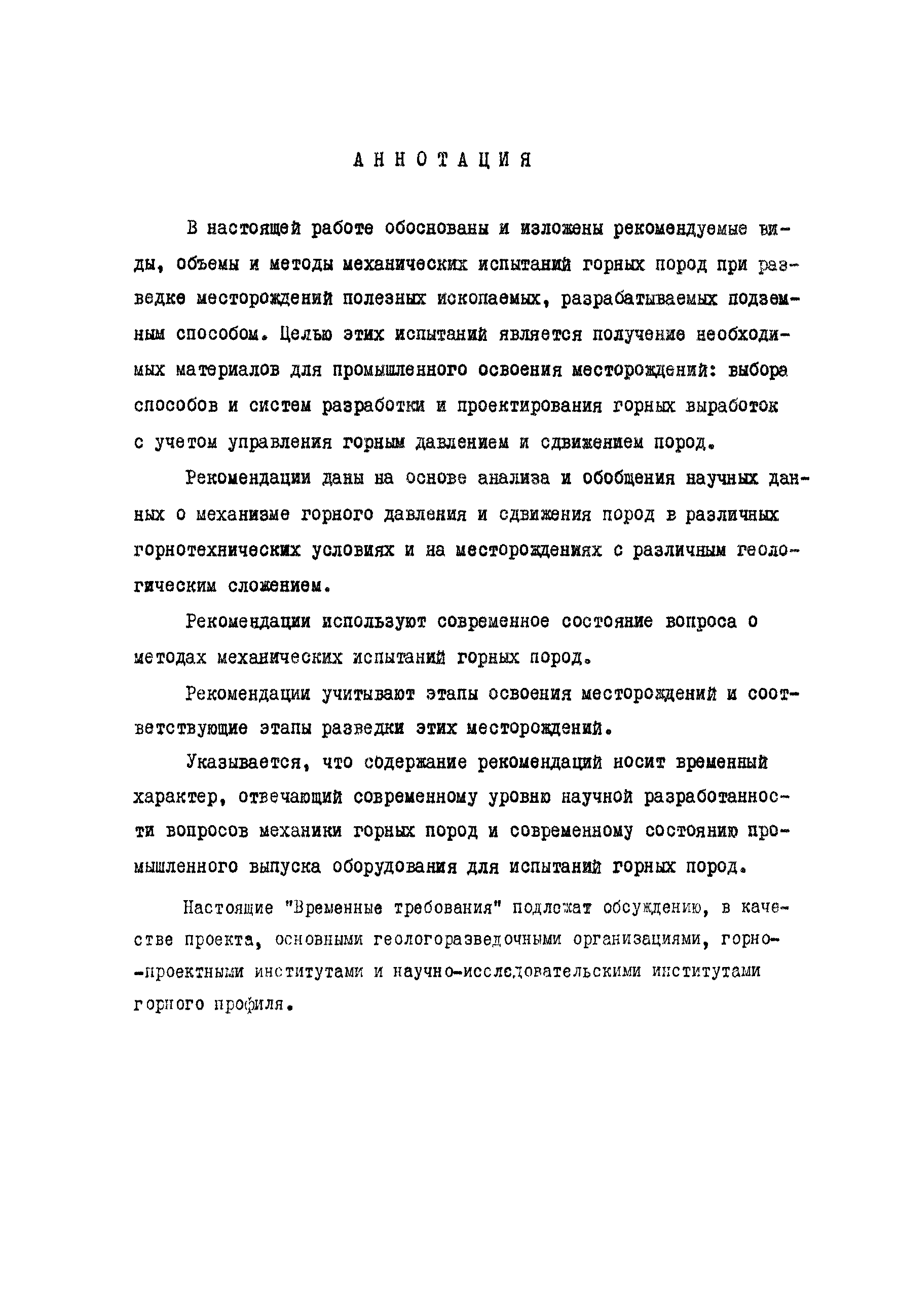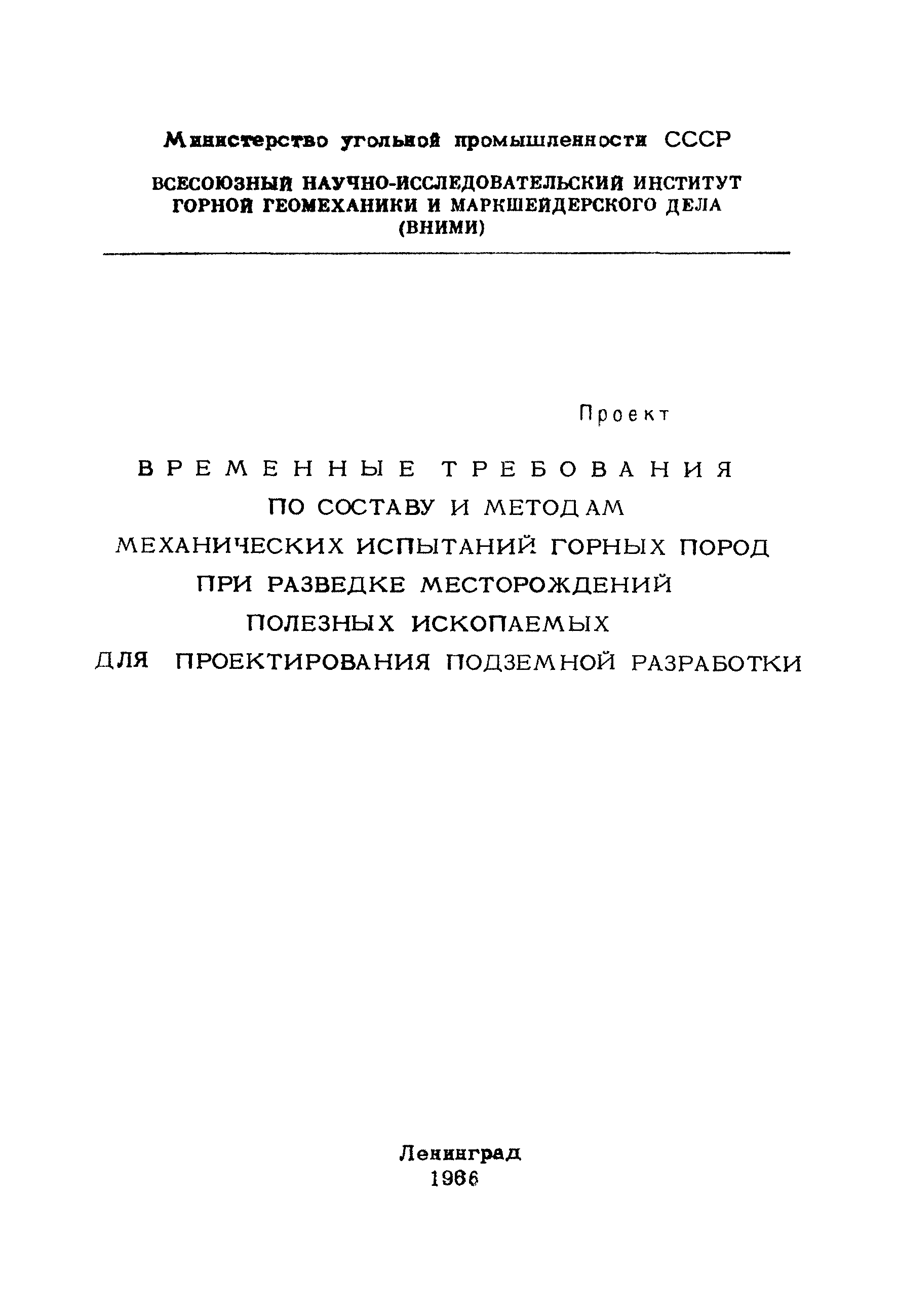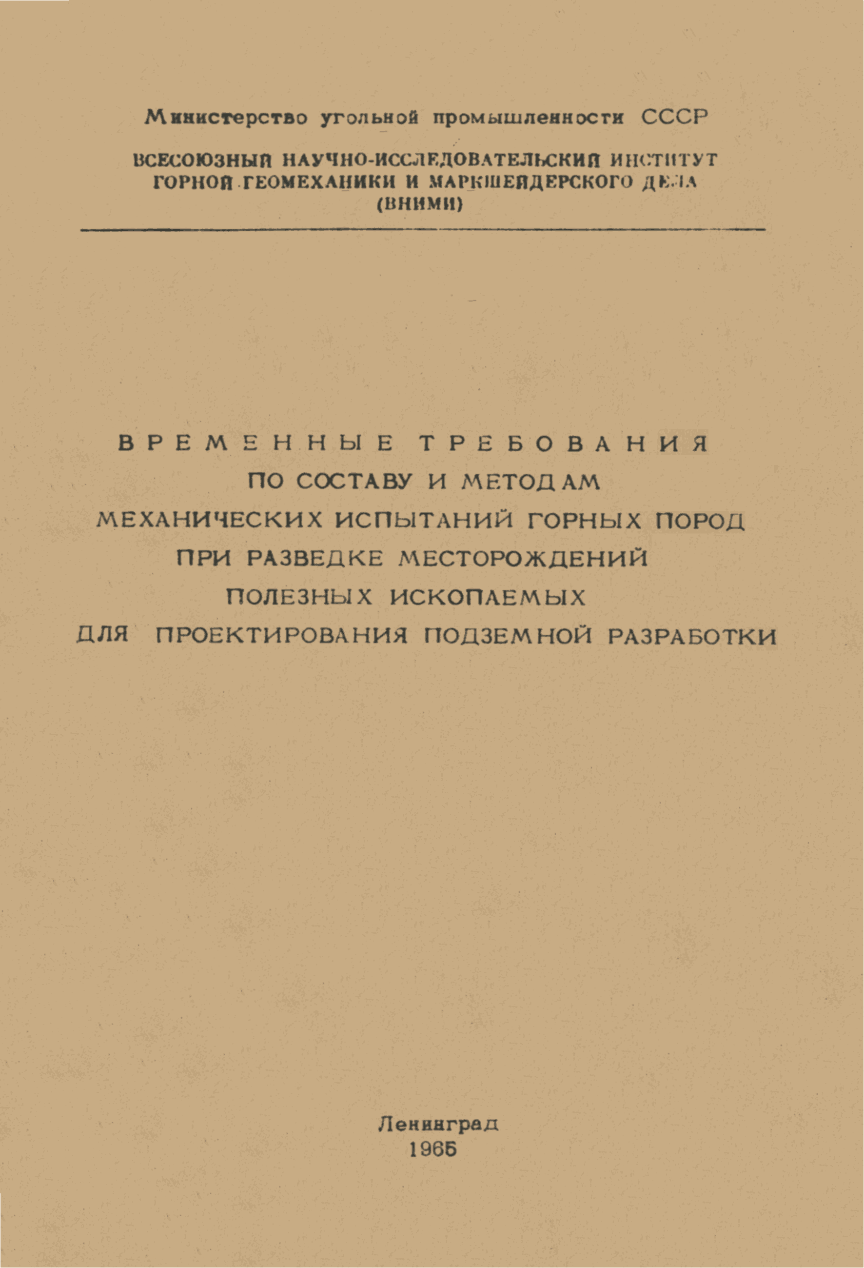 | Название рус.: | Временные требования по составу и методам механических испытаний горных пород при разведке месторождений полезных ископаемых для проектирования подземной разработки |