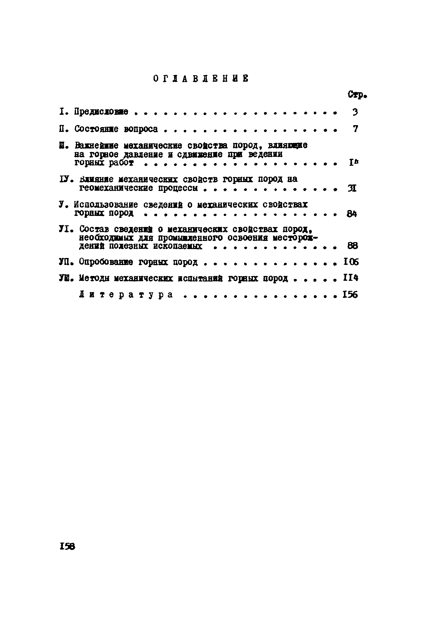 | Оглавление: | 1. Предисловие 2. Состояние вопроса 3. Важнейшие механические свойства пород, влияющие на горное давление и сдвижение при ведении горных работ 4. Влияние механических свойств горных пород на геомеханические процессы 5. Использование сведений о механических свойствах горных пород 6. Состав сведений о механических свойствах пород, необходимых для промышленного освоения месторождений полезных ископаемых 7. Опробование горных пород 8. Методы механических испытаний горных пород Литература |
