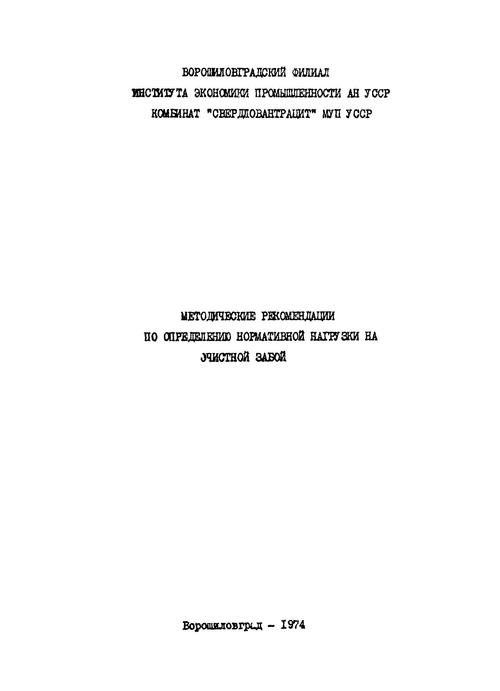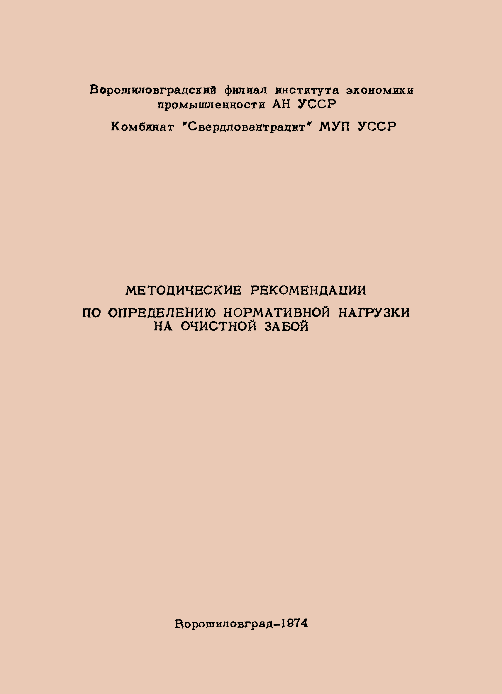 | Разработан: | Институт экономики промышленности АН УССР Комбинат Свердловантрацит МУП УССР
