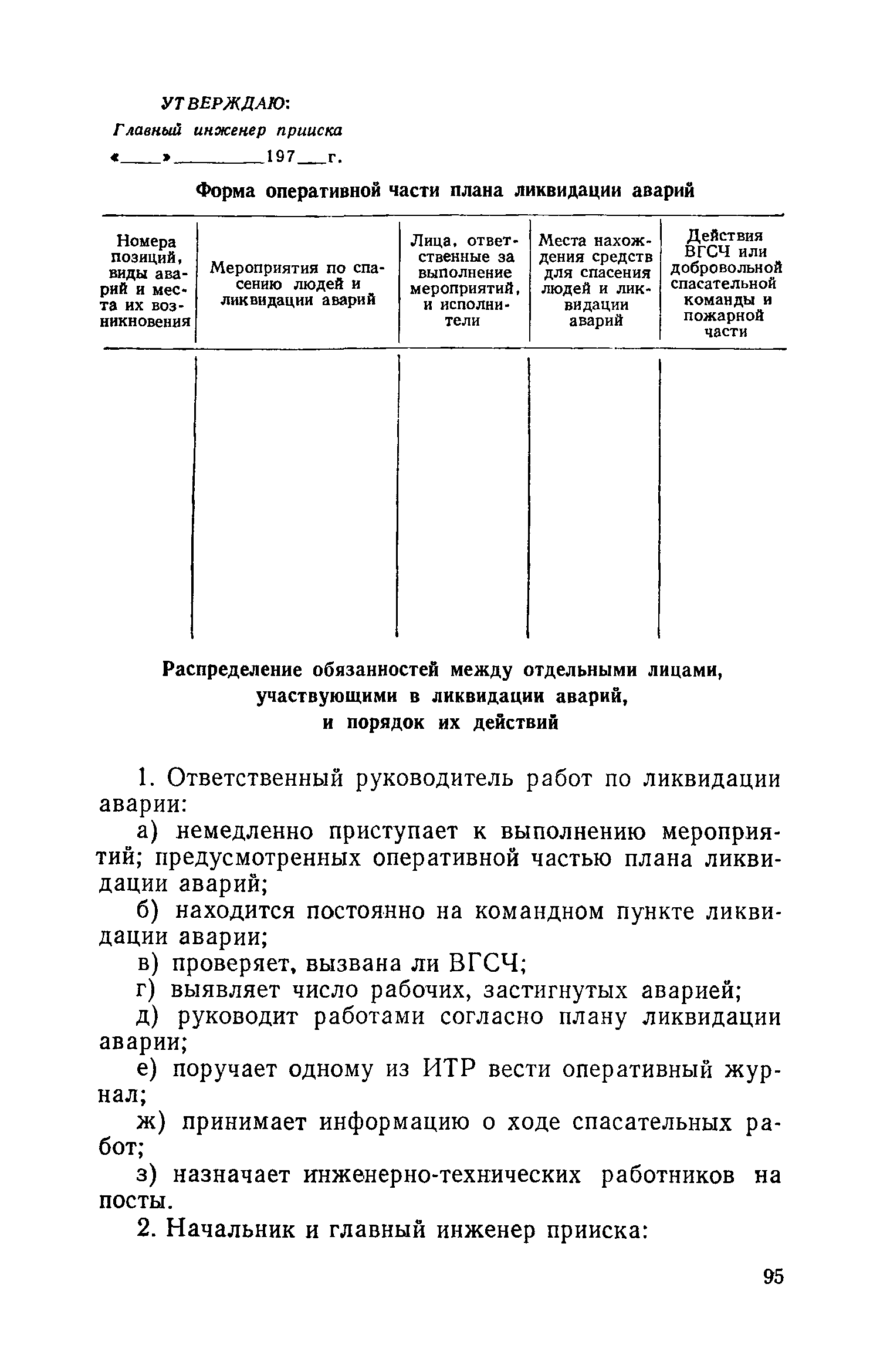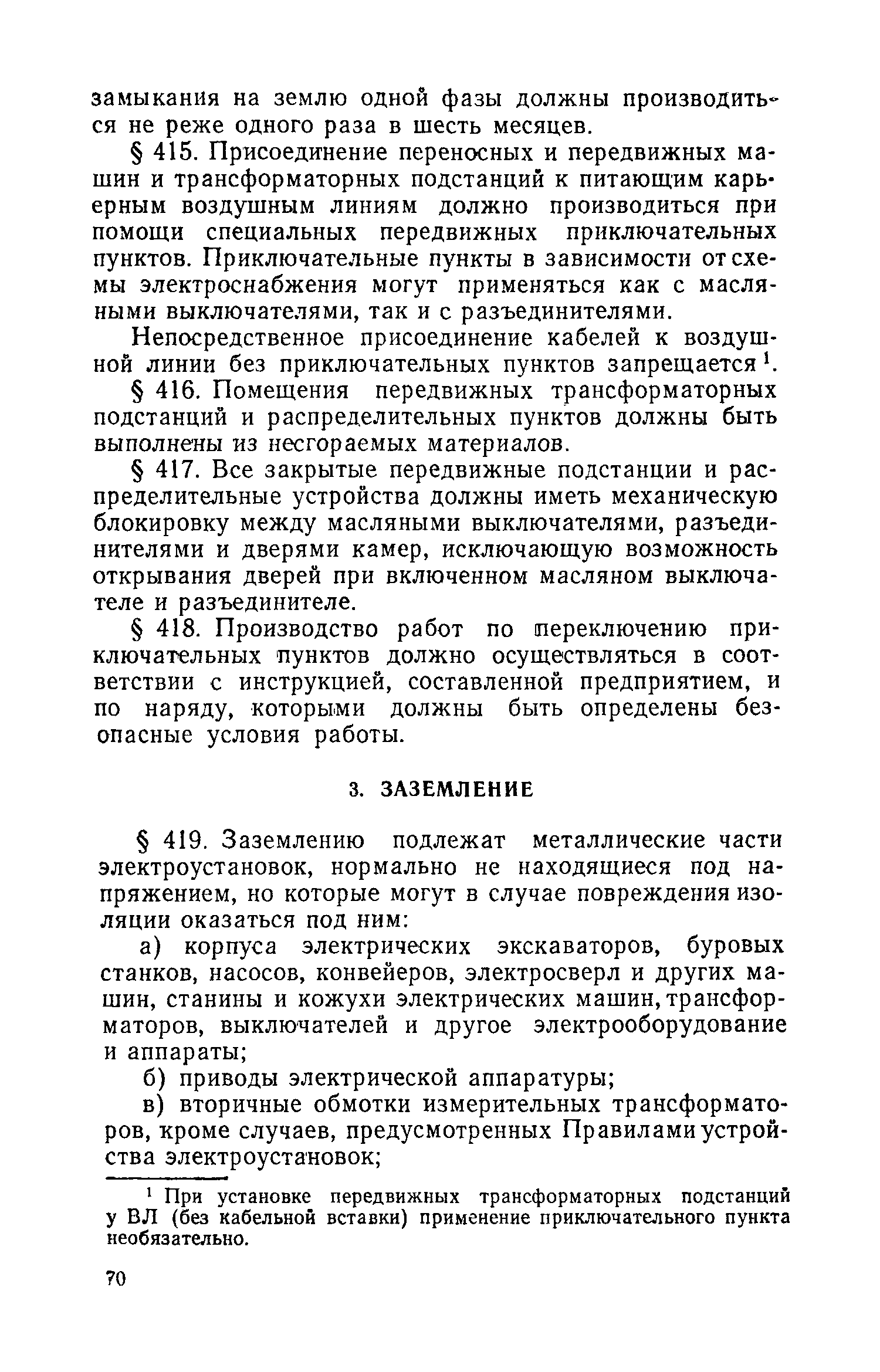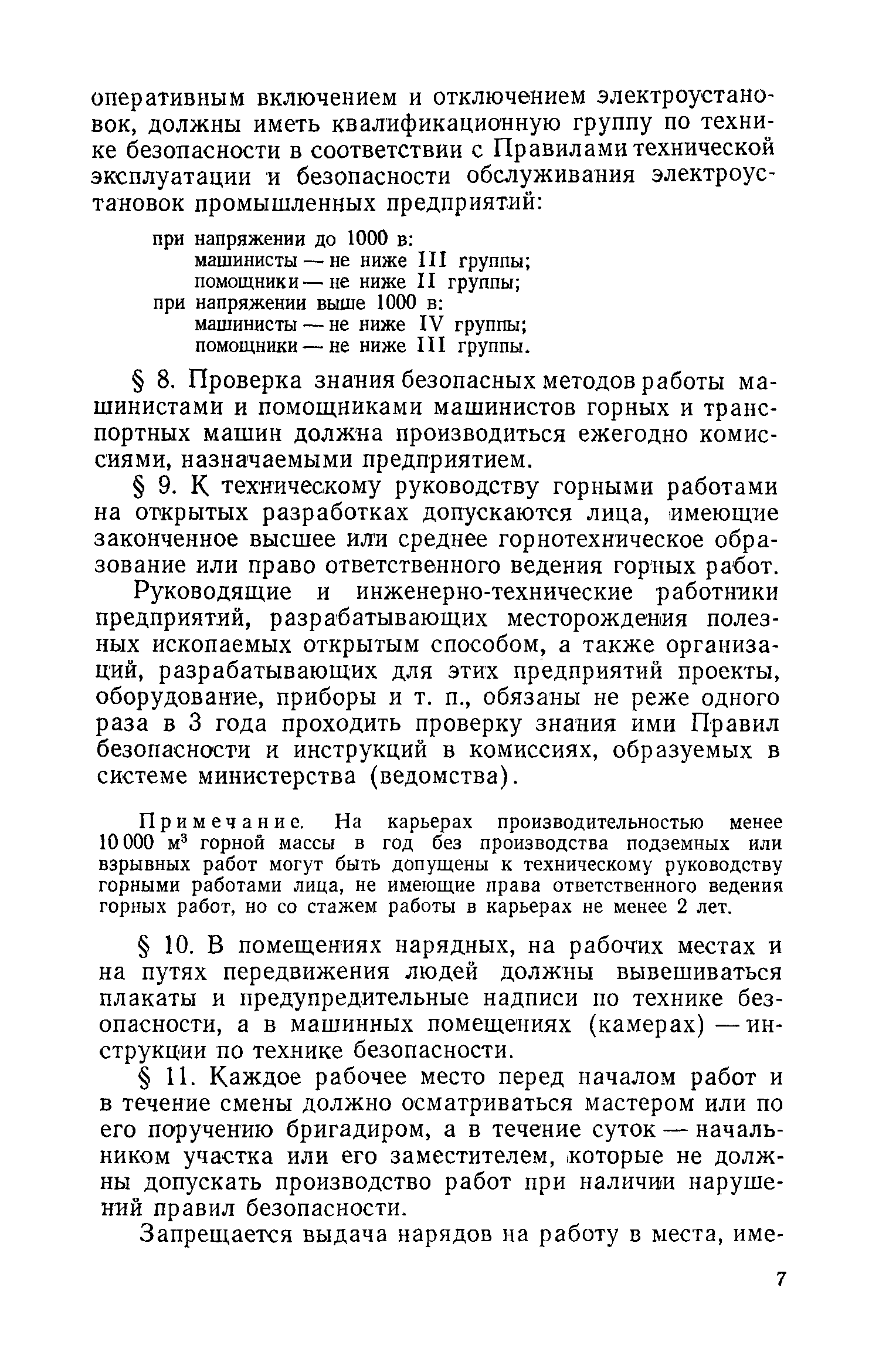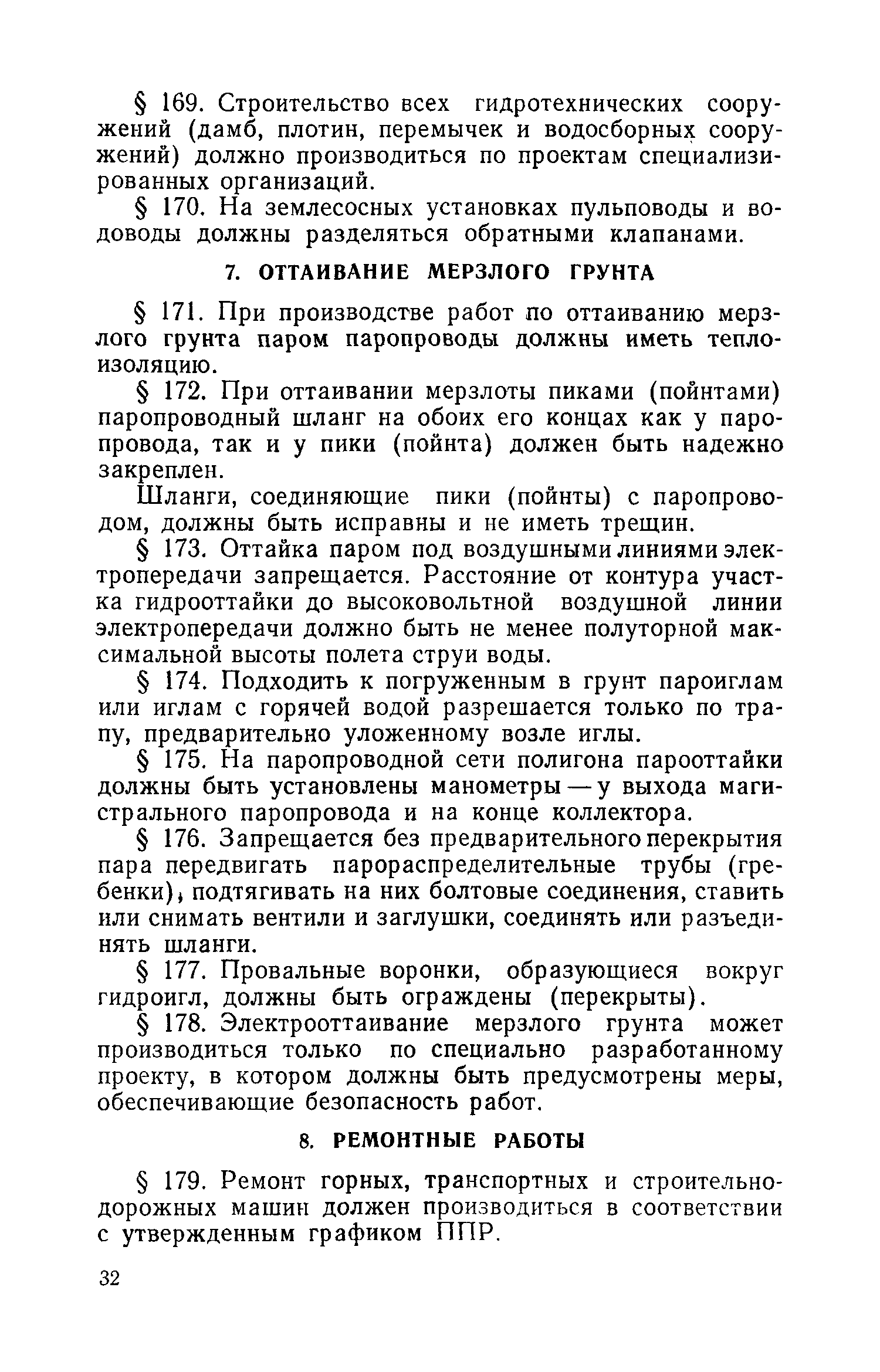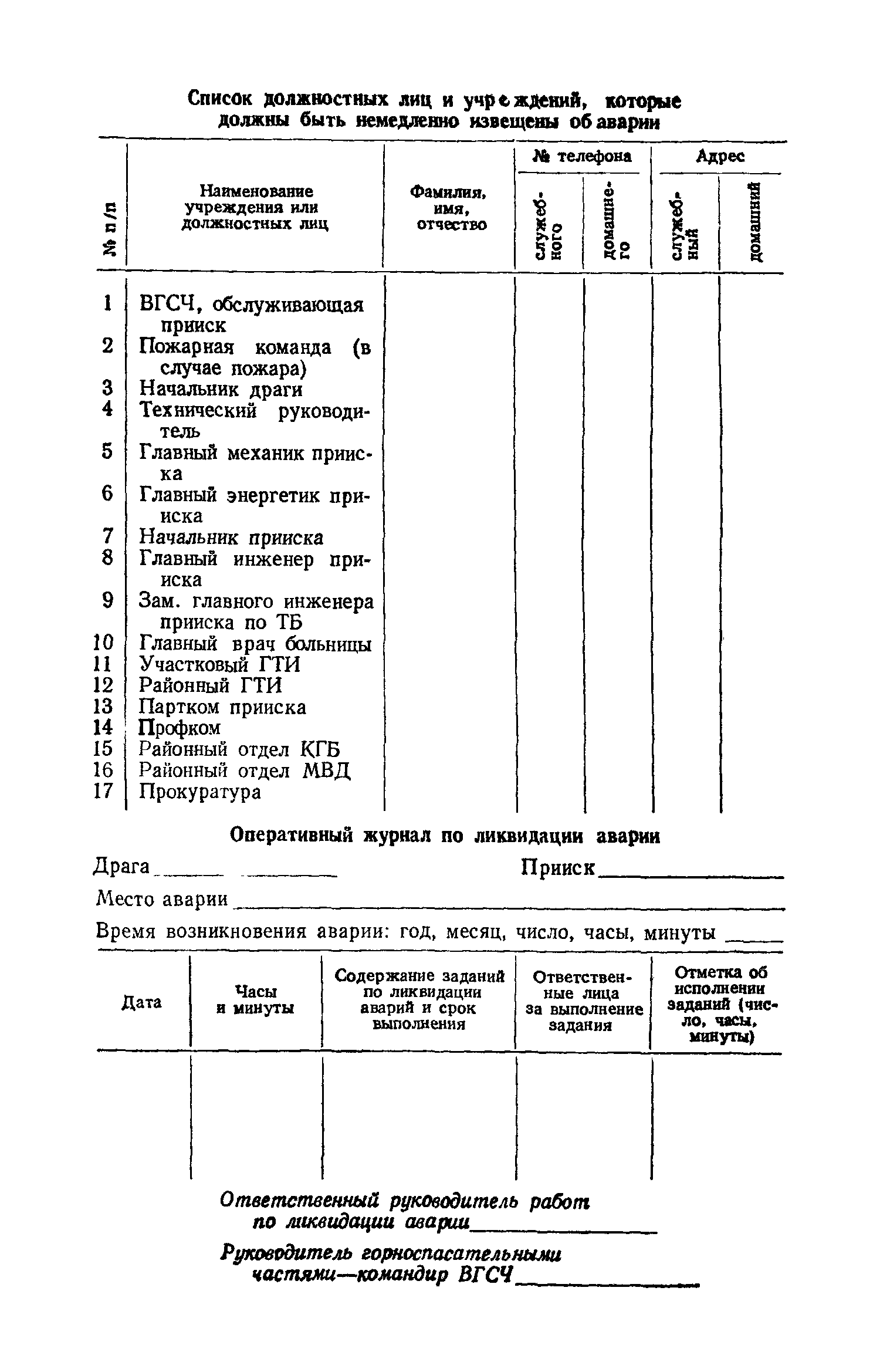 | Оглавление: | Предисловие Раздел I. Общие правила Раздел II. Ведение горных работ 1Горные работы 2 Буровые работы Раздел III. Отвальное хозяйство Раздел I. Механизация горных работ 1Общие положения 2 Одноковшовые экскаваторы 3 Многочерпаковые и роторные экскаваторы 4 Транспортно-отвальные мосты и отвалообразователи 5 Скреперы и бульдозеры 6 Гидромеханизация 7 Оттаивание мерзлого грунта 8 Ремонтные работы Раздел V. Разработка драгами и плавучими земснарядами Раздел VI. Дополнительные правила безопасности 1 Требования безопасности для карьеров по добыче штучного камня и крупных блоков 2 Требования безопасности при добыче поваренной соли в садочных бассейнах и соляных озерах 3 Требования безопасности при работе в тепляках Раздел VII. Транспорт 1 Железнодорожный транспорт 2 Автотракторный транспорт 3 Ленточные конвейеры 4 Грузовые подвесные канатные дороги (ГПКД) Раздел УIII. Электроустановки 1 Общие положения 2 Распределительные устройства и трансформаторные подстанции 3 Заземление 4 Воздушные и кабельные линии электропередач 5 Электрическая тяга 6 Освещение 7 Связь и сигнализация Раздел IХ. Водоотлив и осушение Раздел Х. Общие санитарные правила 1 Борьба с пылью и вредными газами 2 Санитарно-бытовые помещения 3 Медицинская помощь 4 Производственно-бытовые помещения 5 Водоснабжение Раздел ХI. Ответственность за нарушение правил безопасности Приложение 1. Инструкция по составлению планов ликвидации аварий для драг и земснарядов I. Общие положения II. Основные указания по составлению оперативной части плана ликвидации аварий |