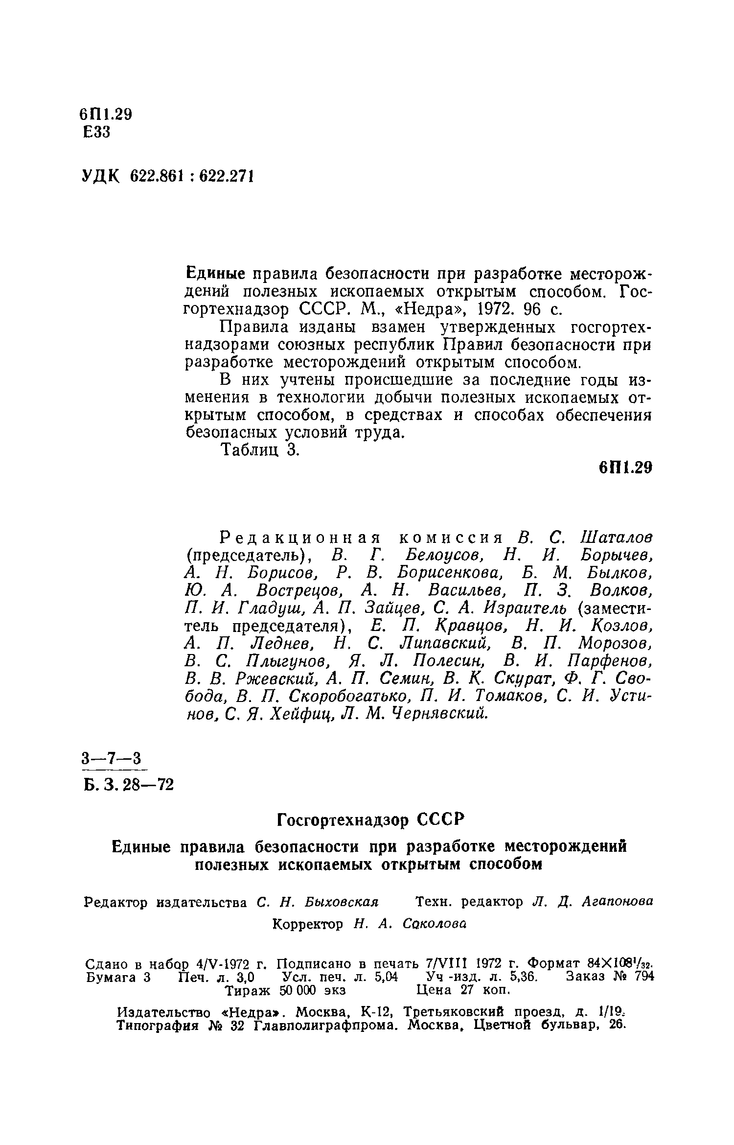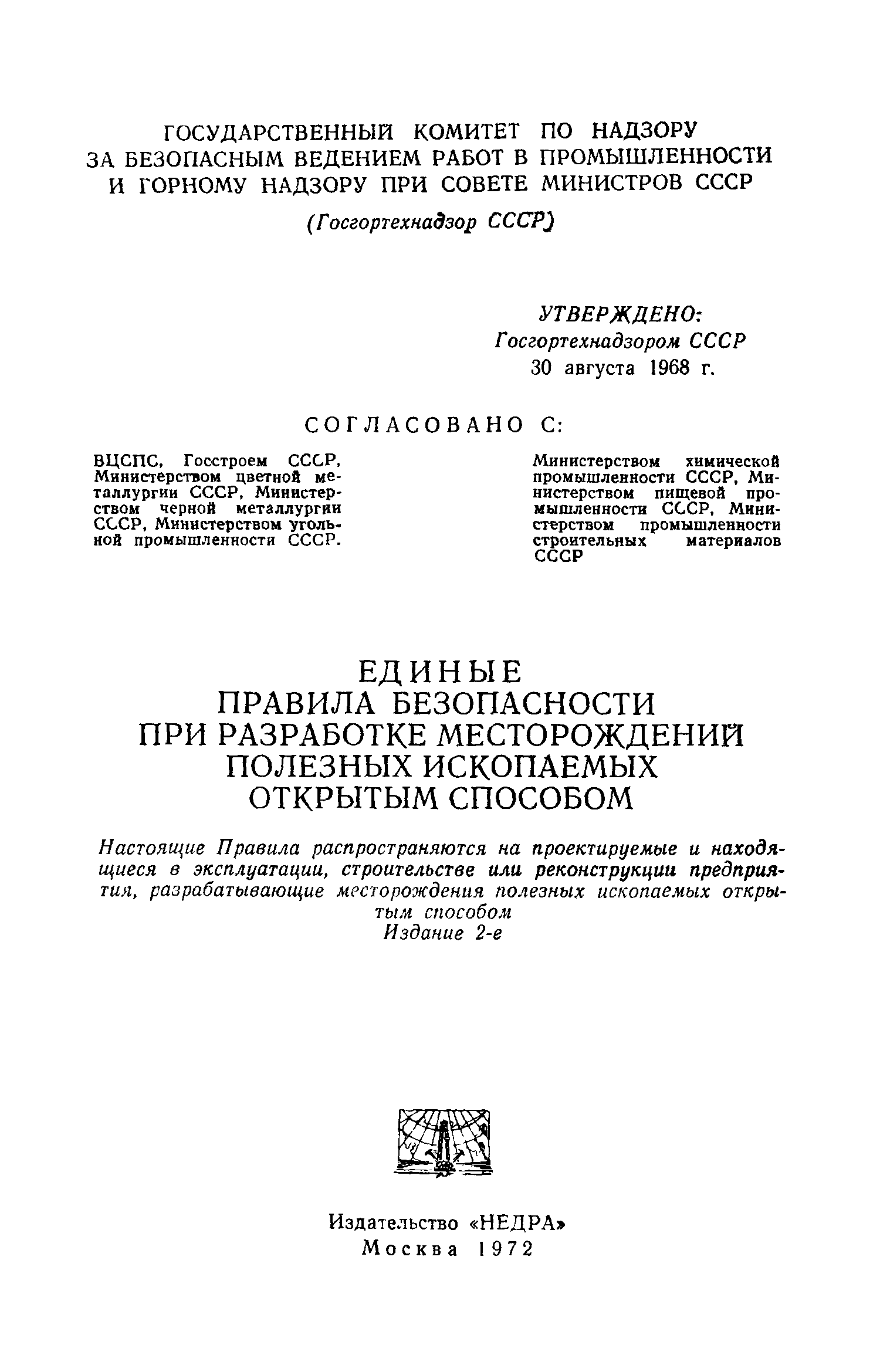 | Название рус.: | Единые правила безопасности при разработке месторождений полезных ископаемых открытым способом (издание 1968 года) |
