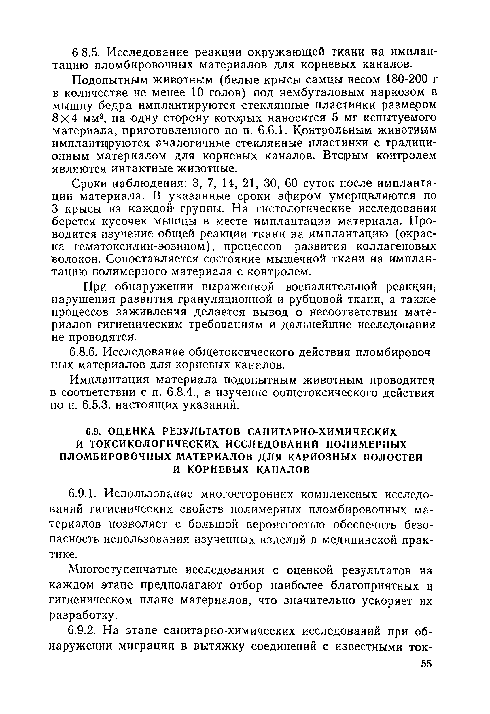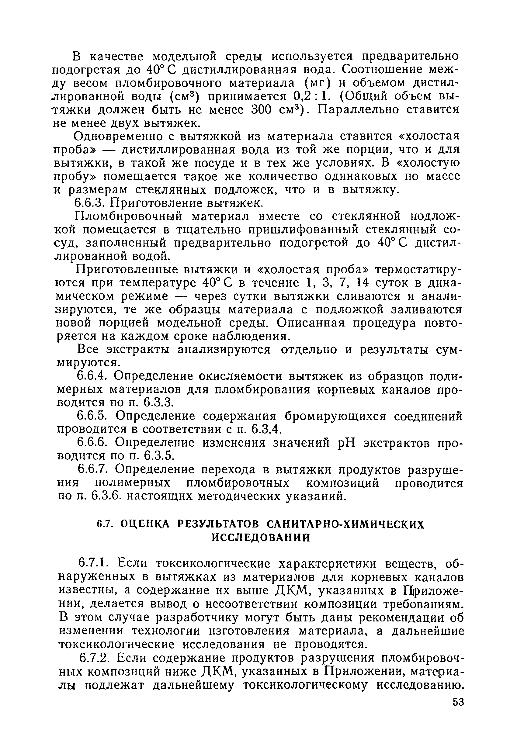 | Оглавление: | 6.1. Общие положения 6.2. Этапы исследования и их последовательность 6.3. Санитарно-химические исследования полимерных материалов, предназначенных для пломбирования кариозных полостей 6.4. Оценка результатов санитарно-химических исследований 6.5. Токсикологические исследования полимерных пломбировочных материалов, предназначенных для заполнения кариозных полостей 6.6. Санитарно-химические исследования полимерных материалов для пломбирования корневых каналов 6.7. Оценка результатов санитарно-химических исследований 6.8. Токсикологические исследования полимерных материалов, предназначенных для заполнения корневых каналов 6.9. Оценка результатов санитарно-химических и токсикологических исследований полимерных пломбировочных материалов для кариозных полостей и корневых каналов Приложение. Предельно допустимые концентрации веществ, входящих в состав полимерных стоматологических композиций в качестве ингредиентов, технологических добавок, примесей в сырье Перечень литературных и справочных источников |