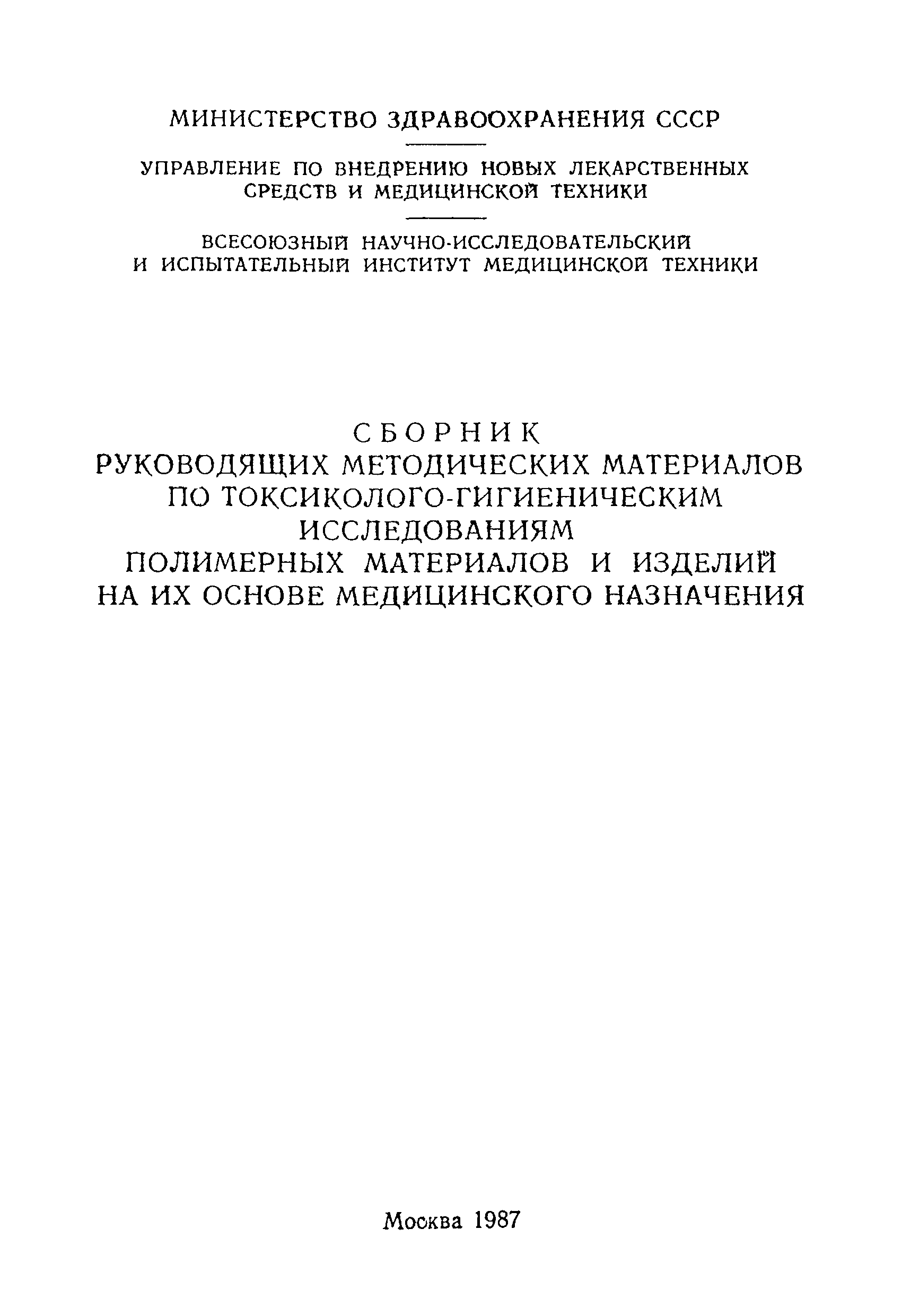 | Название рус.: | Методические указания к токсиколого-гигиеническому исследованию материалов, узлов аппаратов по замене функций внутренних органов |