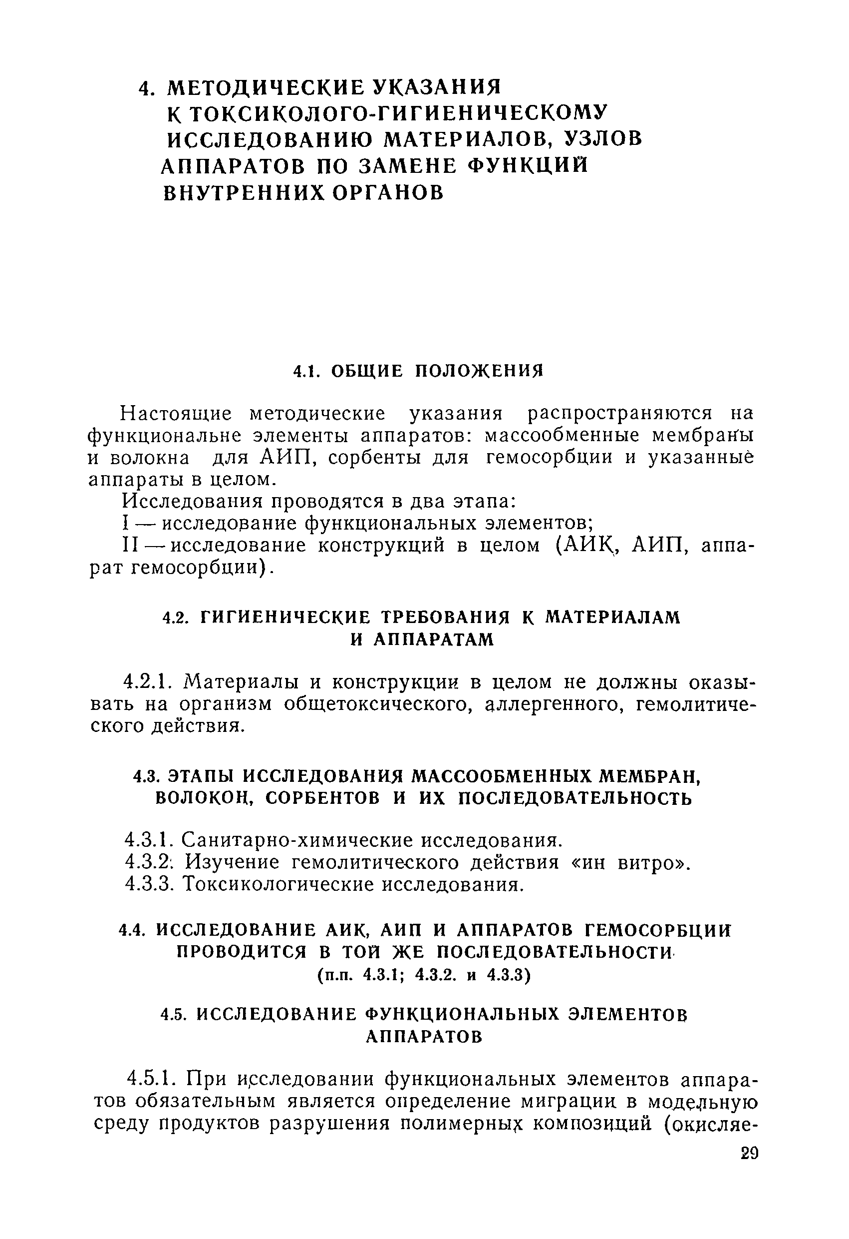| Область применения: | Методические указания распространяются на функциональные элементы аппаратов: массообменные мембраны и волокна для АИП, сорбенты для гемосорбции и указанные аппараты в целом. Исследования проводятся в два этапа: I - исследование функциональных элементов; II - исследование конструкций в целом (АИК, АИП, аппарат гемосорбции). |