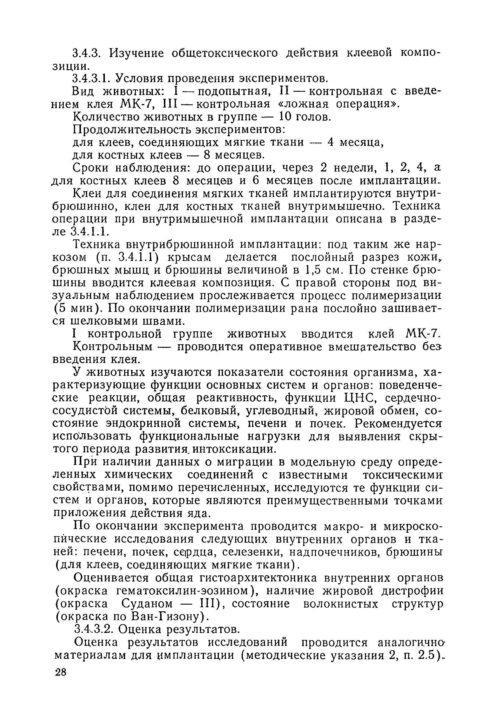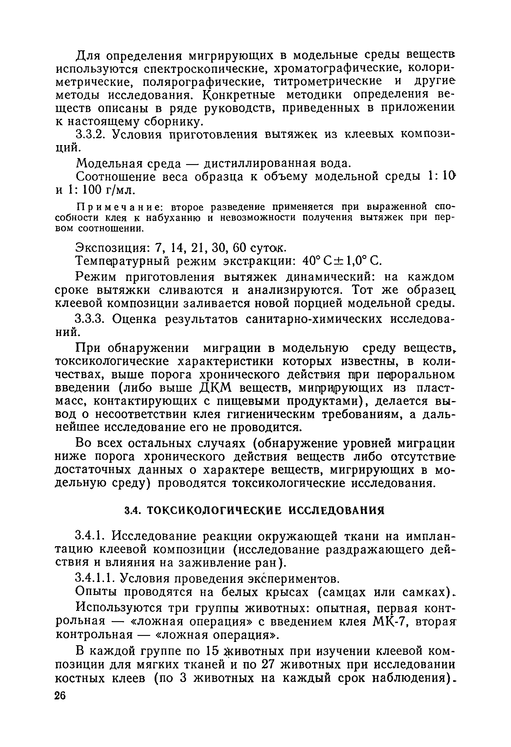 | Оглавление: | 3.1. Гигиенические требования к клеям для соединения тканей организма 3.2. Этапы исследования, их последовательность 3.3. Санитарно-химические исследования клеевых композиций 3.4. Токсикологические исследования Перечень литературных и справочных источников |