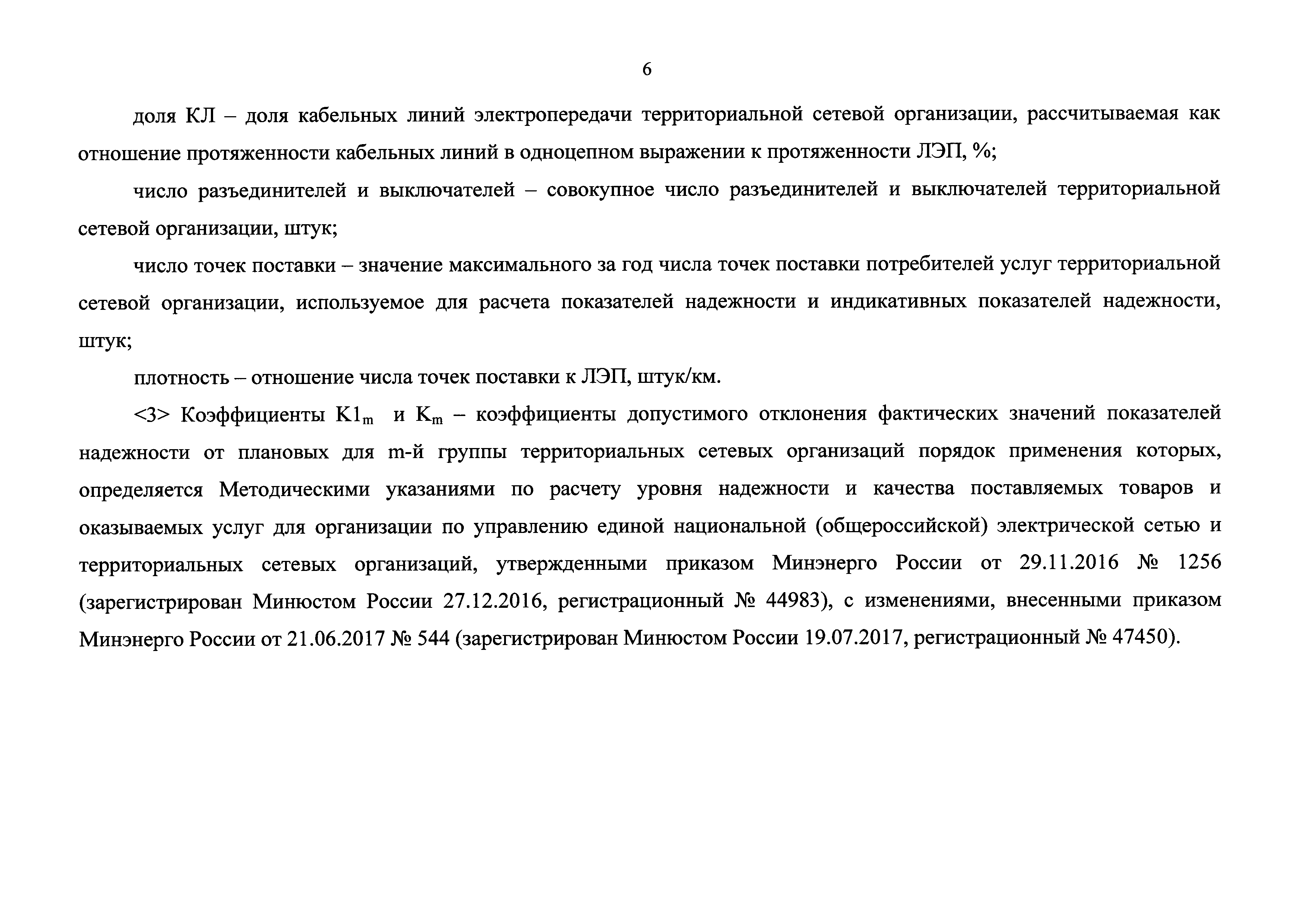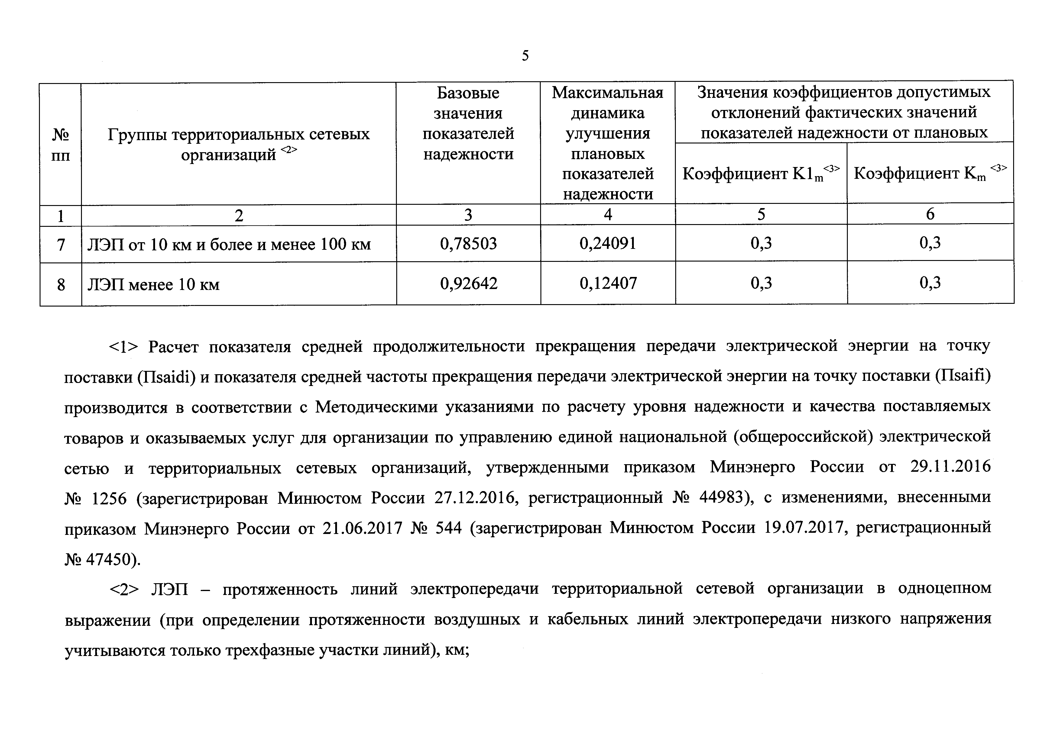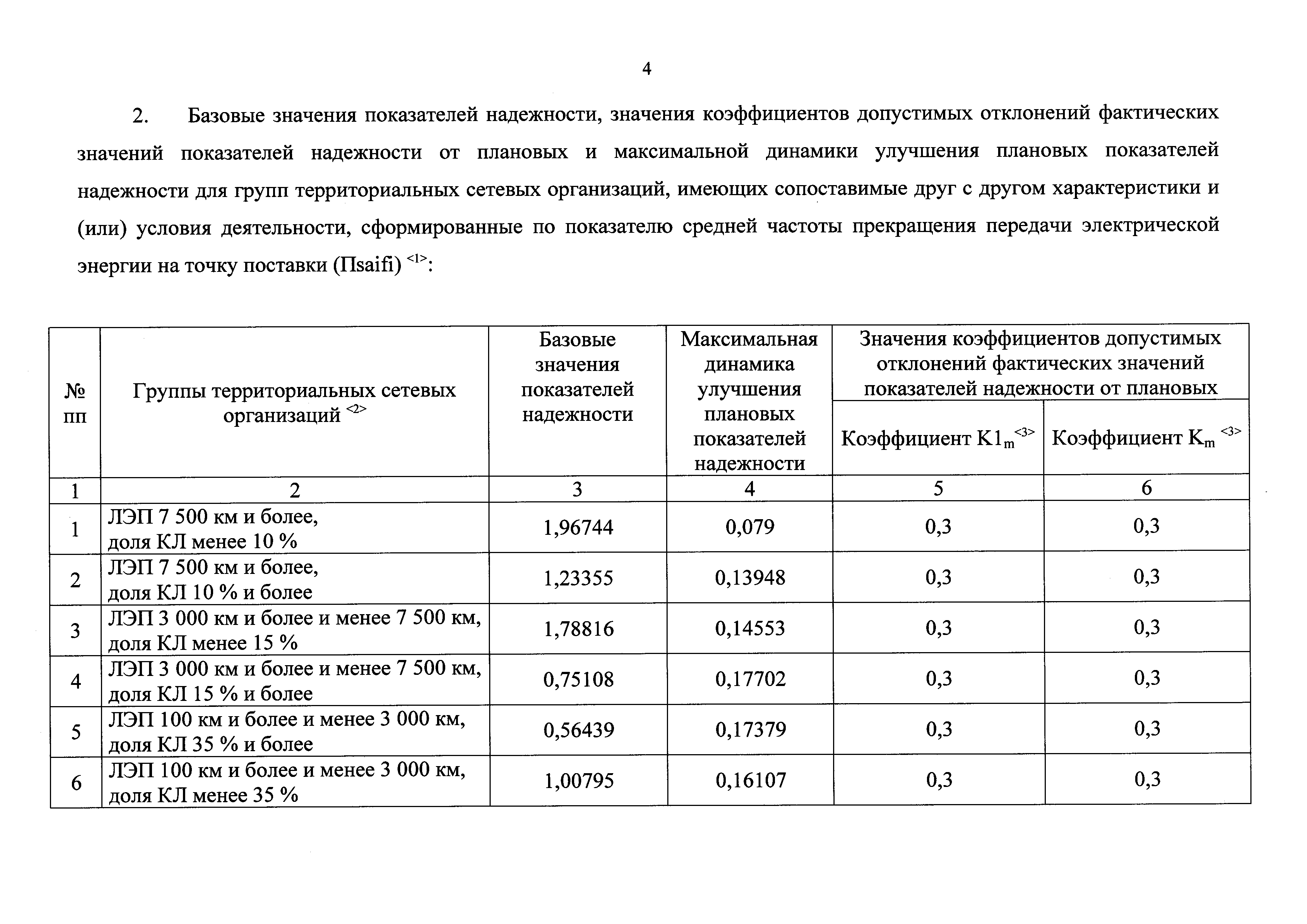 Базовые значения показателей надежности, значения коэффициентов допустимых отклонений фактических значений показателей надежности от плановых и максимальной динамики улучшения плановых показателей надежности для групп территориальных сетевых организаций, имеющих сопоставимые друг с другом экономические и технические характеристики и (или) условия деятельности, с применением метода сравнения аналогов| Статус: | действует | | Название рус.: | Базовые значения показателей надежности, значения коэффициентов допустимых отклонений фактических значений показателей надежности от плановых и максимальной динамики улучшения плановых показателей надежности для групп территориальных сетевых организаций, имеющих сопоставимые друг с другом экономические и технические характеристики и (или) условия деятельности, с применением метода сравнения аналогов | | Дата добавления в базу: | 01.01.2018 | | Дата актуализации: | 01.01.2021 | | Дата введения: | 25.11.2017 | | Утверждён: | 18.10.2017 Министерство энергетики РФ (Russian Federation Ministry of Energy 976)