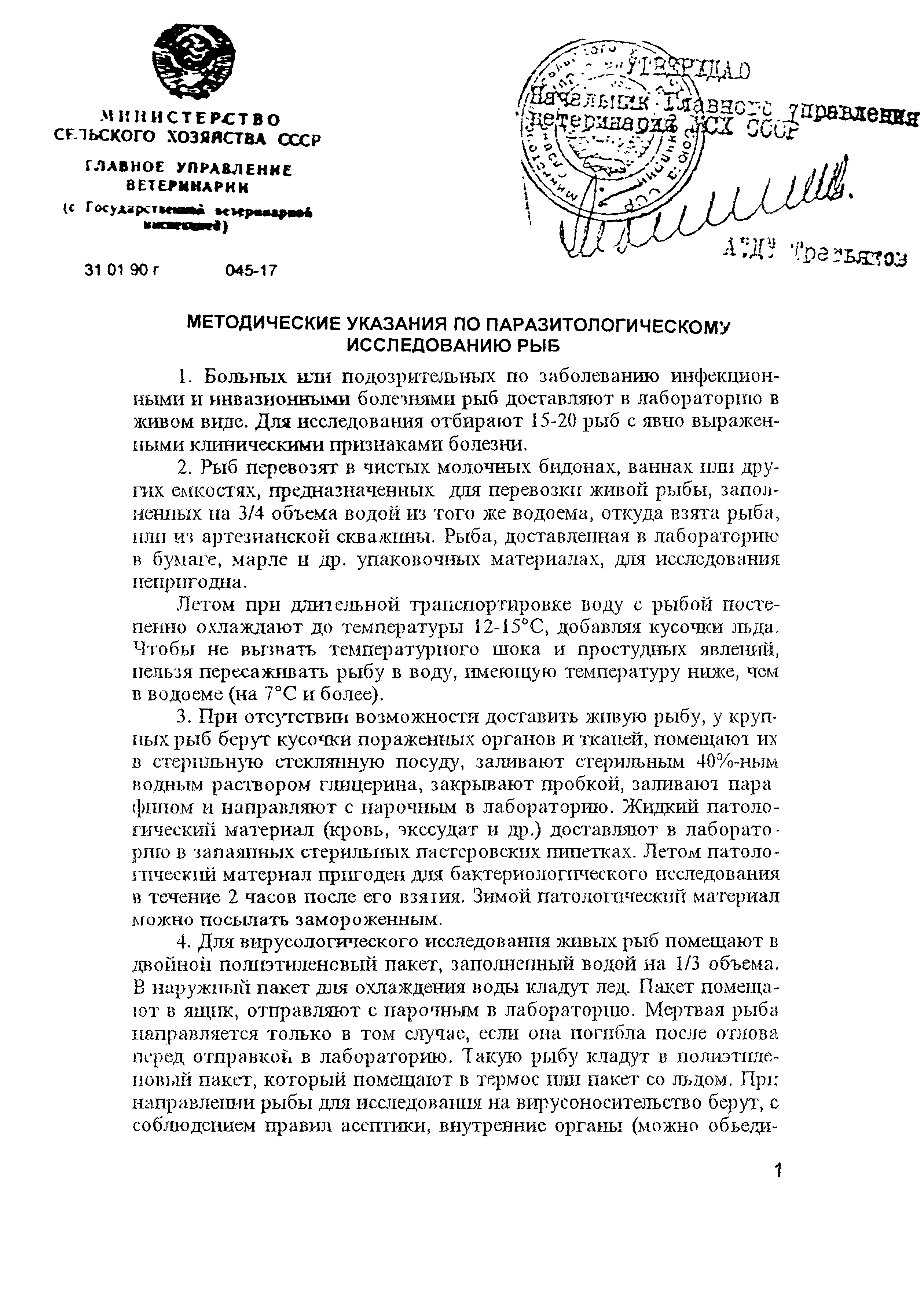 Скачать Методические указания по паразитологическому исследованию рыбДата актуализации: 01.01.2021