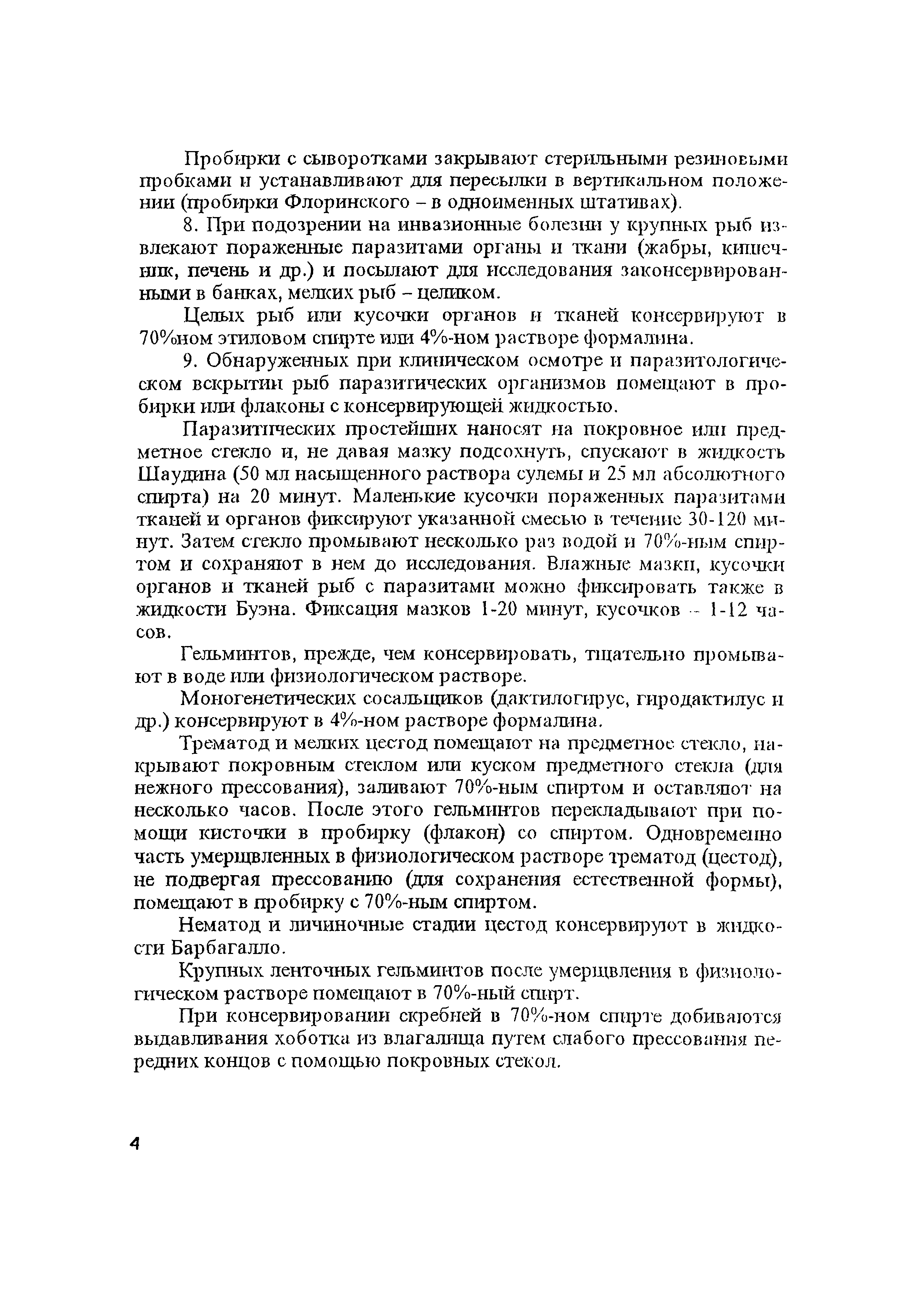 Методические указания по паразитологическому исследованию рыб| Статус: | действует | | Название рус.: | Методические указания по паразитологическому исследованию рыб | | Дата добавления в базу: | 01.01.2018 | | Дата актуализации: | 01.01.2021 | | Утверждён: | 31.01.1990 ГУВ МСХ СССР (045-17)