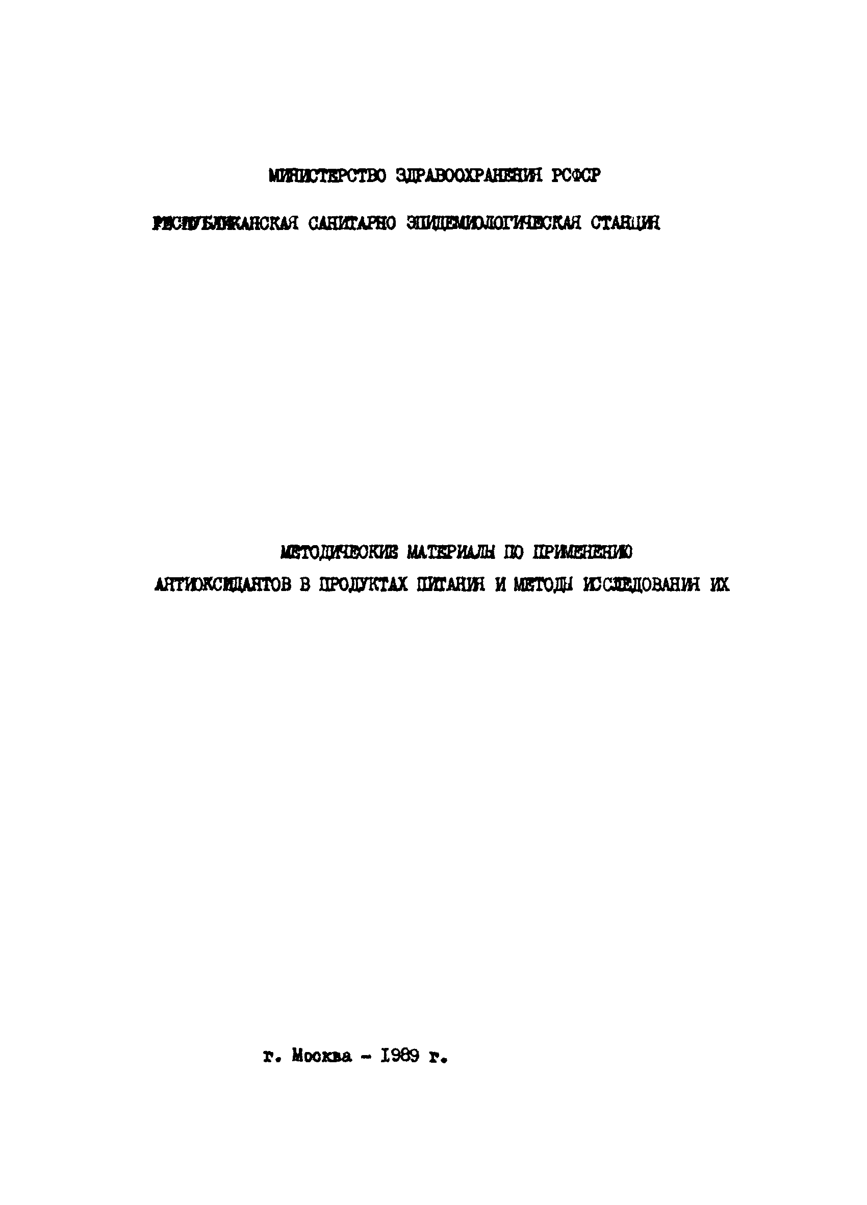 | Название рус.: | Методические материалы по применению антиоксидантов в продуктах питания и методы исследования их |