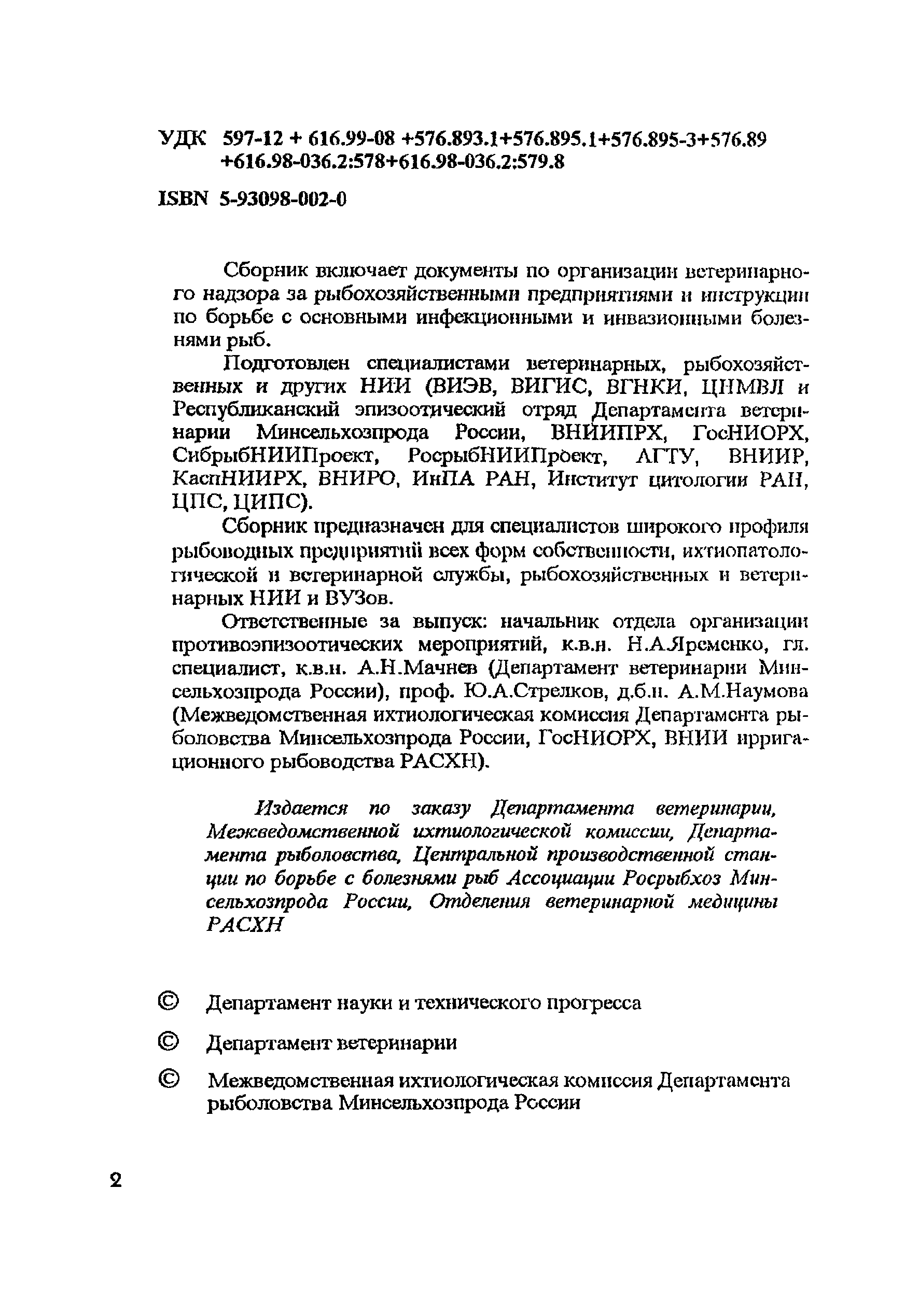 | Область применения: | Документ предназначен для специалистов широкого профиля рыбоводных предприятий всех форм собственности, ихтиопатологической и ветеринарной службы, рыбохозяйственных и ветеринарных НИИ и ВУЗов. |