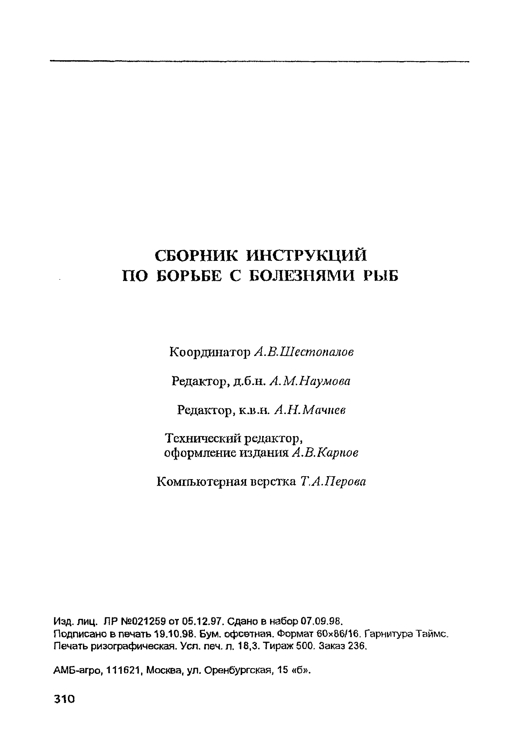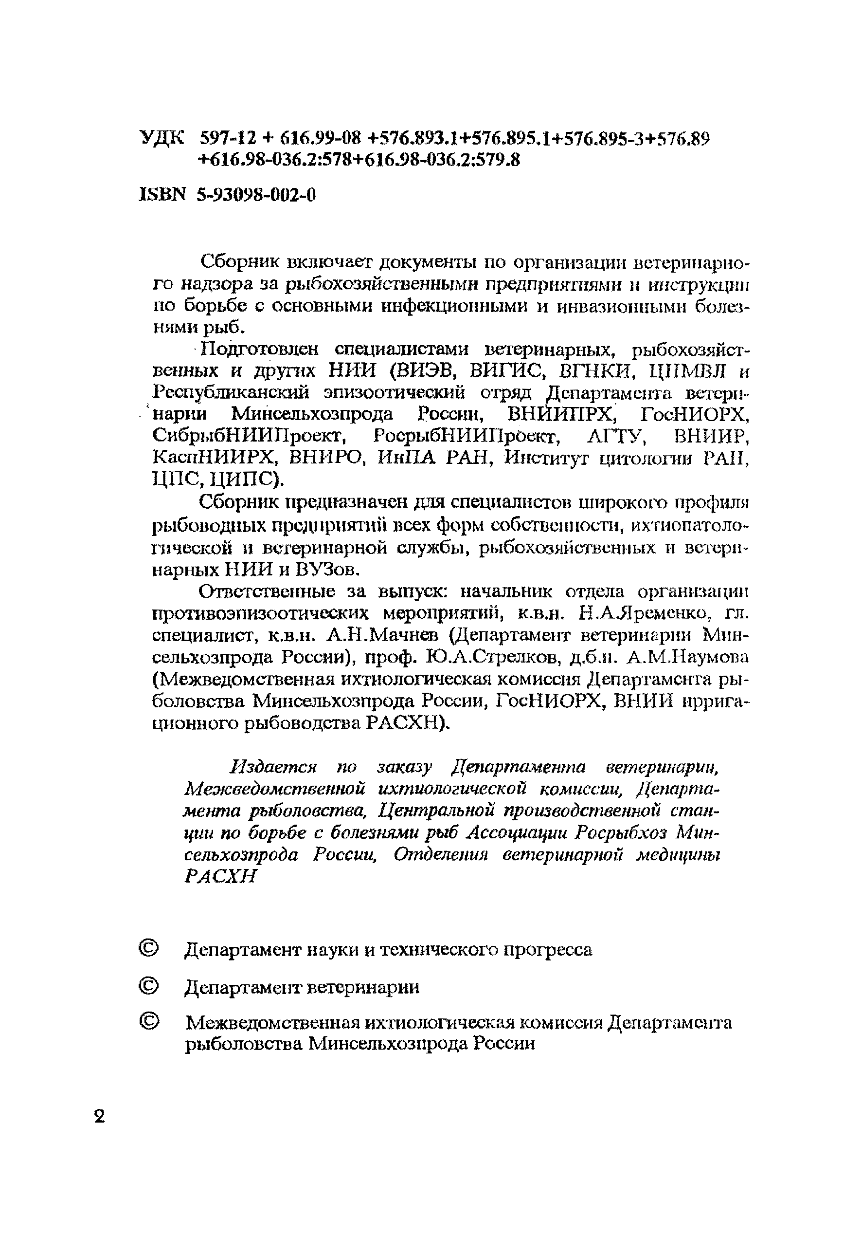 | Область применения: | Документ предназначен для специалистов широкого профиля рыбоводных предприятий всех форм собственности, ихтиопатологической и ветеринарной службы, рыбохозяйственных и ветеринарных НИИ и ВУЗов. |