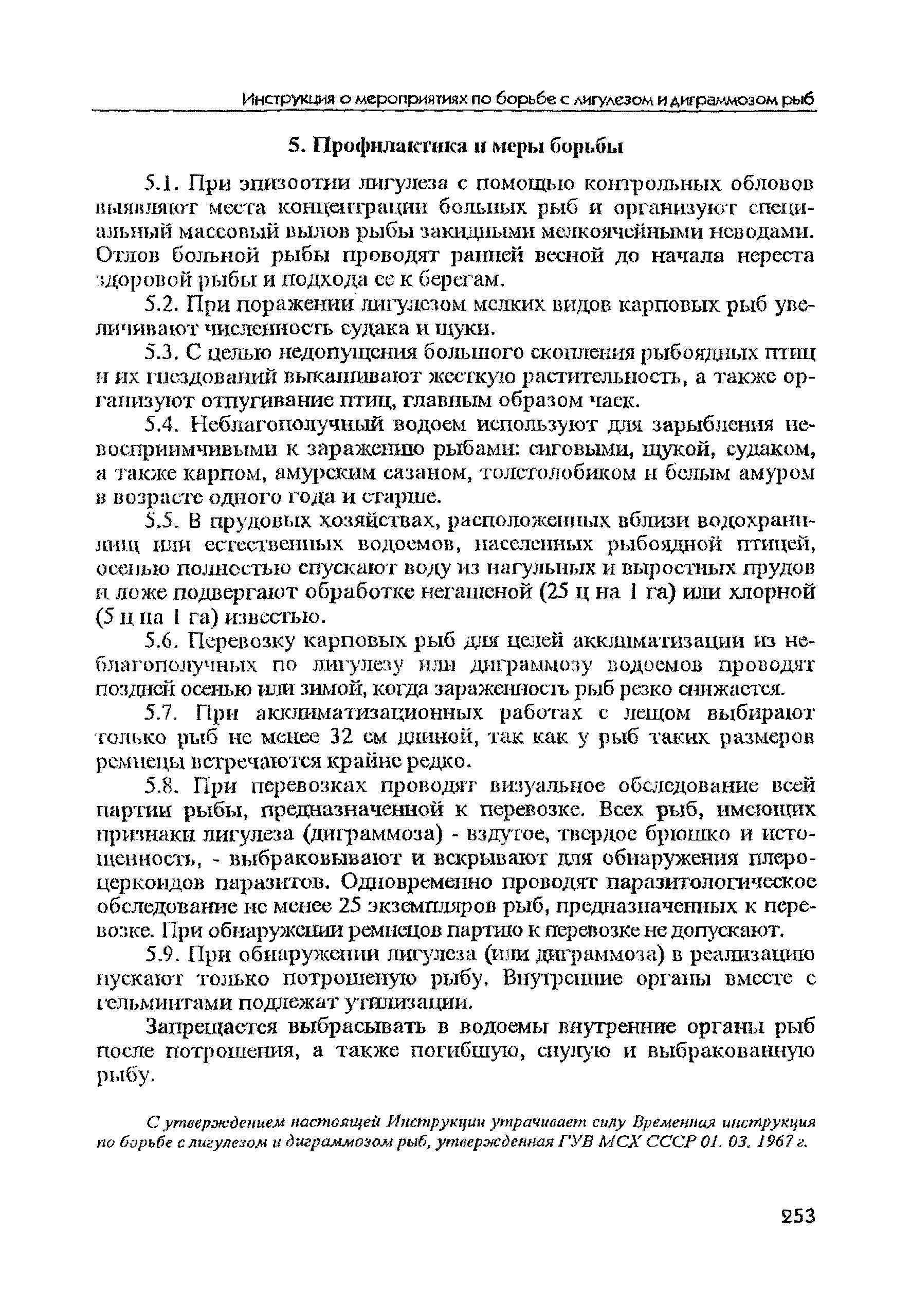 | Название рус.: | Инструкция о мероприятиях по борьбе с лигулезом и диграммозом рыб |