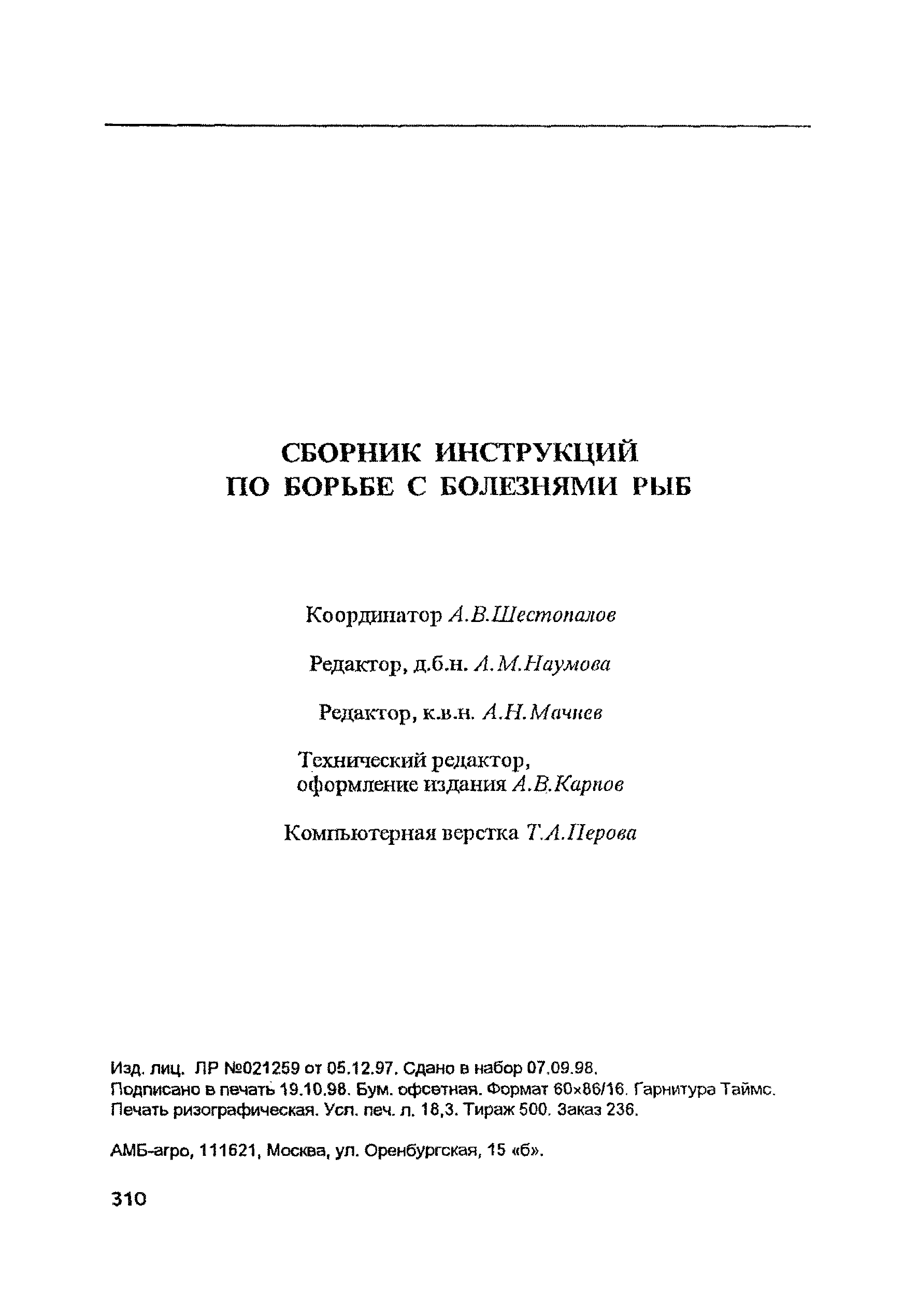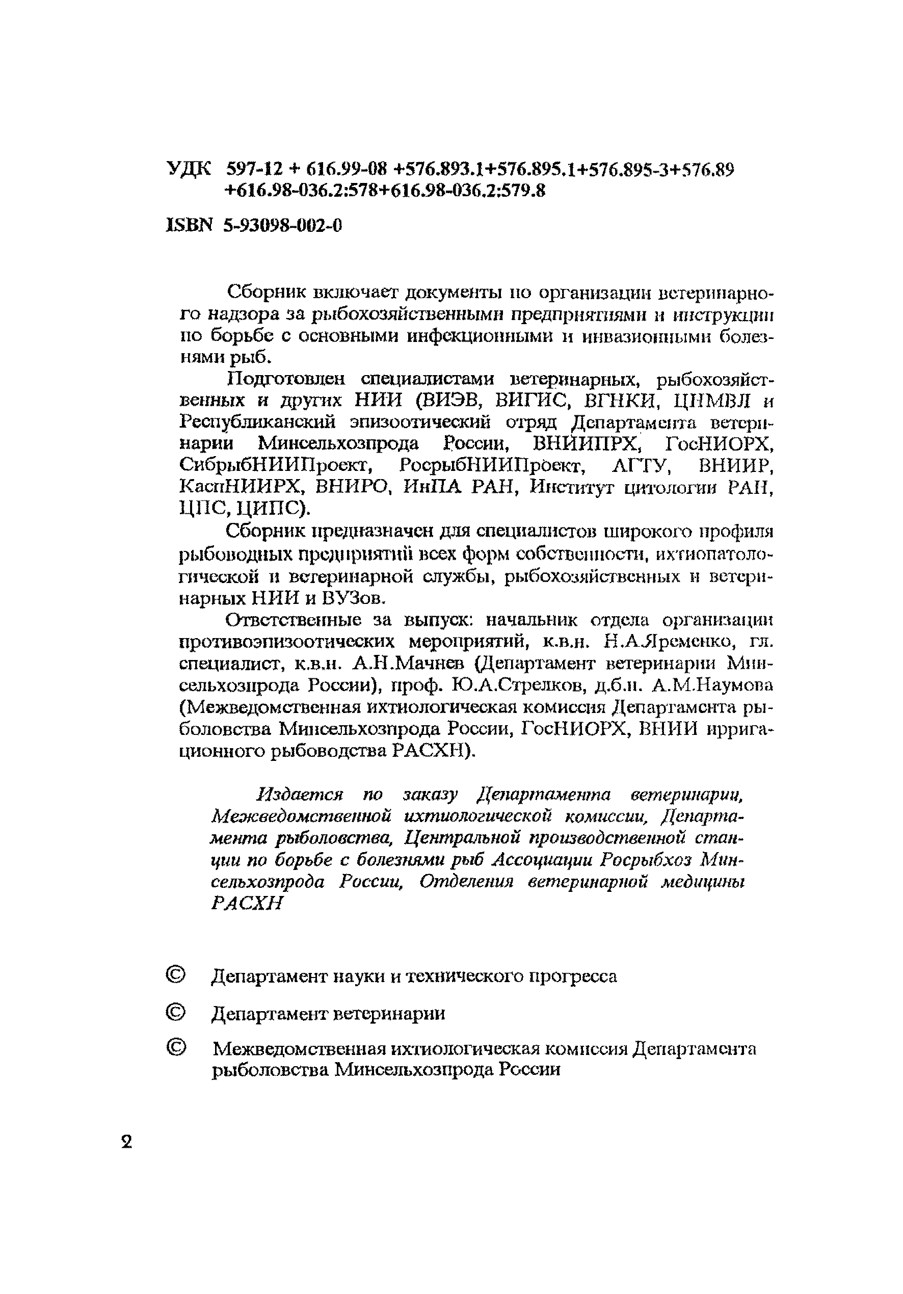 | Область применения: | Документ предназначен для специалистов широкого профиля рыбоводных предприятий всех форм собственности, ихтиопатологической и ветеринарной службы, рыбохозяйственных и ветеринарных НИИ и ВУЗов. |