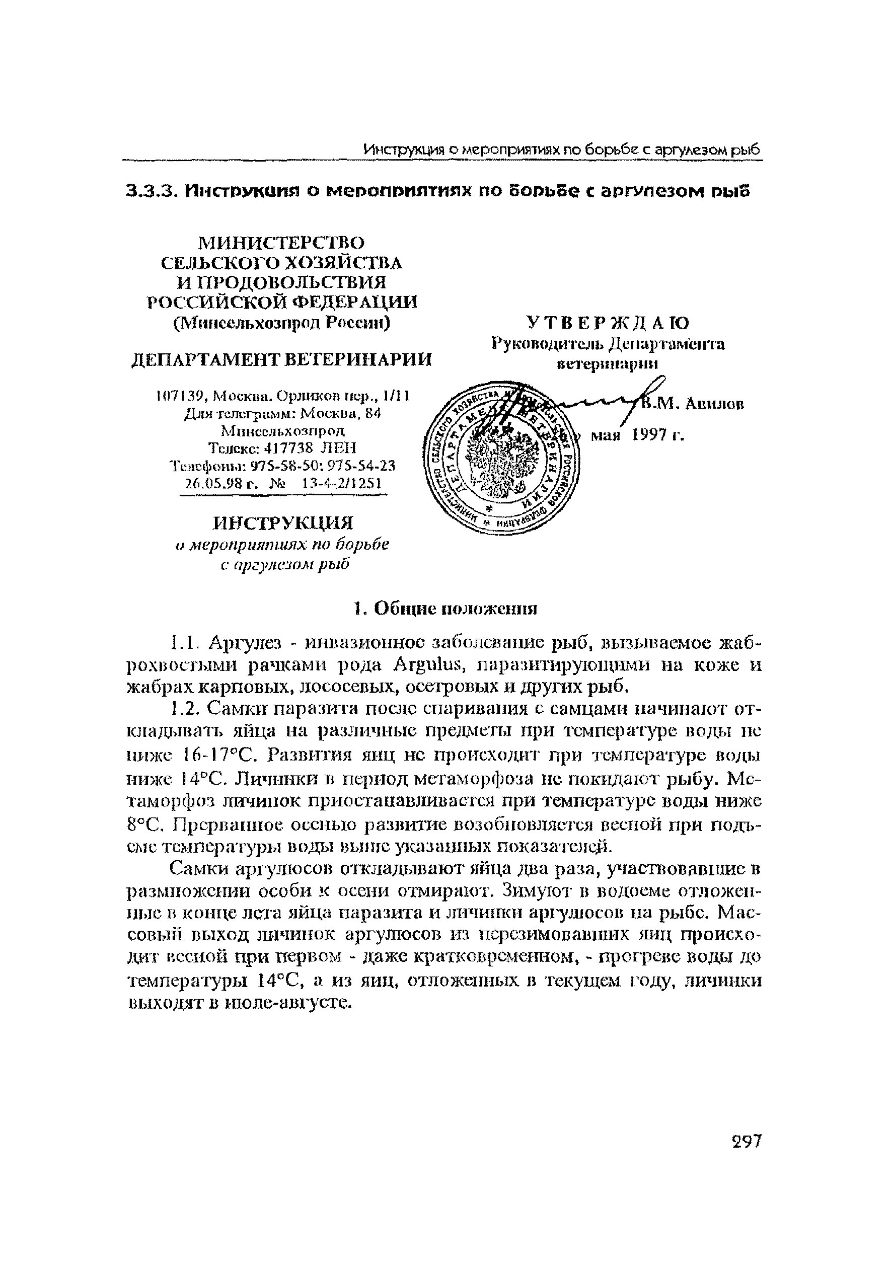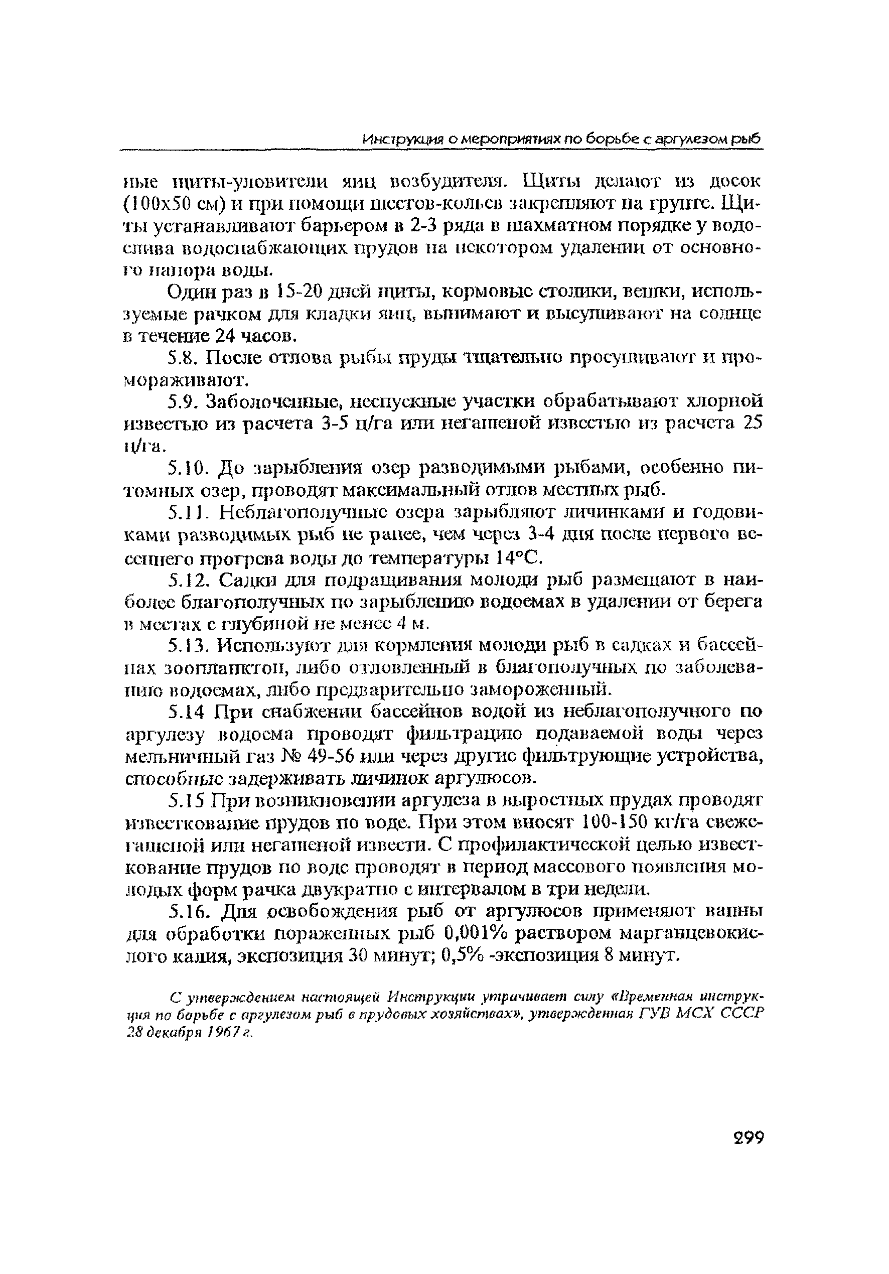 | Название рус.: | Инструкция о мероприятиях по борьбе с аргулезом рыб |