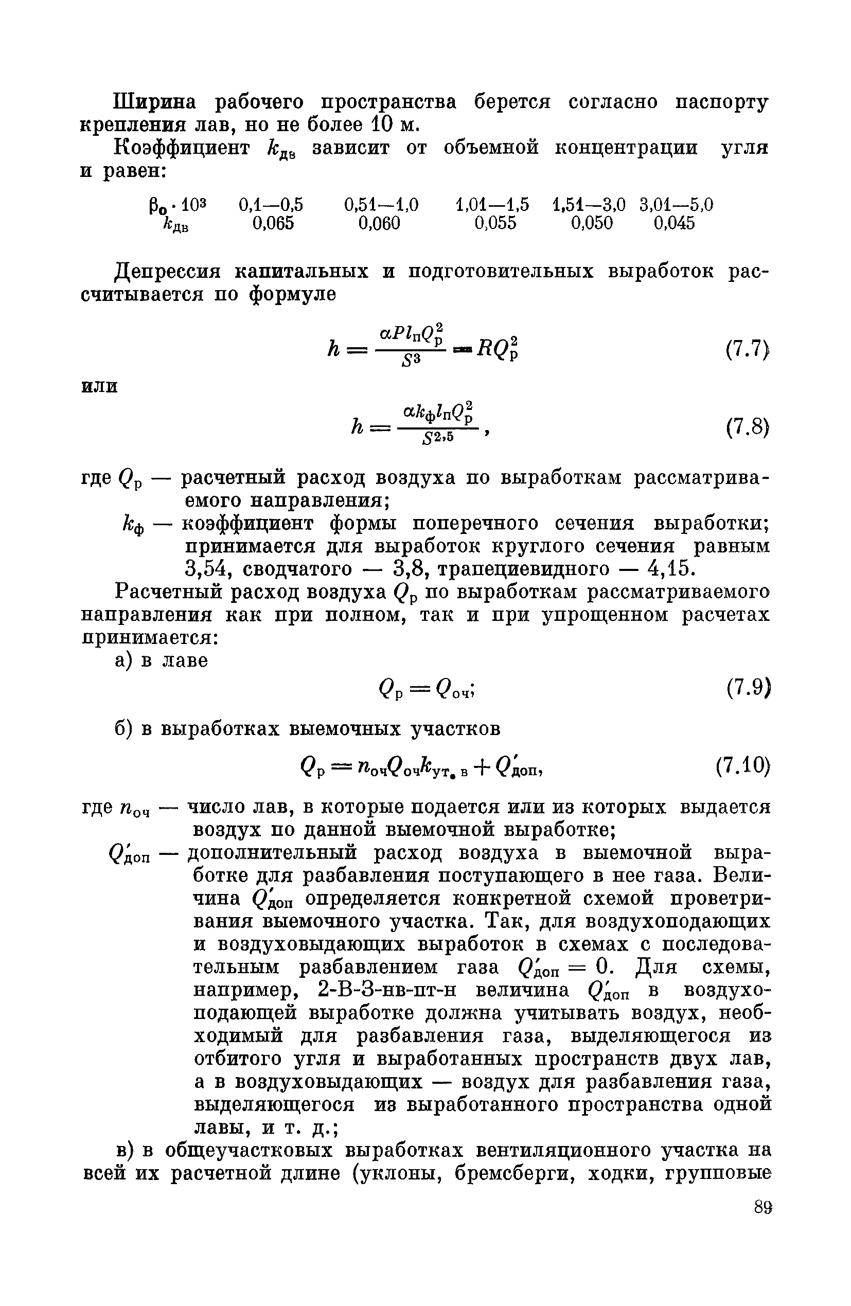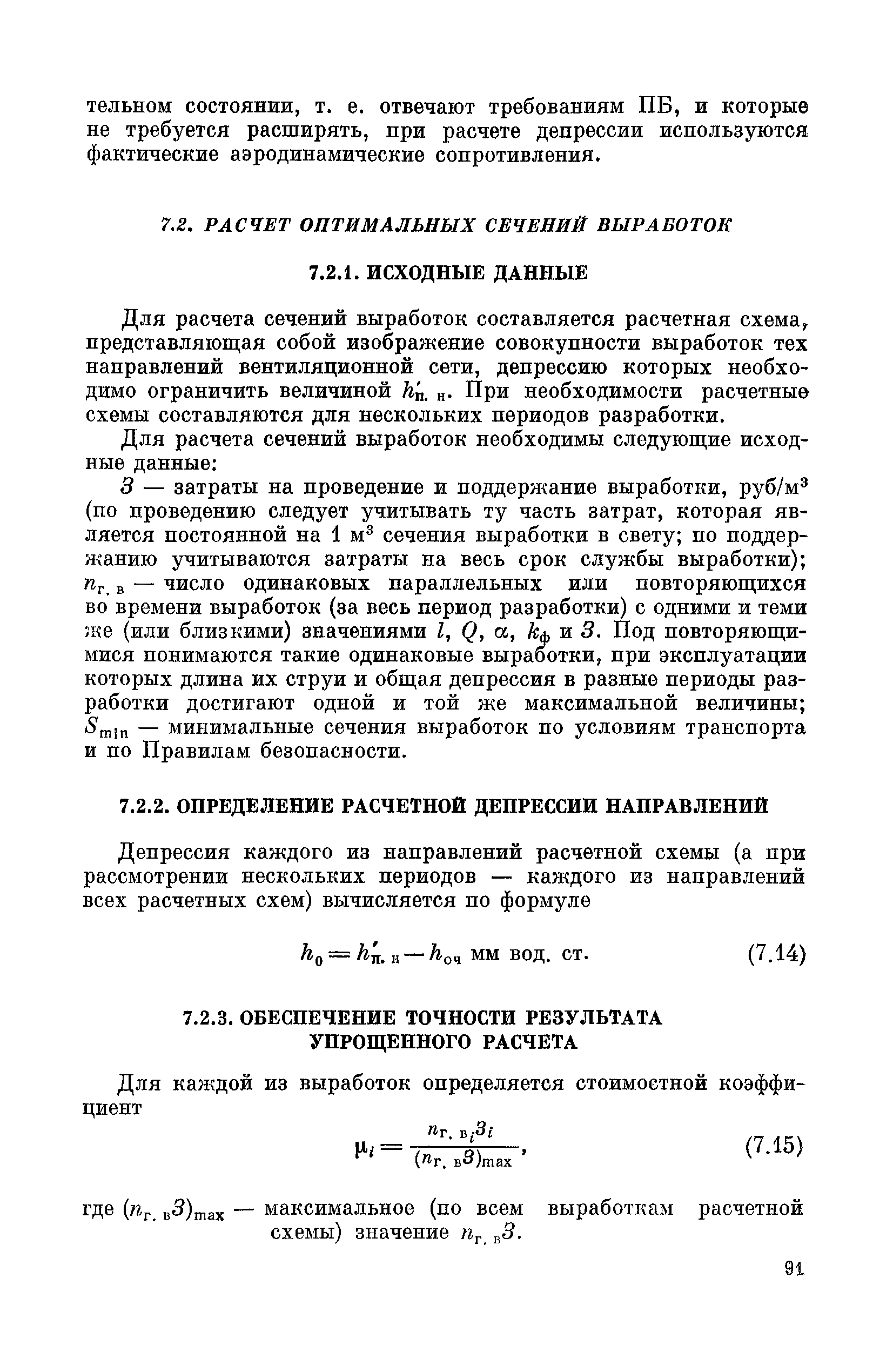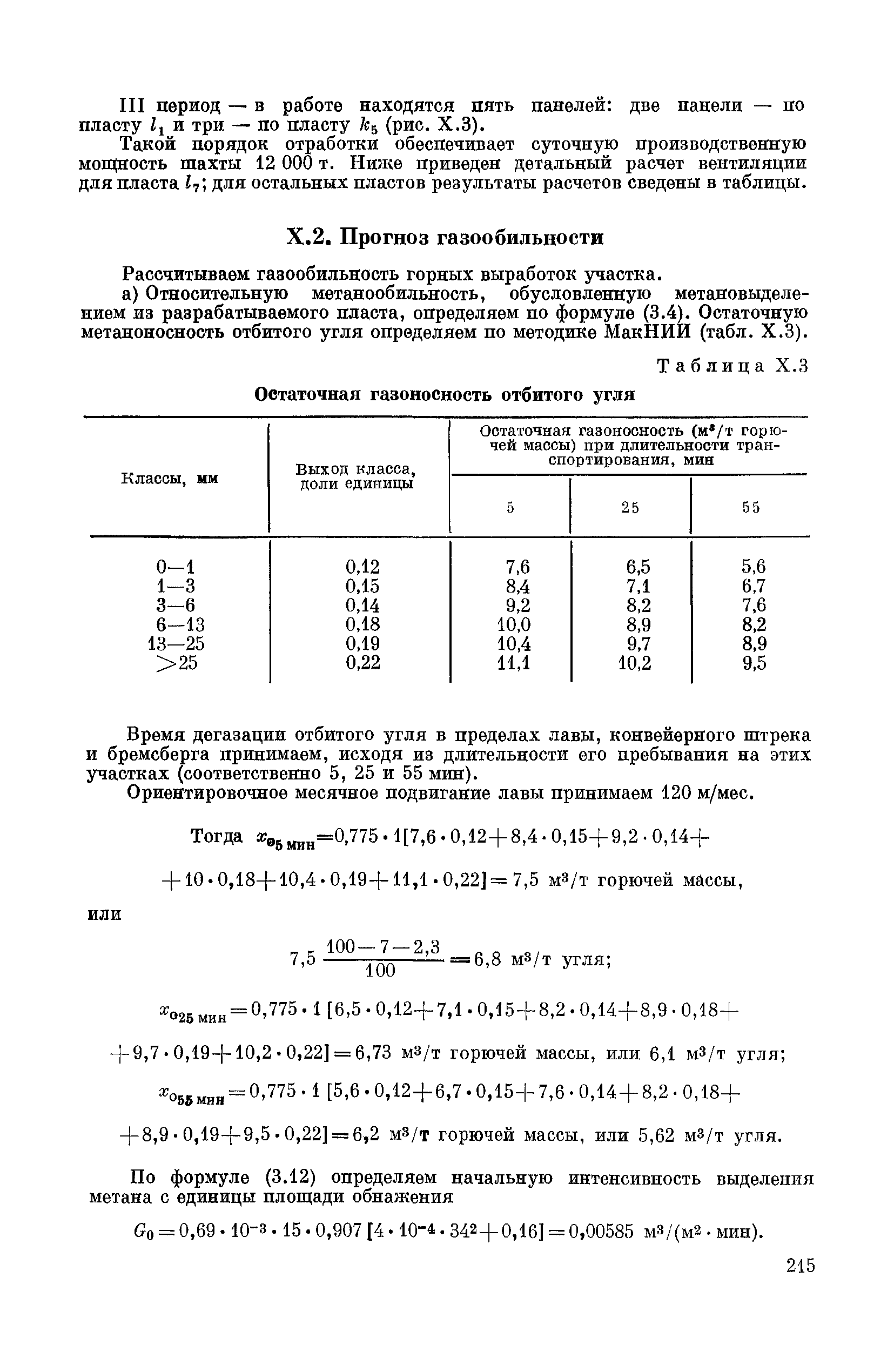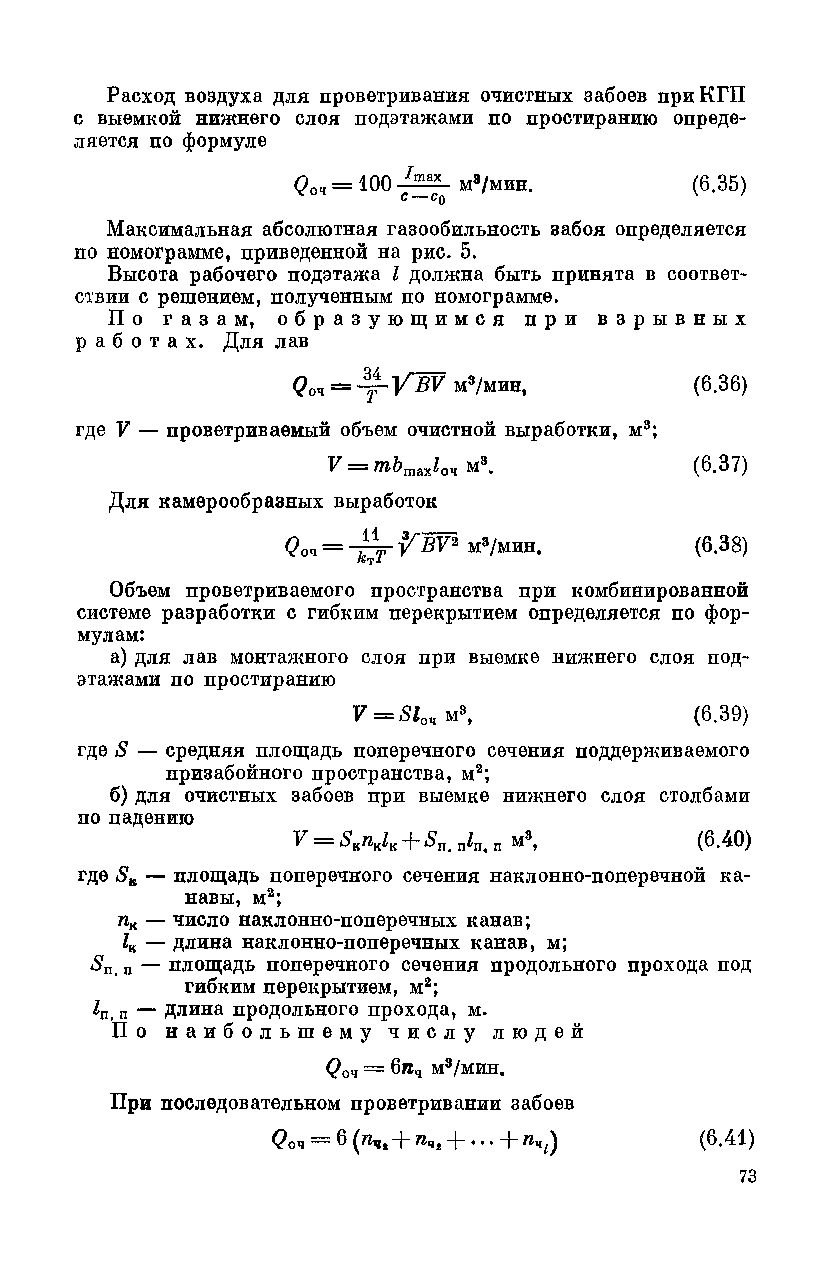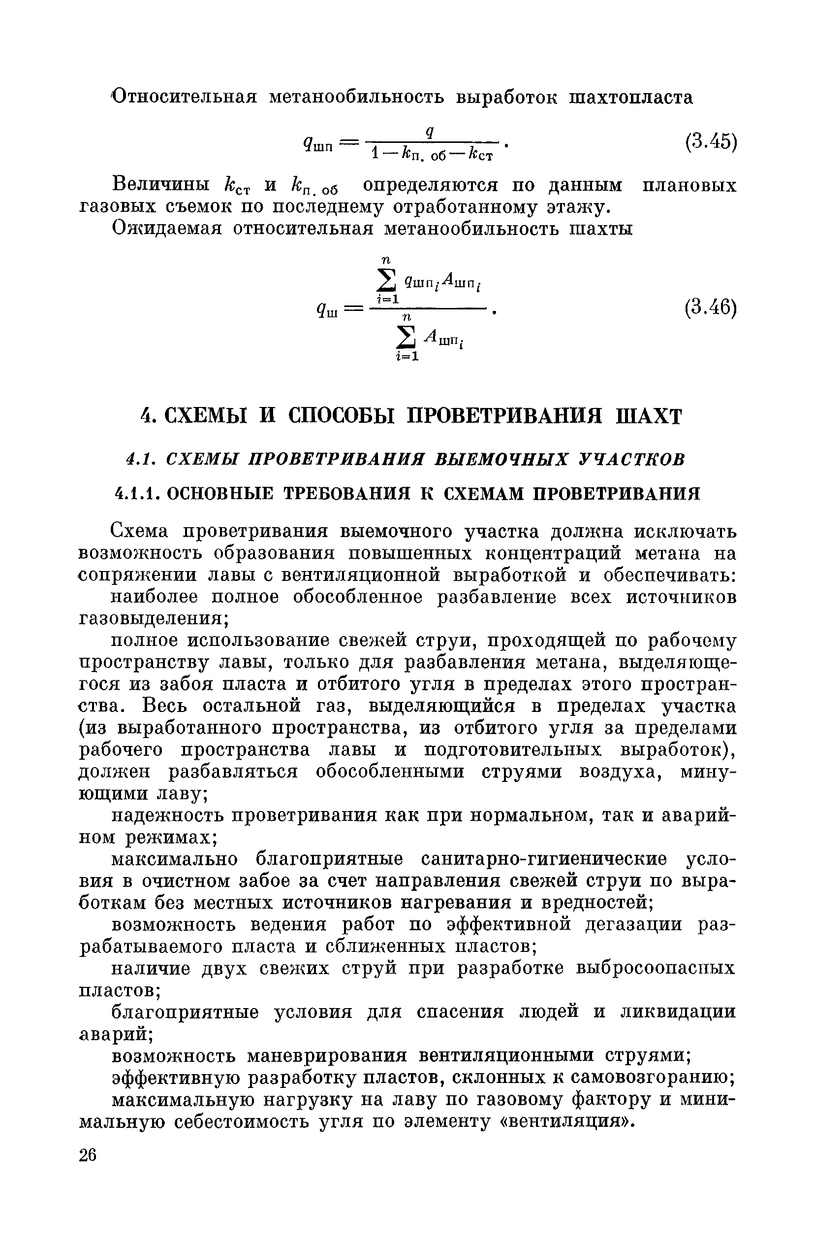 | Оглавление: | Предисловие Основные условные обозначения 1 Общие положения 1.1 Геологоразведочные организации 1.2 Угольные шахты 1.3 Проектные организации 1.4 Научно-исследовательские институты 2 Порядок проектирования вентиляции угольных шахт 3 Прогноз метанообильности выработок угольных шахт 3.1 Прогноз газообильности выработок по метаноносности угольных пластов 3.1.1 Метановыделение из пласта 3.1.2 Метановыделение из сближенных угольных пластов (спутников) 3.1.3 Метановыделение из вмещающих пород 3.1.4 Метанообильность подготовительных выработок 3.1.5 Метановыделение из старых выработанных пространств ранее отработанных этажей 3.2 Горностатистический метод прогноза 3.2.1 Принцип п область применения 3.2.2 Способ расчета и получения исходных данных 3.2.3 Способ обработки исходных данных 4 Схемы и способы проветривания шахт 4.1 Схемы проветривания выемочных участков 4.1.1 Основные требования к схемам проветривания 4.1.2 Область применения основных схем 4.2 Выбор схемы и способа проветривания шахты 5 Проектирование проветривания подготовительных выработок 5.1 Общие положения 5.2 Расход воздуха для проветривания одиночных подготовительных выработок 5.2.1 По газовыделению 5.2.2. По расходу ВВ 5.2.3 По наибольшему числу людей 5.2.4 По минимальной скорости движения воздуха 5.2.5 По тепловому фактору 5.2.6 Расчет производительности вентилятора 5.3 Расход воздуха для проветривания параллельных выработок 5.4 Расход воздуха для проветривания выработок, проводимых широким ходом 5.5 Выбор способа проветривания 5.6 Выбор и аэродинамический расчет трубопроводов 5.7 Выбор вентиляторов жесткого проветривания 5.8 Установка вентиляторов местного проветривания 6 Расчет расхода воздуха для проветривания угольных шахт 6.1 Общие положения 6.2 Упрощенный расчет расхода воздуха 6.2.1 Для Донецкого бассейна и шахт с аналогичными условиями 6.2.2 Для Кузнецкого бассейна и шахт с аналогичными условиями 6.3 Допустимая нагрузка на очистную выработку по газовому фактору 6.3.1 Для забоев типа лав 6.3.2 Для систем разработки с очистными забоями типа камер 6.4 Полный расчет расхода воздуха 6.4.1 Расход воздуха для проветривания забоев 6.4.2 Расход воздуха для проветривания выемочного участка 6.4.3 Расход воздуха для проветривания камер 6.4.4 Утечки воздуха через вентиляционные сооружения 6.4.5 Расход воздуха для проветривания вентиляционного участка и шахты 6.4.6 Производительность вентиляторных установок 7 Расчет депрессии шахт 7.1 Общешахтная депрессия 7.2 Расчет оптимальных сечений выработок 7.2.1 Исходные данные 7.2.2 Определение расчетной депрессии направлений 7.2.3 Обеспечение точности результата упрощенного расчета 7.2.4 Выбор определяющего направления 7.2.5 Расчет сечений выработок направления 7.2.6 Возможная корректировка местоположения воздухоподающего и вентиляционного стволов 7.2.7 Техника расчета сечений выработок 7.3 Размещение и расчет регуляторов распределения воздуха в горных выработках 8 Выбор вентиляторов 8.1 Вентиляторы для одиночной работы 8.2 Вентиляторы для совместной работы 9 Определение устойчивости проветривания шахт и повышение ее при конструировании схем 9.1 Расчет устойчивости проветривания 9.1.1 Общие сведения 9.1.2 Исходные данные и порядок анализа 9.1.3 Нахождение диагоналей и ветвей, влияющих на направление движения воздуха в диагоналях 9.1.4 Предварительный анализ устойчивости 9.1.5 О