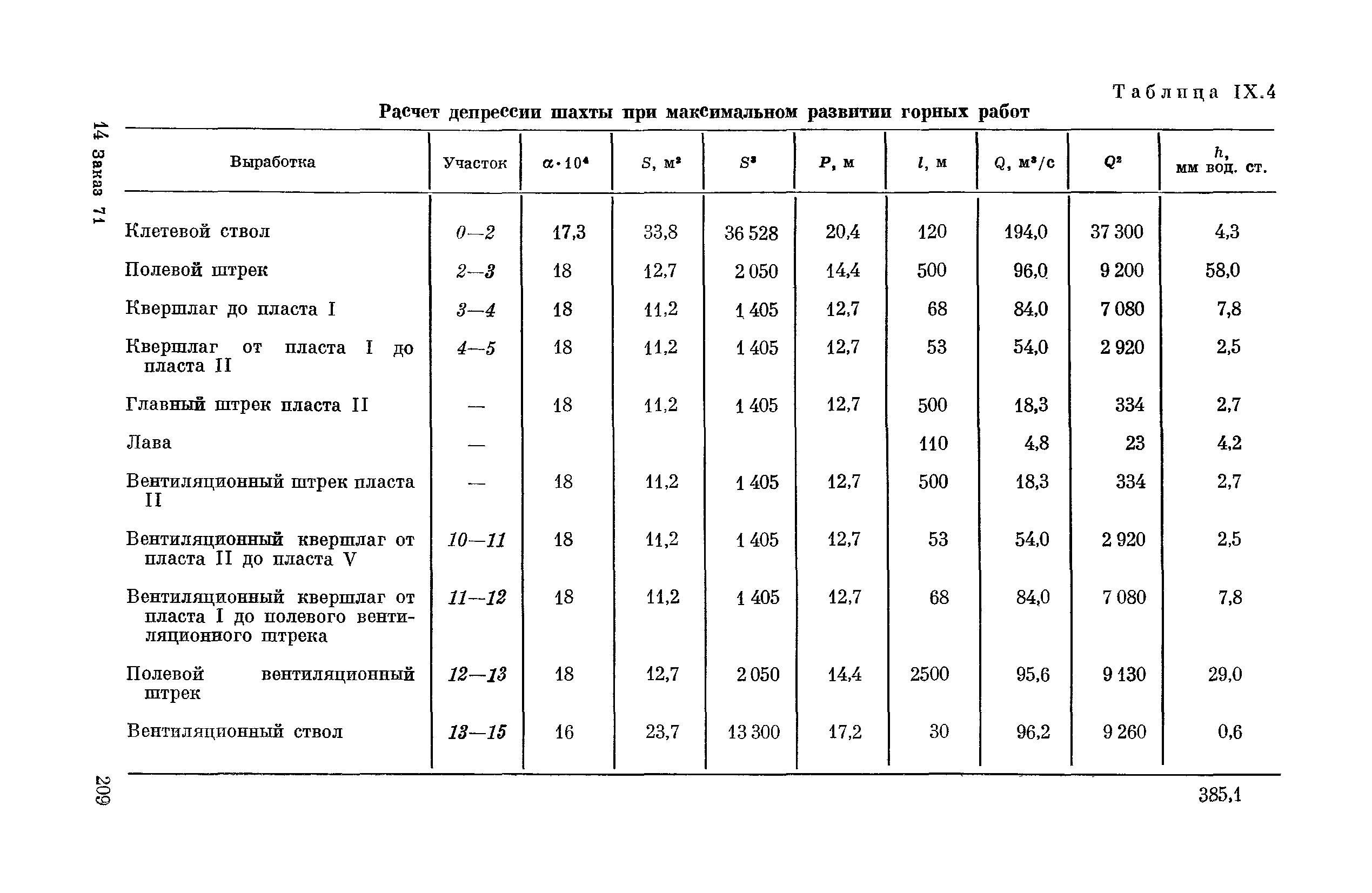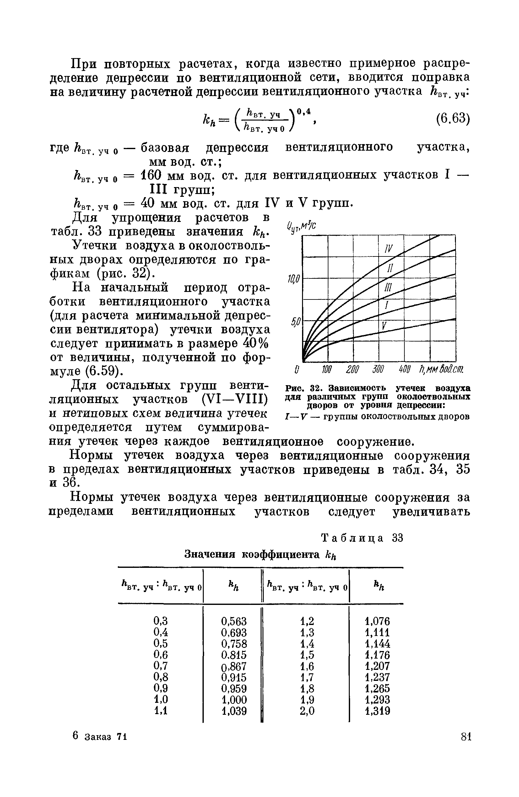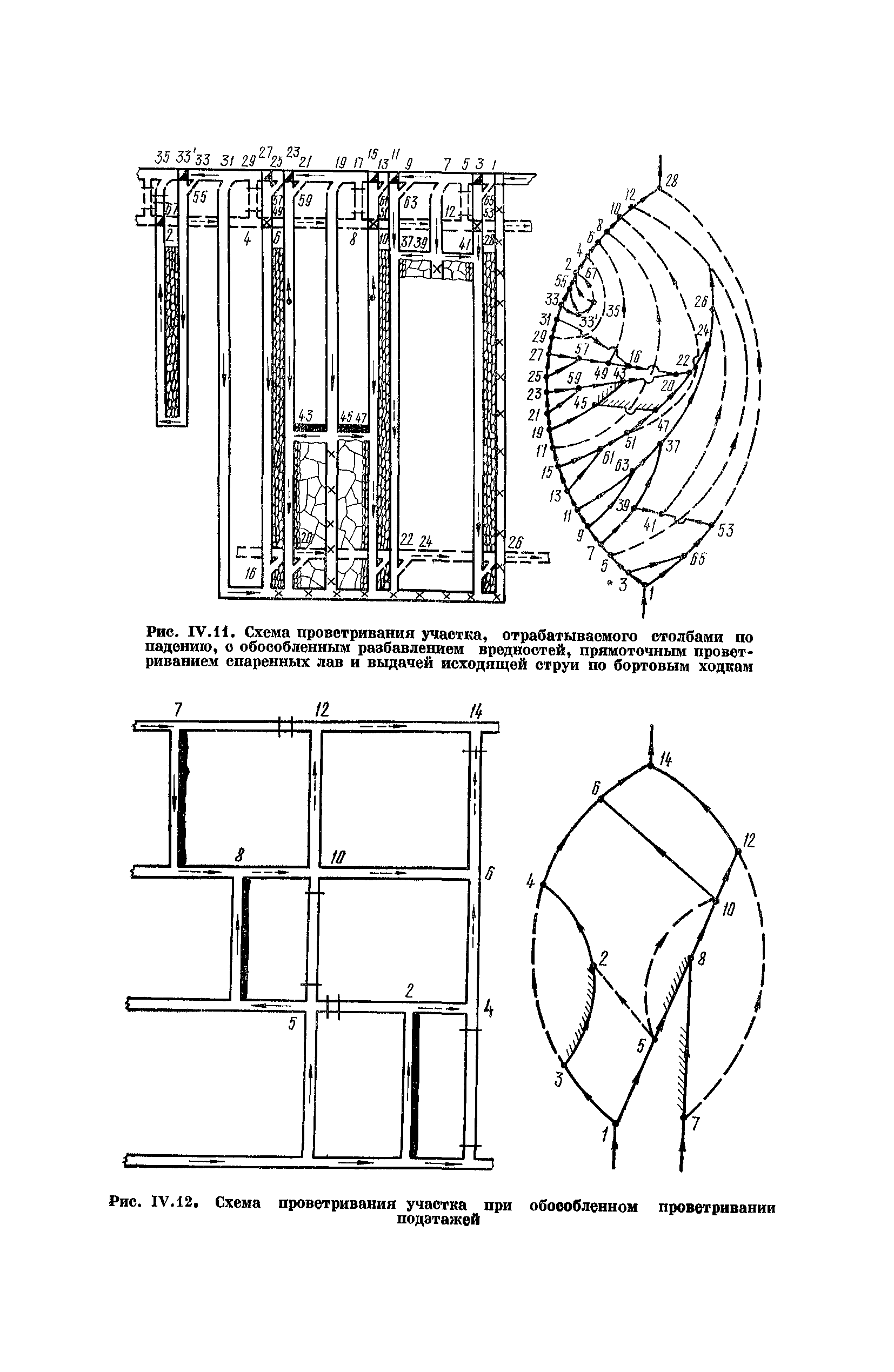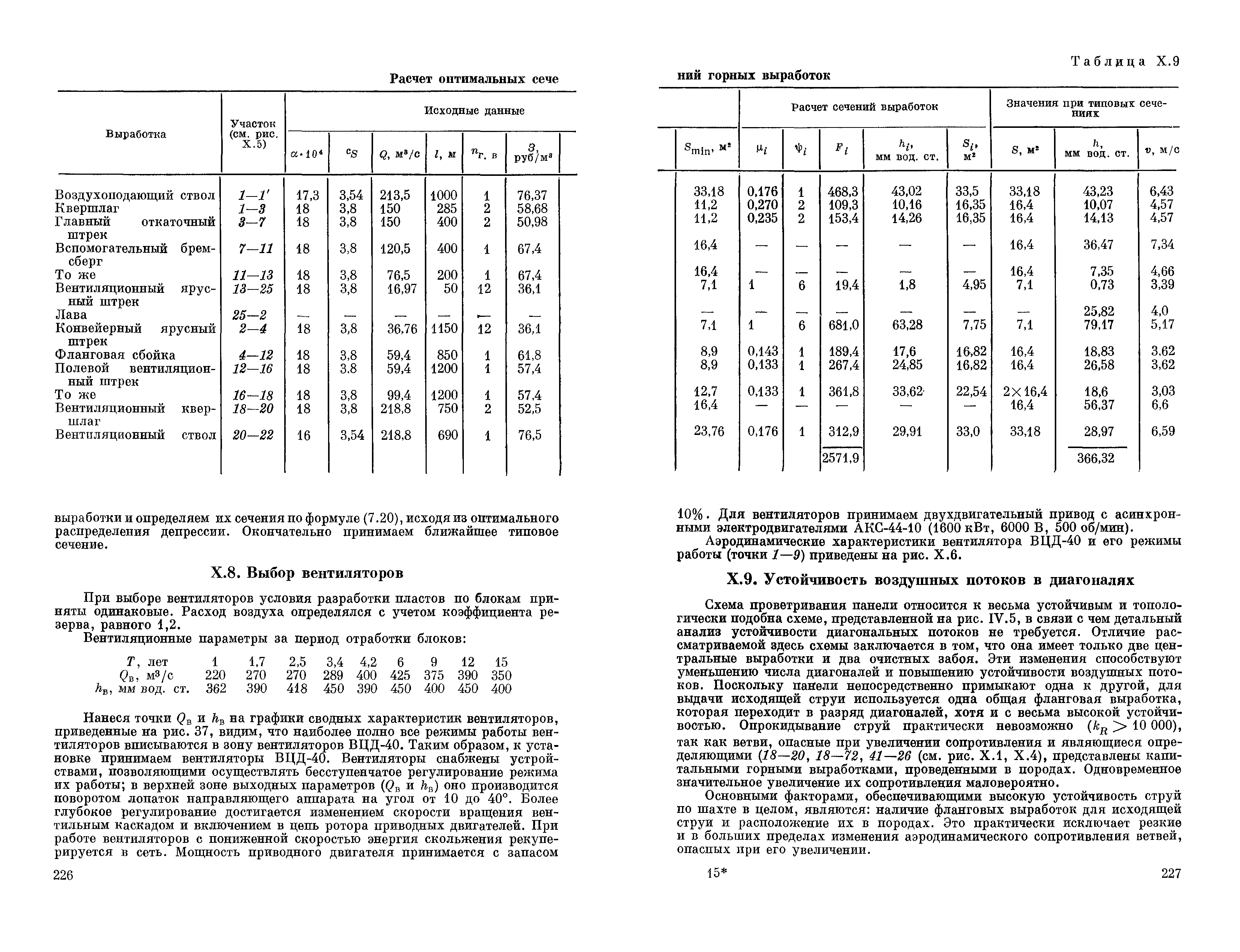 | Оглавление: | Предисловие Основные условные обозначения 1 Общие положения 1.1 Геологоразведочные организации 1.2 Угольные шахты 1.3 Проектные организации 1.4 Научно-исследовательские институты 2 Порядок проектирования вентиляции угольных шахт 3 Прогноз метанообильности выработок угольных шахт 3.1 Прогноз газообильности выработок по метаноносности угольных пластов 3.1.1 Метановыделение из пласта 3.1.2 Метановыделение из сближенных угольных пластов (спутников) 3.1.3 Метановыделение из вмещающих пород 3.1.4 Метанообильность подготовительных выработок 3.1.5 Метановыделение из старых выработанных пространств ранее отработанных этажей 3.2 Горностатистический метод прогноза 3.2.1 Принцип п область применения 3.2.2 Способ расчета и получения исходных данных 3.2.3 Способ обработки исходных данных 4 Схемы и способы проветривания шахт 4.1 Схемы проветривания выемочных участков 4.1.1 Основные требования к схемам проветривания 4.1.2 Область применения основных схем 4.2 Выбор схемы и способа проветривания шахты 5 Проектирование проветривания подготовительных выработок 5.1 Общие положения 5.2 Расход воздуха для проветривания одиночных подготовительных выработок 5.2.1 По газовыделению 5.2.2. По расходу ВВ 5.2.3 По наибольшему числу людей 5.2.4 По минимальной скорости движения воздуха 5.2.5 По тепловому фактору 5.2.6 Расчет производительности вентилятора 5.3 Расход воздуха для проветривания параллельных выработок 5.4 Расход воздуха для проветривания выработок, проводимых широким ходом 5.5 Выбор способа проветривания 5.6 Выбор и аэродинамический расчет трубопроводов 5.7 Выбор вентиляторов жесткого проветривания 5.8 Установка вентиляторов местного проветривания 6 Расчет расхода воздуха для проветривания угольных шахт 6.1 Общие положения 6.2 Упрощенный расчет расхода воздуха 6.2.1 Для Донецкого бассейна и шахт с аналогичными условиями 6.2.2 Для Кузнецкого бассейна и шахт с аналогичными условиями 6.3 Допустимая нагрузка на очистную выработку по газовому фактору 6.3.1 Для забоев типа лав 6.3.2 Для систем разработки с очистными забоями типа камер 6.4 Полный расчет расхода воздуха 6.4.1 Расход воздуха для проветривания забоев 6.4.2 Расход воздуха для проветривания выемочного участка 6.4.3 Расход воздуха для проветривания камер 6.4.4 Утечки воздуха через вентиляционные сооружения 6.4.5 Расход воздуха для проветривания вентиляционного участка и шахты 6.4.6 Производительность вентиляторных установок 7 Расчет депрессии шахт 7.1 Общешахтная депрессия 7.2 Расчет оптимальных сечений выработок 7.2.1 Исходные данные 7.2.2 Определение расчетной депрессии направлений 7.2.3 Обеспечение точности результата упрощенного расчета 7.2.4 Выбор определяющего направления 7.2.5 Расчет сечений выработок направления 7.2.6 Возможная корректировка местоположения воздухоподающего и вентиляционного стволов 7.2.7 Техника расчета сечений выработок 7.3 Размещение и расчет регуляторов распределения воздуха в горных выработках 8 Выбор вентиляторов 8.1 Вентиляторы для одиночной работы 8.2 Вентиляторы для совместной работы 9 Определение устойчивости проветривания шахт и повышение ее при конструировании схем 9.1 Расчет устойчивости проветривания 9.1.1 Общие сведения 9.1.2 Исходные данные и порядок анализа 9.1.3 Нахождение диагоналей и ветвей, влияющих на направление движения воздуха в диагоналях 9.1.4 Предварительный анализ устойчивости 9.1.5 О